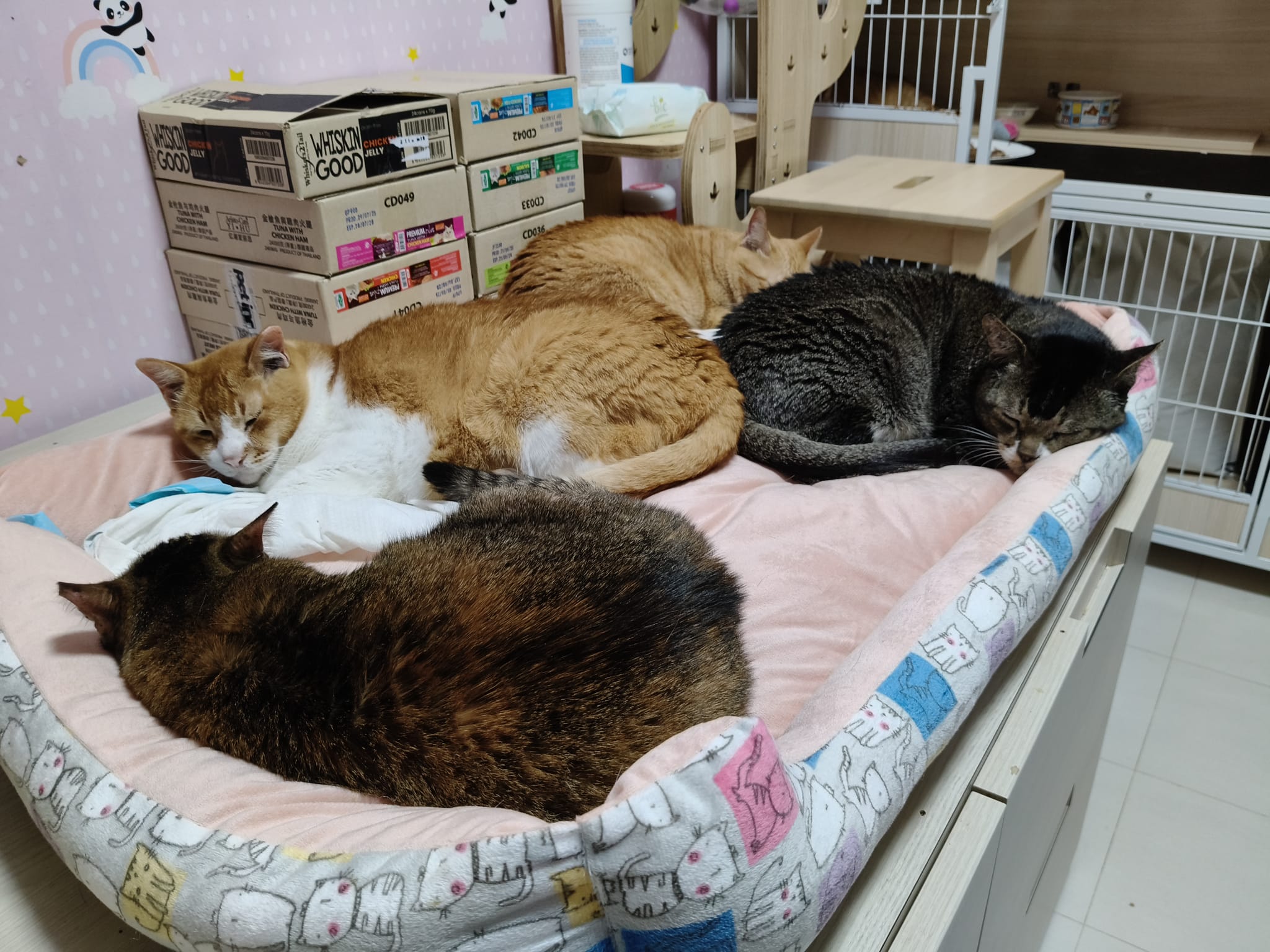 Morning: quarantined tgt w Princess sweetheart, Teddy, rena and mama Mimi in new room for the installation of aircon, cos they r the calm cats to be ard her.