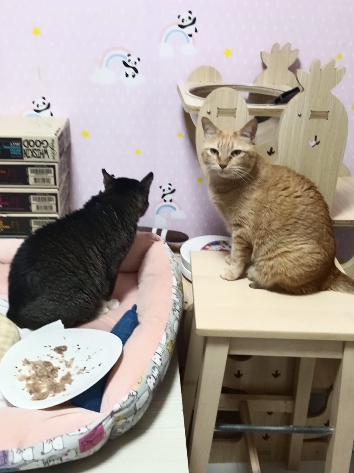 Morning: agnes come 猫房 celebrate her bday w the cats. She bring treats for them n char eat quite a lot