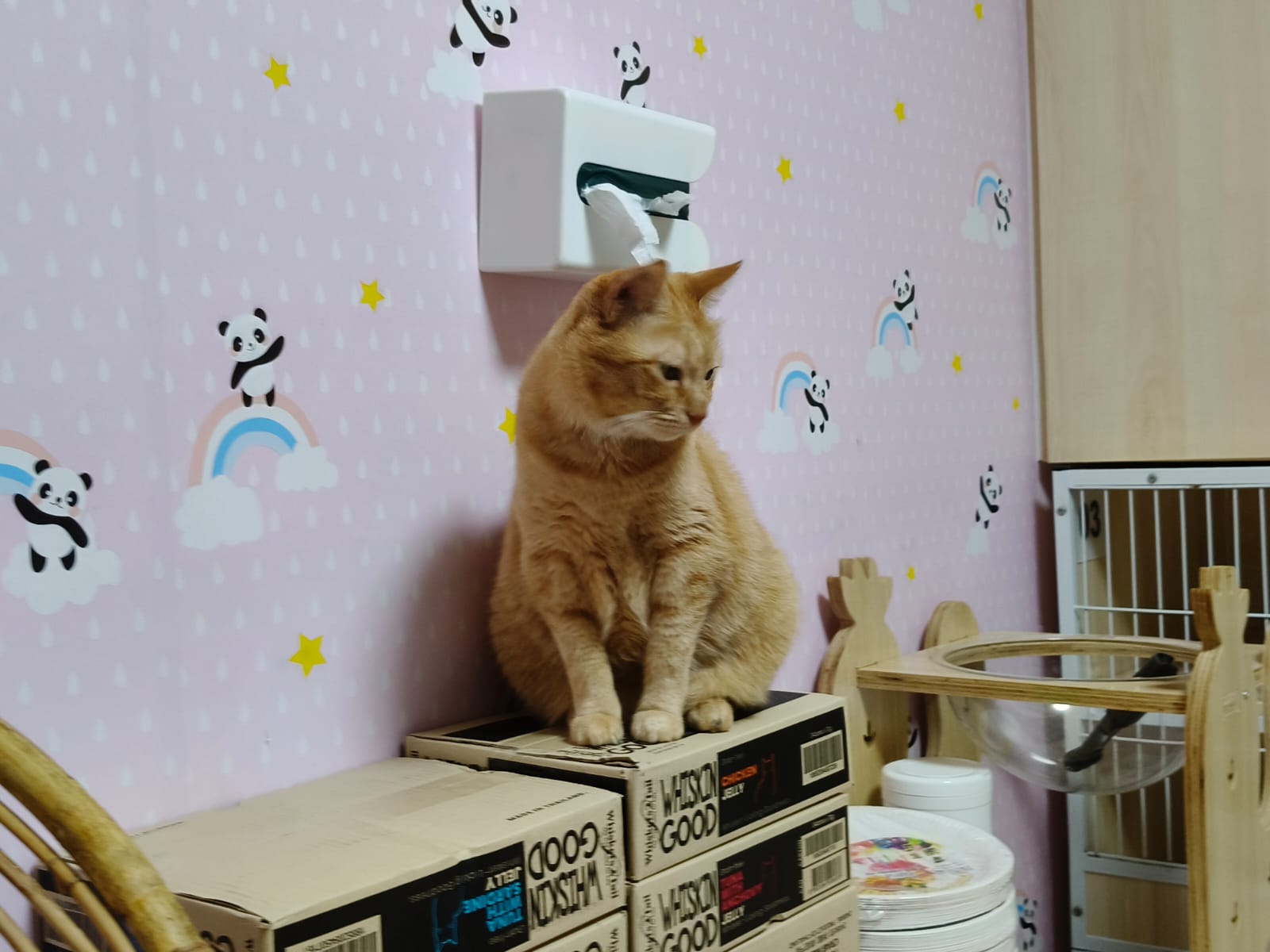 11.44am: can safely say char migrate herself to food room, cos ah boy mainly at tv room cos new sections. Wash the bin that I reserve for her. I can pack that cabinet these few days