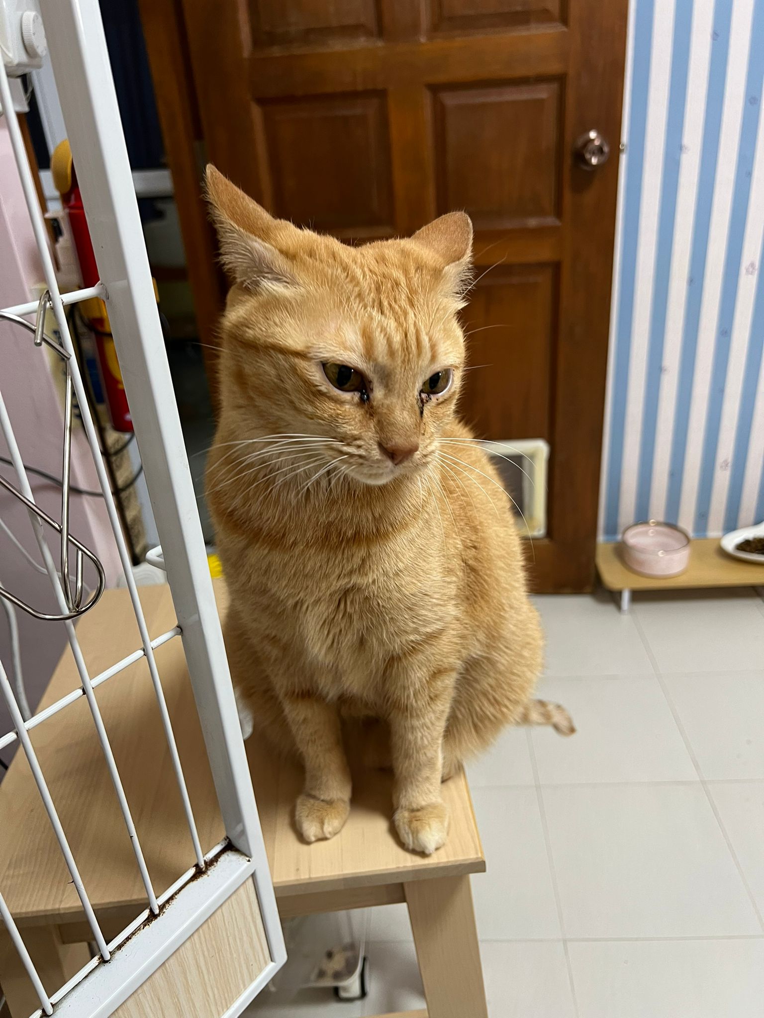 Morning: Left eye got discharge, sayang n clean for her. Told her mon she is going to stay in the iso room w Mimi, rena, Ps and Teddy cos we changing aircons. Clean her ears will get angry wor, but don’t attack
