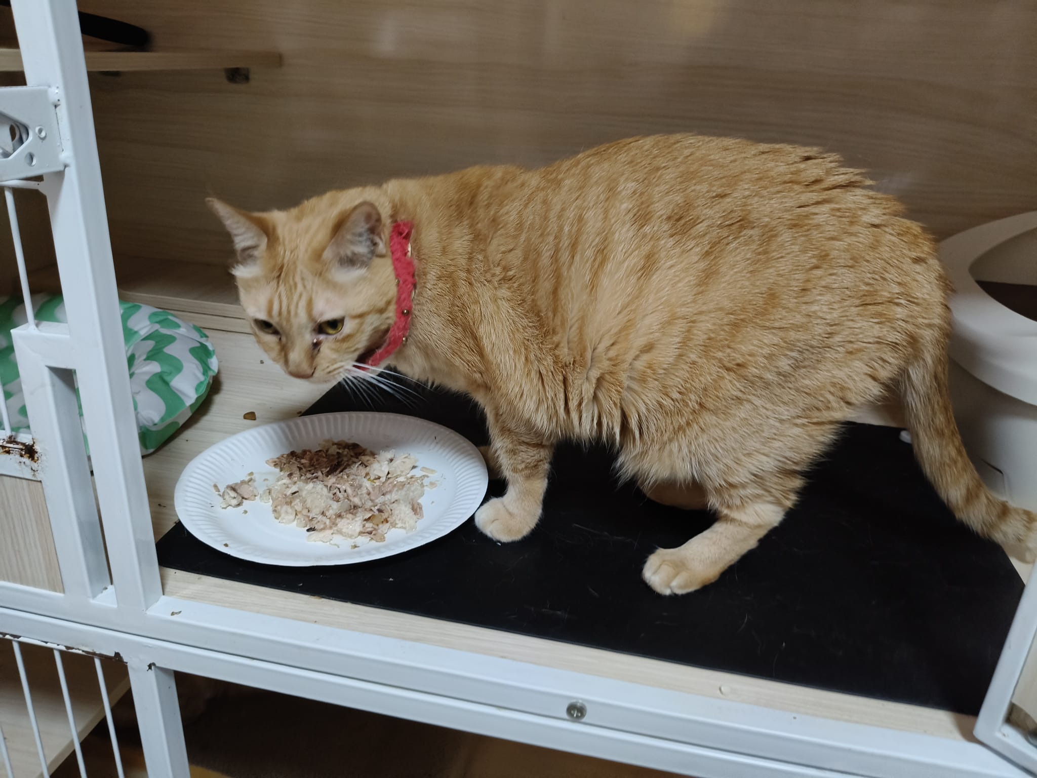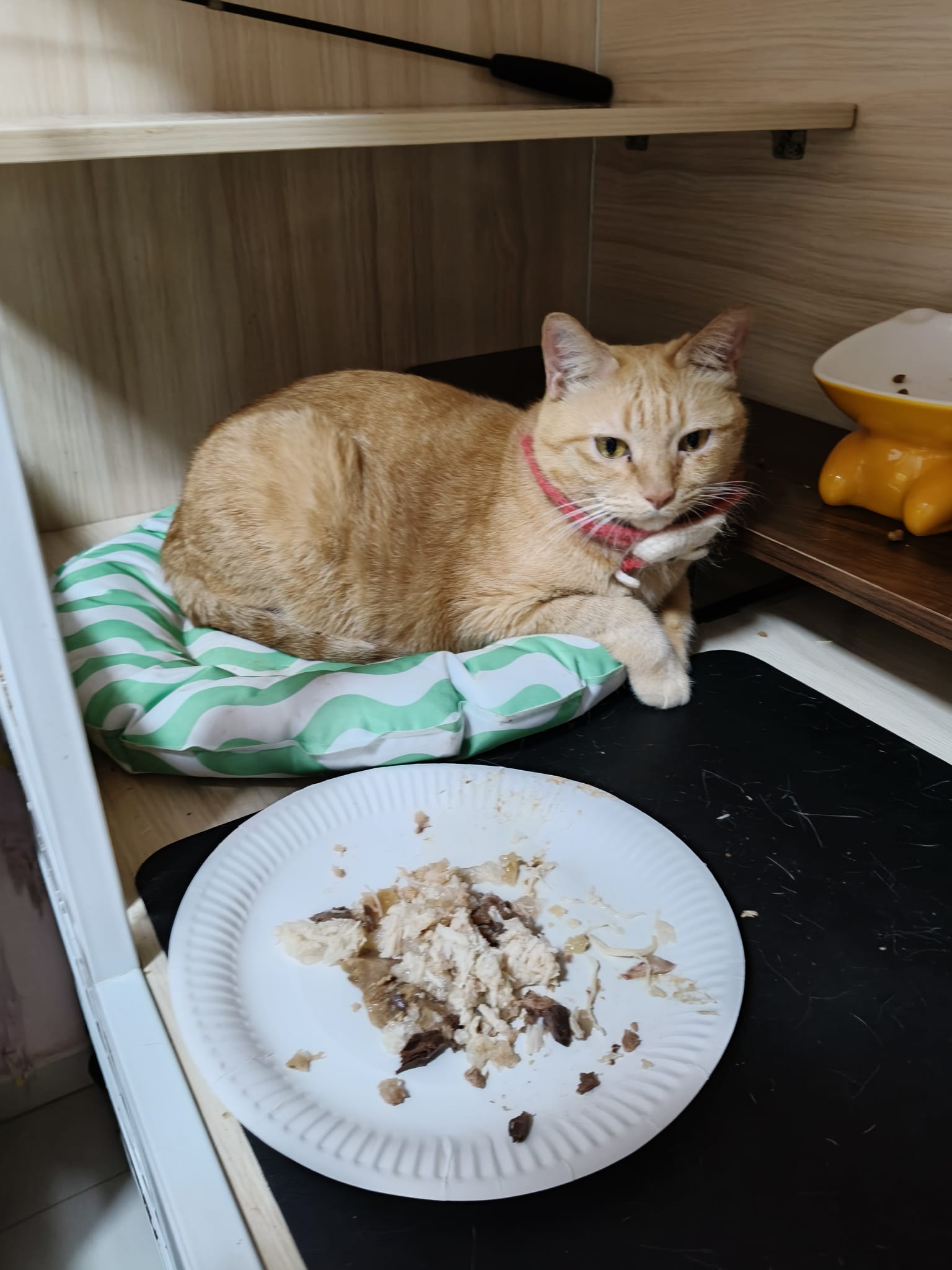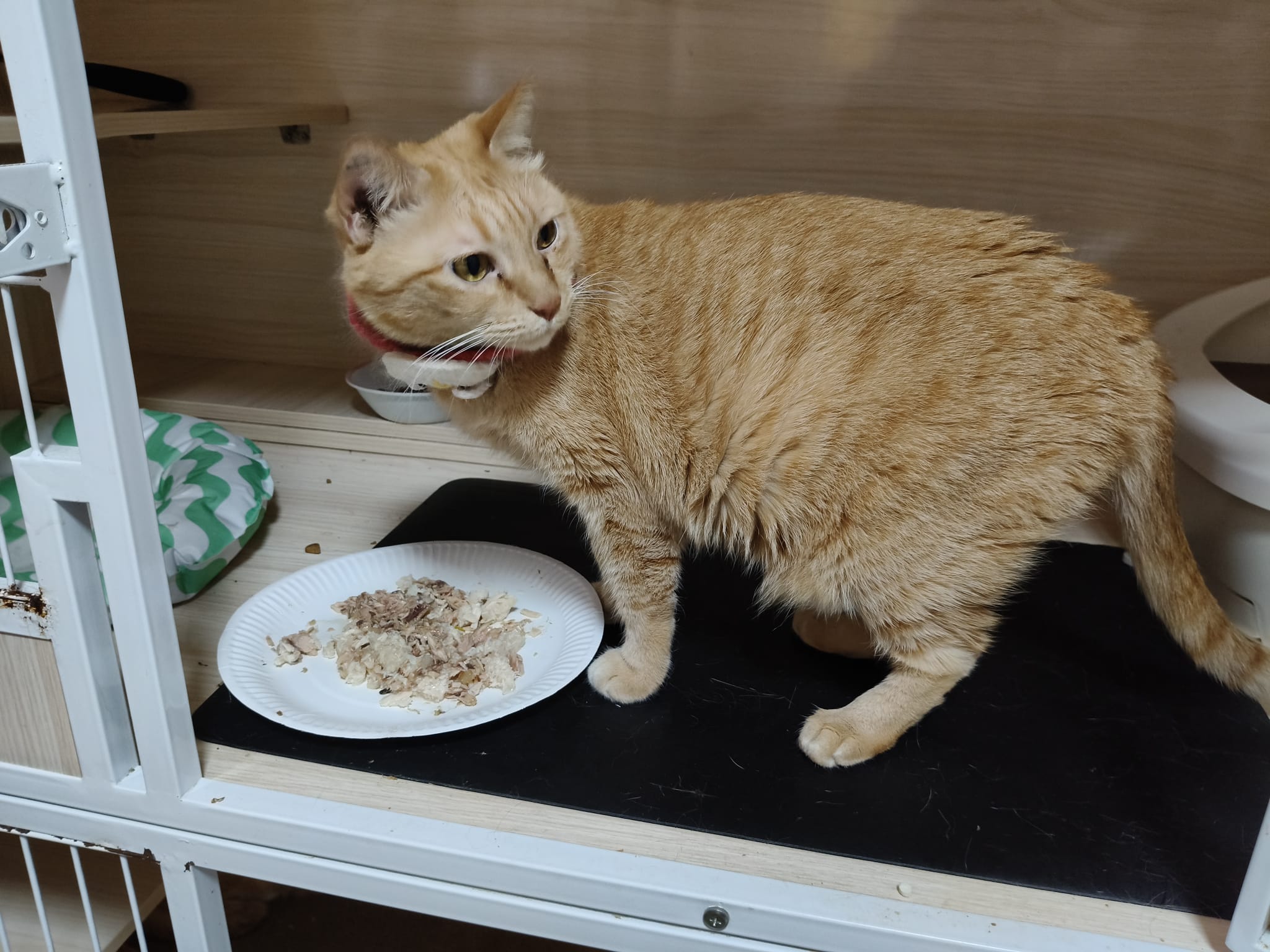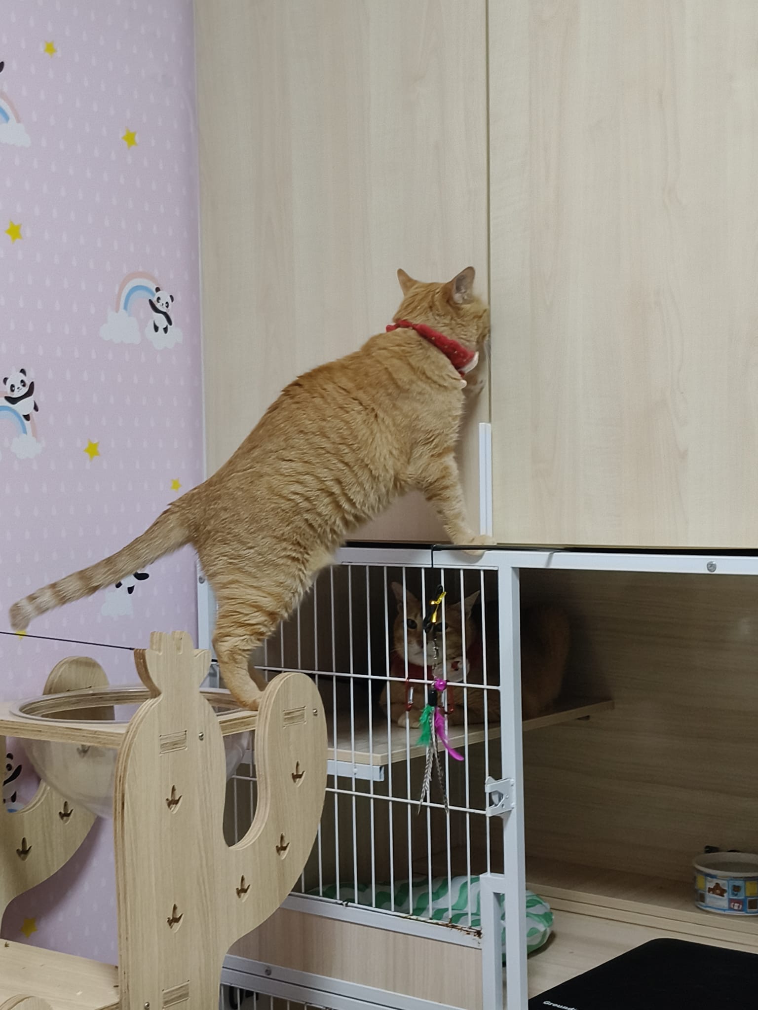 1pm+: I’m back from buying stuff for them, I buy a cute orange cat bowl for her. She is happier nowadays. Will run to both rooms. She is very ok w all the Orange cats. Just now wanna buy tear stain removal for her but no expiry so better not buy.