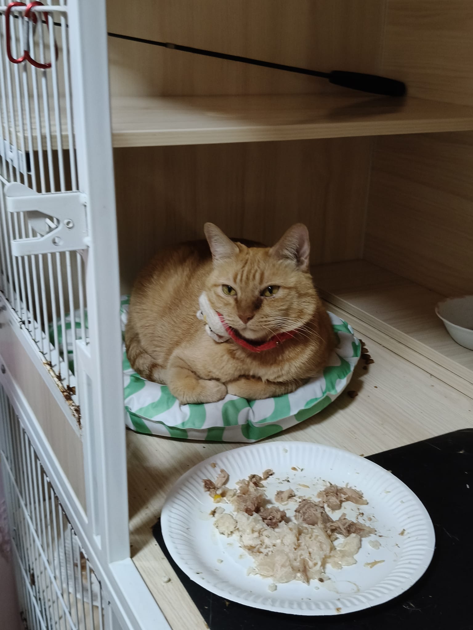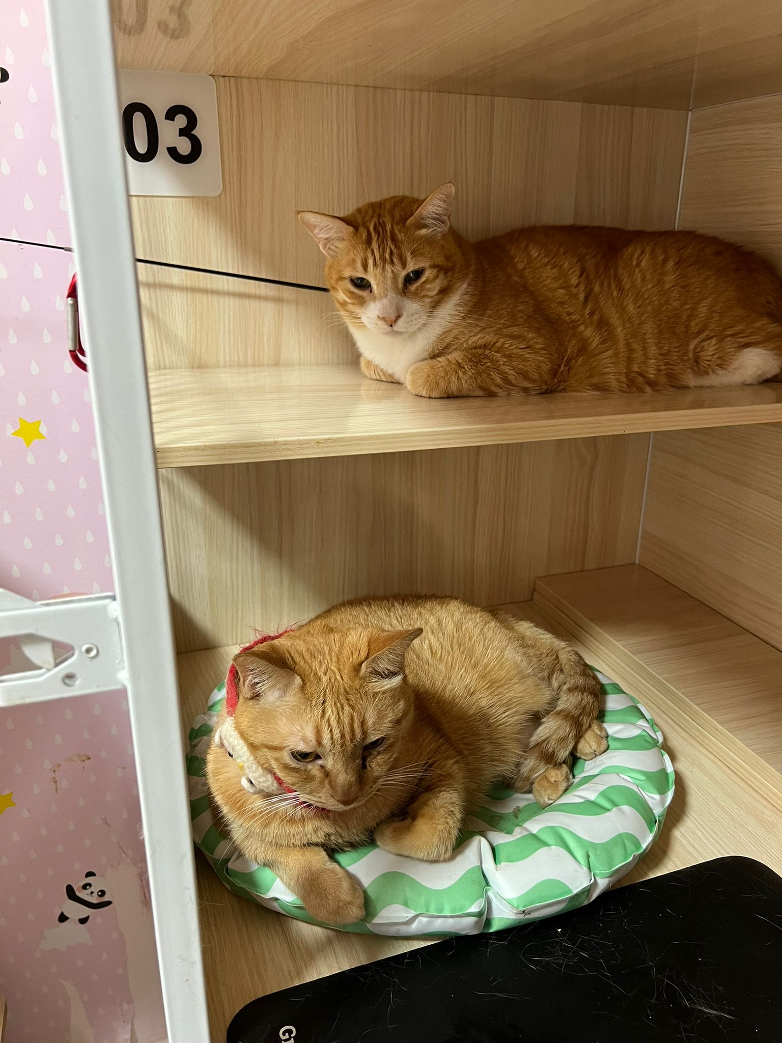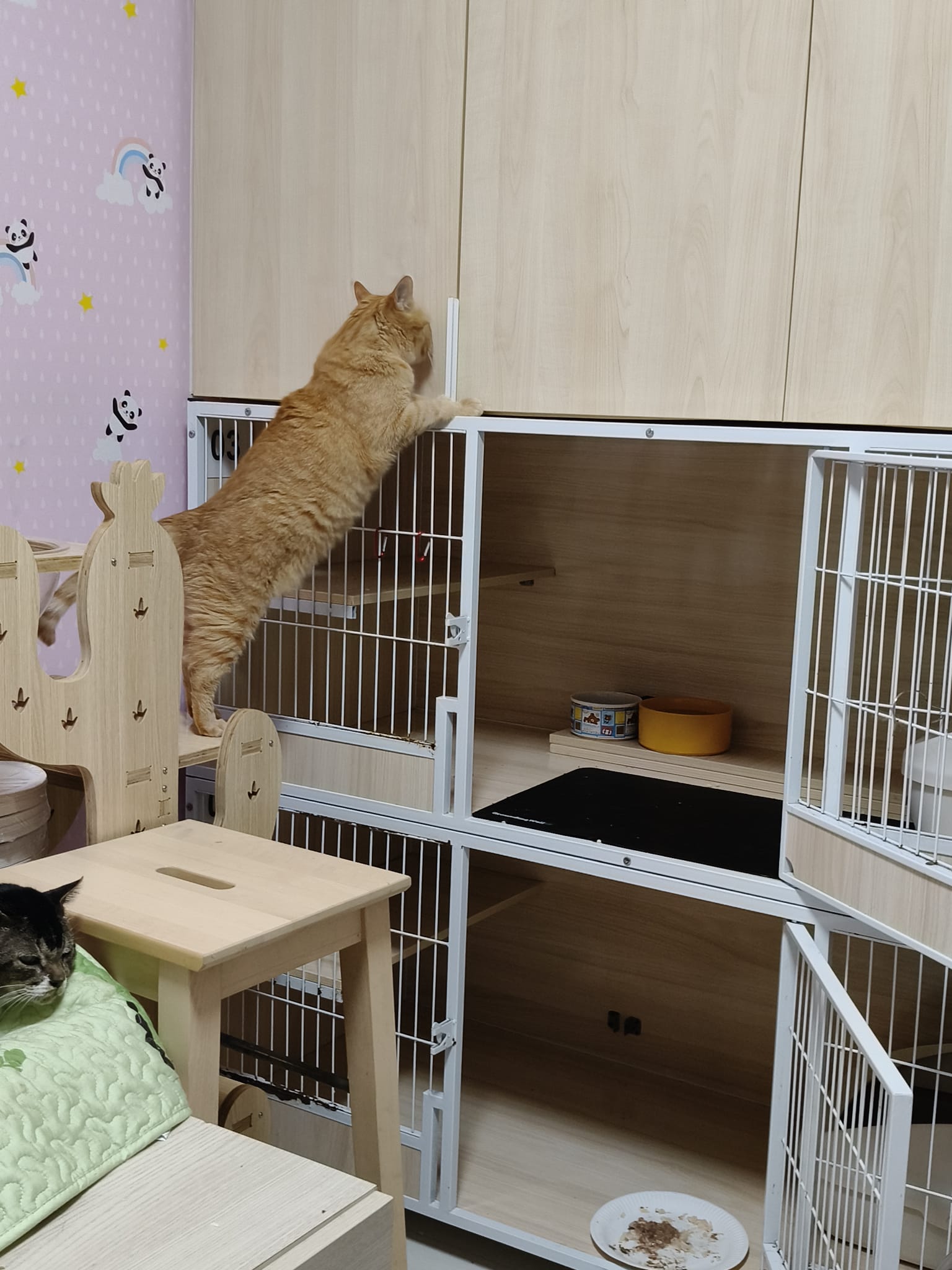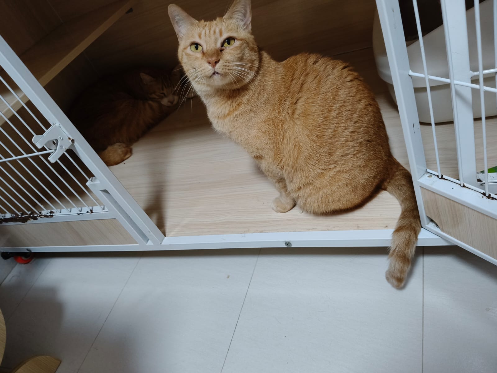 1pm+: I’m back from buying stuff for them, I buy a cute orange cat bowl for her. She is happier nowadays. Will run to both rooms. She is very ok w all the Orange cats. Just now wanna buy tear stain removal for her but no expiry so better not buy.