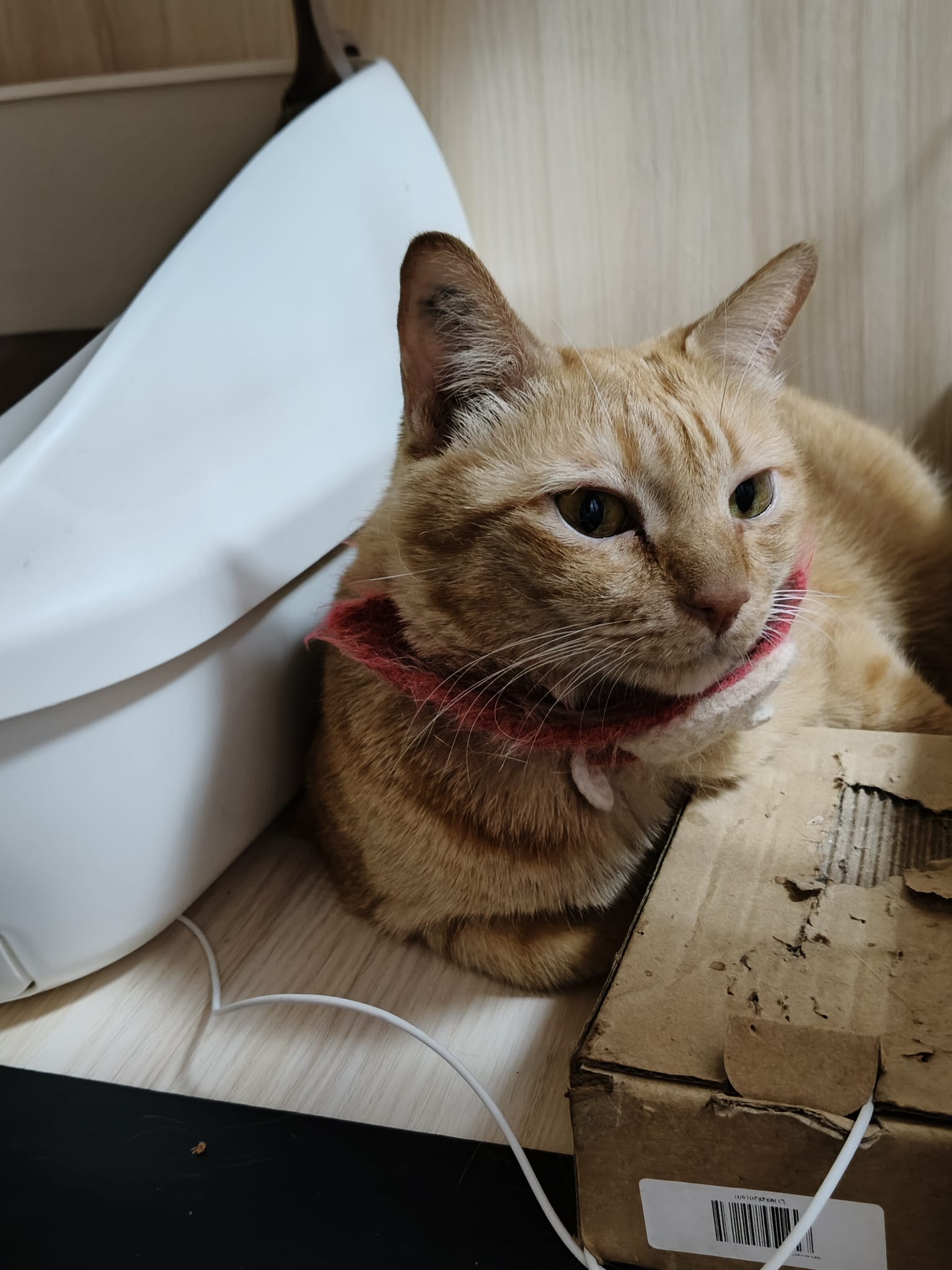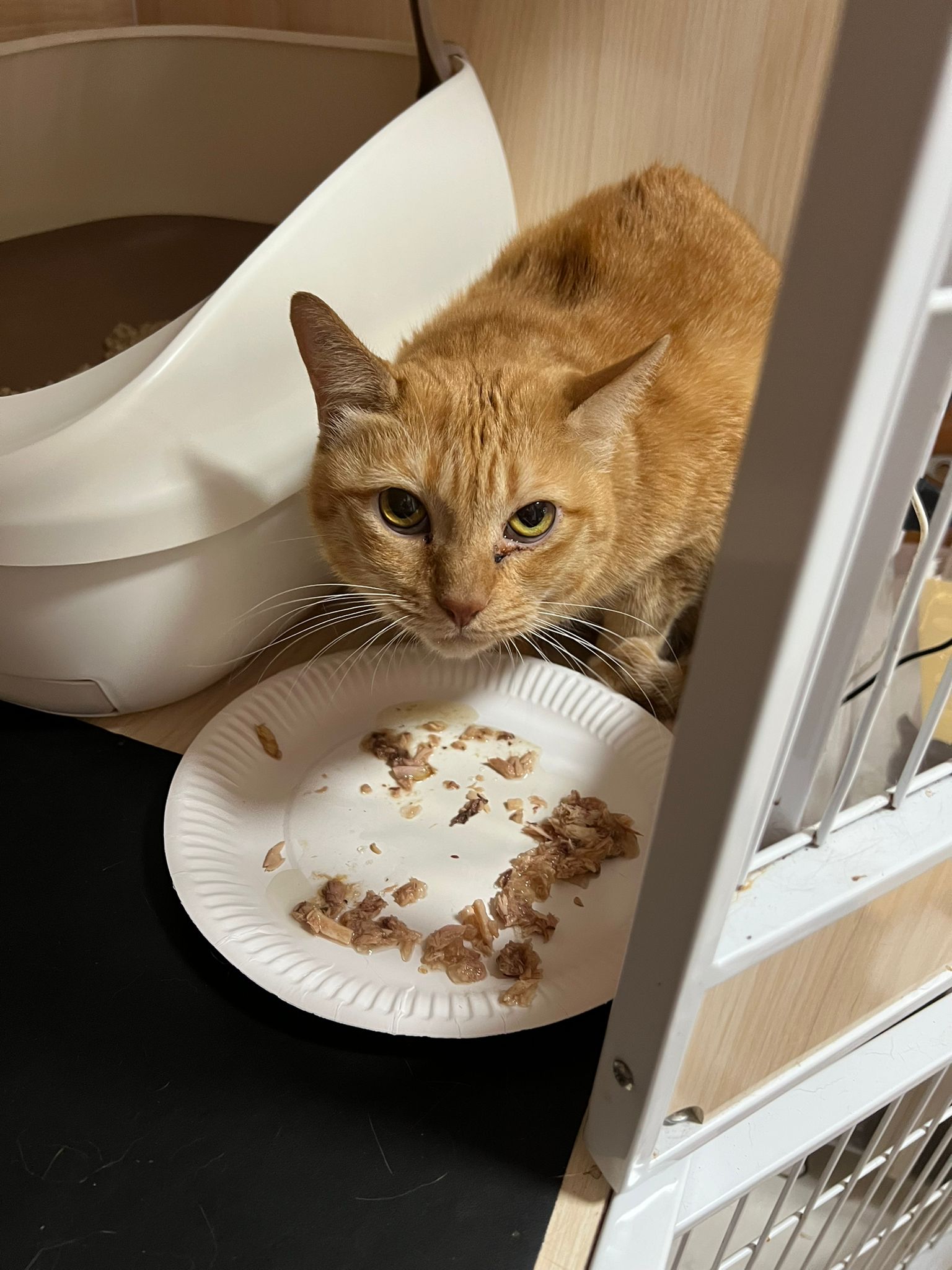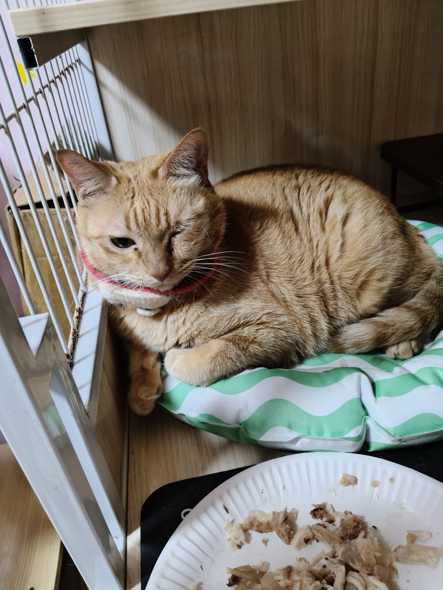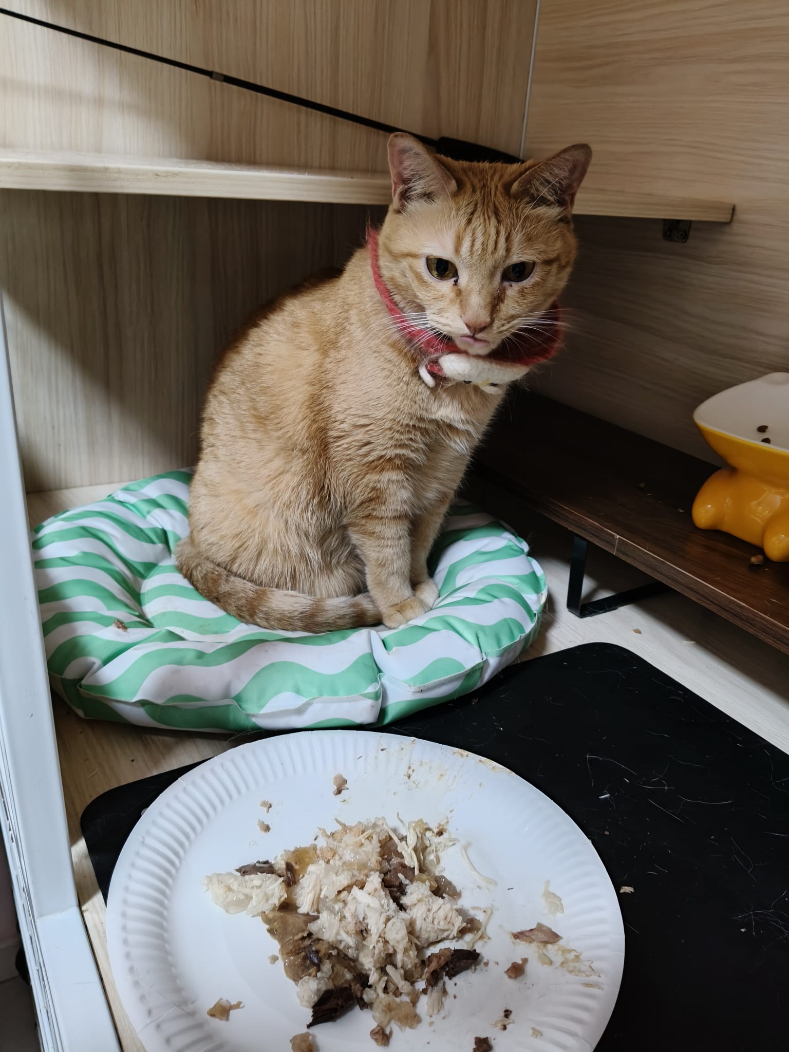 1pm+: I’m back from buying stuff for them, I buy a cute orange cat bowl for her. She is happier nowadays. Will run to both rooms. She is very ok w all the Orange cats. Just now wanna buy tear stain removal for her but no expiry so better not buy.