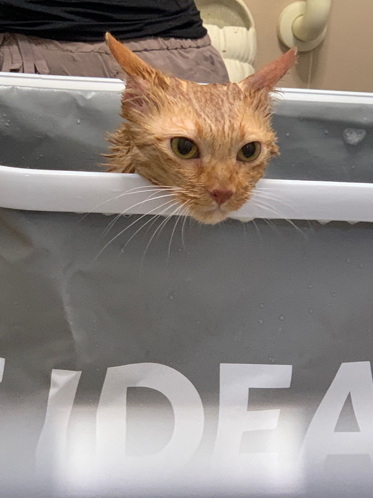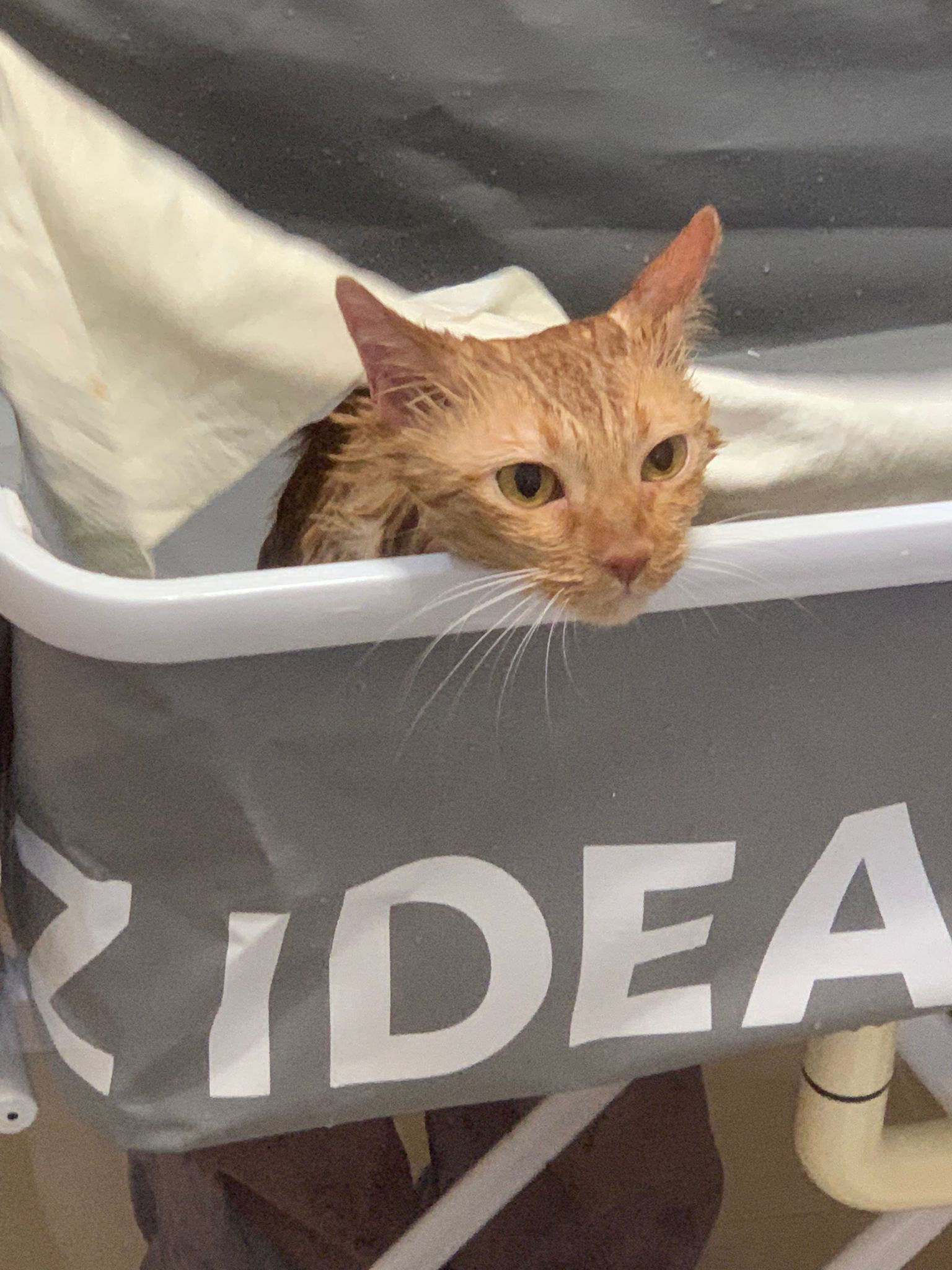 Mummy:”charmander another one. groomer shower all except her. she fight like siao lor. then go hide behind washing machine… liaoz”