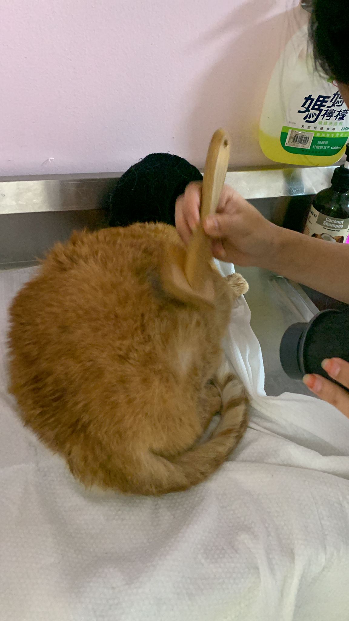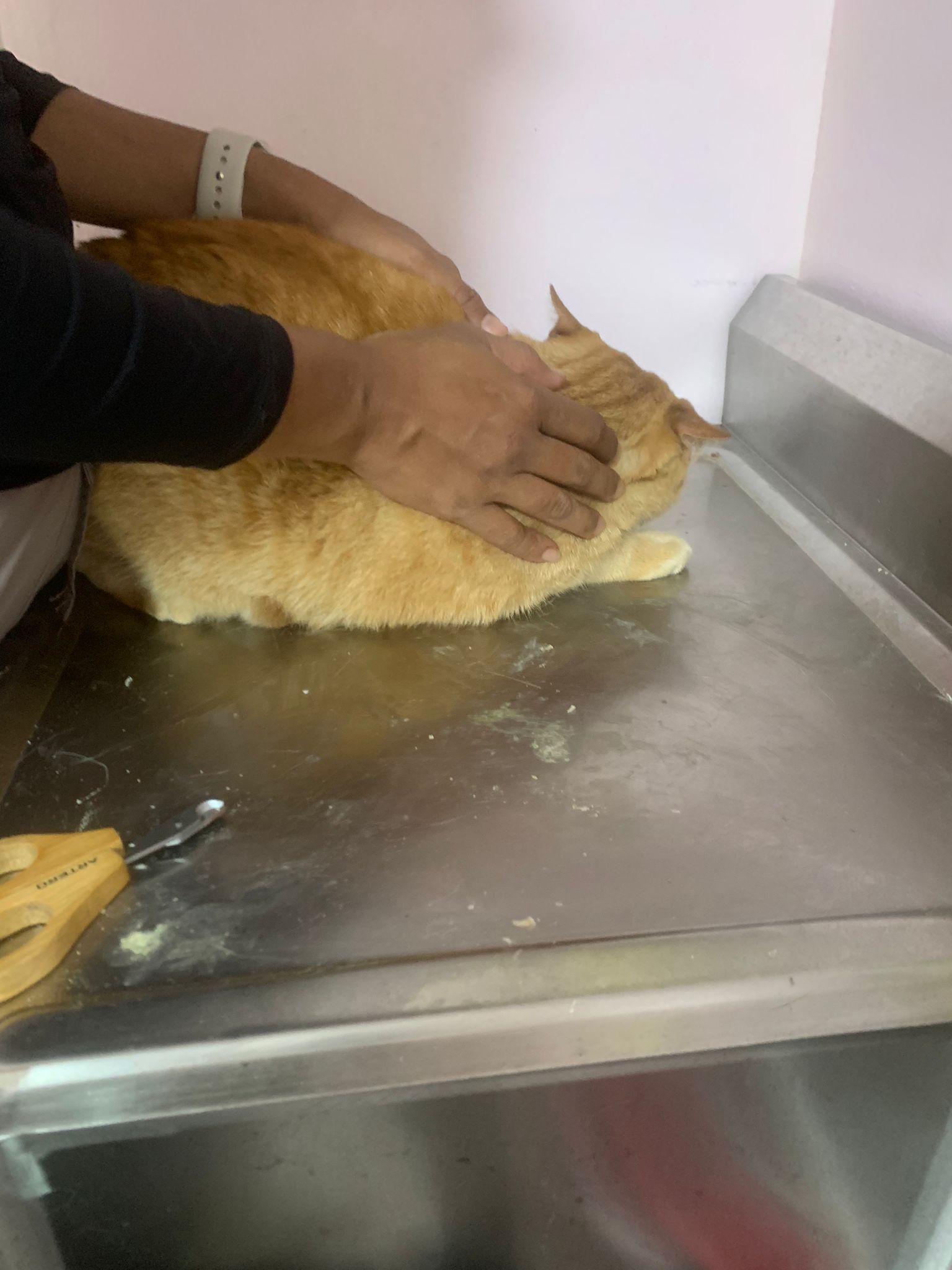 11am+: 2nd cat to groom. Keep growling, never attack pple. Ears a lot of dirt. Nails v long? Duno why the lady keep asking char pain?