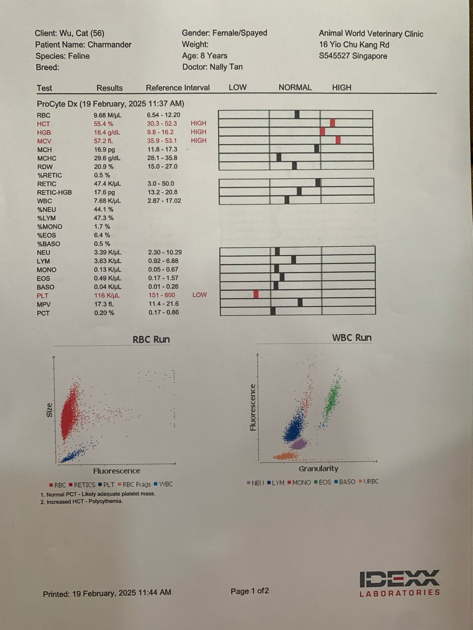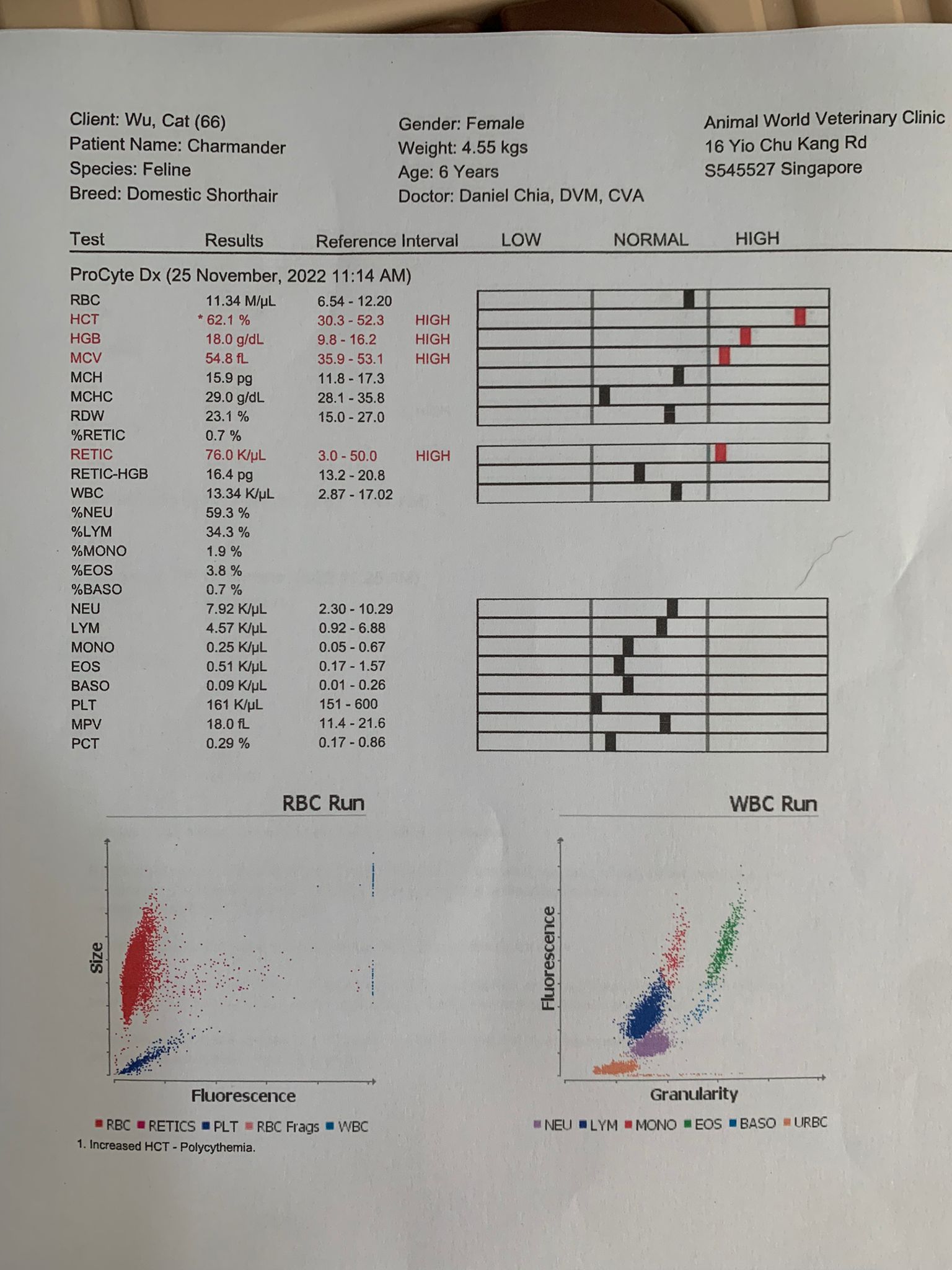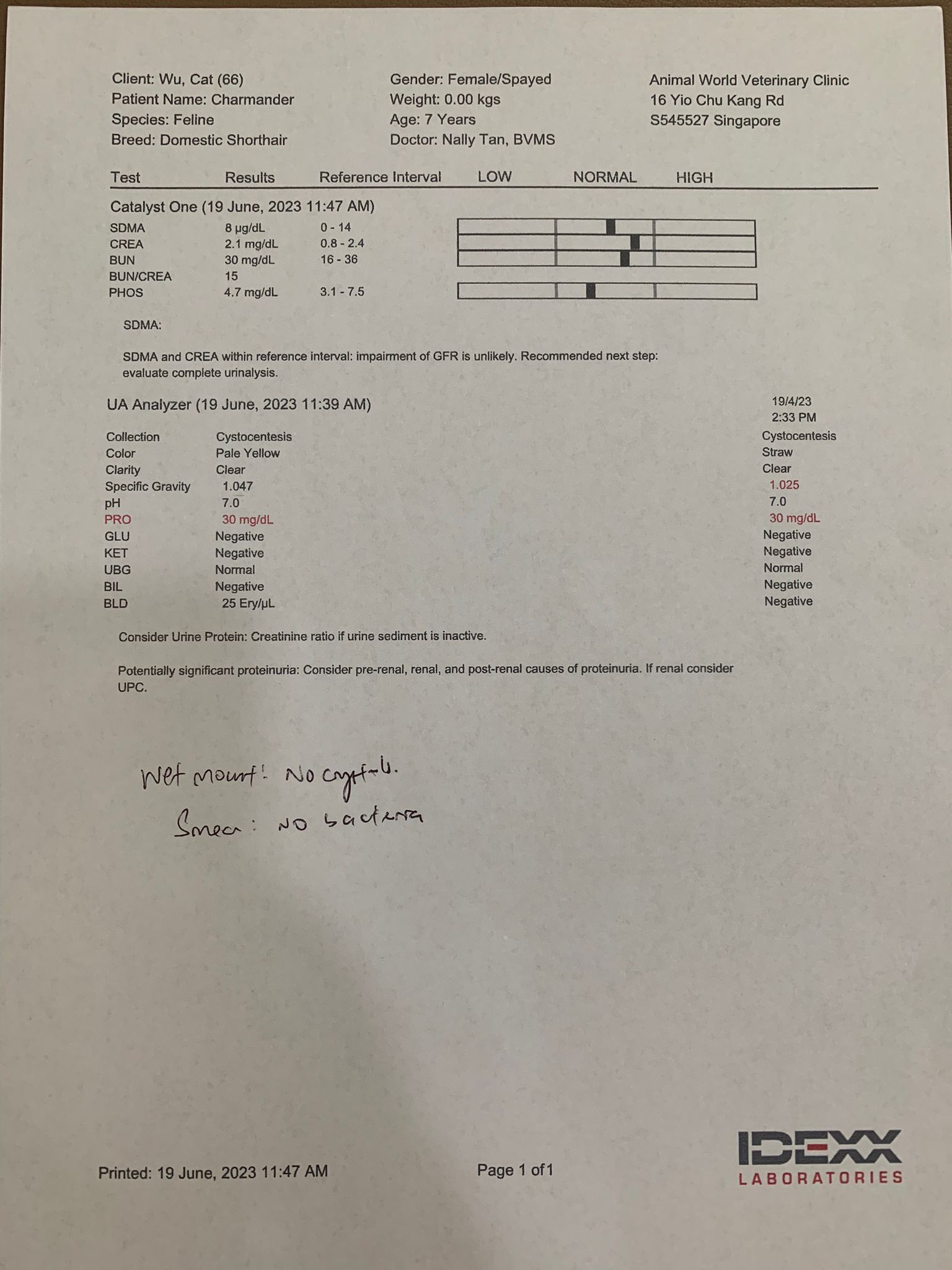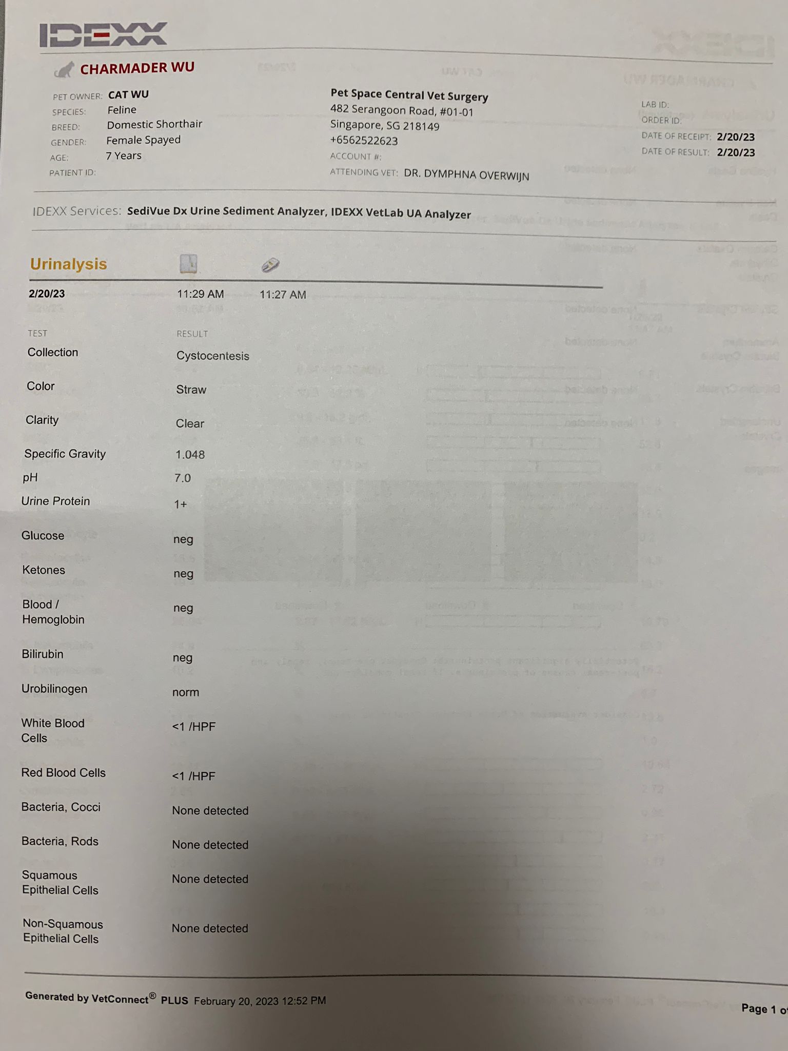 712pm: msg from mummy: “Jialat. Char char peeing blood. She is super stress. I also dunno what to do with her. She doesn’t get along with any other cat. And starts yelling when they go near her. So she is either hiding in the bathroom and behind the washer. She has never stepped out of the kitchen for years. She poops everywhere in the kitchen on top of fridge. In the sink. On the toilet floor. I feel So sad for her lor. She hates Raichu too. When Raichu came back from ur house last time.. They no longer recognised each other liao. She hissed at raichu. So Raichu just went and mix with the rest.I have cleaned pee blood at least 6 times today. I didn’t hear her gagging. She seems fine. Not listless.See la. I keep calling Raichu to come see her sister. She totally ignore me. Poor char char. Eating very well. She eats 2 cans of wet food every morning. And kibbles throughout the day. Regular poo also OK. Has been solid before today. Today stool very soft and mushy.” – fr video char is dehydrated and the amount of blood and frequency, extreme high chance of UTI. Just need to see vet to have the factual checks and most prob is start Clav and see what else. confirm need to Subcut. Mummy is busy Tmr so I Booked dr Daniel cos don’t think can drag till sat.