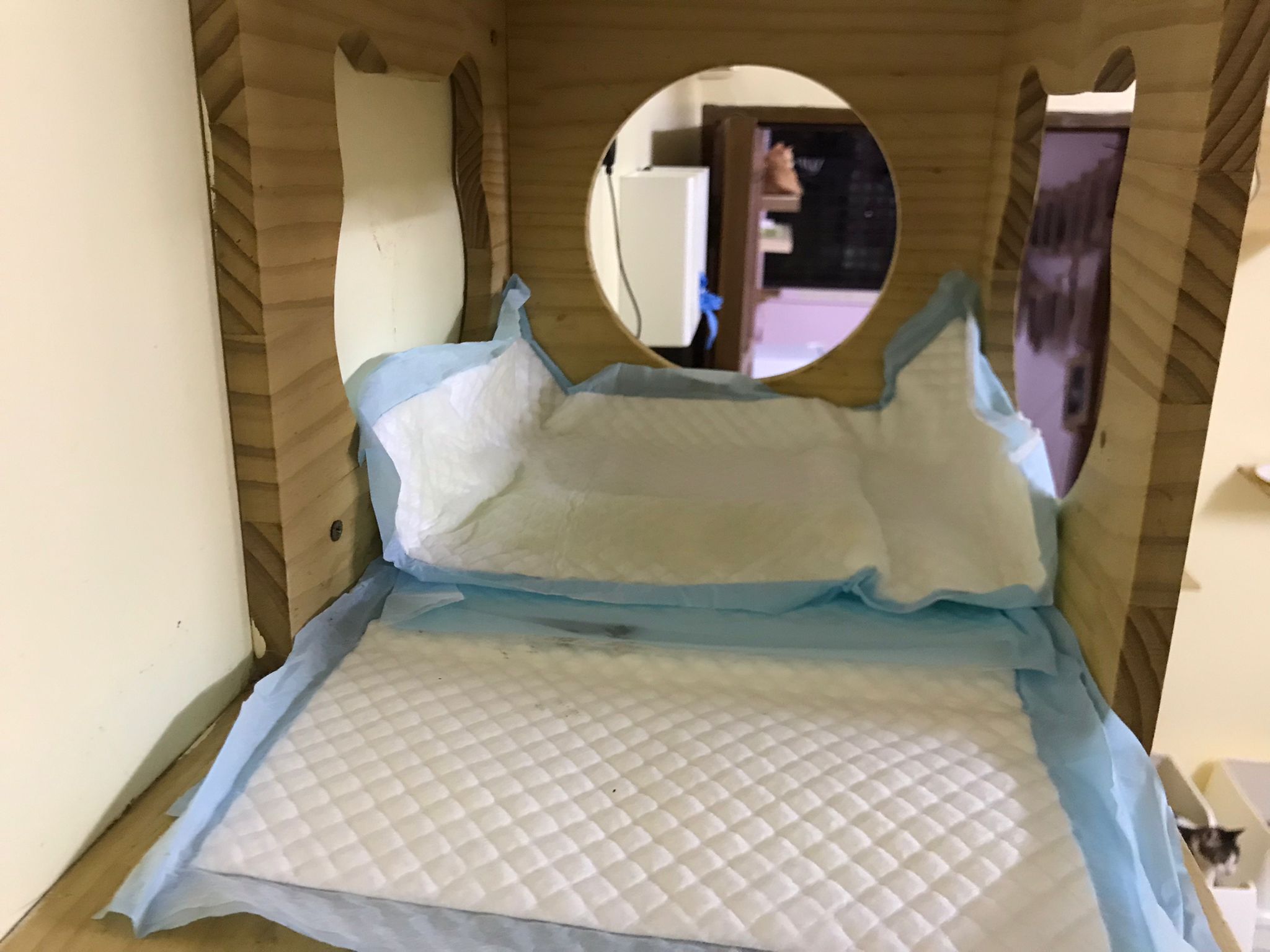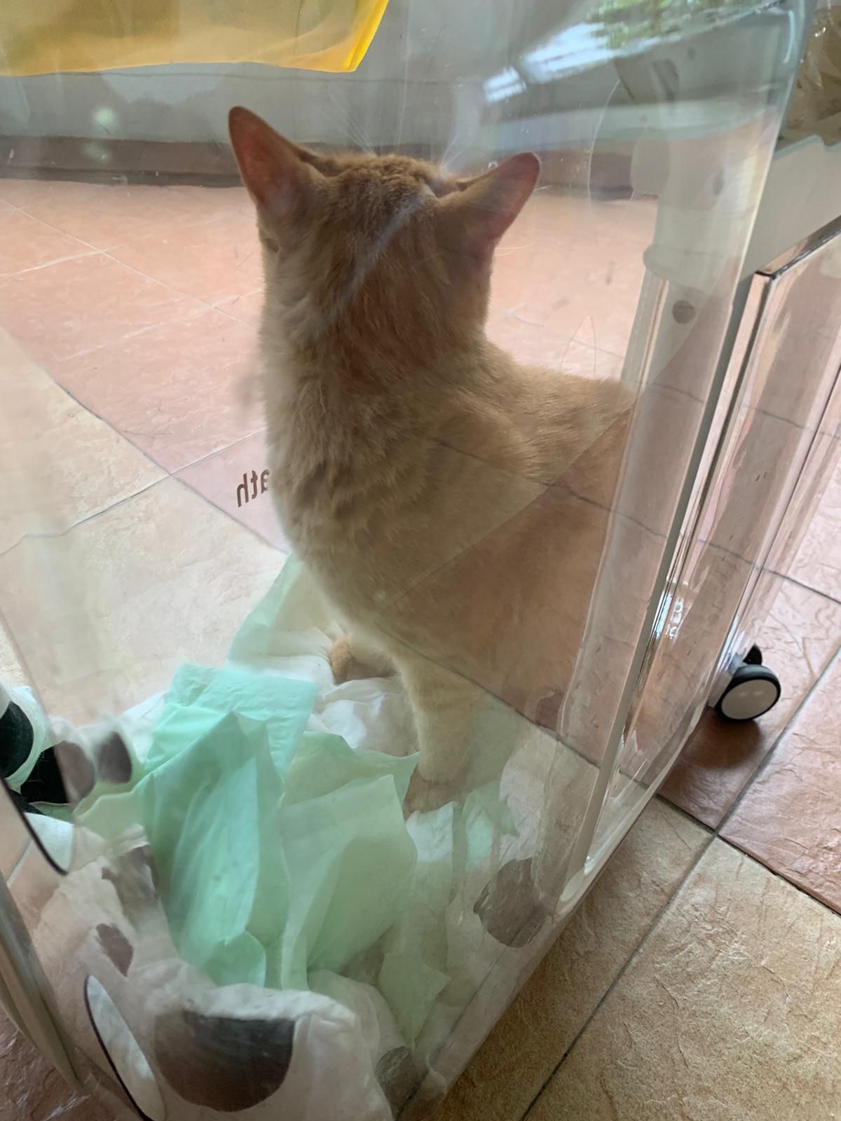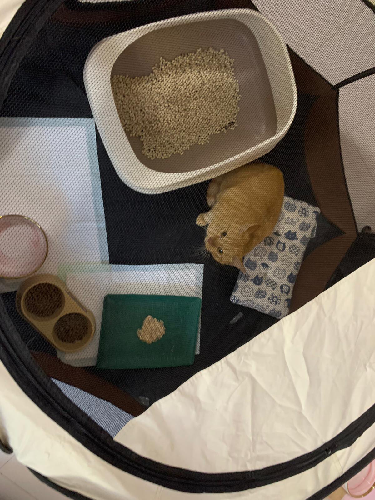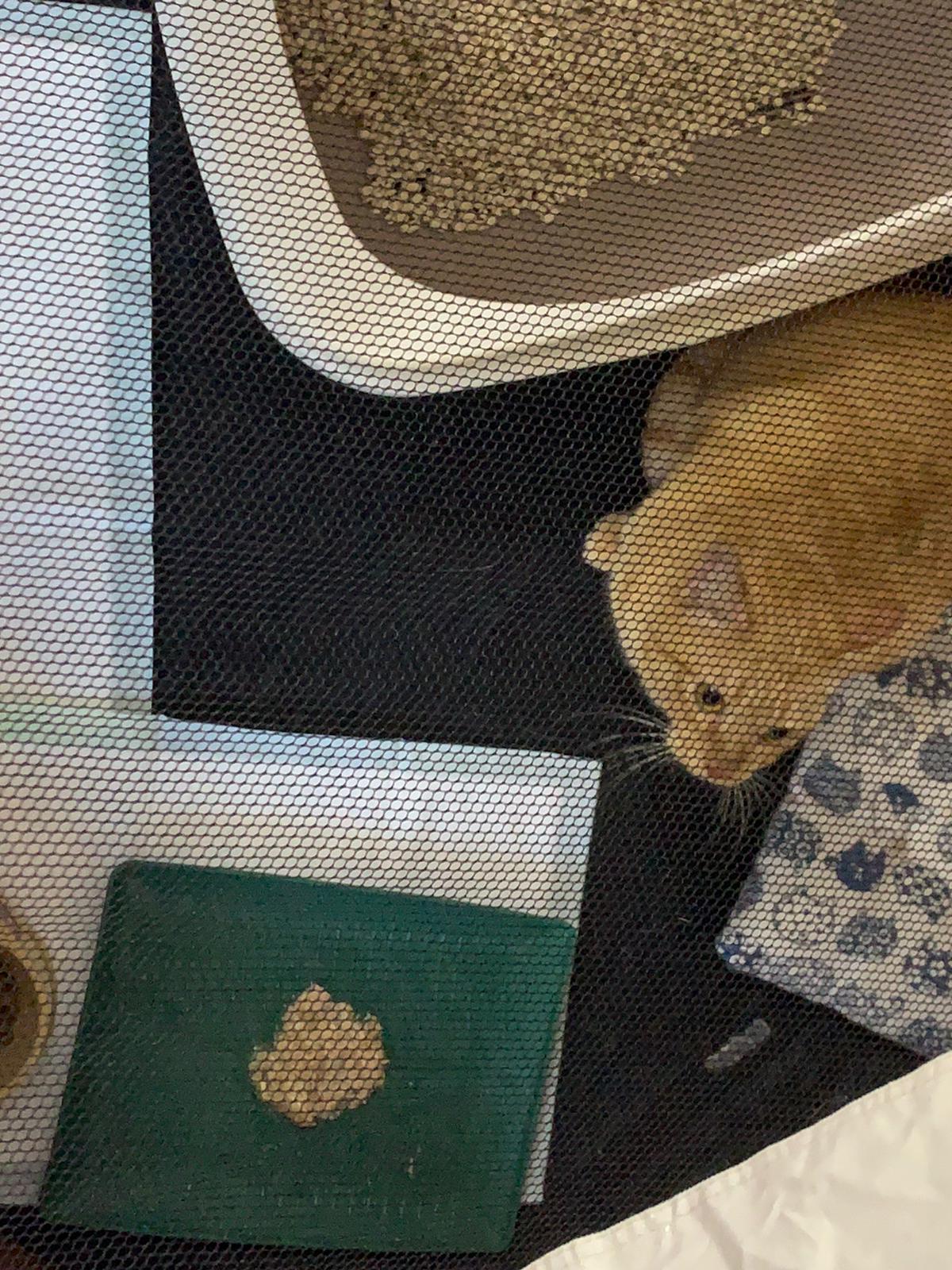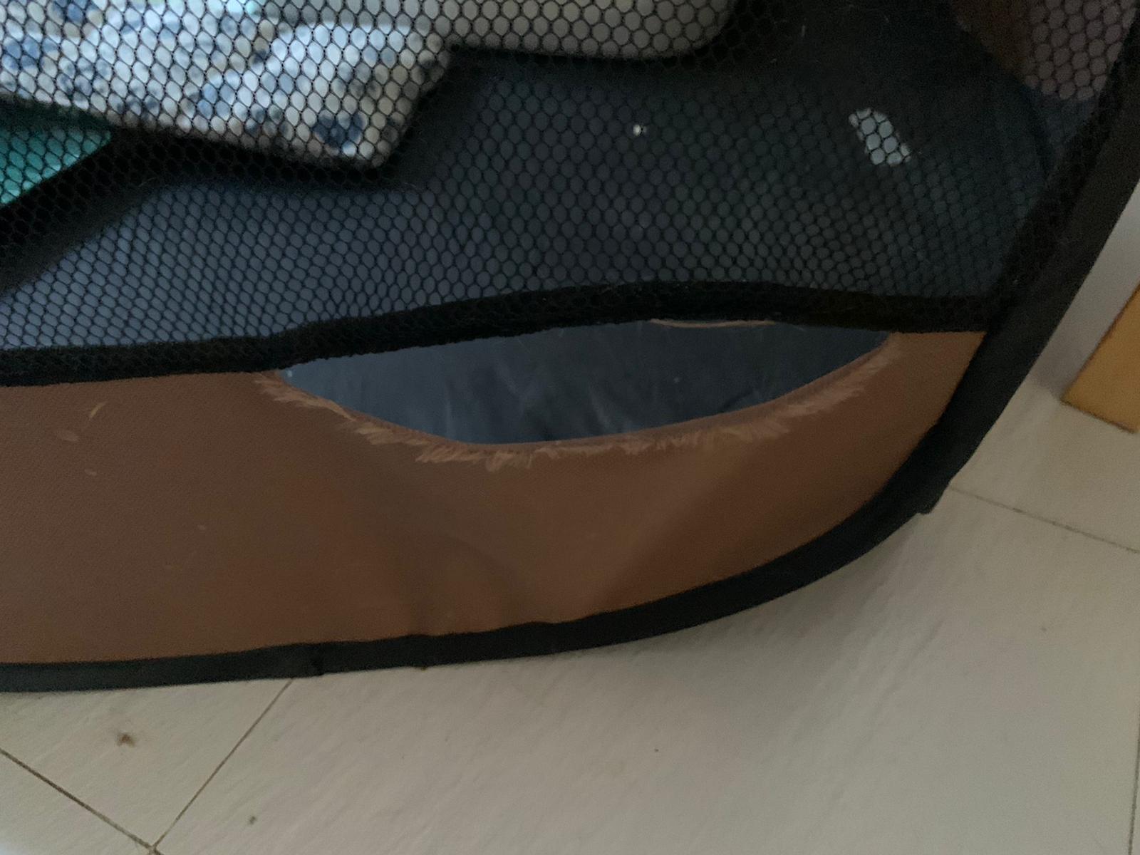Checked the bin, no new pee, no poo, don’t know what time she torn the hole. No time to check Ip yet – checked she is alr out at 2am plus. Wa so violent so skillfully torn a hole to escape so fast. Lucky is soft tent, sure no injury.