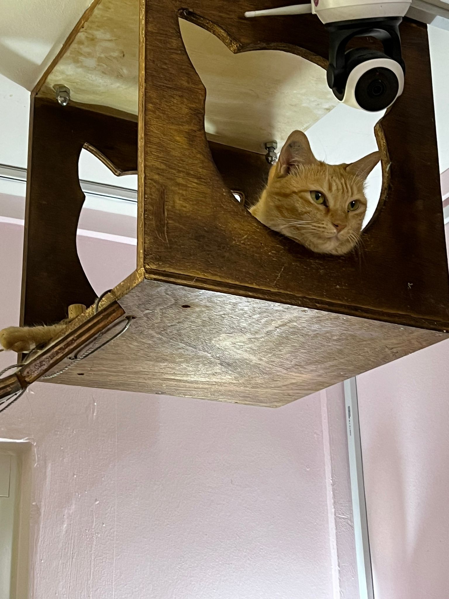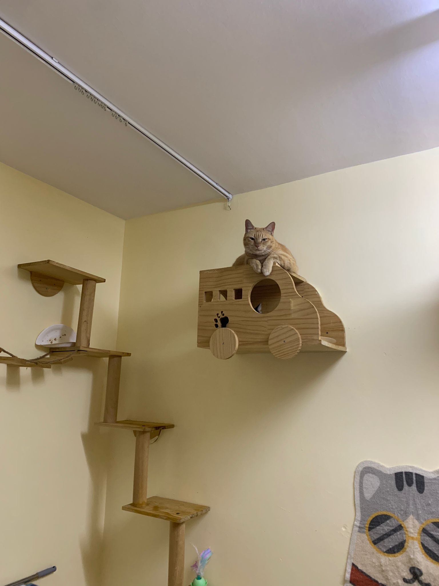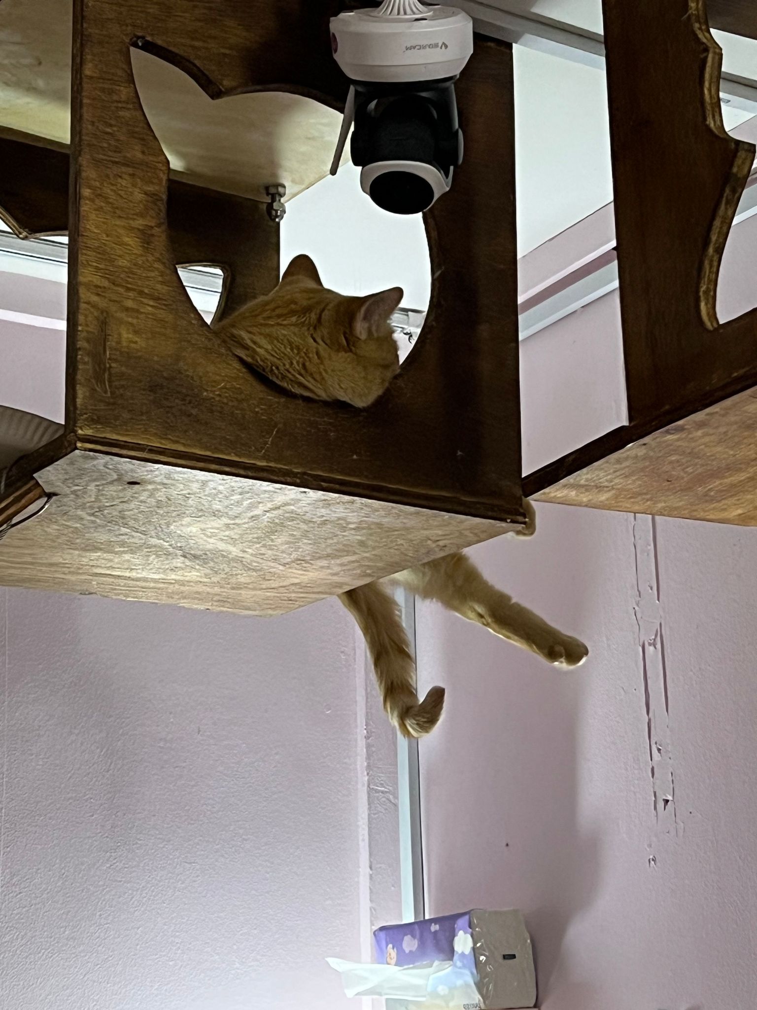1pm: reach 猫房 4G hospi room, she go up the hanging bed see birds.