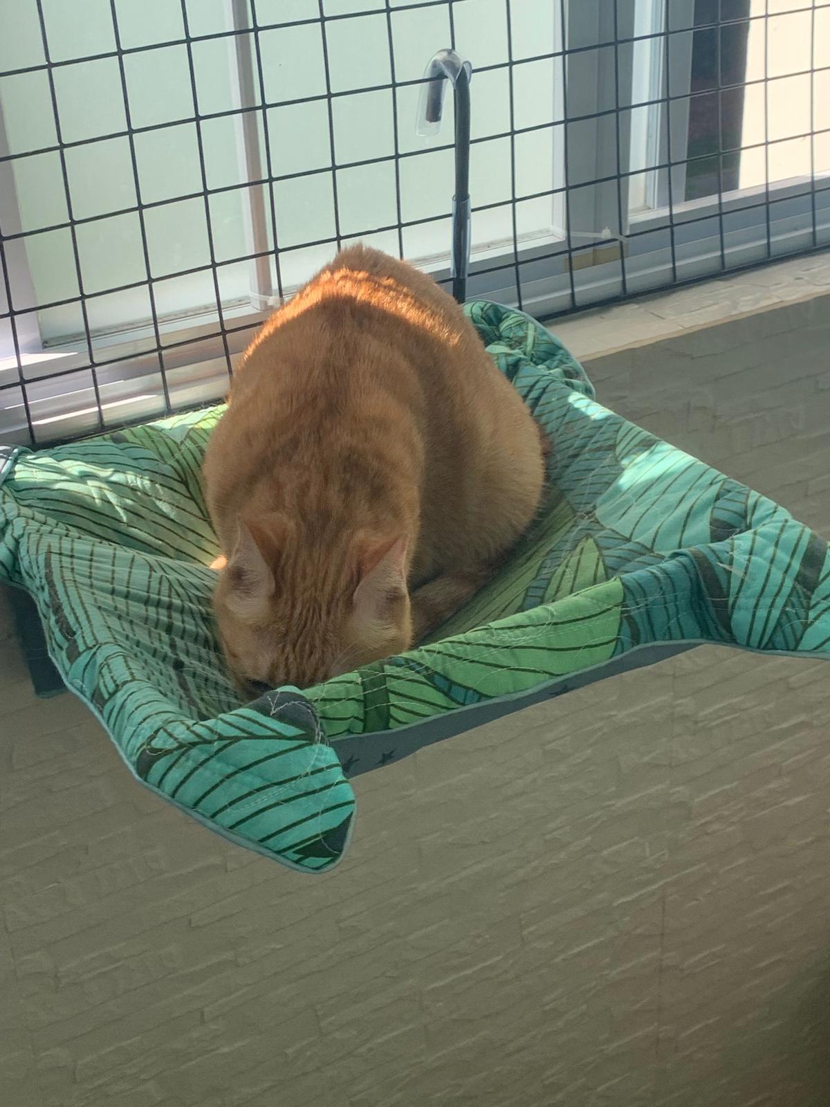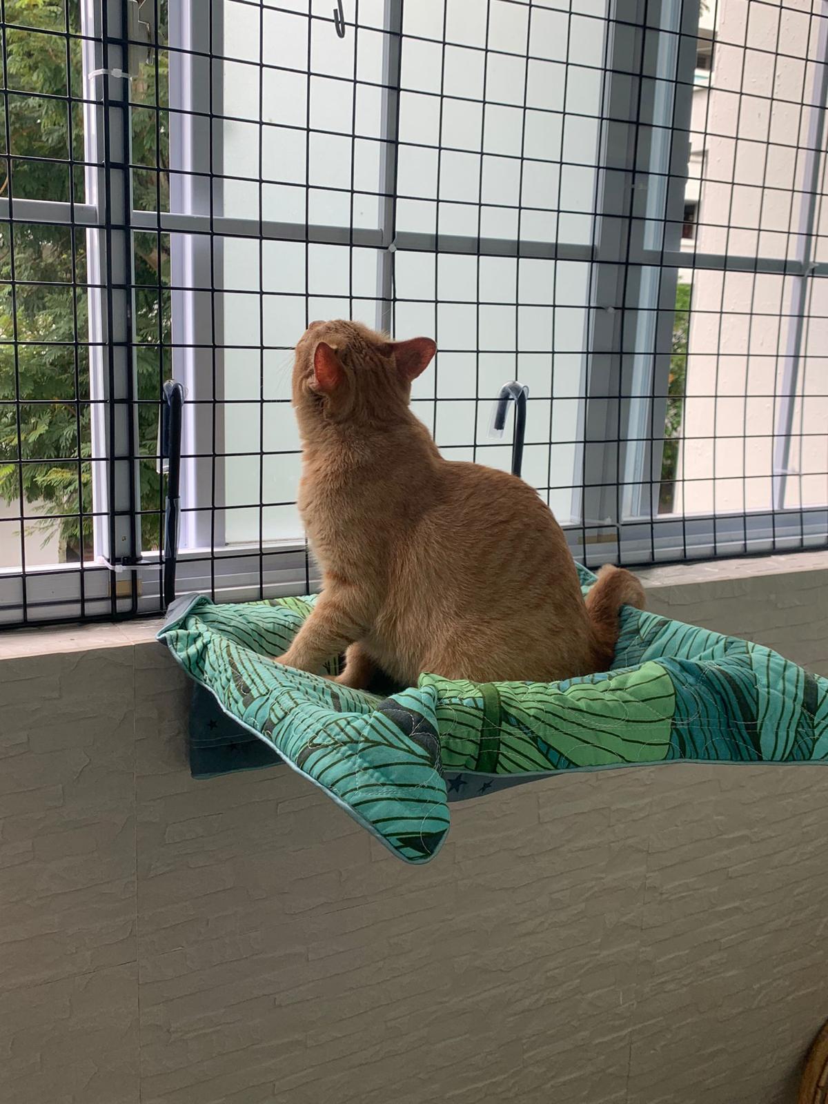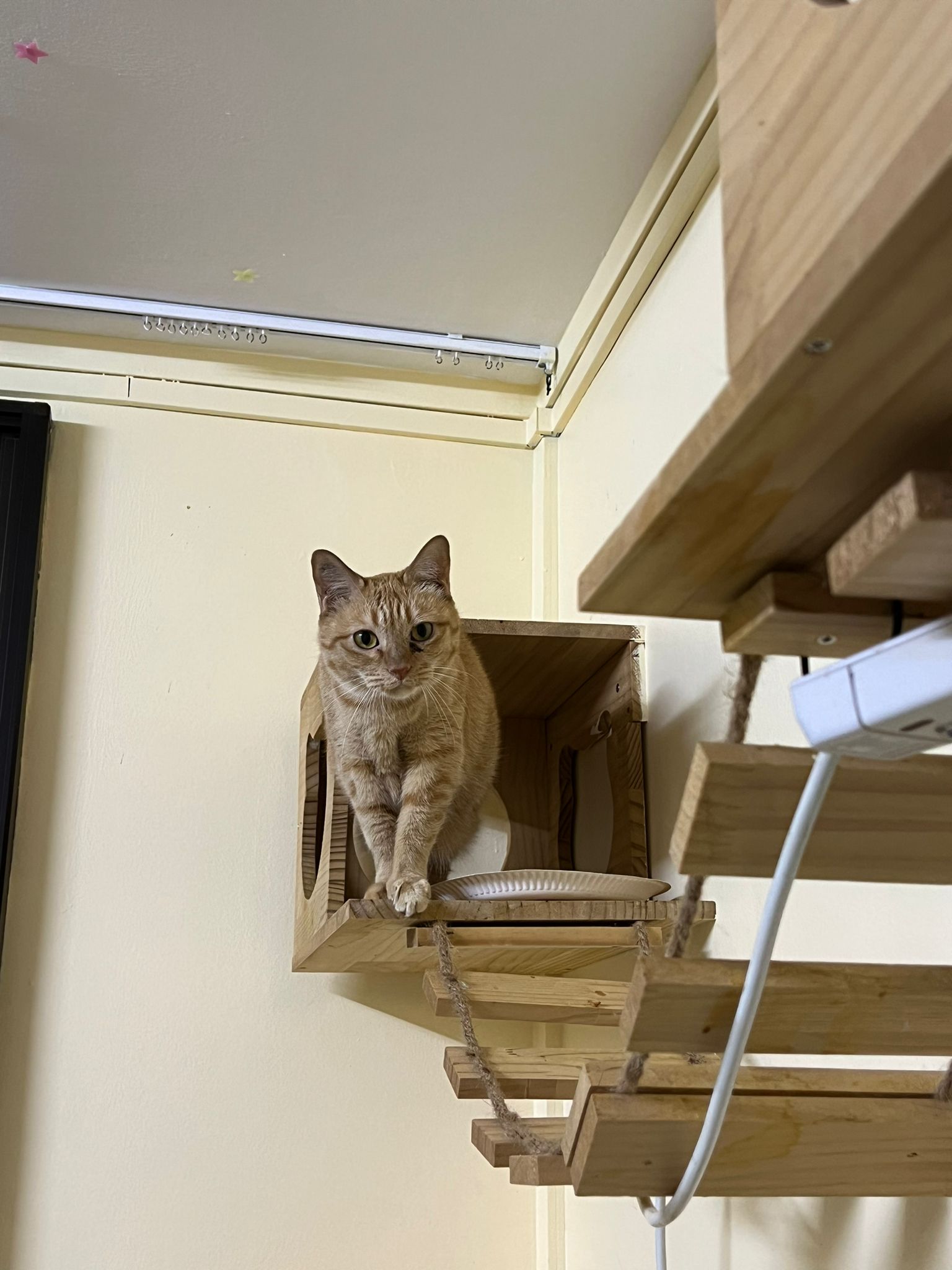 1pm: reach 猫房 4G hospi room, she go up the hanging bed see birds.