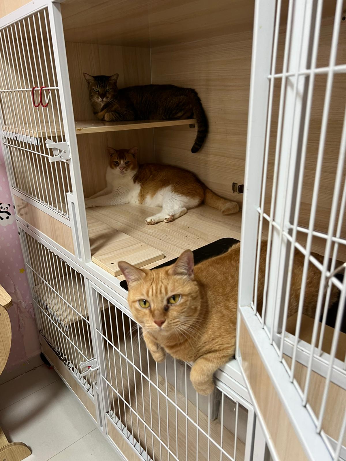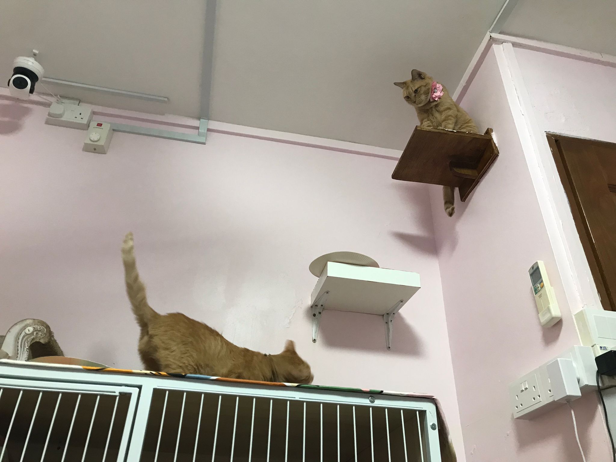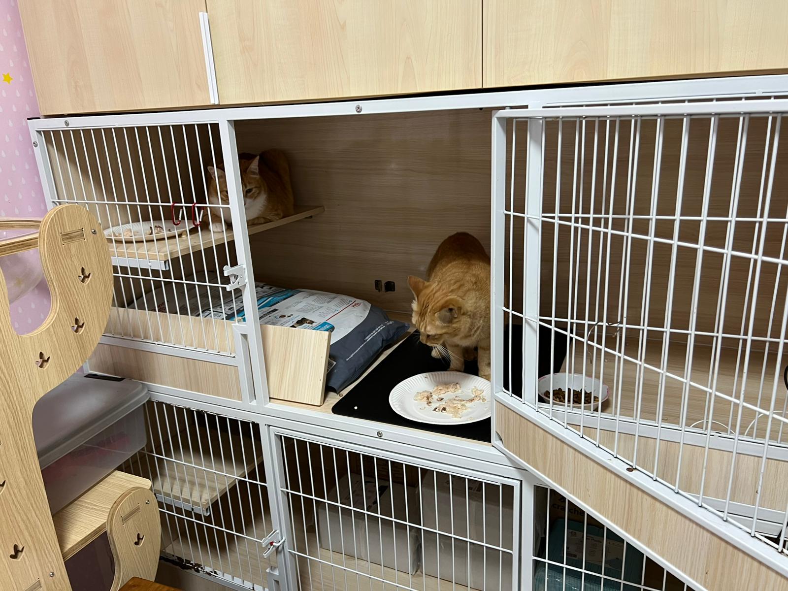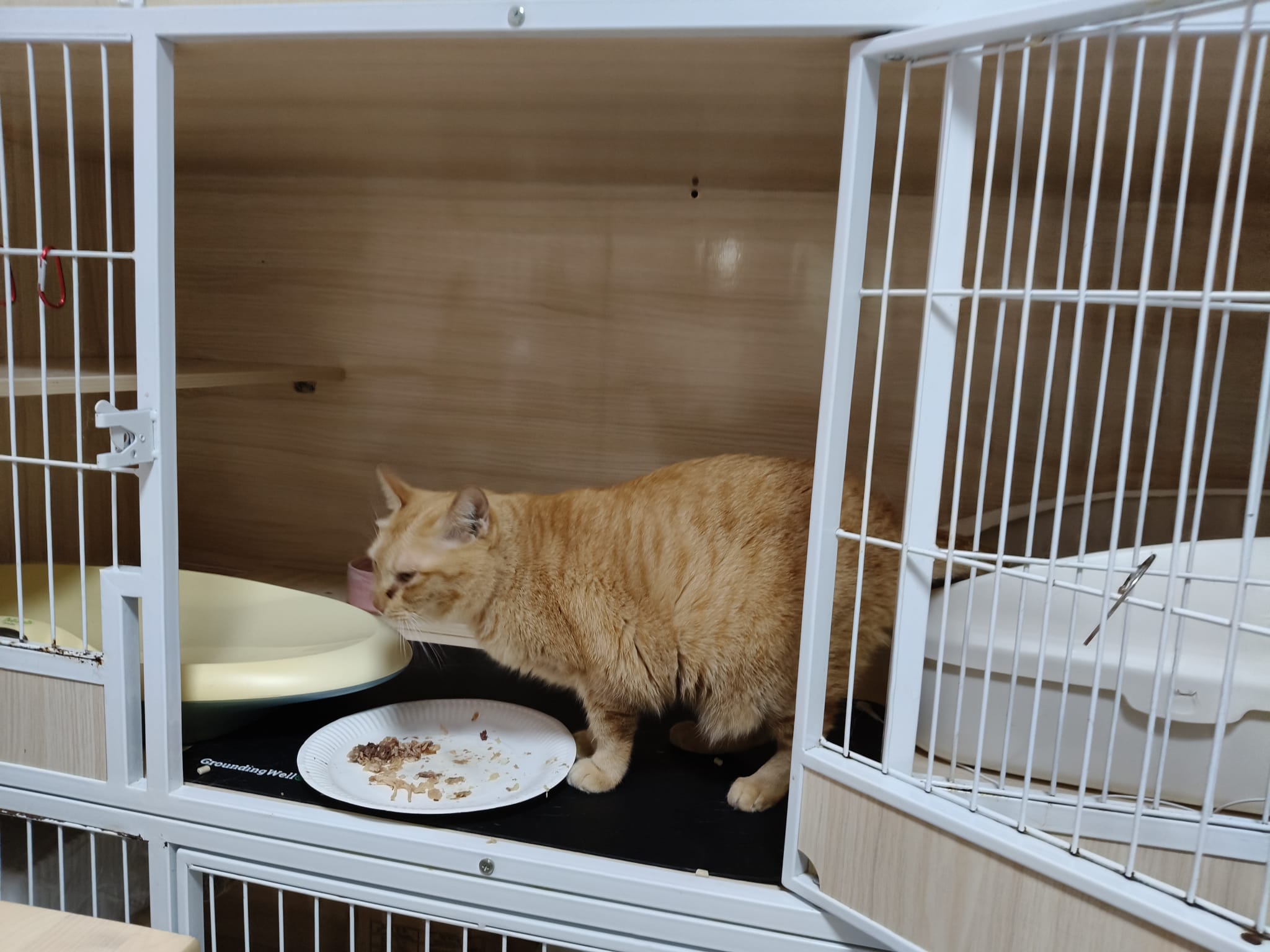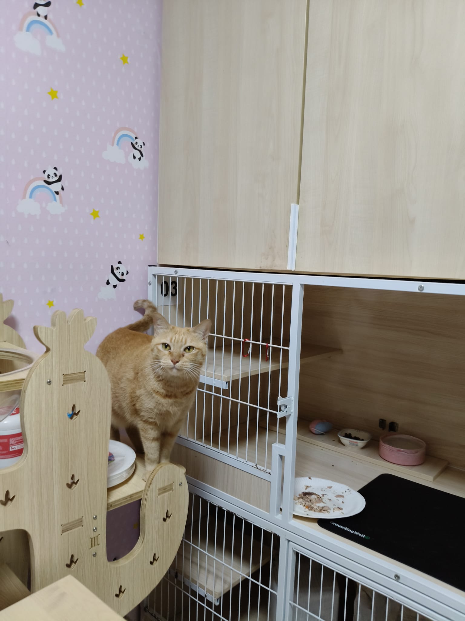 8am+-2.35pm: I’m a happy mao today. I stay in 猫房 for so long. Today all the cats staying in the food room for safety air reason. Cos new room need through and proper clean up first. I carried char to the cage and she had been there n quite ok w Teddy ard. boy didn’t disturb her as much cos so many of them in the room. She still active when it’s food time