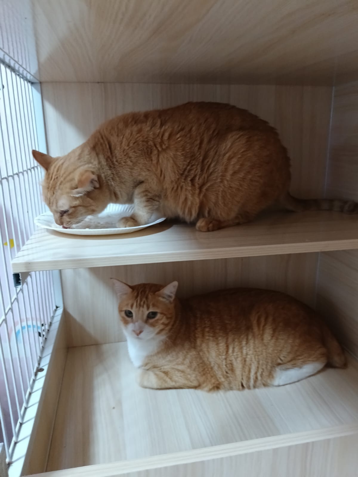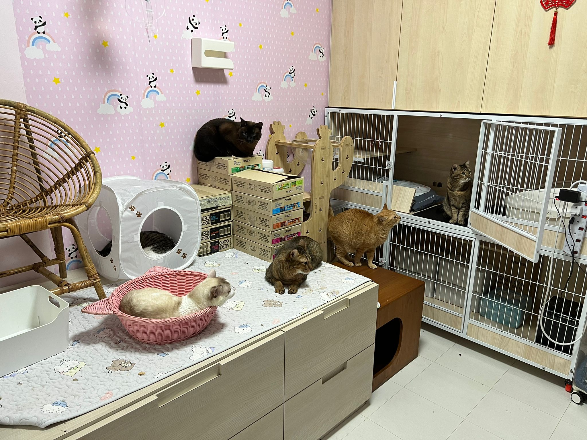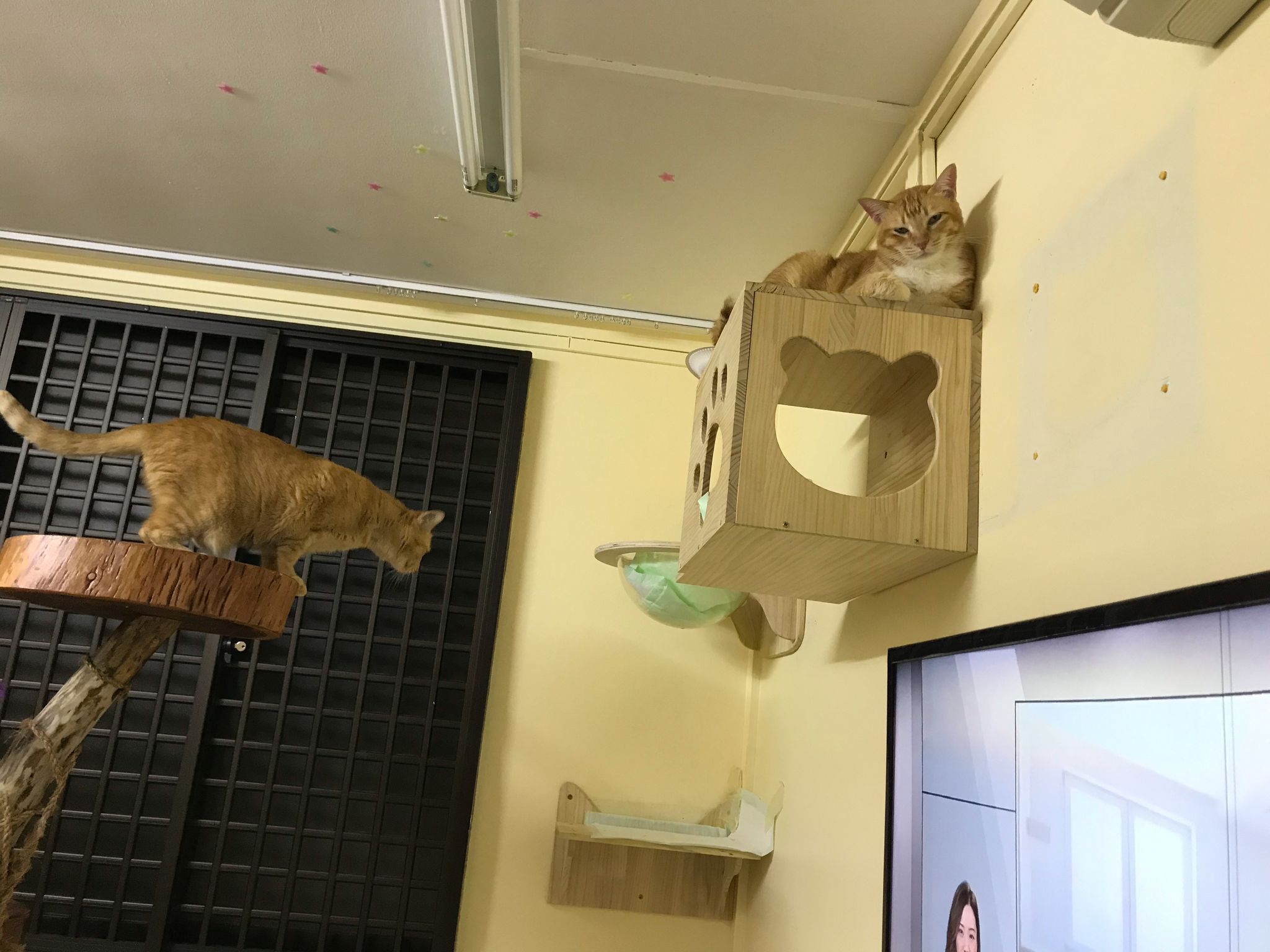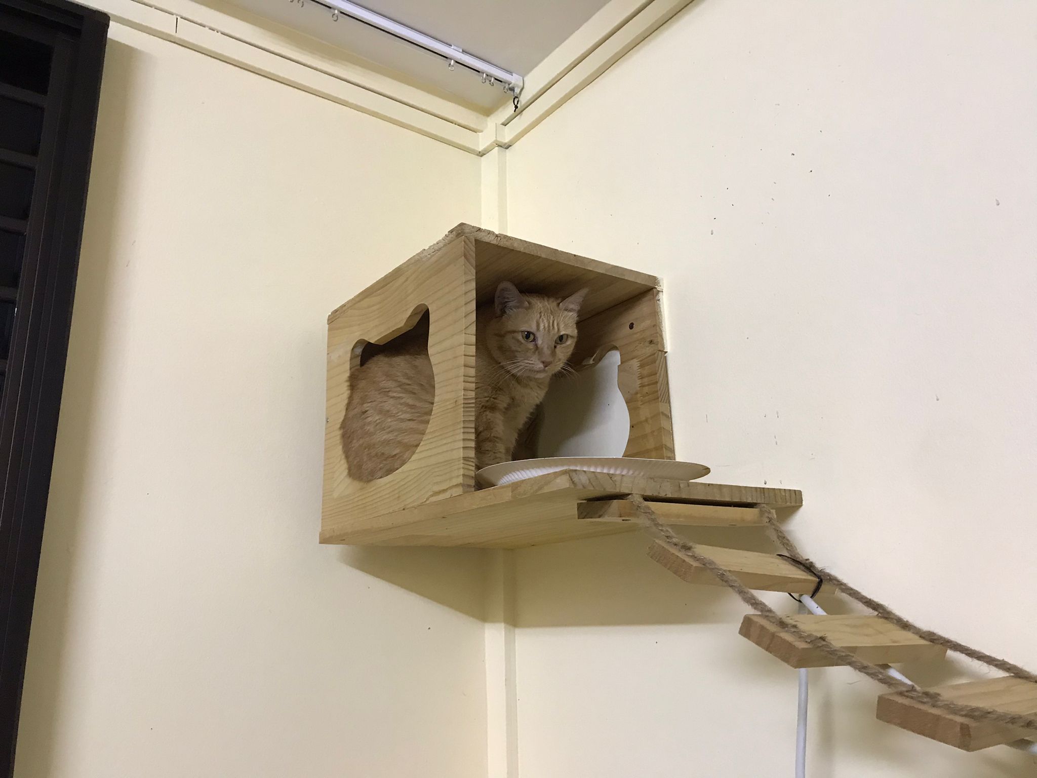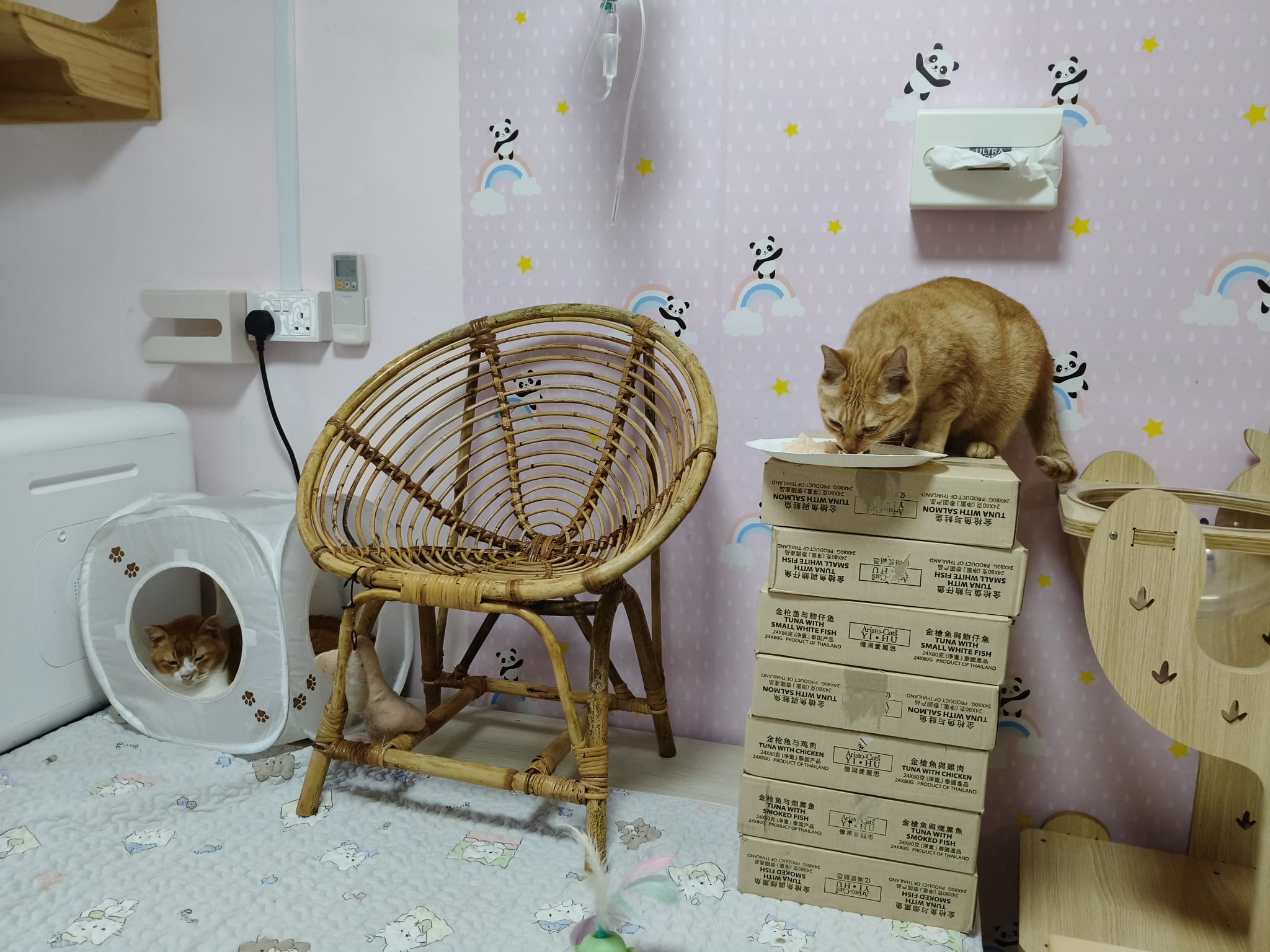 8am+-2.35pm: I’m a happy mao today. I stay in 猫房 for so long. Today all the cats staying in the food room for safety air reason. Cos new room need through and proper clean up first. I carried char to the cage and she had been there n quite ok w Teddy ard. boy didn’t disturb her as much cos so many of them in the room. She still active when it’s food time