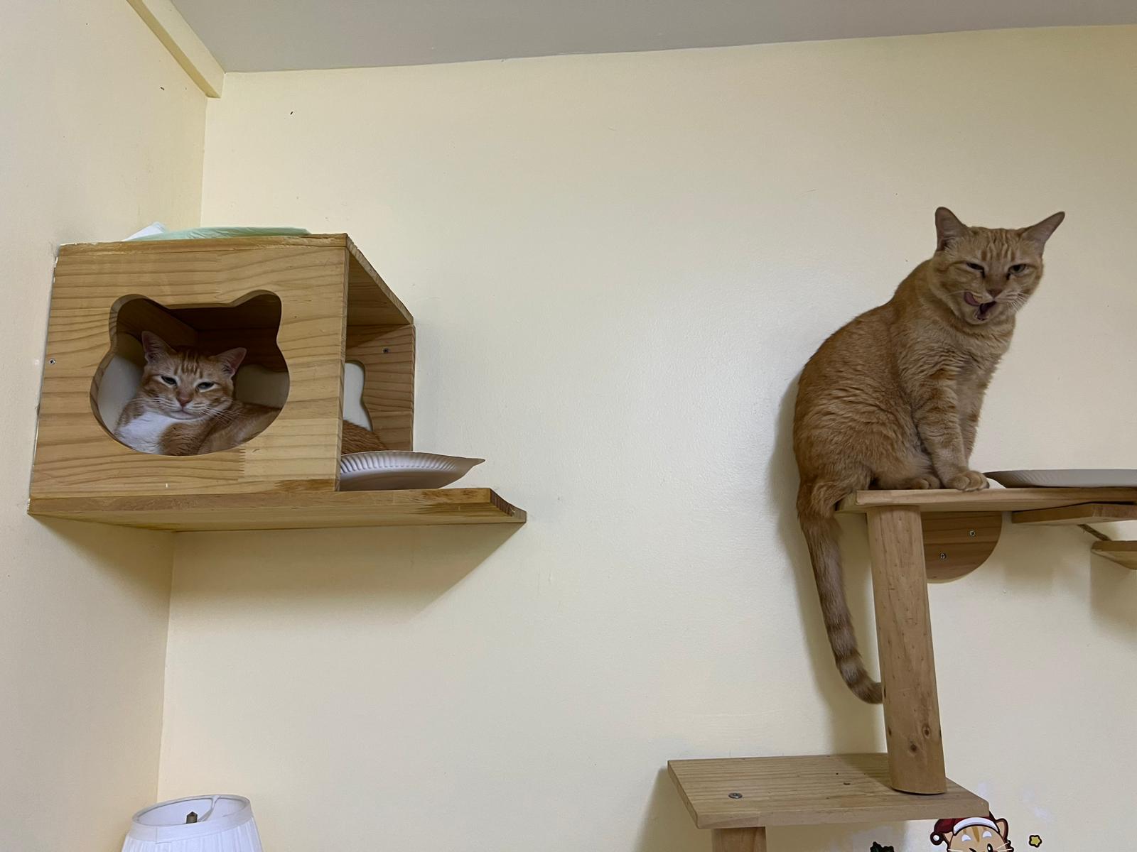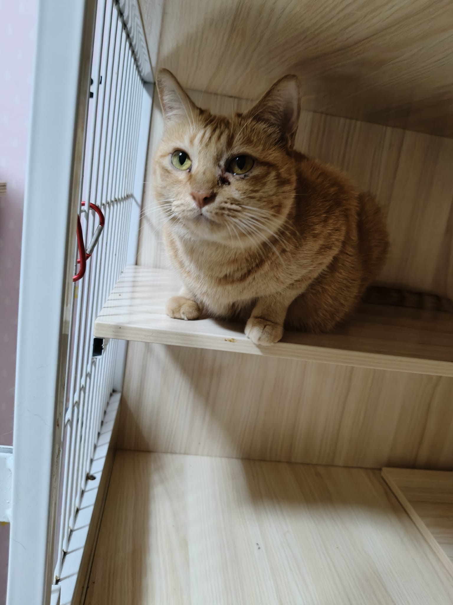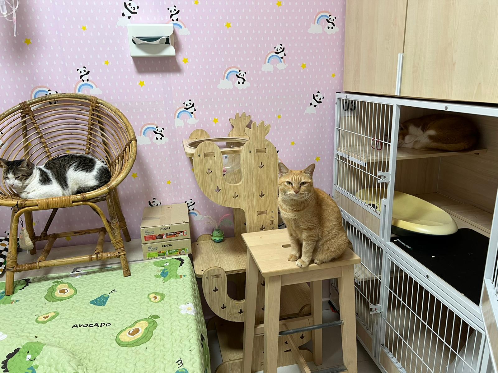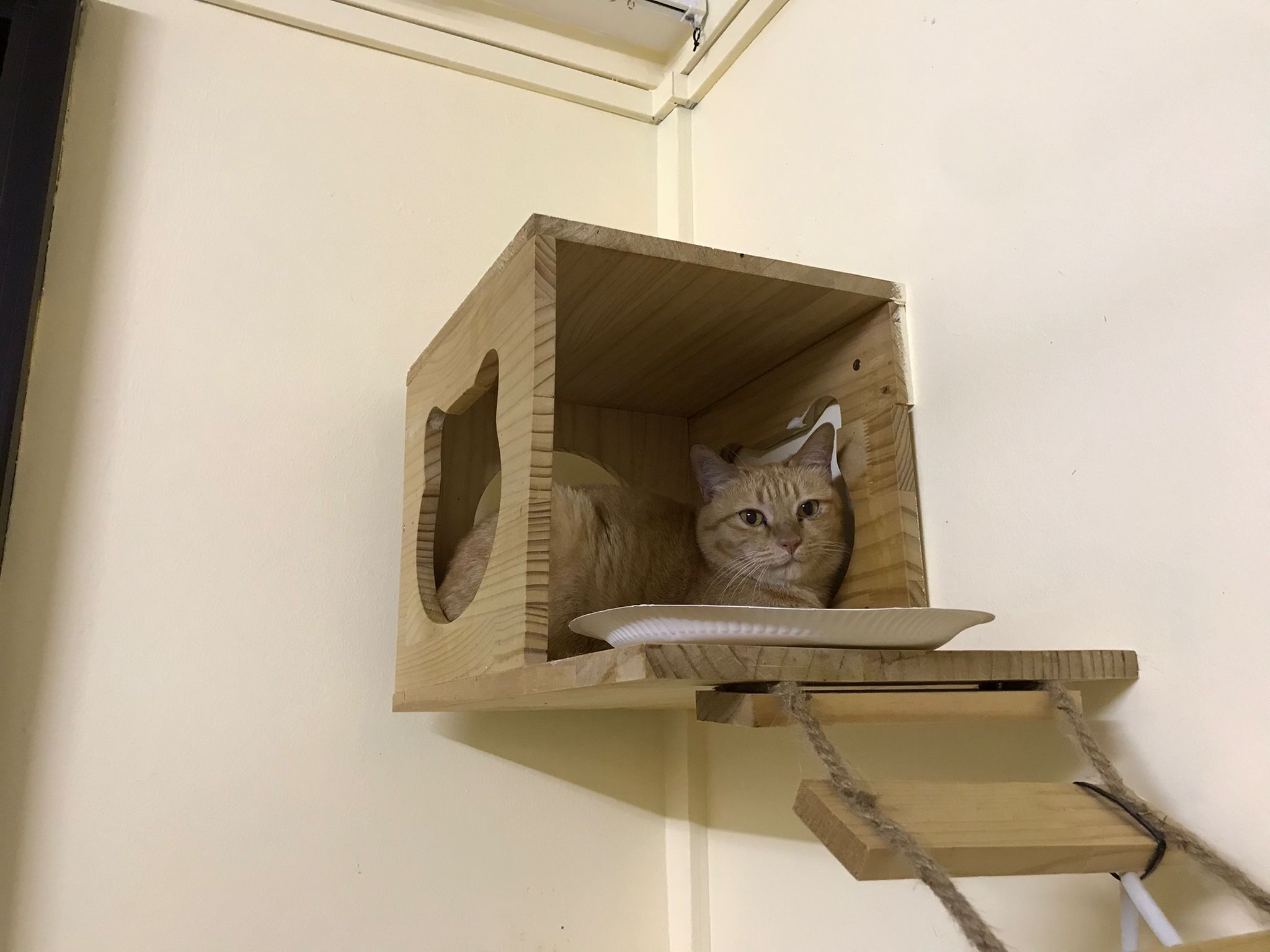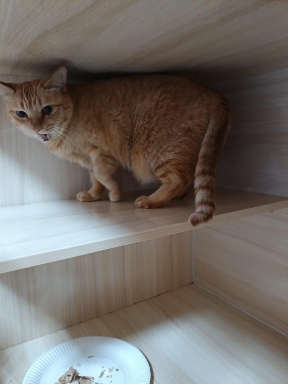 8am+-2.35pm: I’m a happy mao today. I stay in 猫房 for so long. Today all the cats staying in the food room for safety air reason. Cos new room need through and proper clean up first. I carried char to the cage and she had been there n quite ok w Teddy ard. boy didn’t disturb her as much cos so many of them in the room. She still active when it’s food time