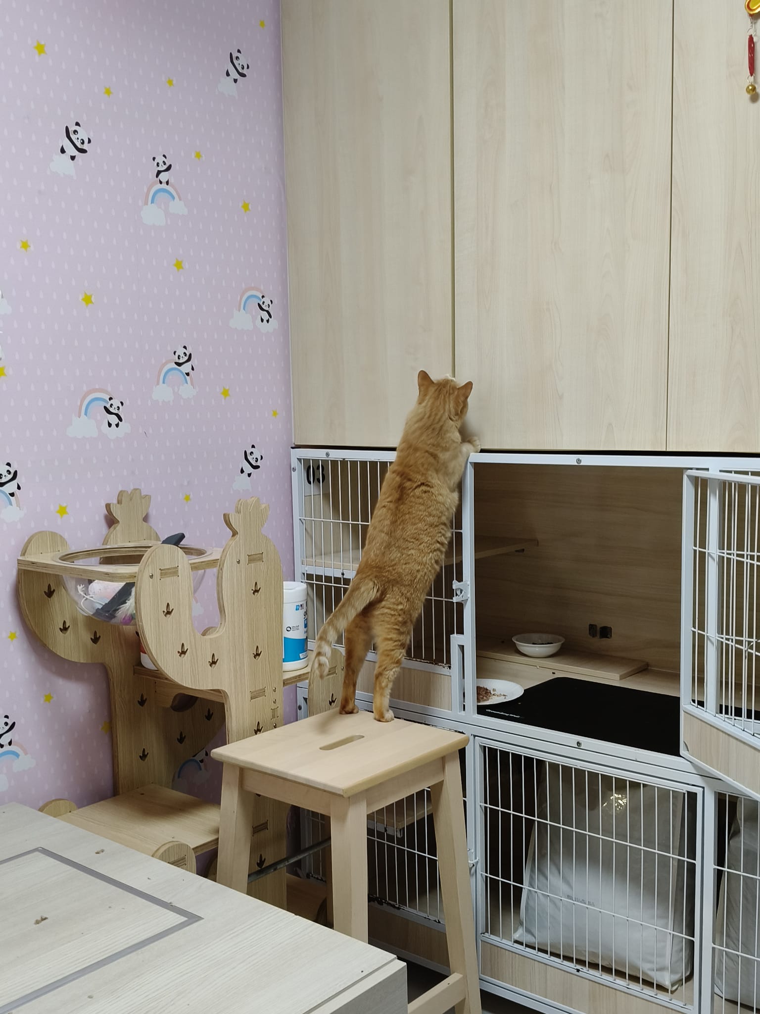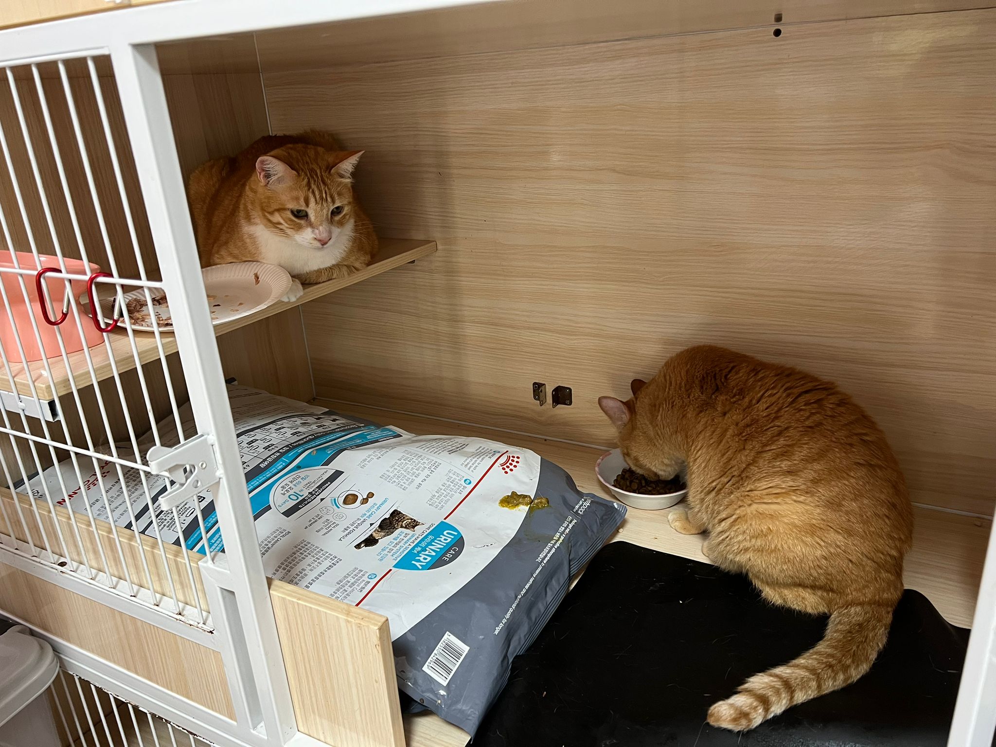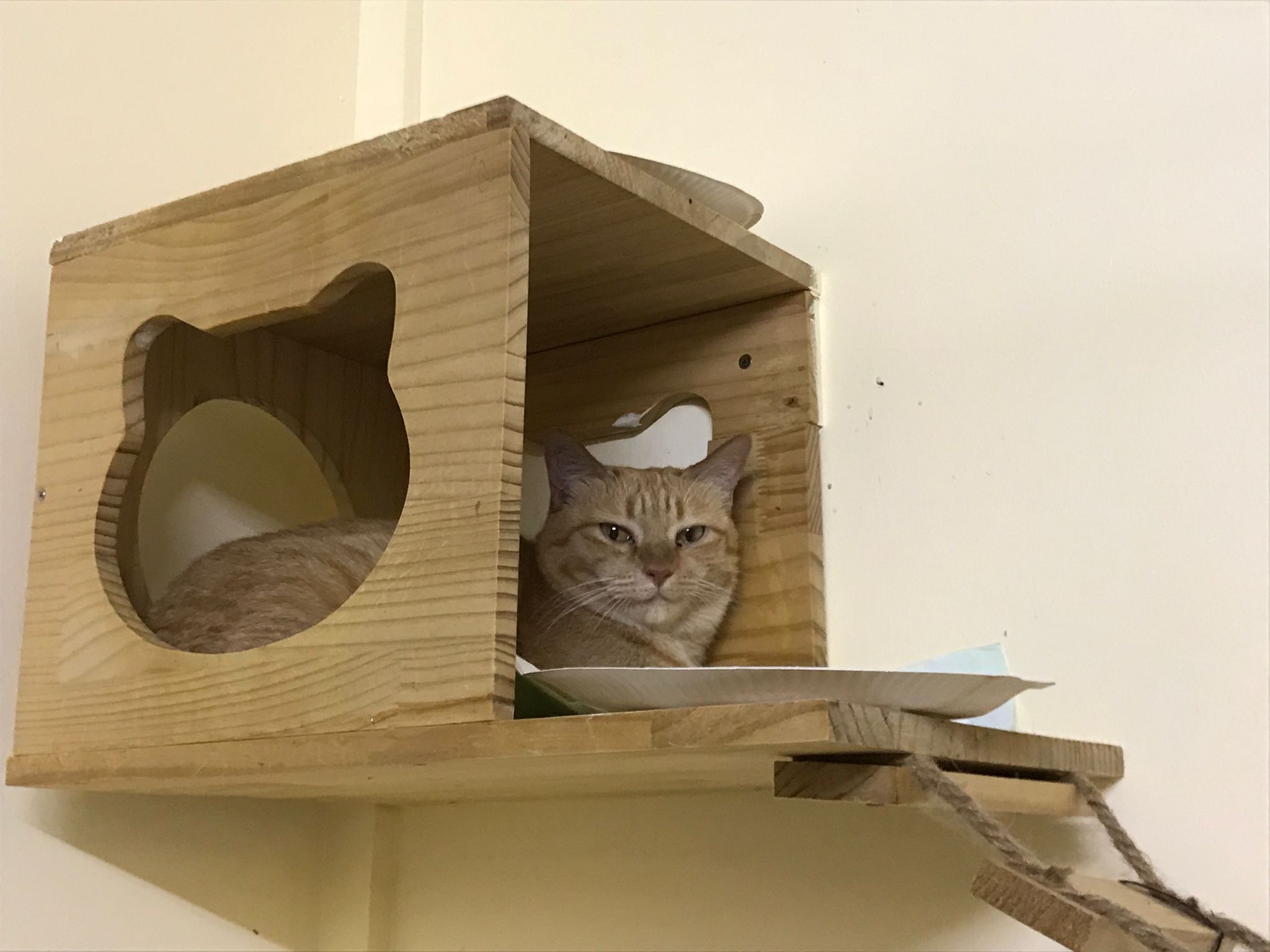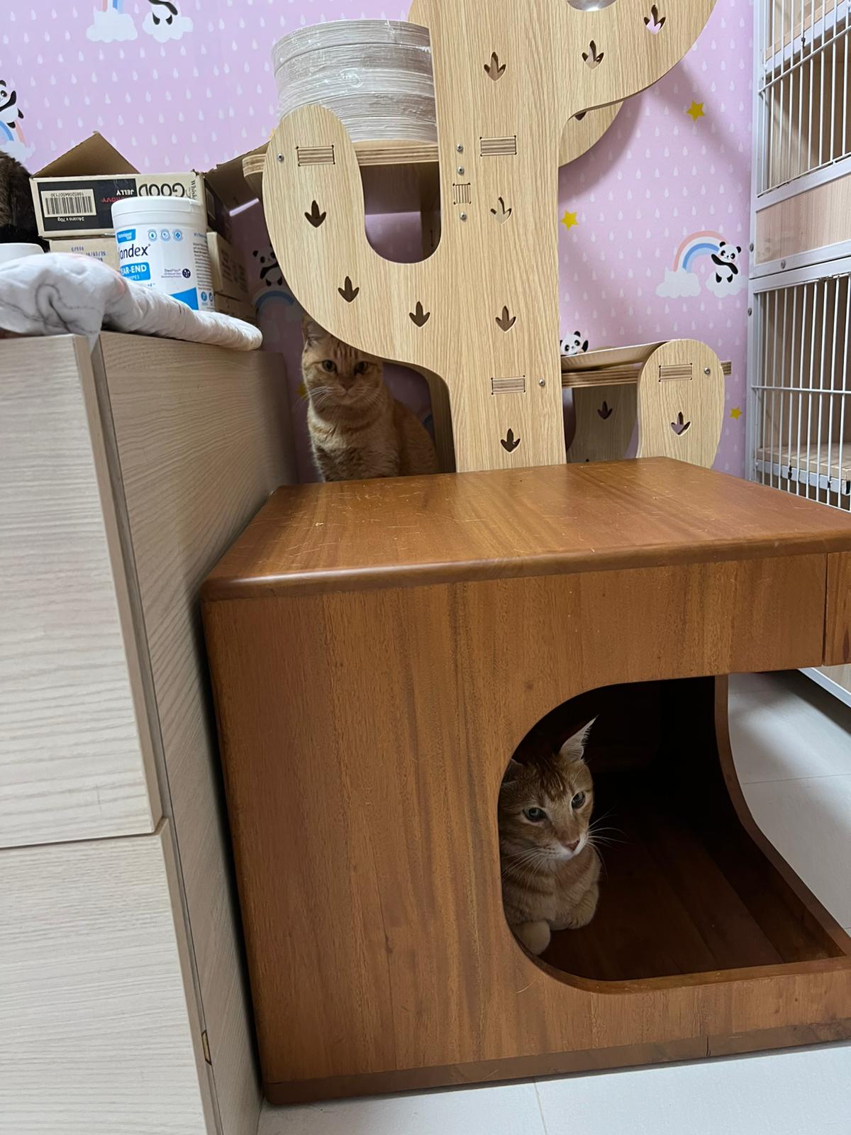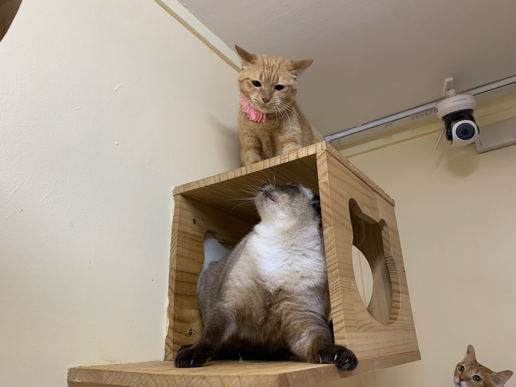 8am+-2.35pm: I’m a happy mao today. I stay in 猫房 for so long. Today all the cats staying in the food room for safety air reason. Cos new room need through and proper clean up first. I carried char to the cage and she had been there n quite ok w Teddy ard. boy didn’t disturb her as much cos so many of them in the room. She still active when it’s food time