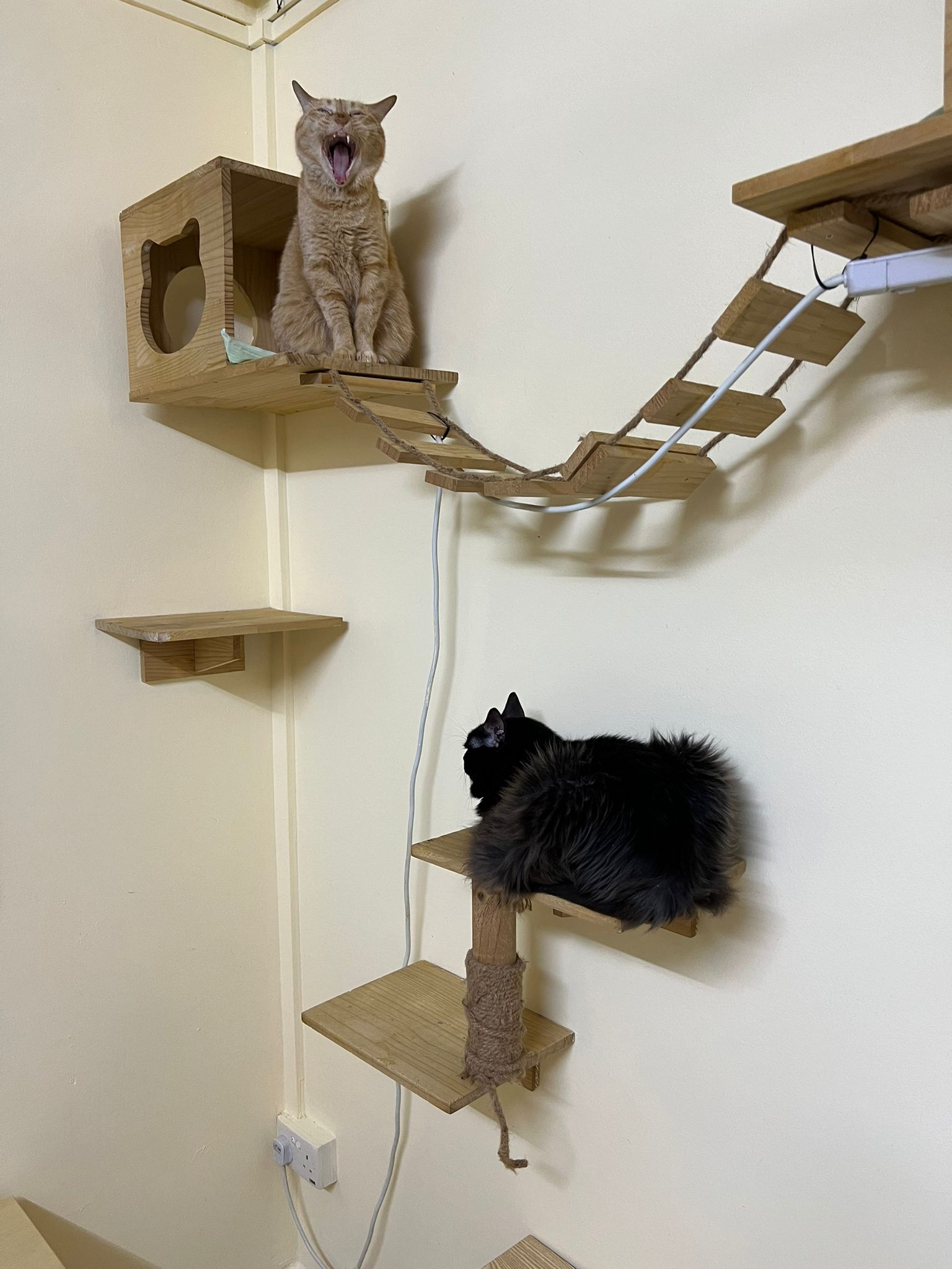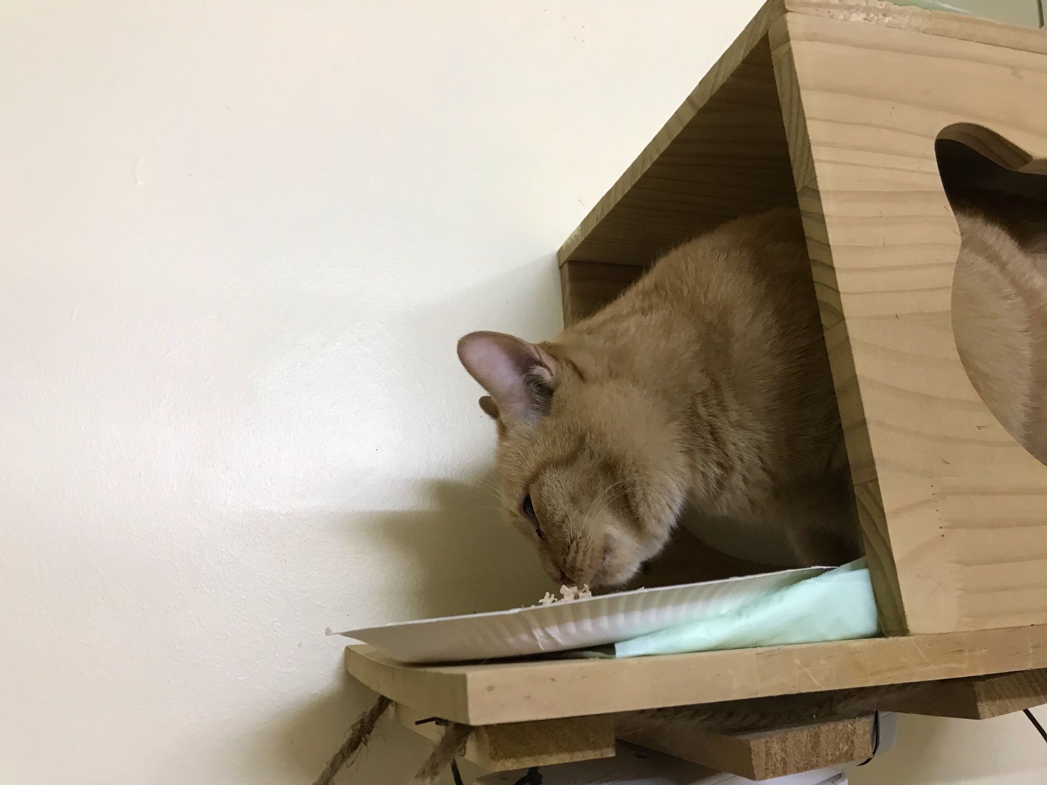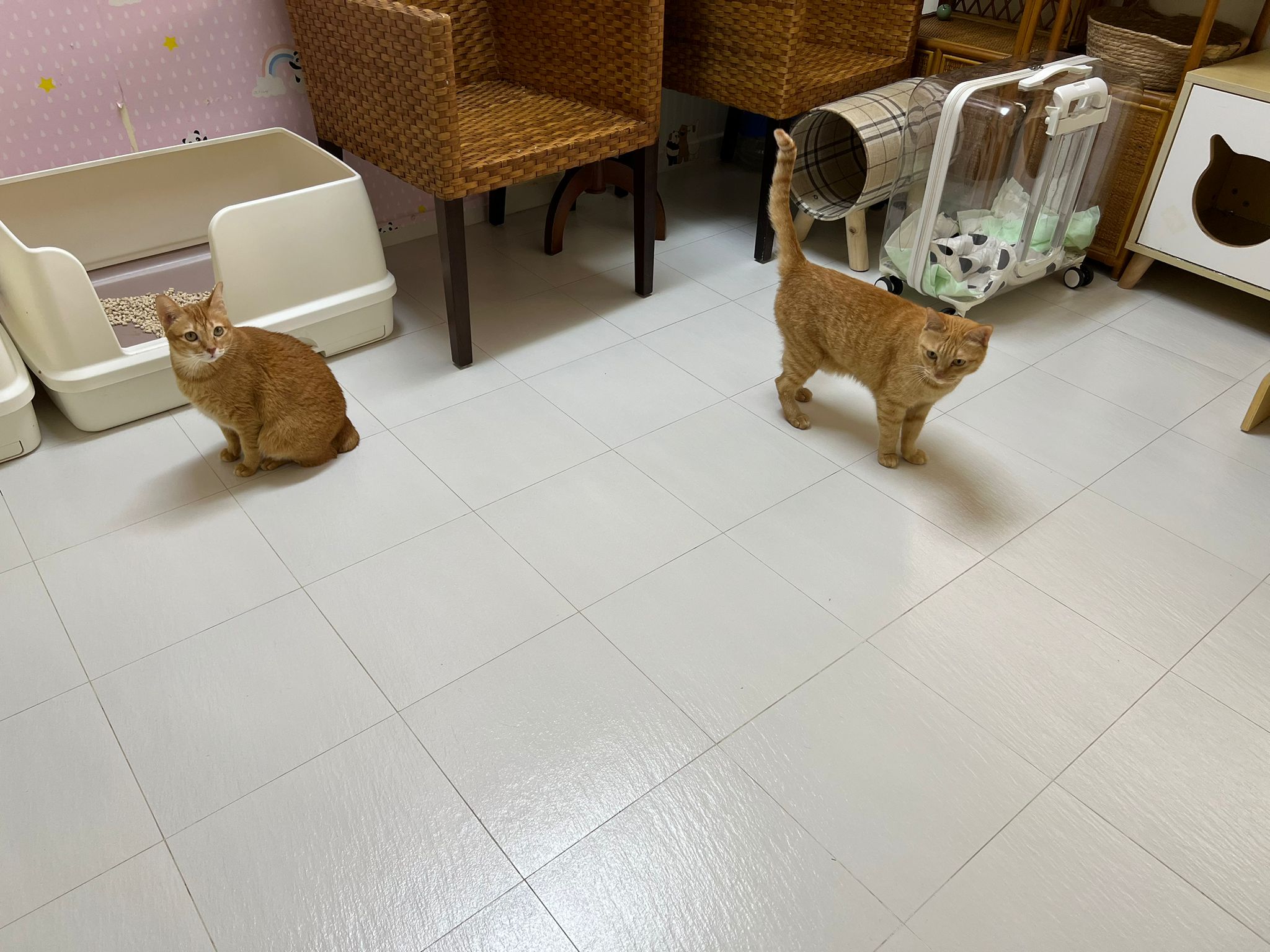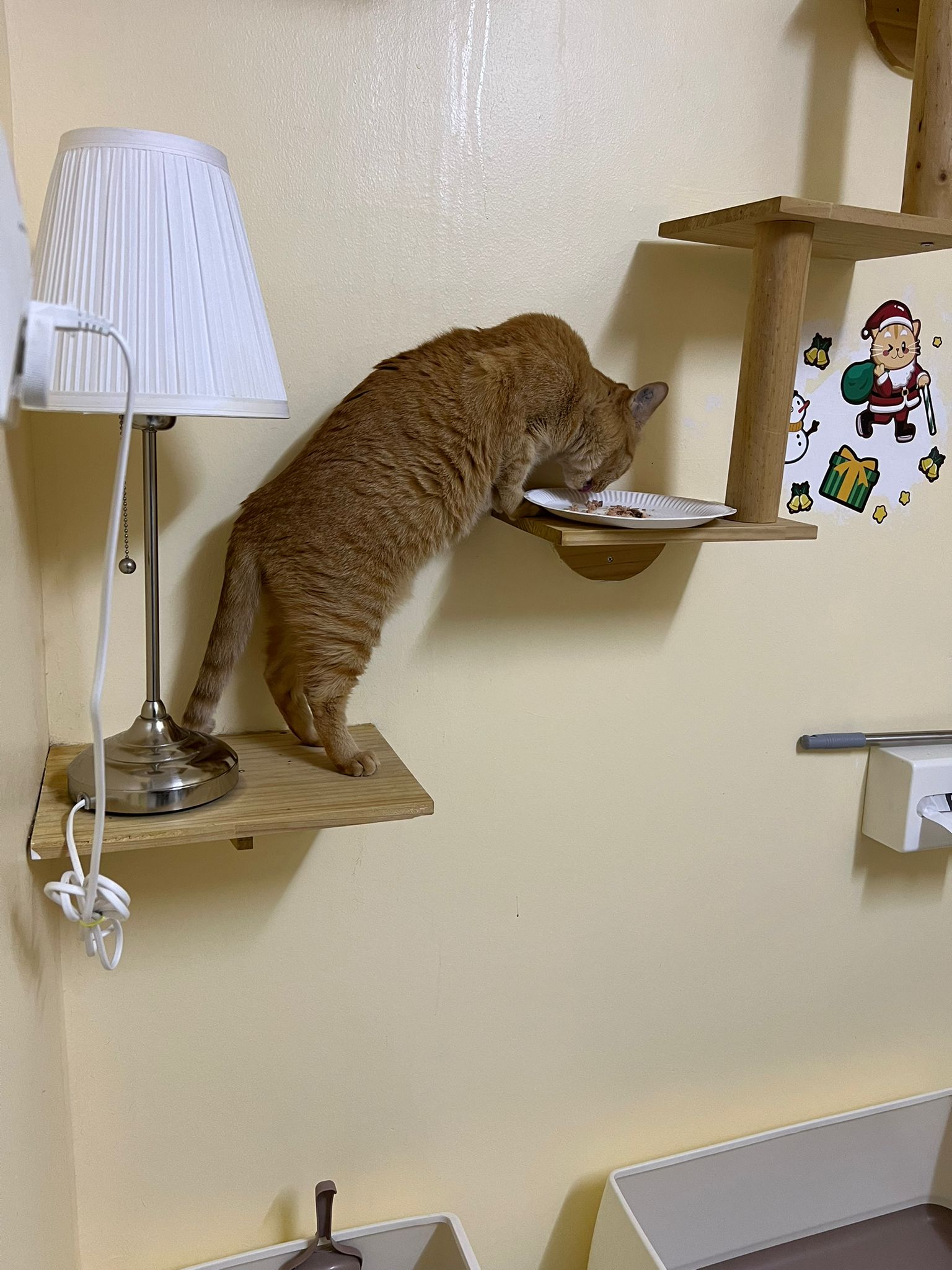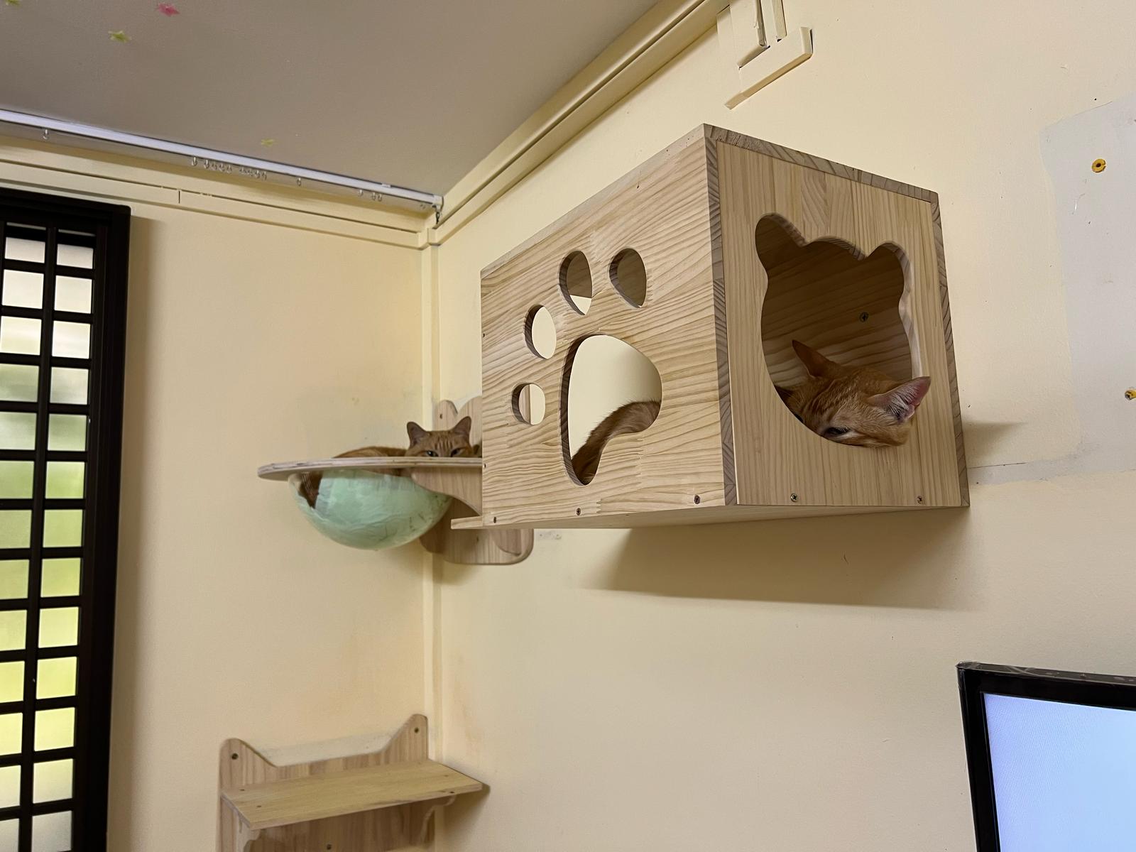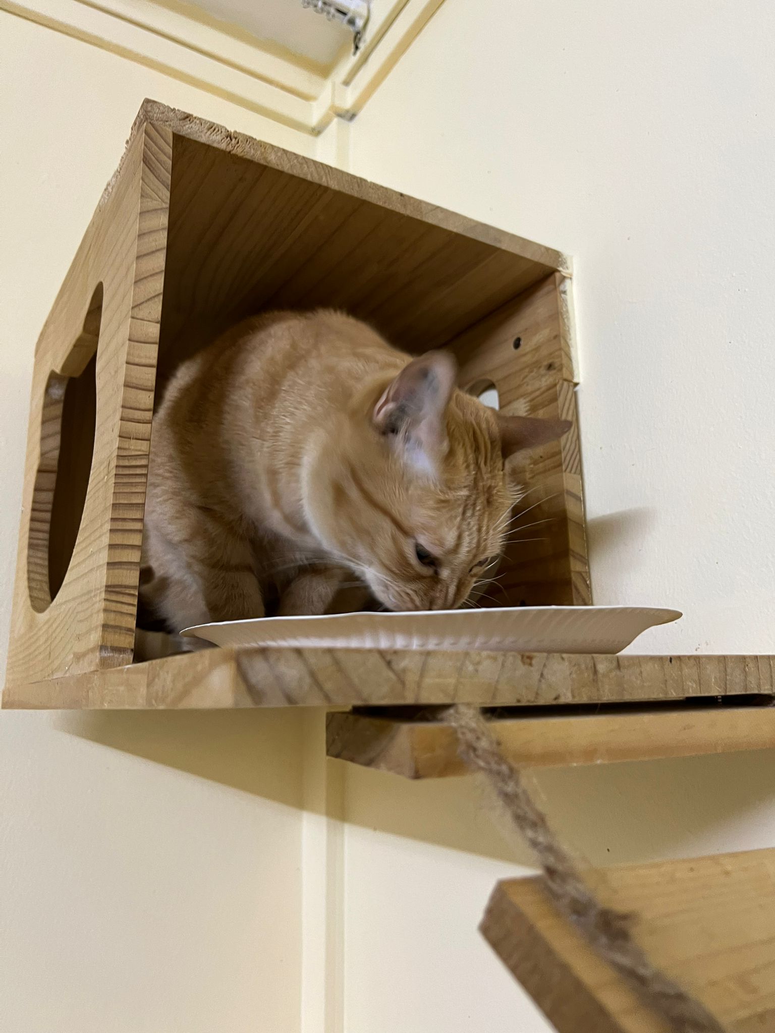 8am+-2.35pm: I’m a happy mao today. I stay in 猫房 for so long. Today all the cats staying in the food room for safety air reason. Cos new room need through and proper clean up first. I carried char to the cage and she had been there n quite ok w Teddy ard. boy didn’t disturb her as much cos so many of them in the room. She still active when it’s food time