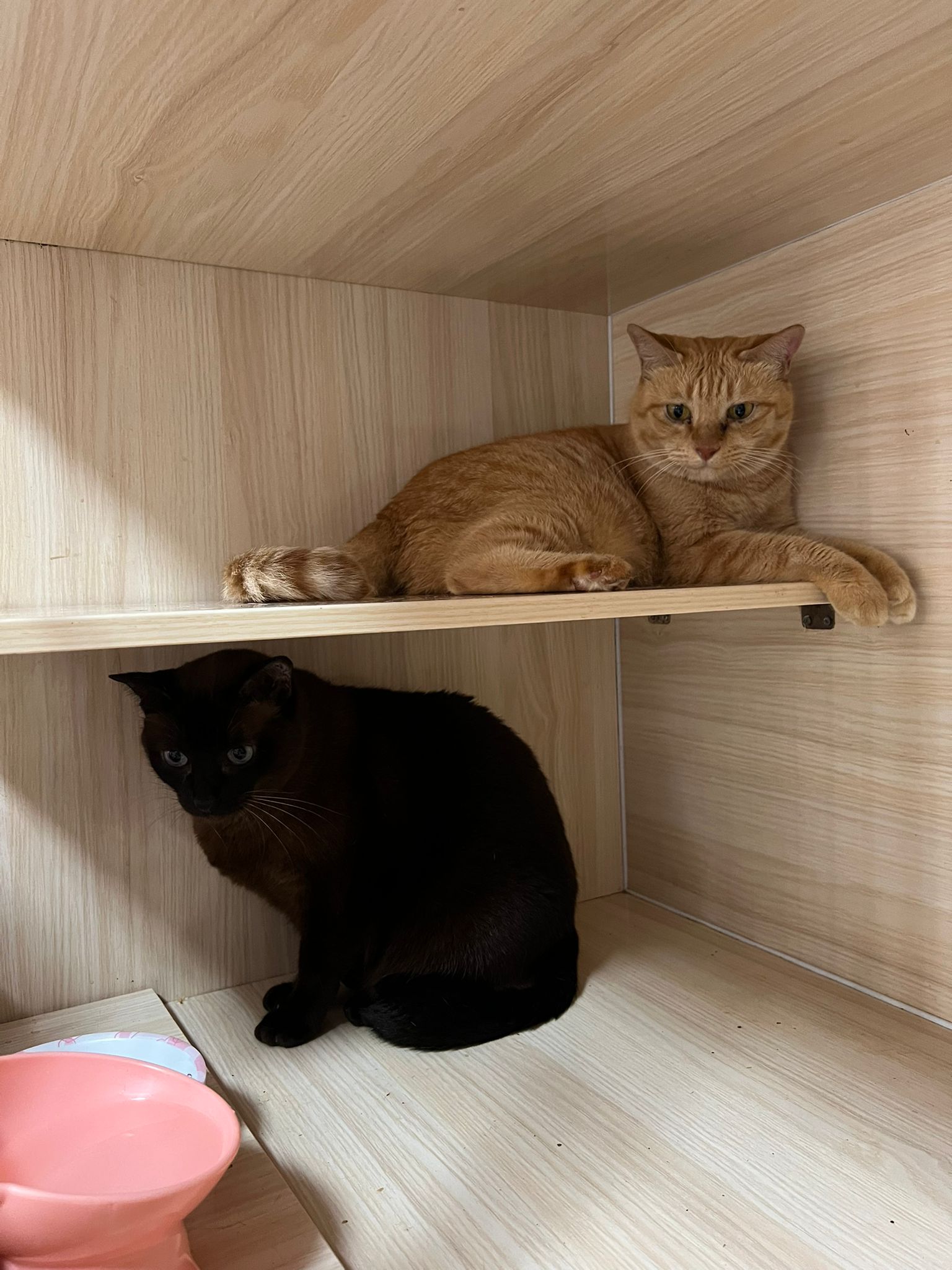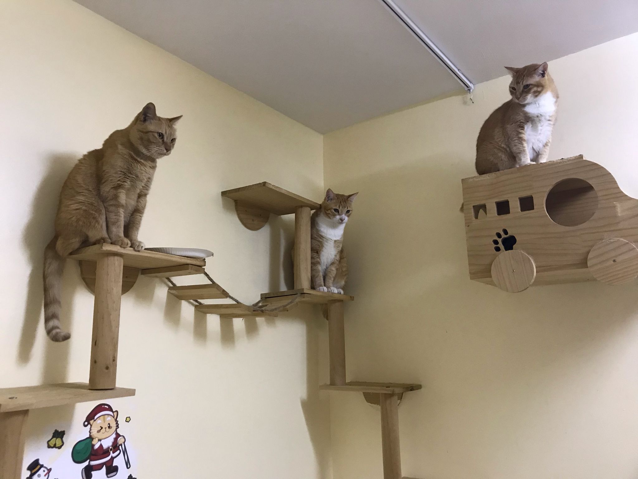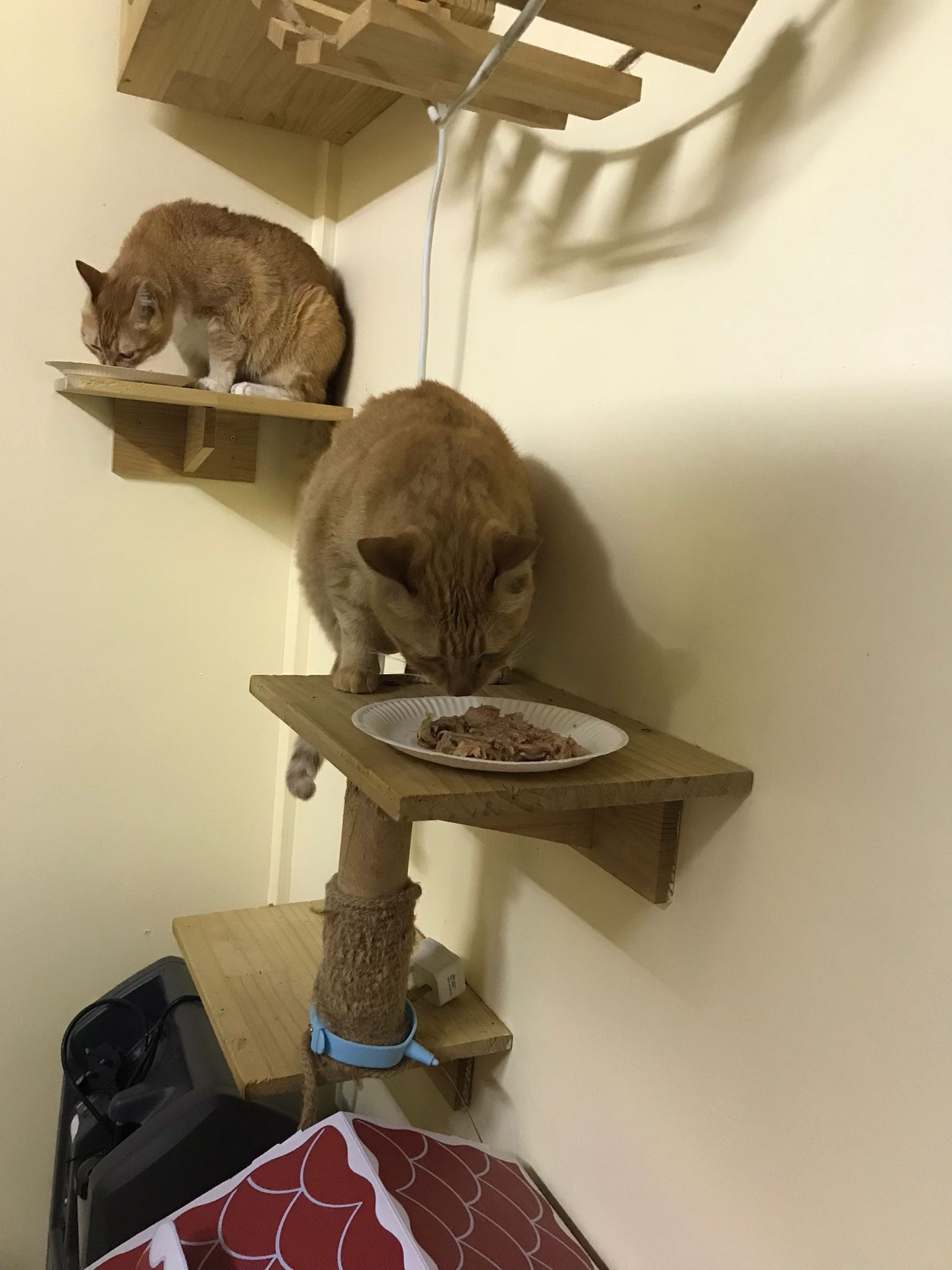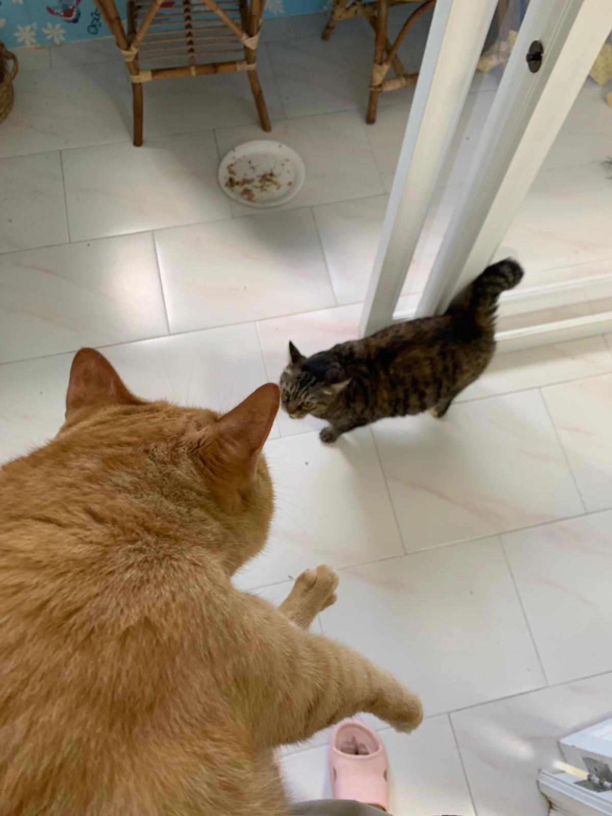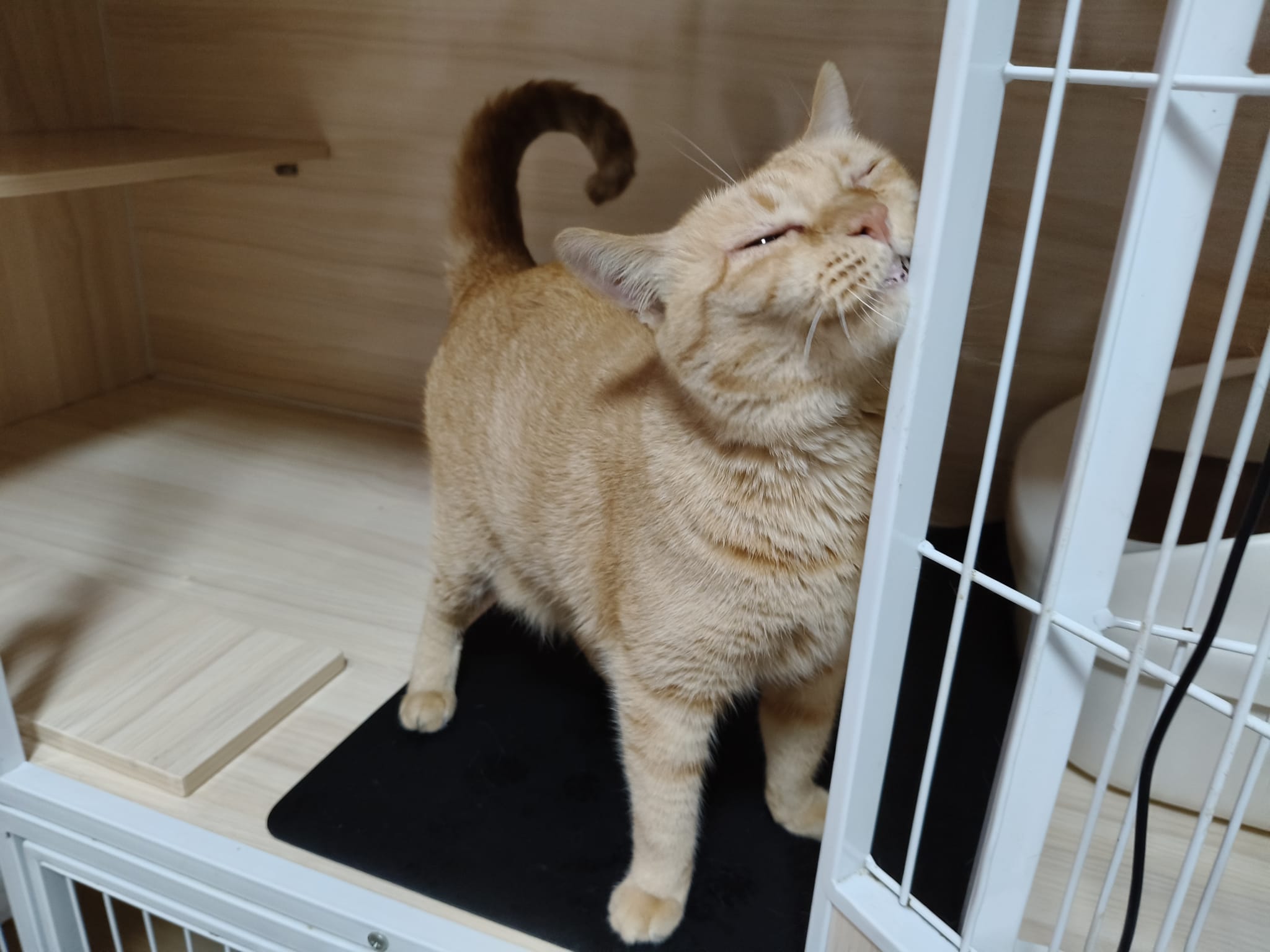 8am+-2.35pm: I’m a happy mao today. I stay in 猫房 for so long. Today all the cats staying in the food room for safety air reason. Cos new room need through and proper clean up first. I carried char to the cage and she had been there n quite ok w Teddy ard. boy didn’t disturb her as much cos so many of them in the room. She still active when it’s food time