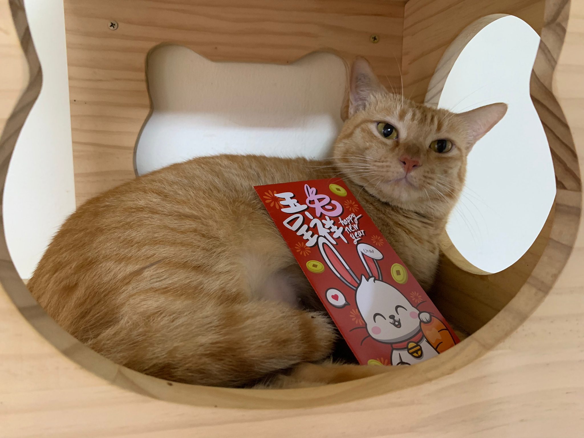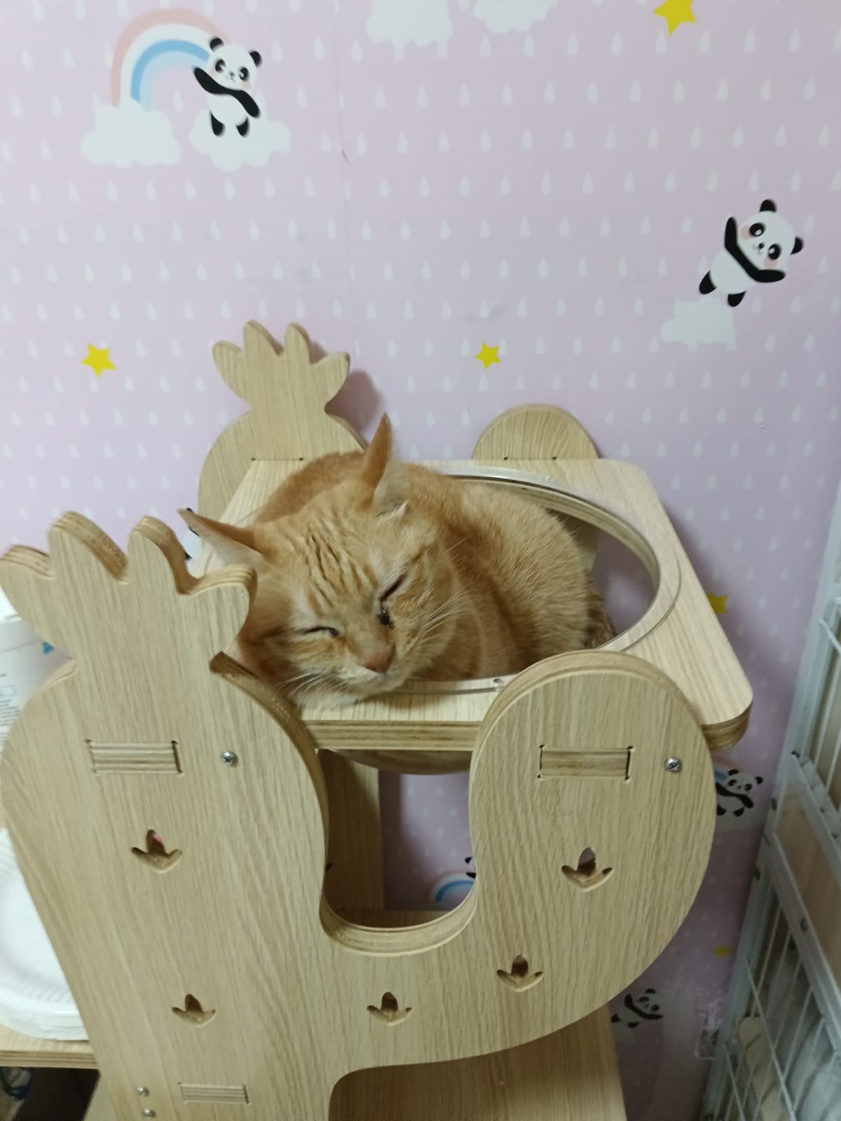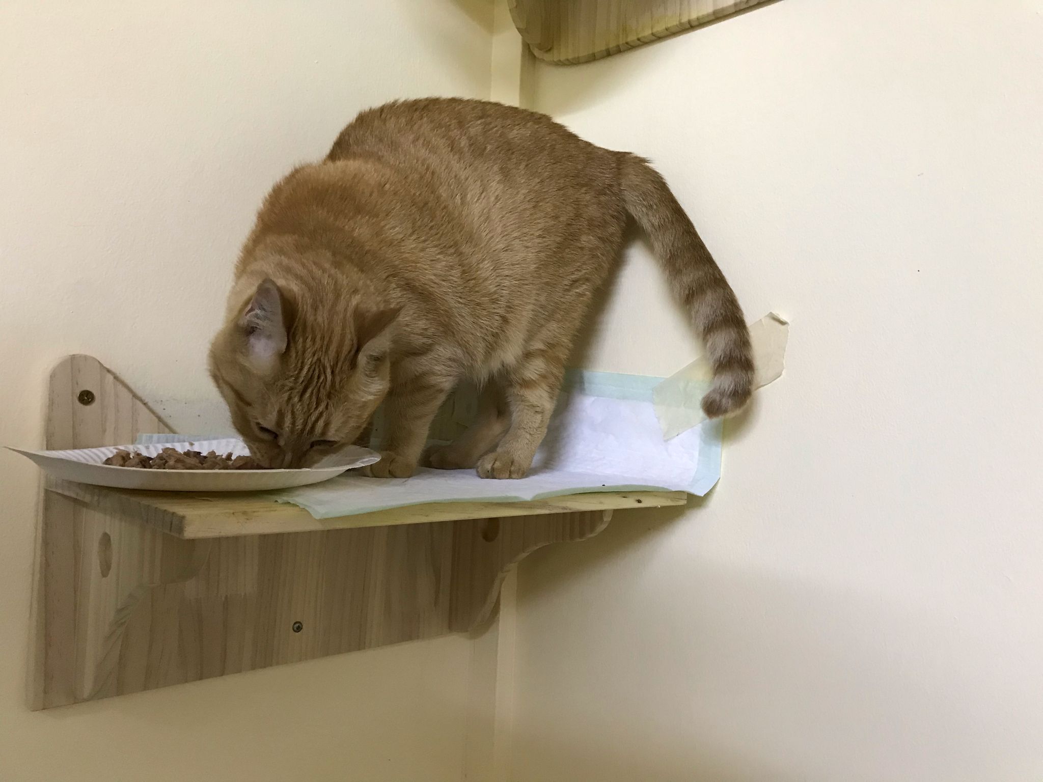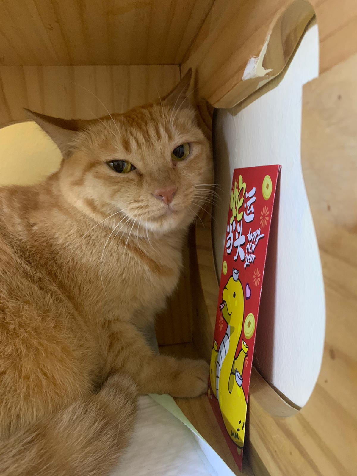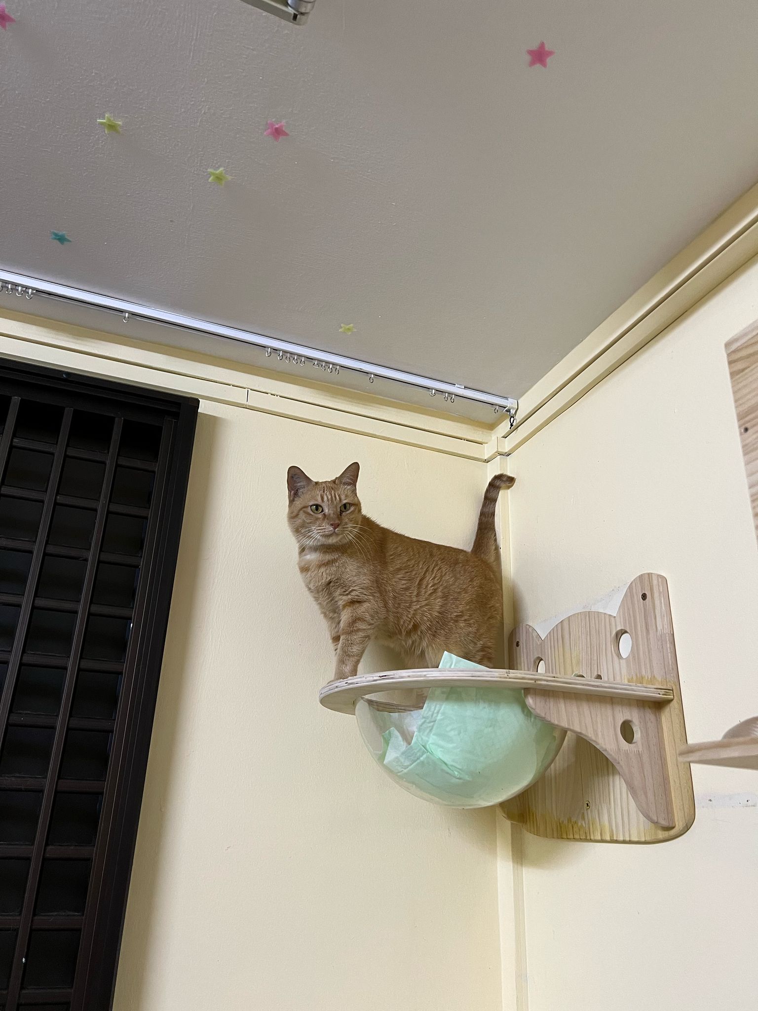 8am+-2.35pm: I’m a happy mao today. I stay in 猫房 for so long. Today all the cats staying in the food room for safety air reason. Cos new room need through and proper clean up first. I carried char to the cage and she had been there n quite ok w Teddy ard. boy didn’t disturb her as much cos so many of them in the room. She still active when it’s food time