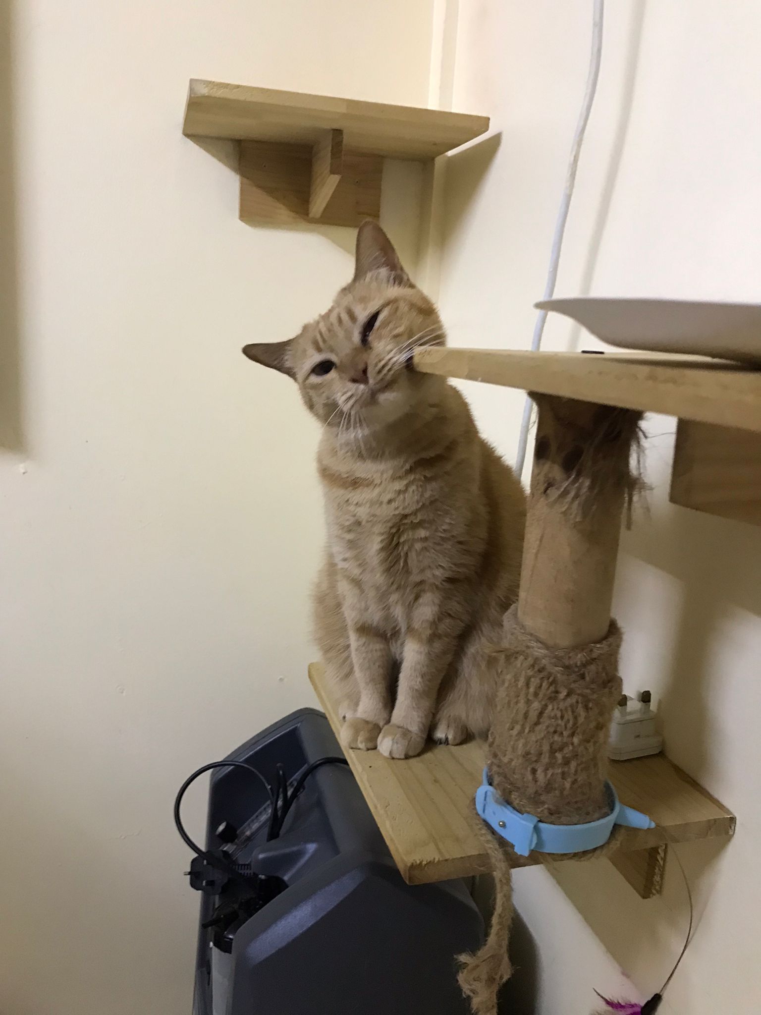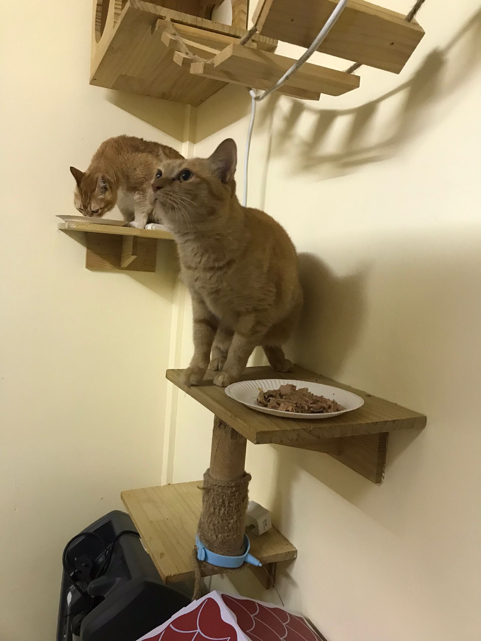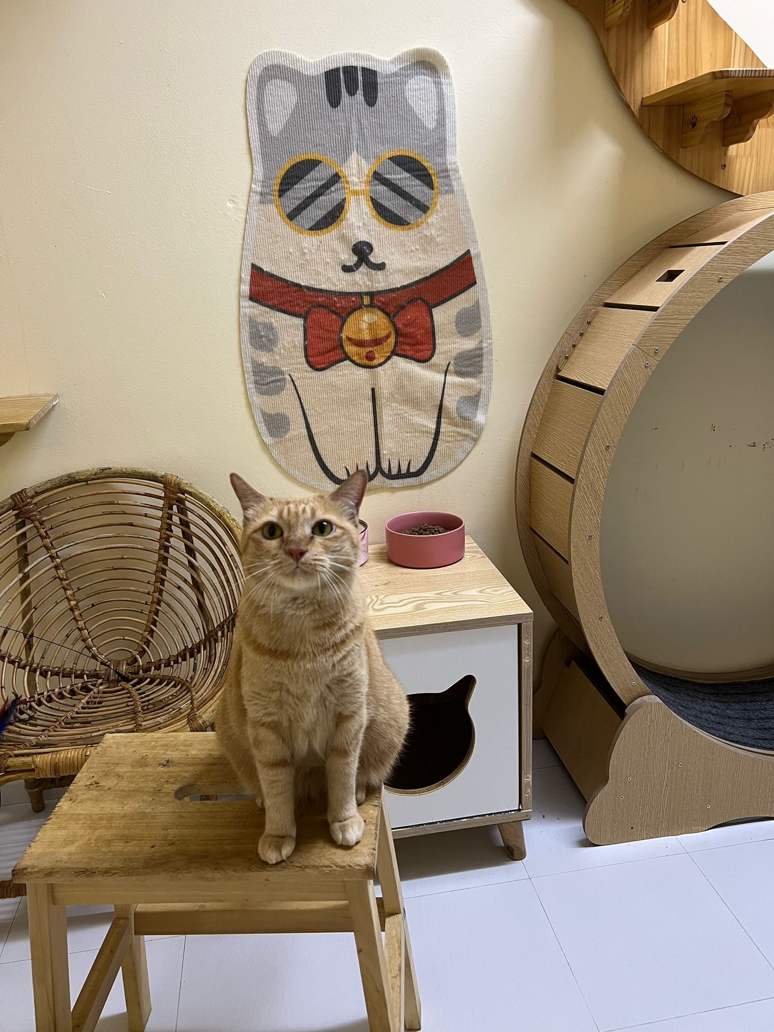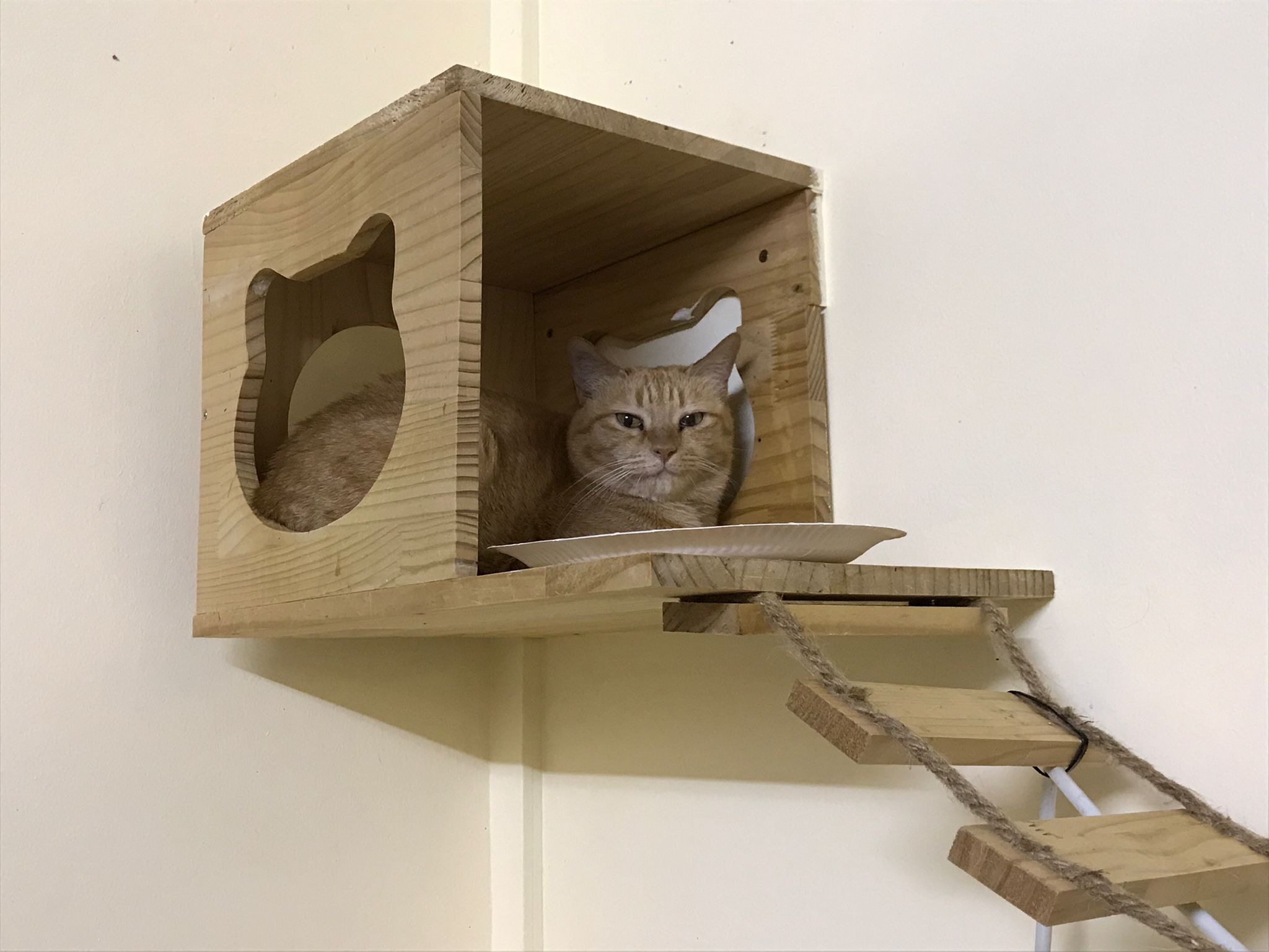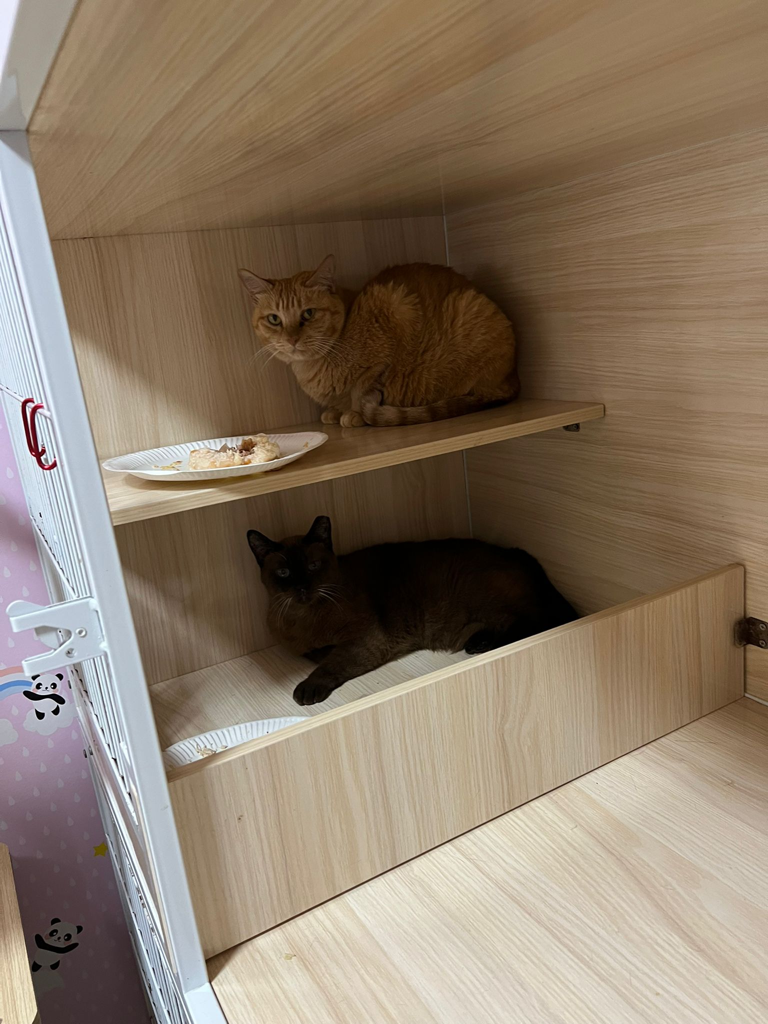 8am+-2.35pm: I’m a happy mao today. I stay in 猫房 for so long. Today all the cats staying in the food room for safety air reason. Cos new room need through and proper clean up first. I carried char to the cage and she had been there n quite ok w Teddy ard. boy didn’t disturb her as much cos so many of them in the room. She still active when it’s food time