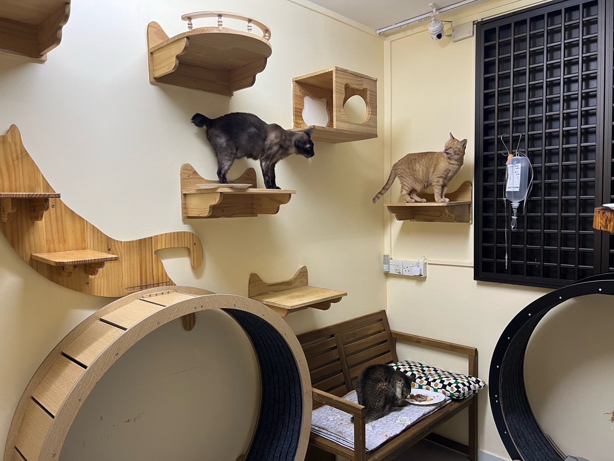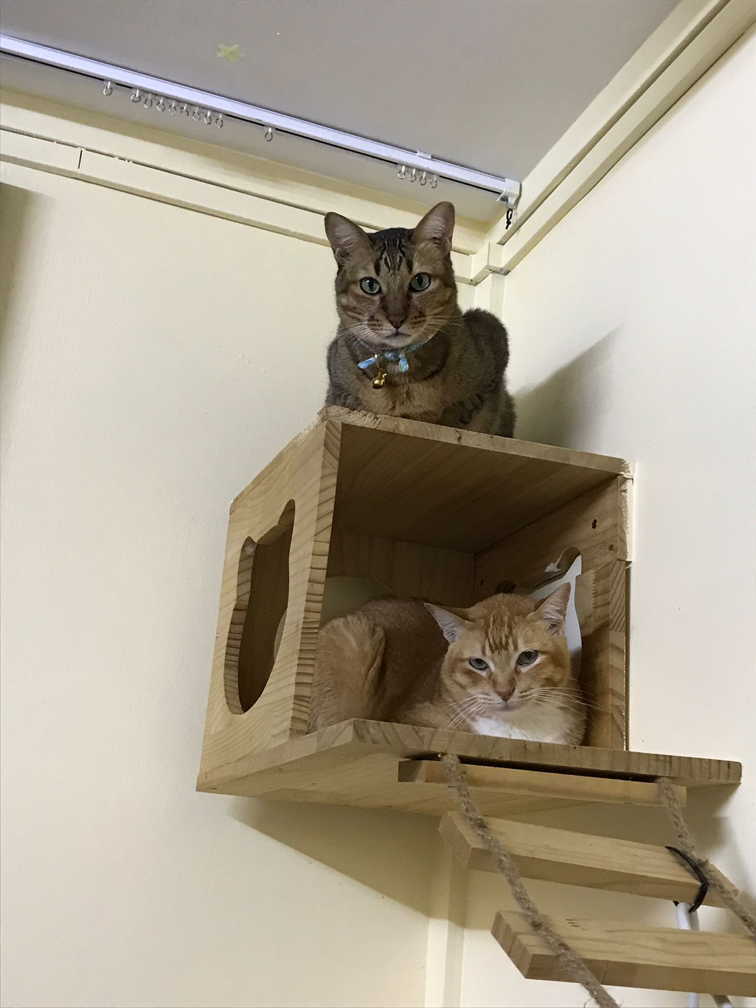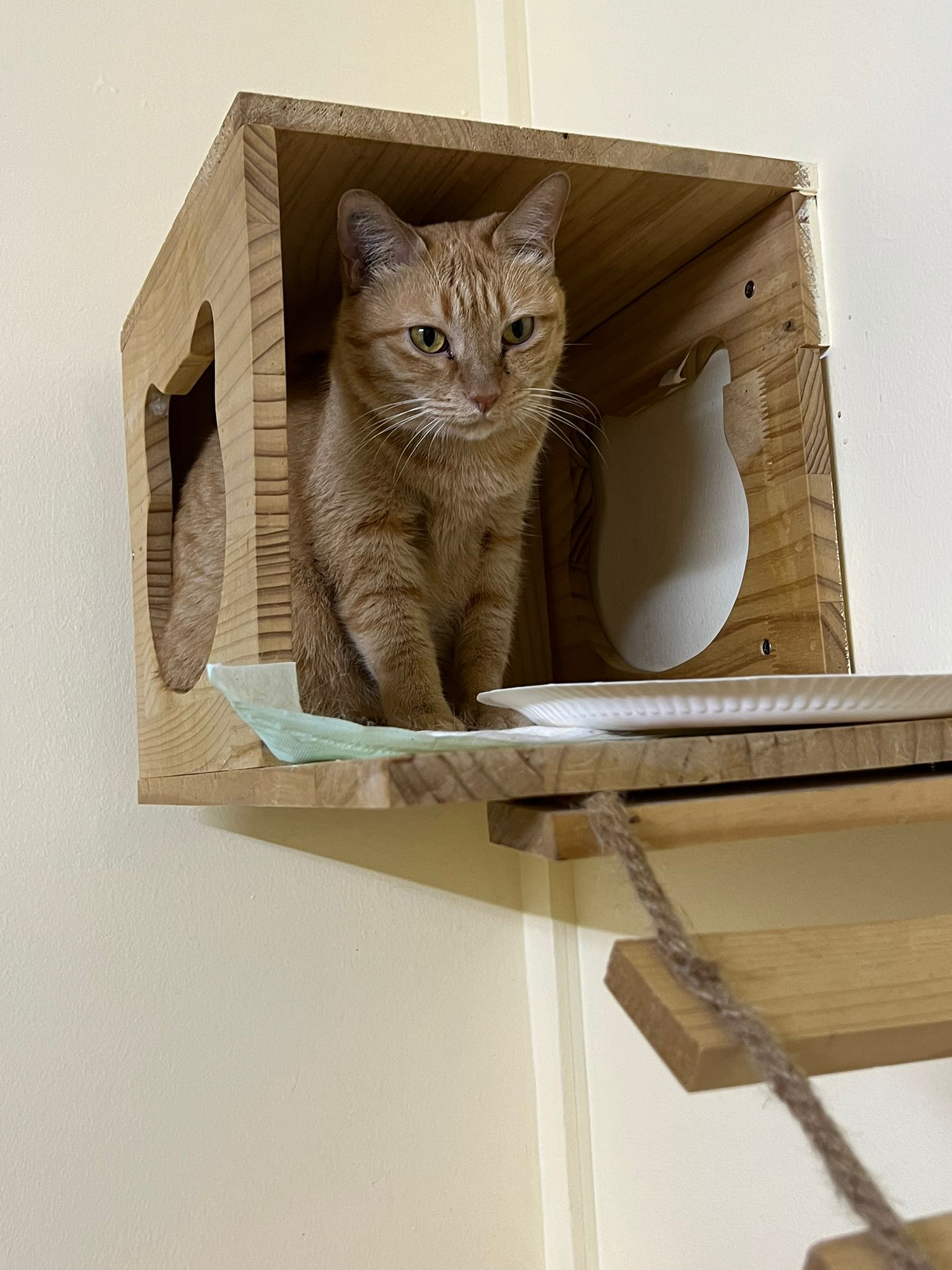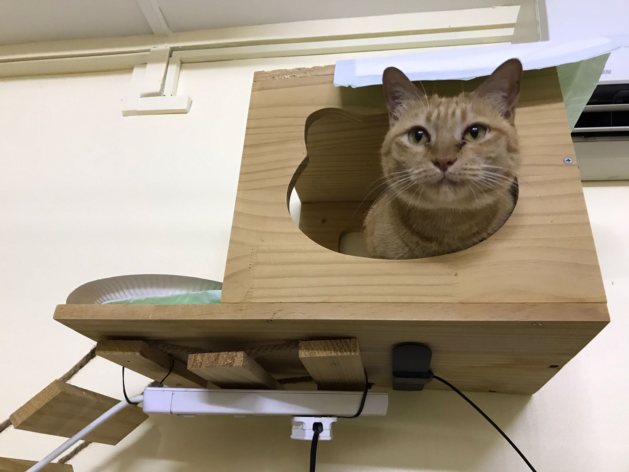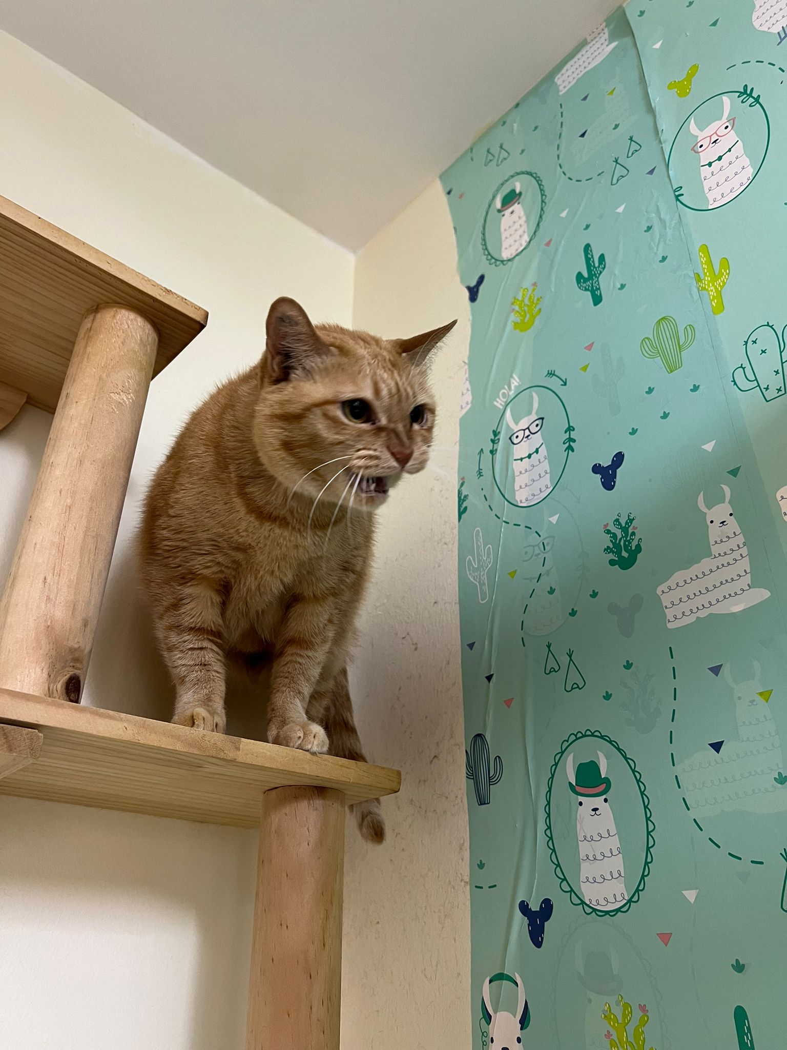 8am+-2.35pm: I’m a happy mao today. I stay in 猫房 for so long. Today all the cats staying in the food room for safety air reason. Cos new room need through and proper clean up first. I carried char to the cage and she had been there n quite ok w Teddy ard. boy didn’t disturb her as much cos so many of them in the room. She still active when it’s food time