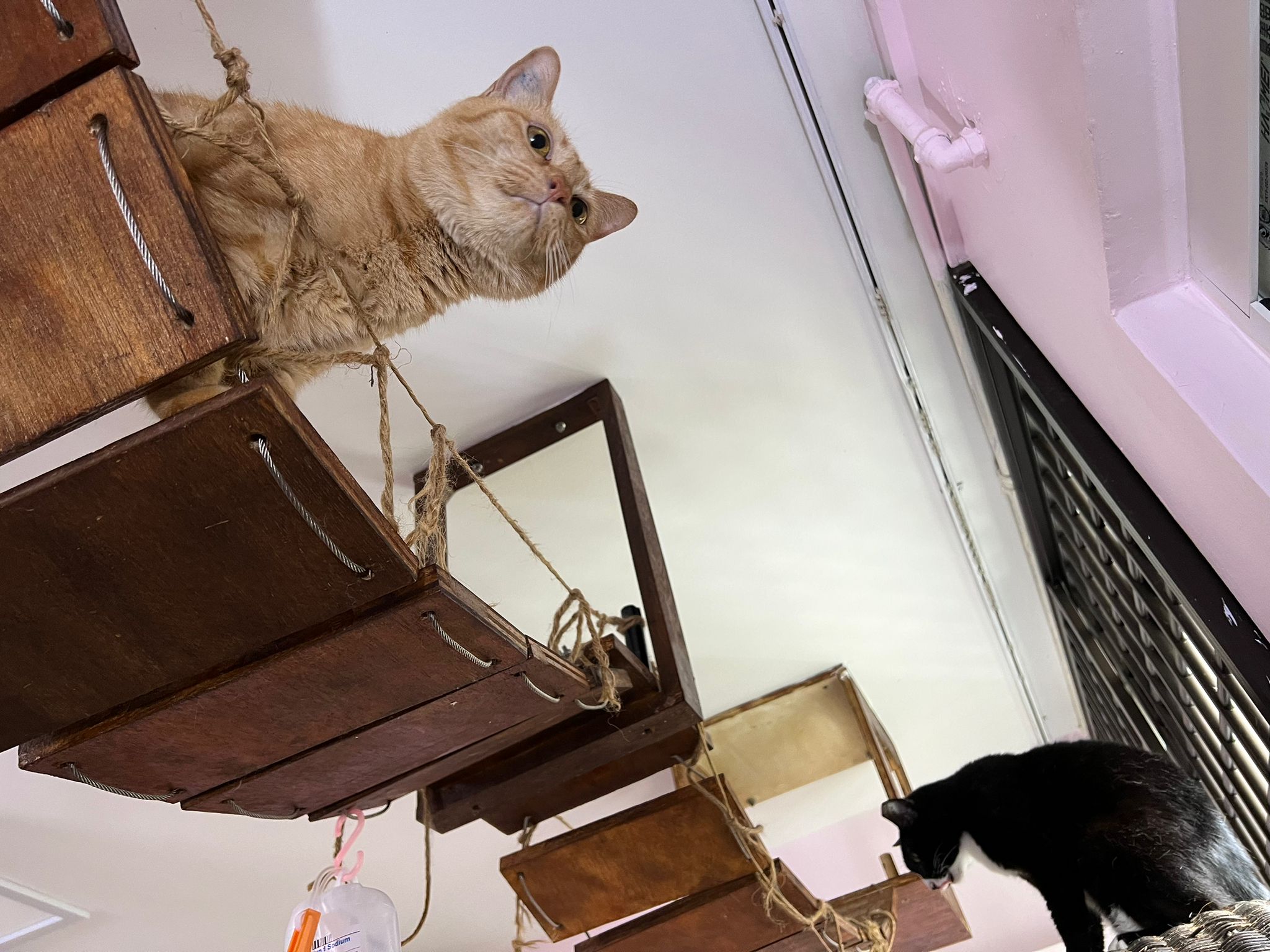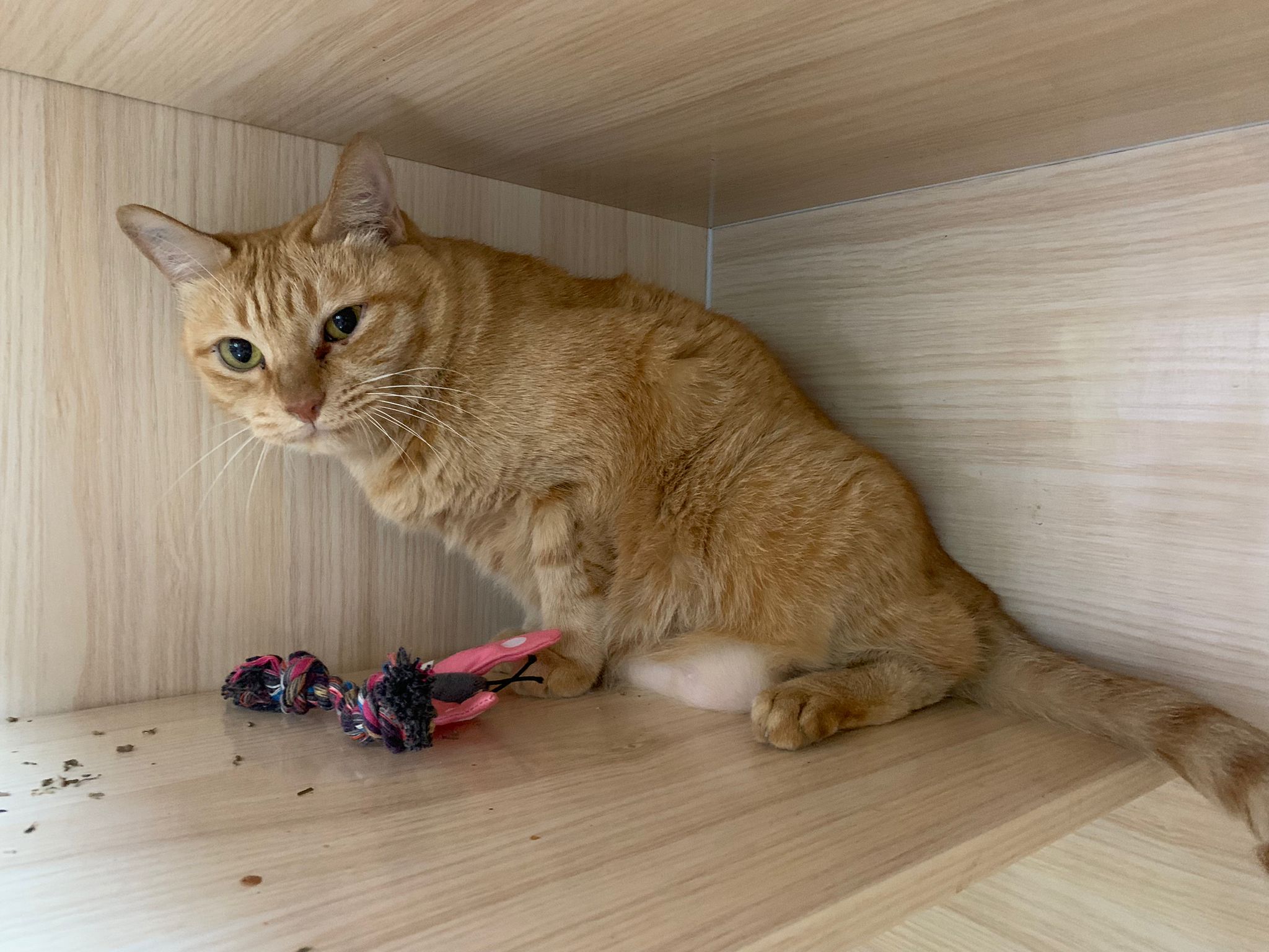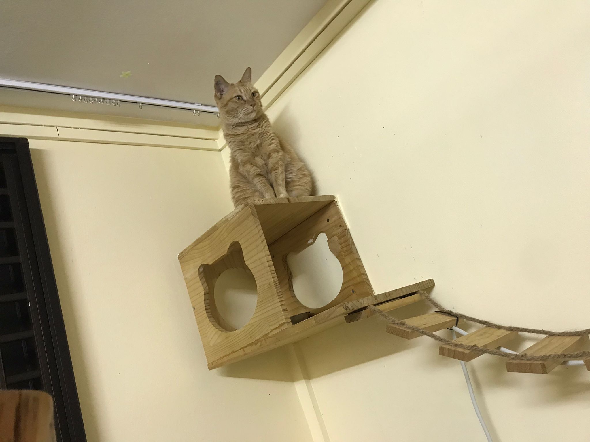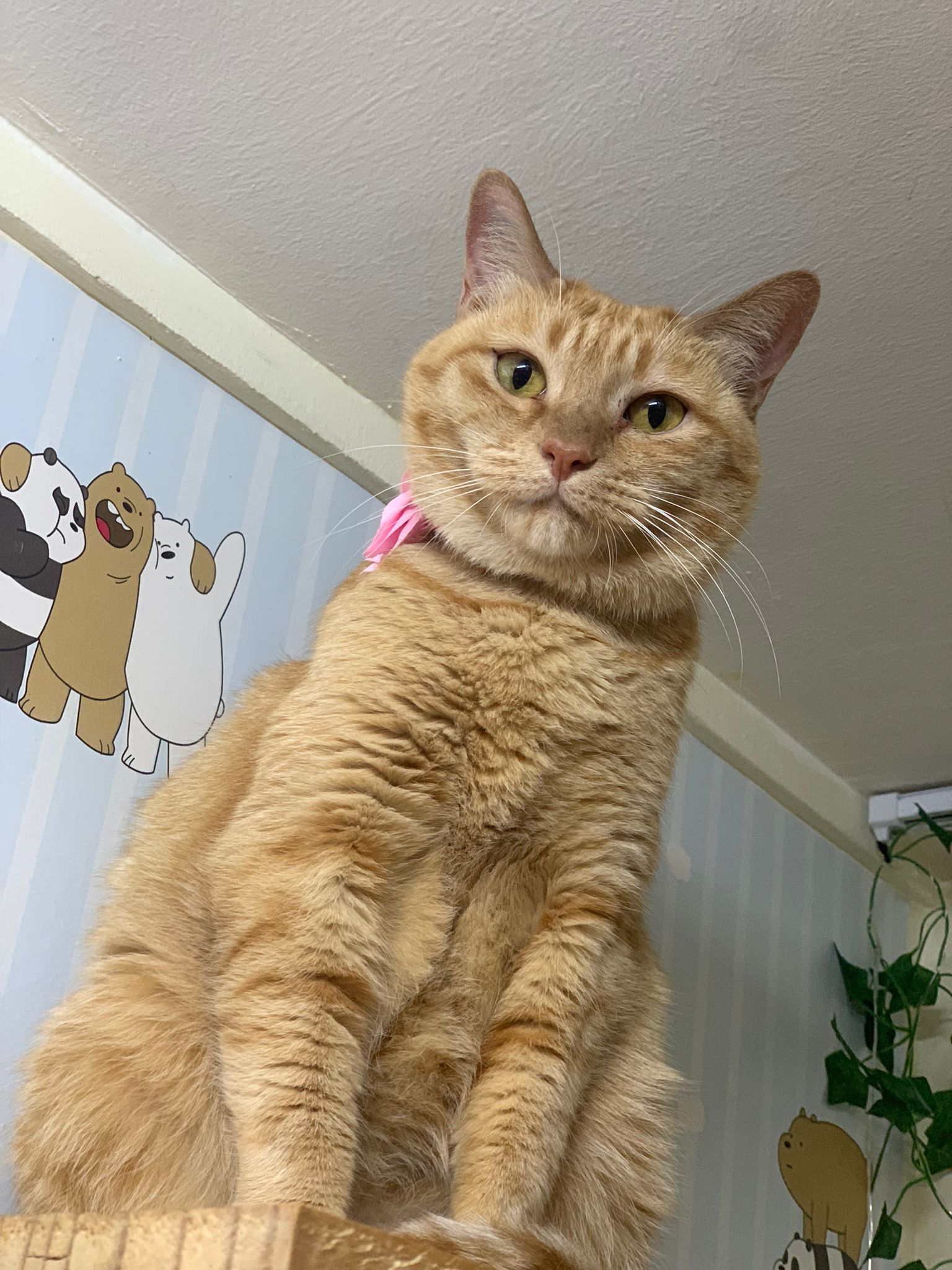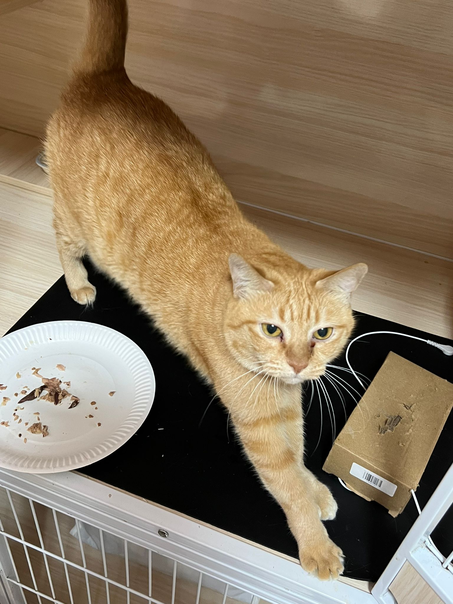 8am+-2.35pm: I’m a happy mao today. I stay in 猫房 for so long. Today all the cats staying in the food room for safety air reason. Cos new room need through and proper clean up first. I carried char to the cage and she had been there n quite ok w Teddy ard. boy didn’t disturb her as much cos so many of them in the room. She still active when it’s food time