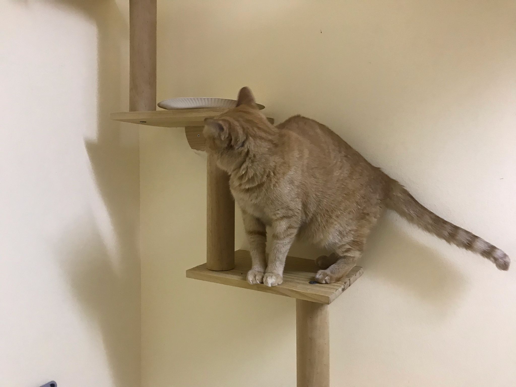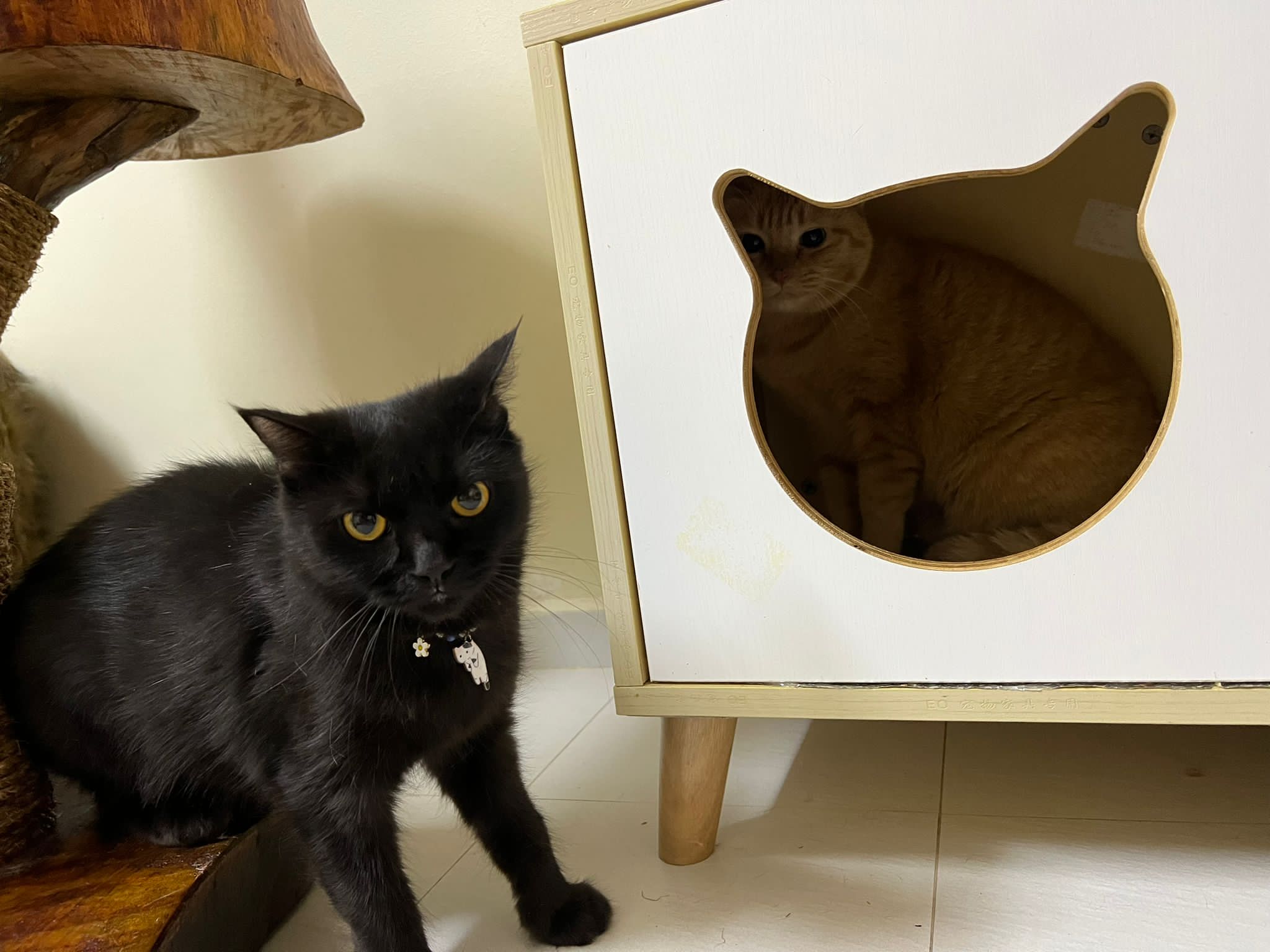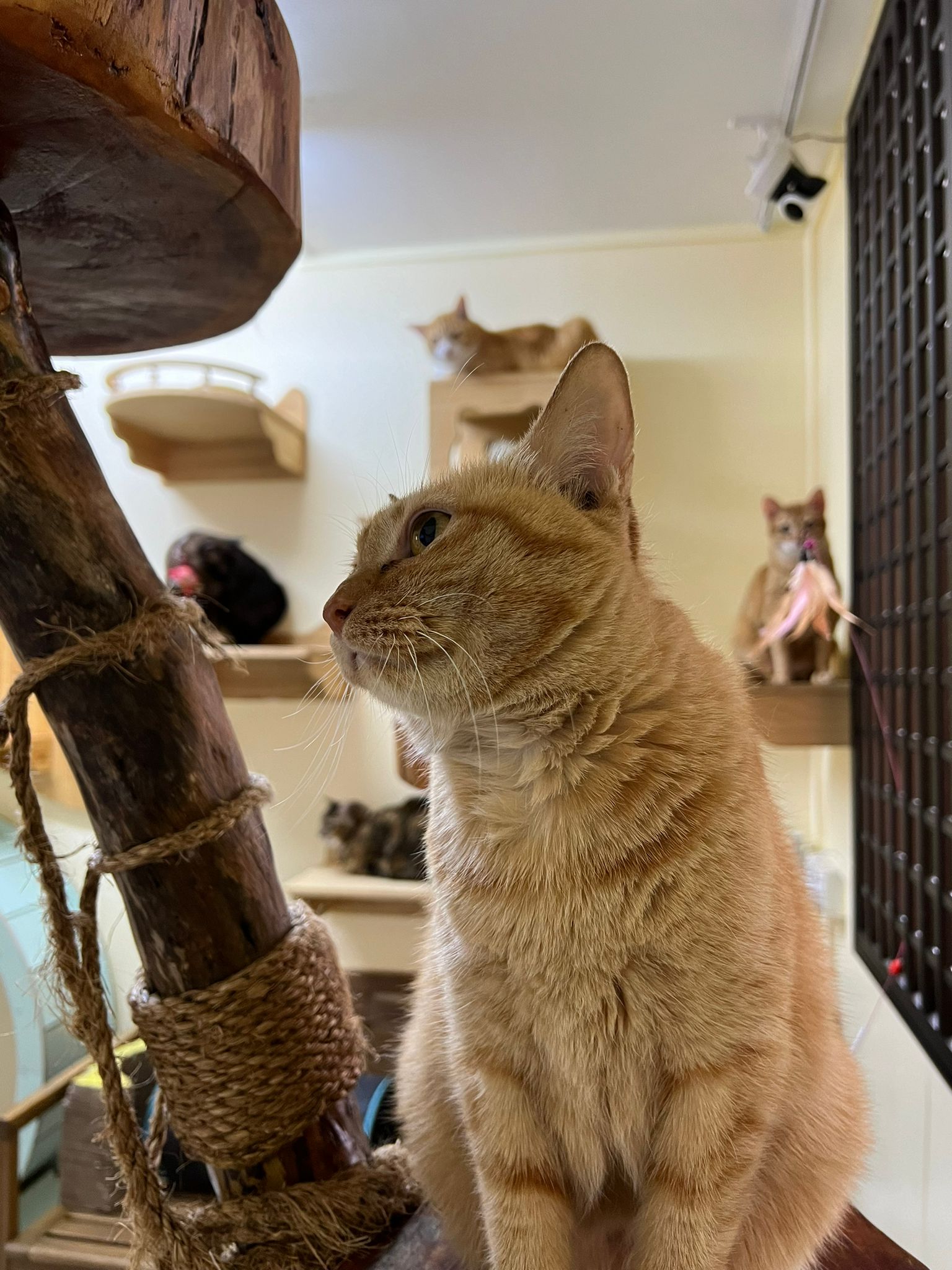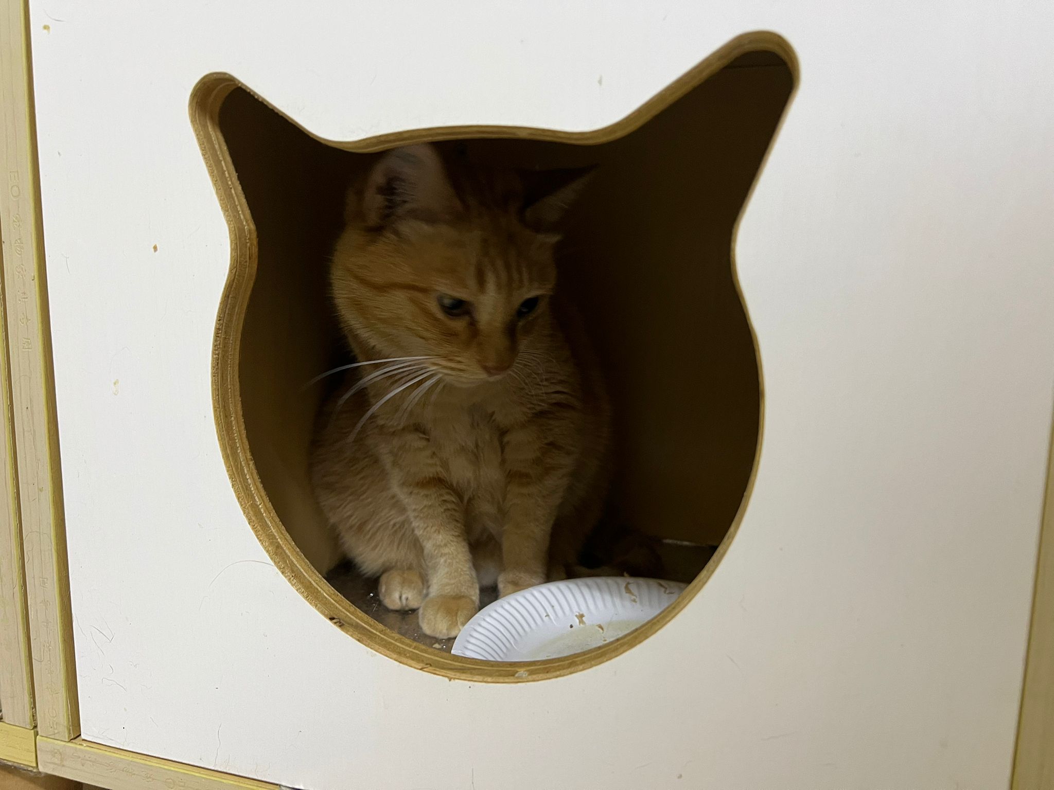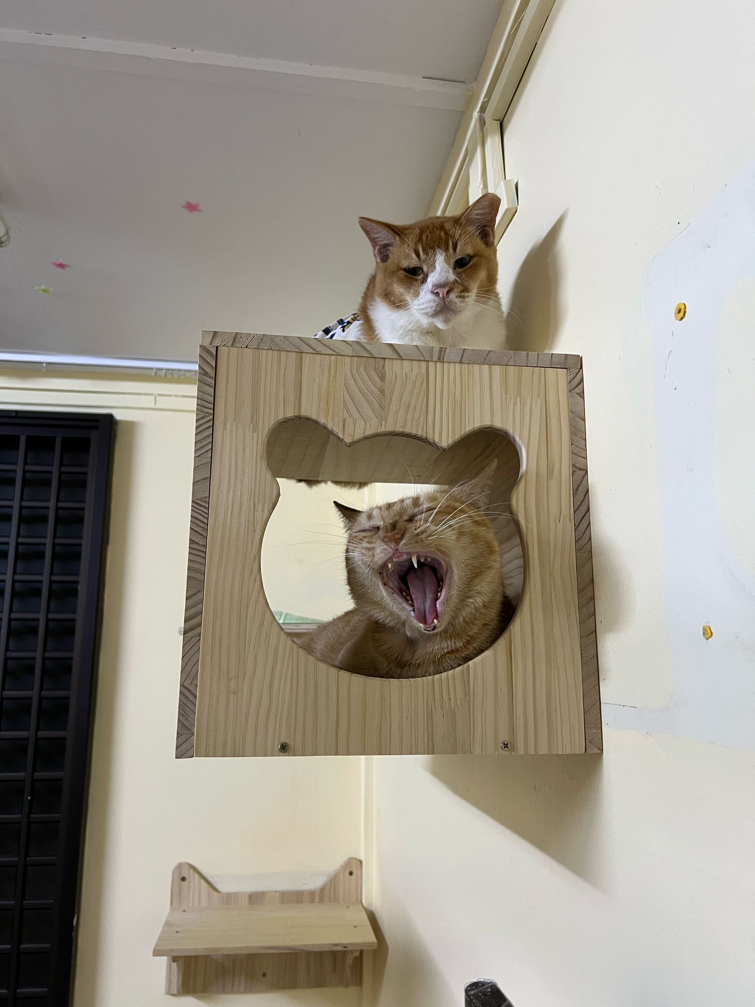 8am+-2.35pm: I’m a happy mao today. I stay in 猫房 for so long. Today all the cats staying in the food room for safety air reason. Cos new room need through and proper clean up first. I carried char to the cage and she had been there n quite ok w Teddy ard. boy didn’t disturb her as much cos so many of them in the room. She still active when it’s food time