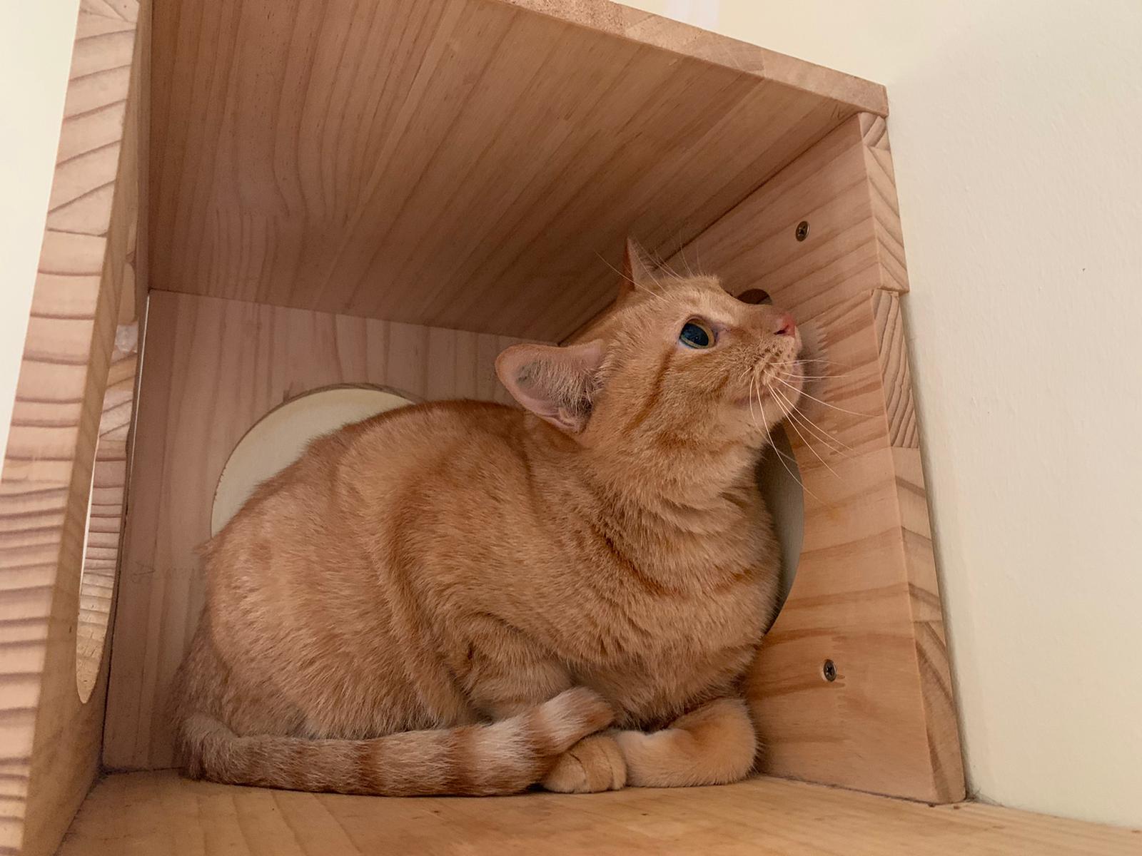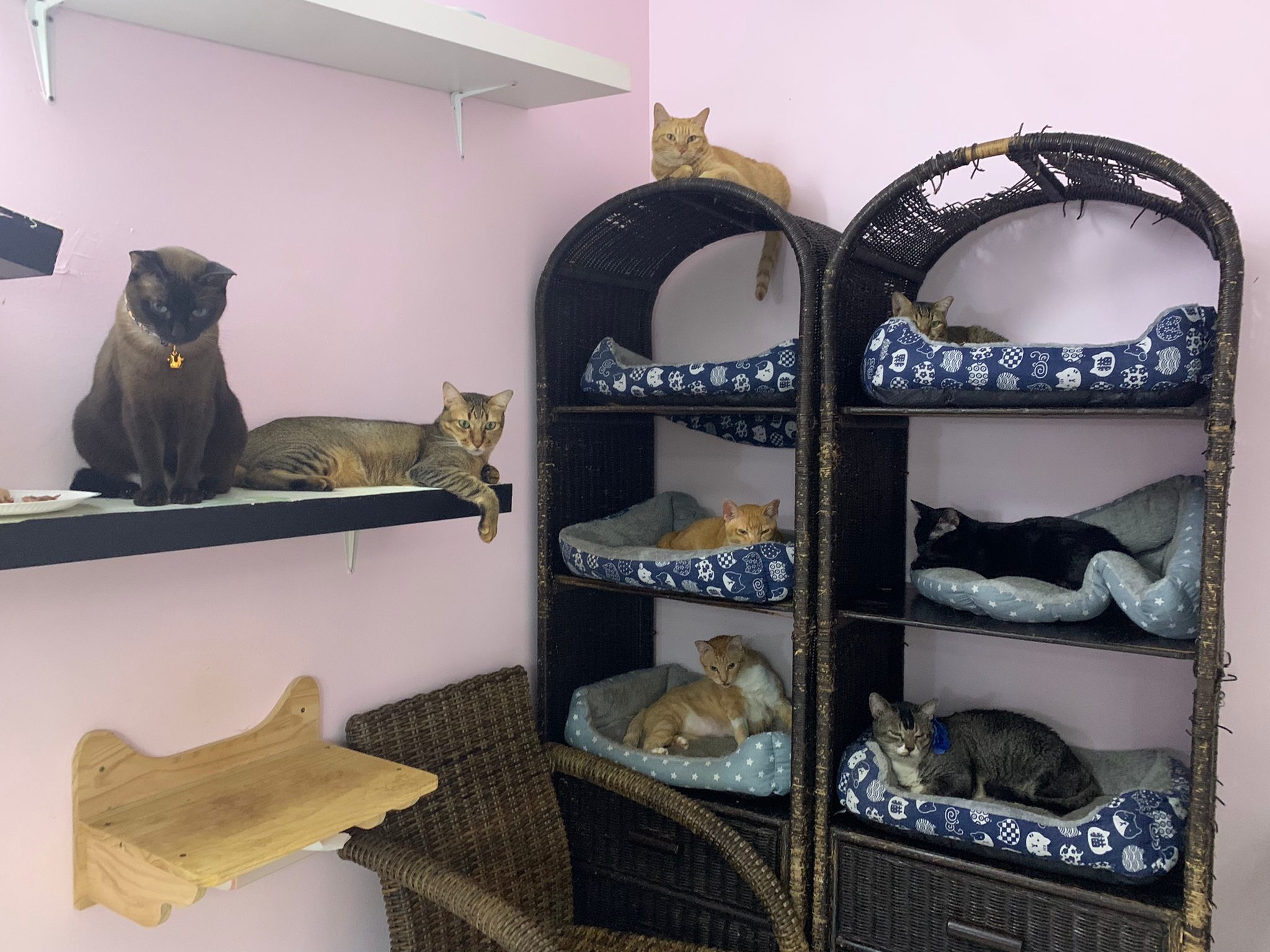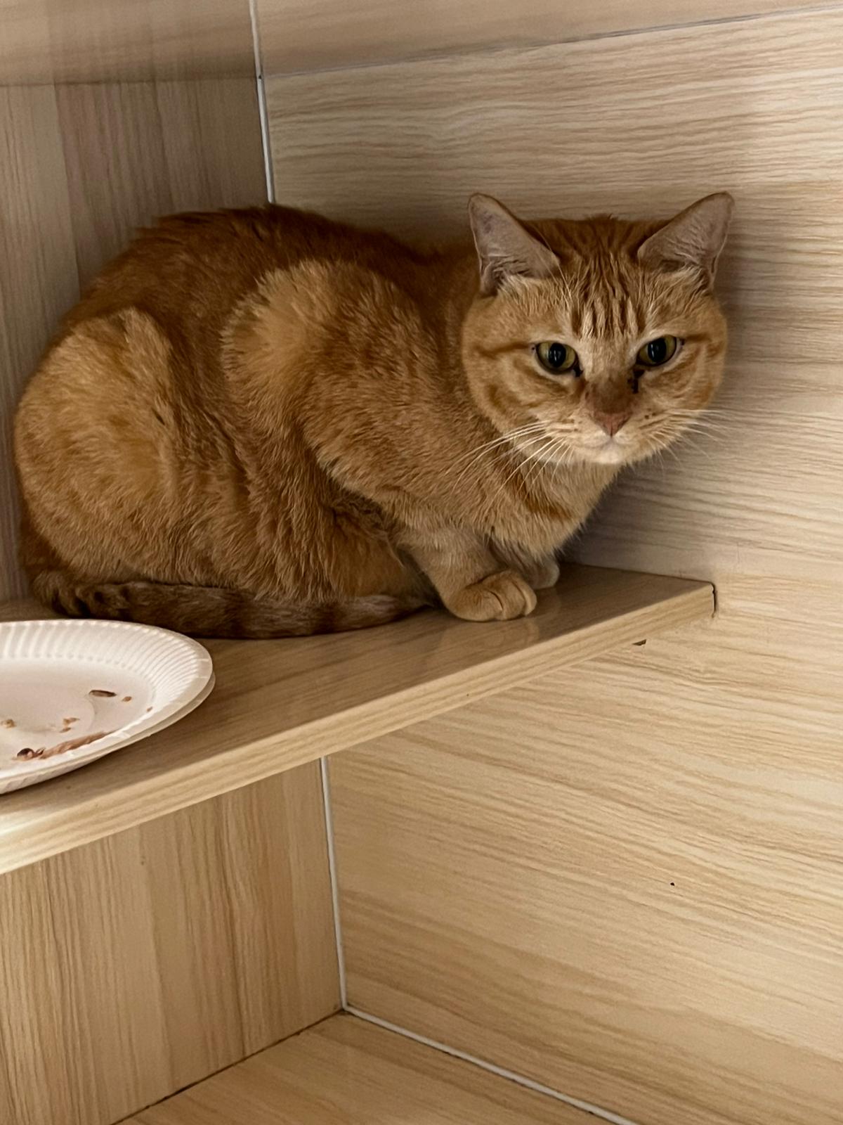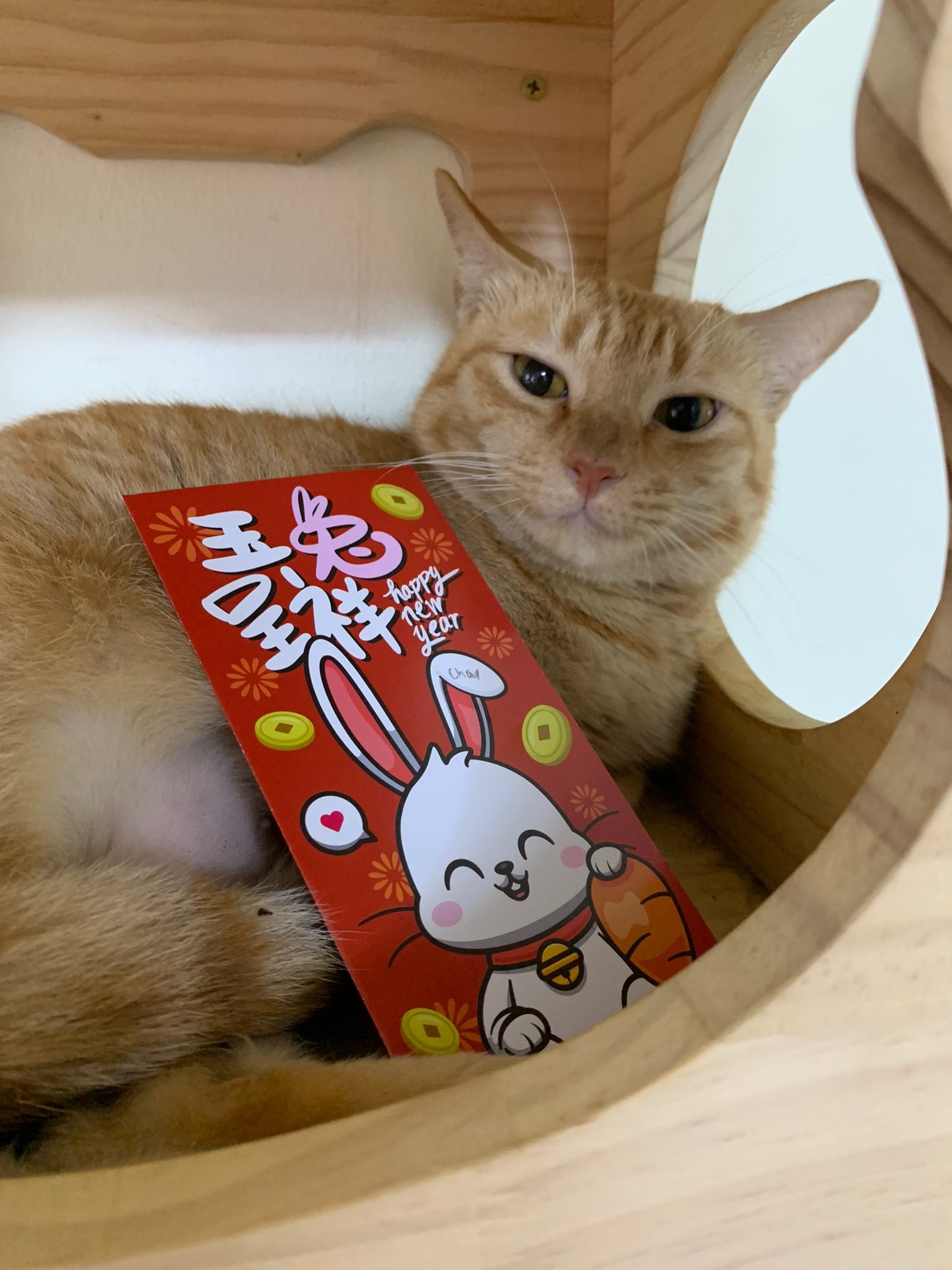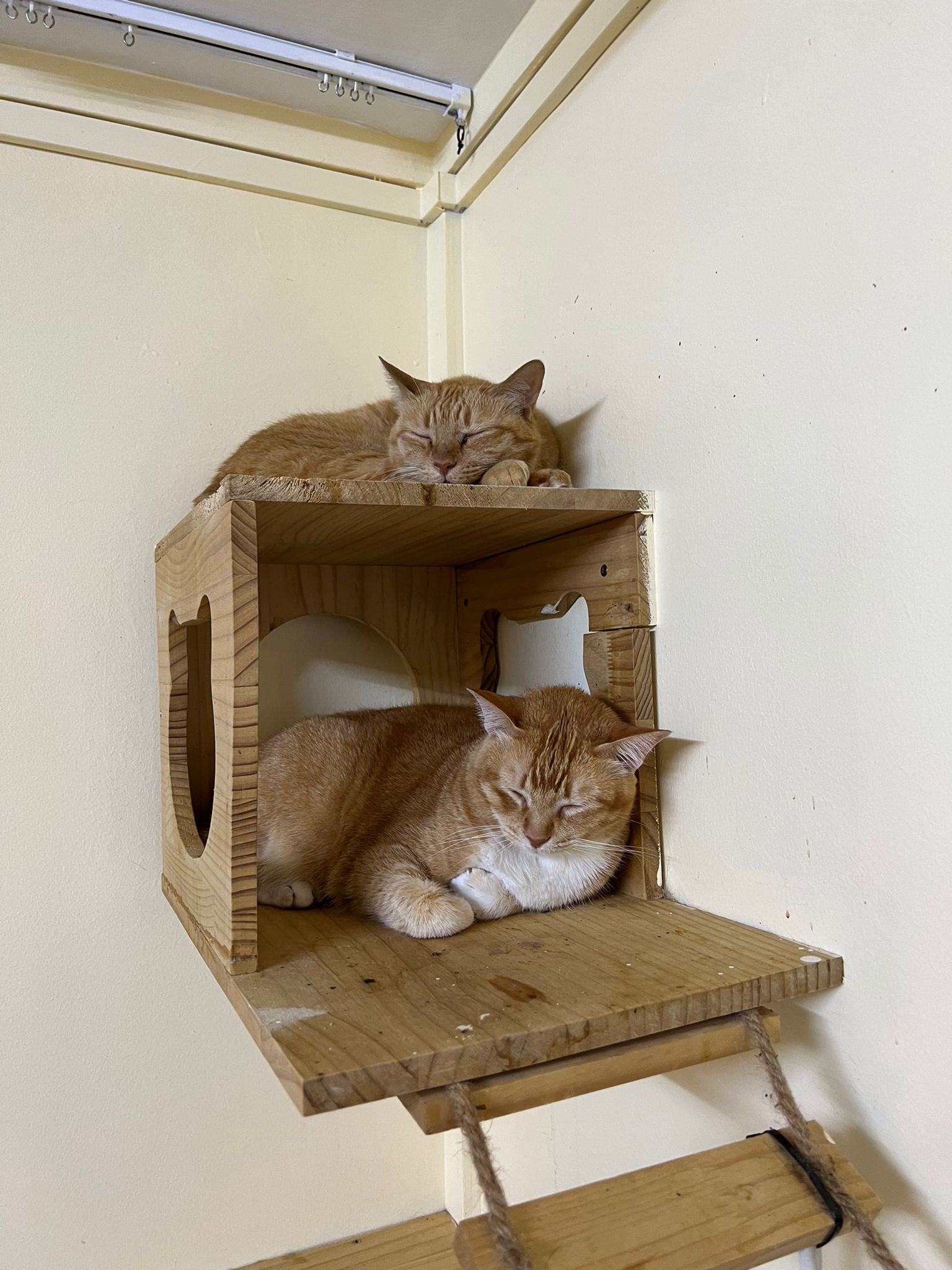8am+-2.35pm: I’m a happy mao today. I stay in 猫房 for so long. Today all the cats staying in the food room for safety air reason. Cos new room need through and proper clean up first. I carried char to the cage and she had been there n quite ok w Teddy ard. boy didn’t disturb her as much cos so many of them in the room. She still active when it’s food time
