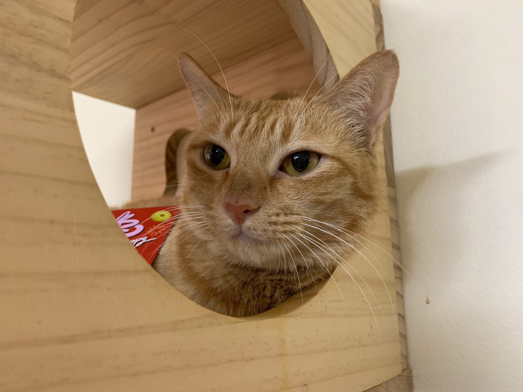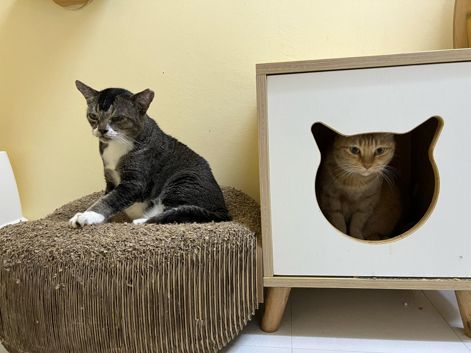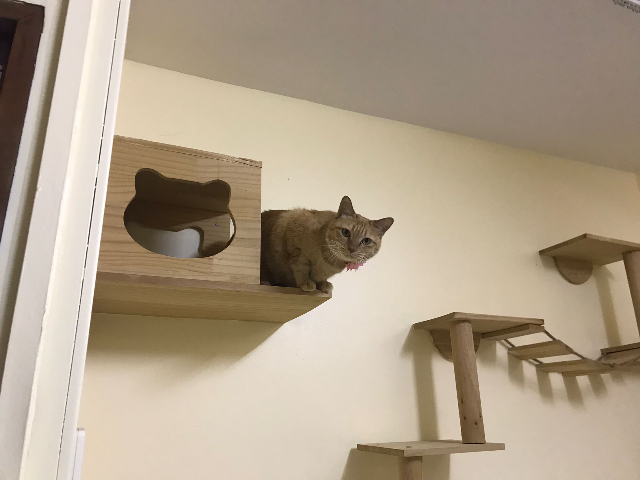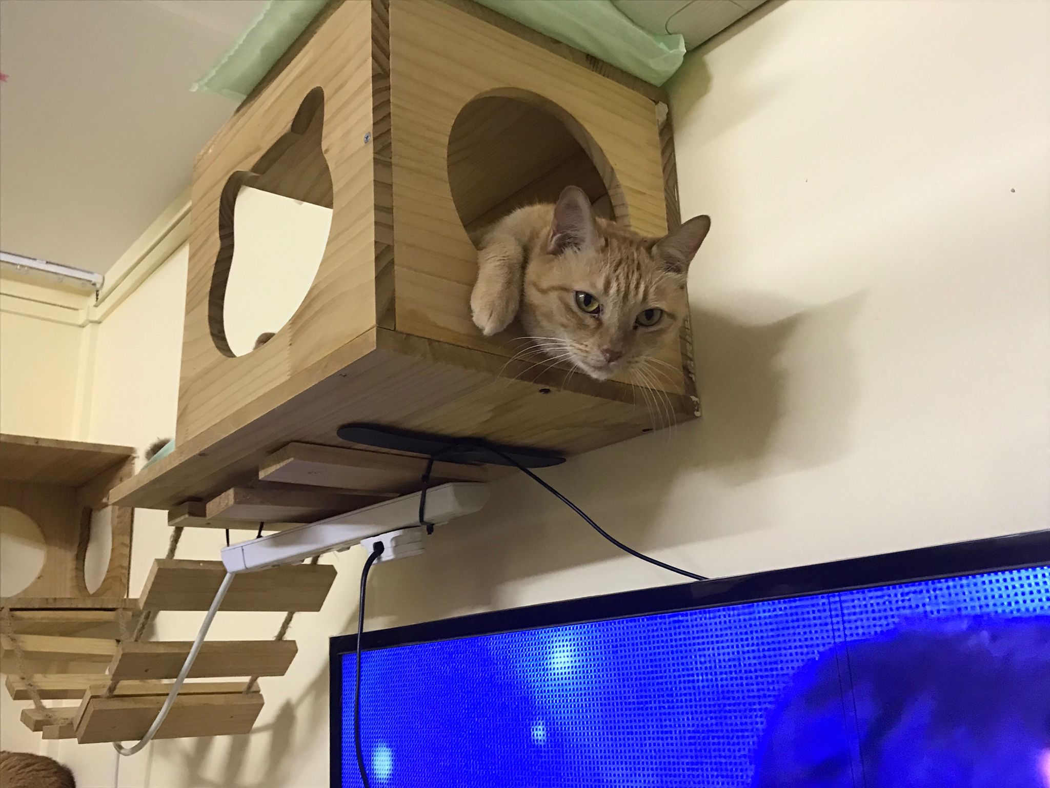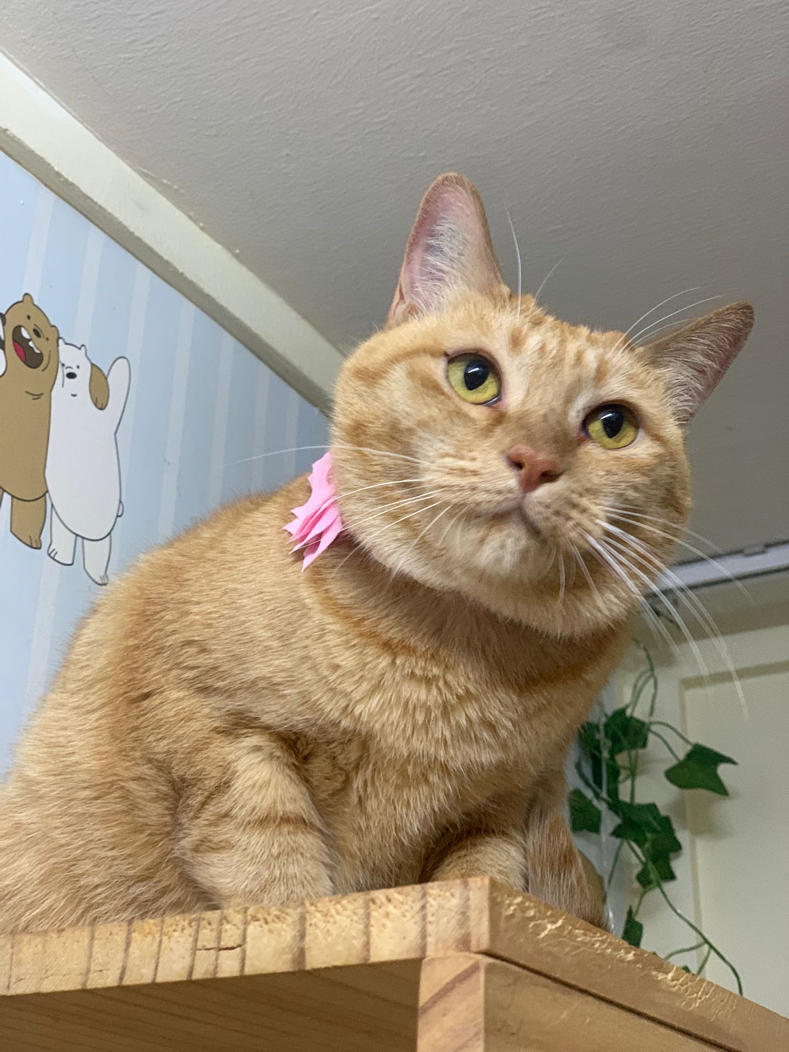 8am+-2.35pm: I’m a happy mao today. I stay in 猫房 for so long. Today all the cats staying in the food room for safety air reason. Cos new room need through and proper clean up first. I carried char to the cage and she had been there n quite ok w Teddy ard. boy didn’t disturb her as much cos so many of them in the room. She still active when it’s food time