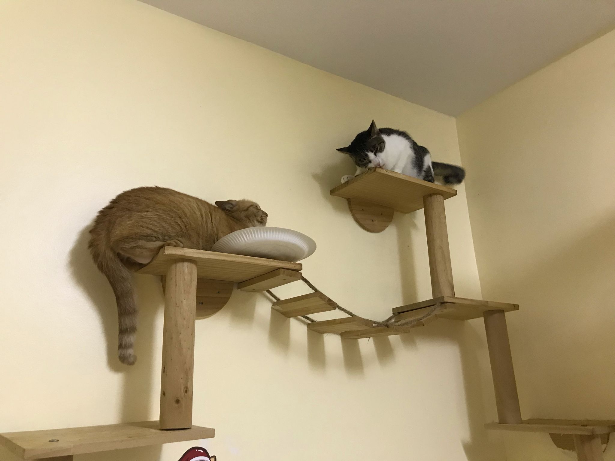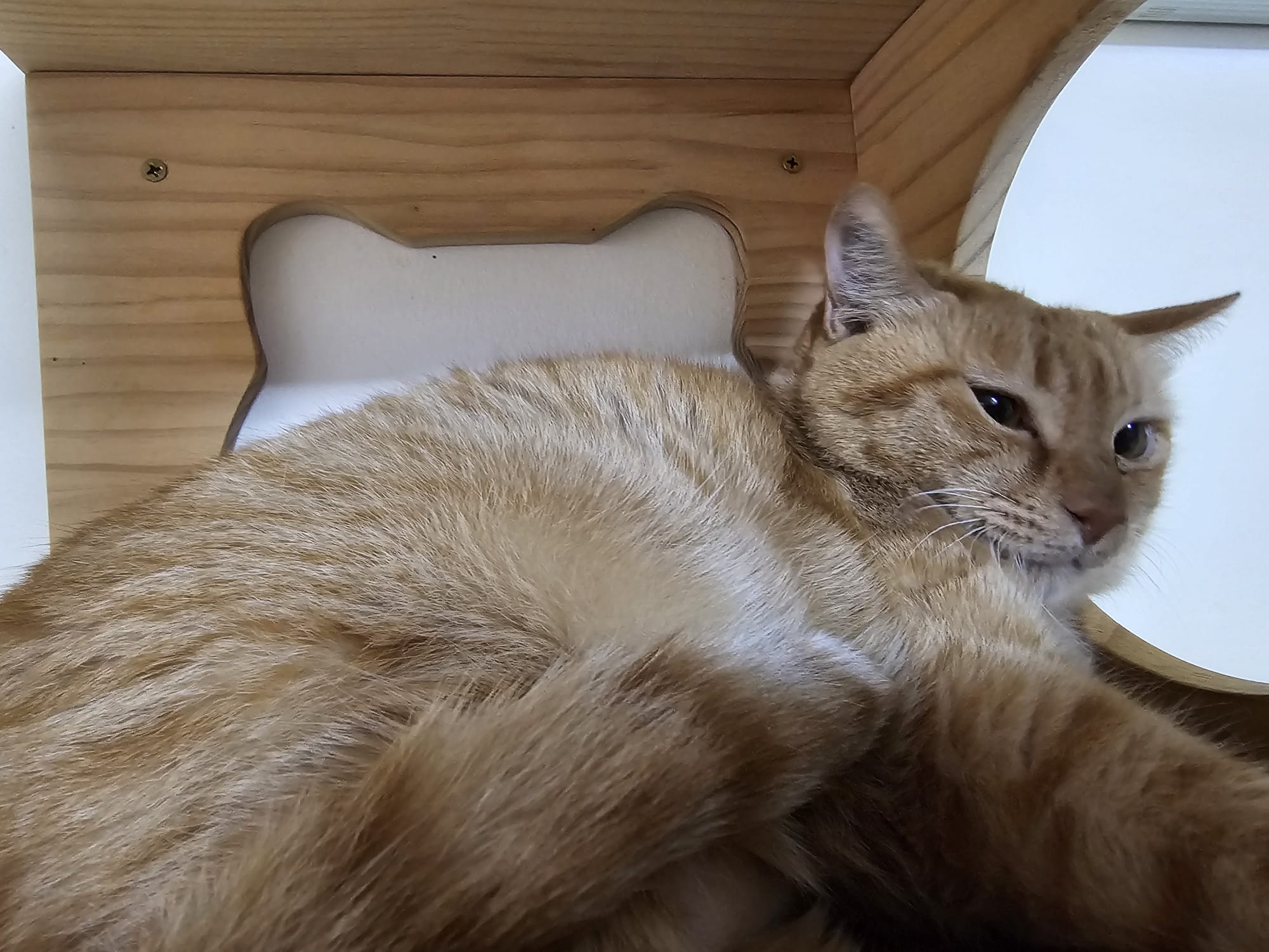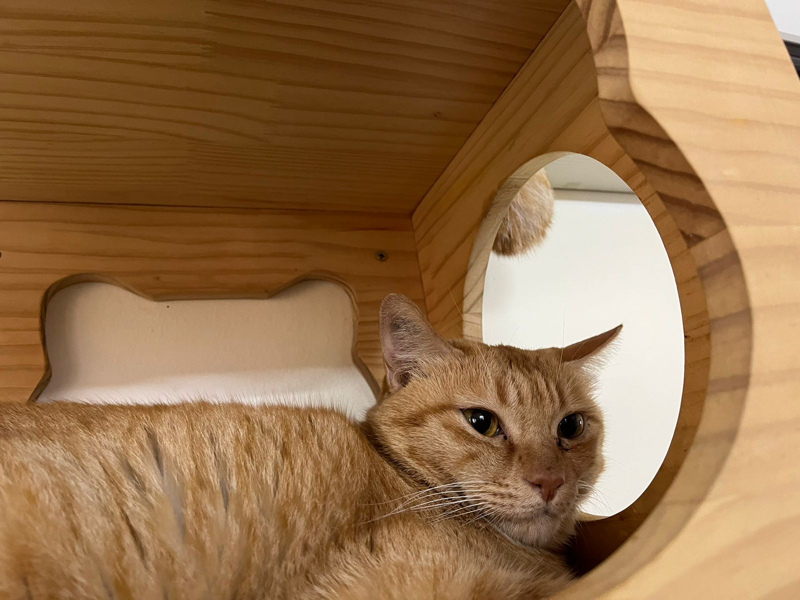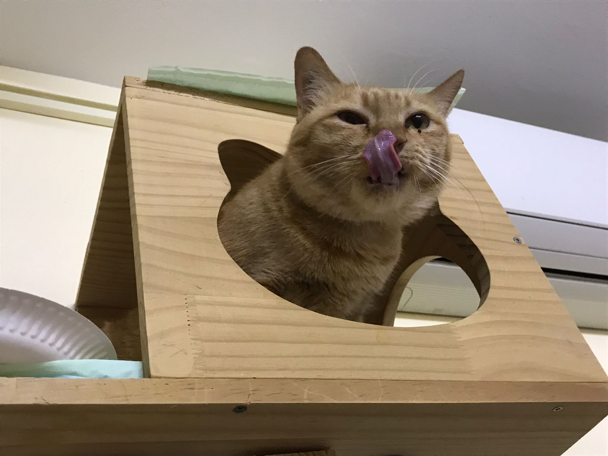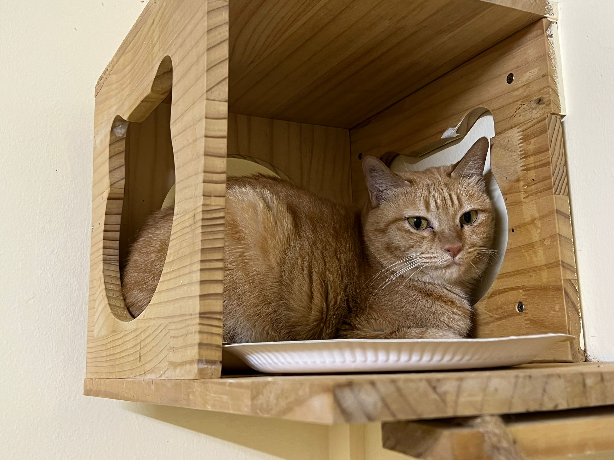 8am+-2.35pm: I’m a happy mao today. I stay in 猫房 for so long. Today all the cats staying in the food room for safety air reason. Cos new room need through and proper clean up first. I carried char to the cage and she had been there n quite ok w Teddy ard. boy didn’t disturb her as much cos so many of them in the room. She still active when it’s food time