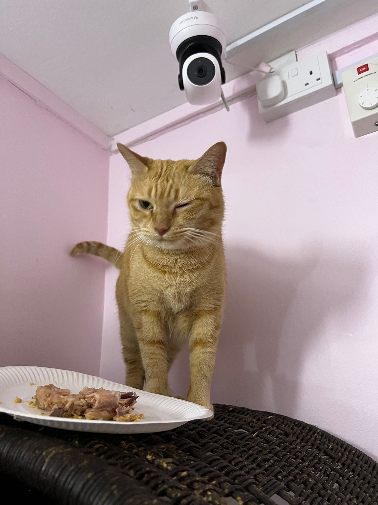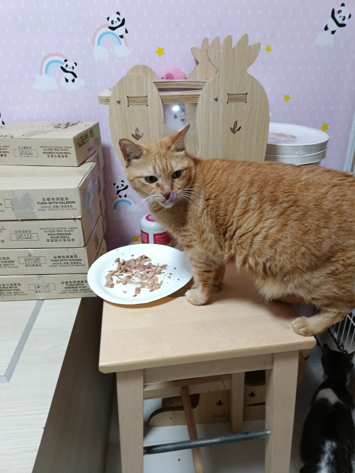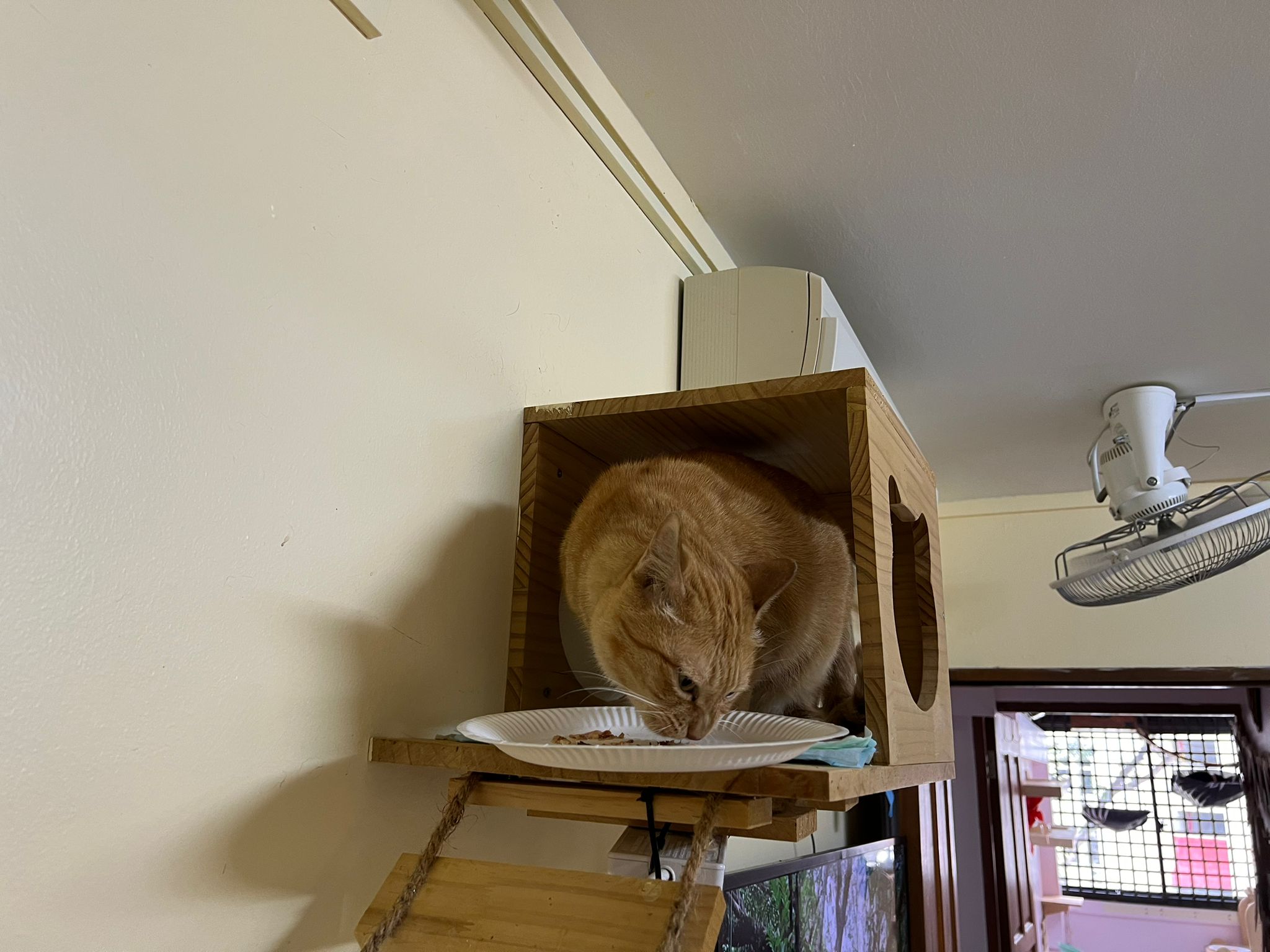 930pm: given a can of tuna w chicken ham – got eat. Want me sayang and will meow if I didn’t go in. But after some time she realise I got to go feed the rest she know I can’t access her room alr.