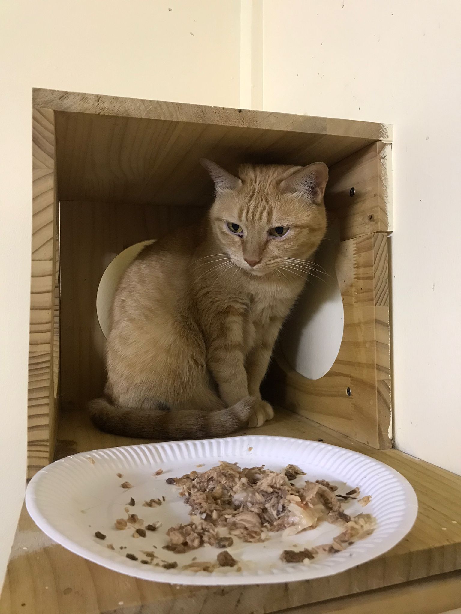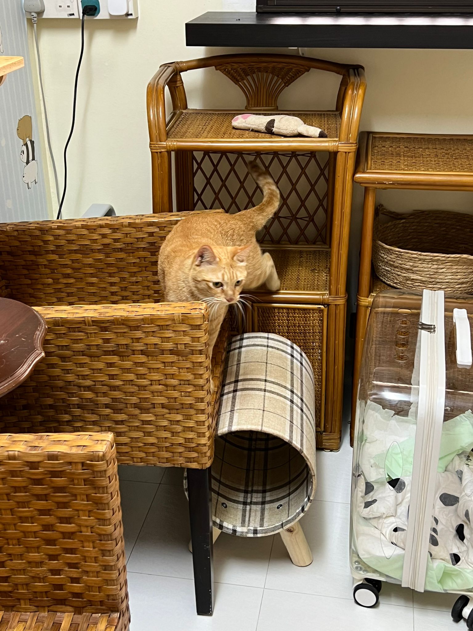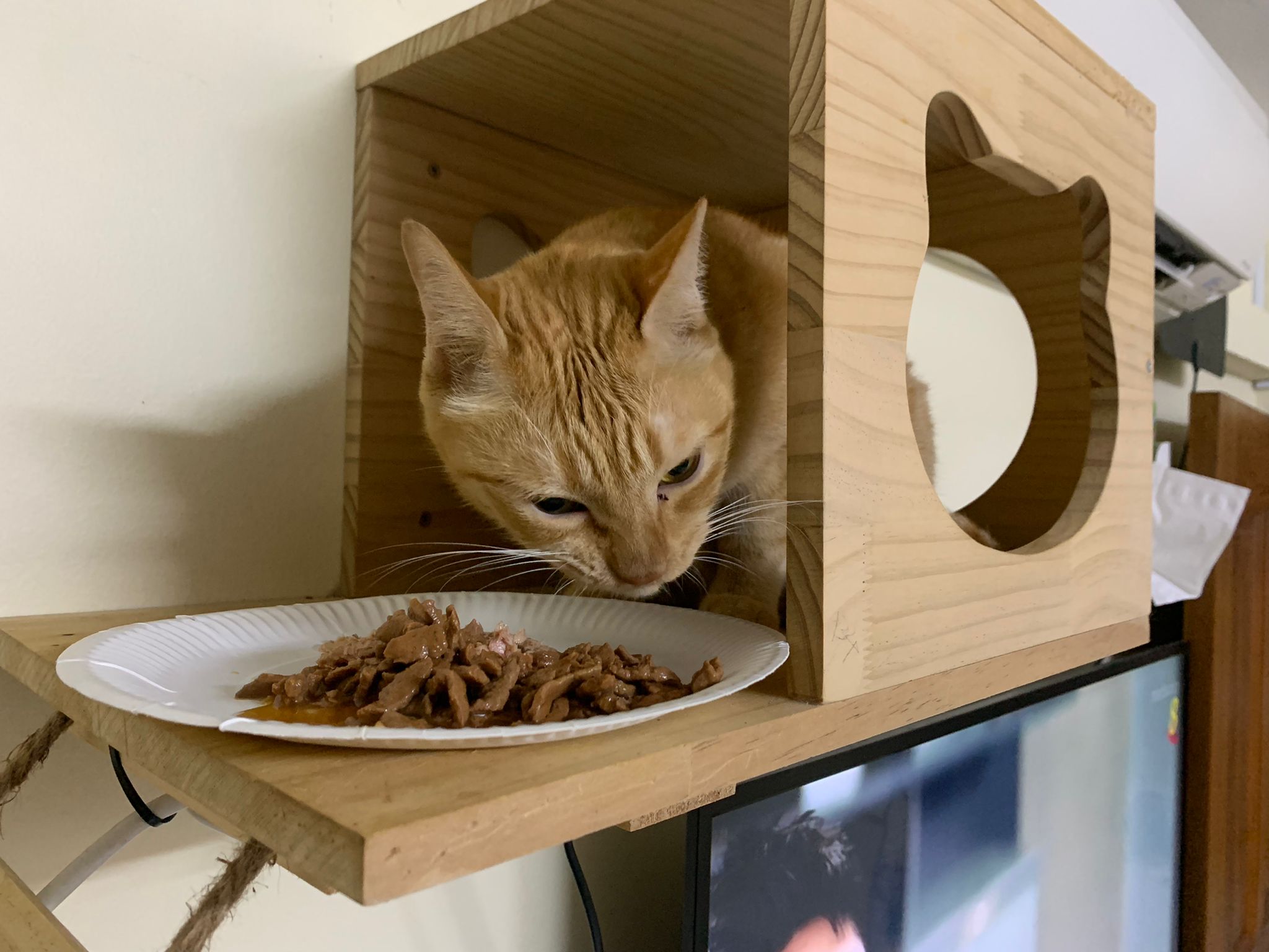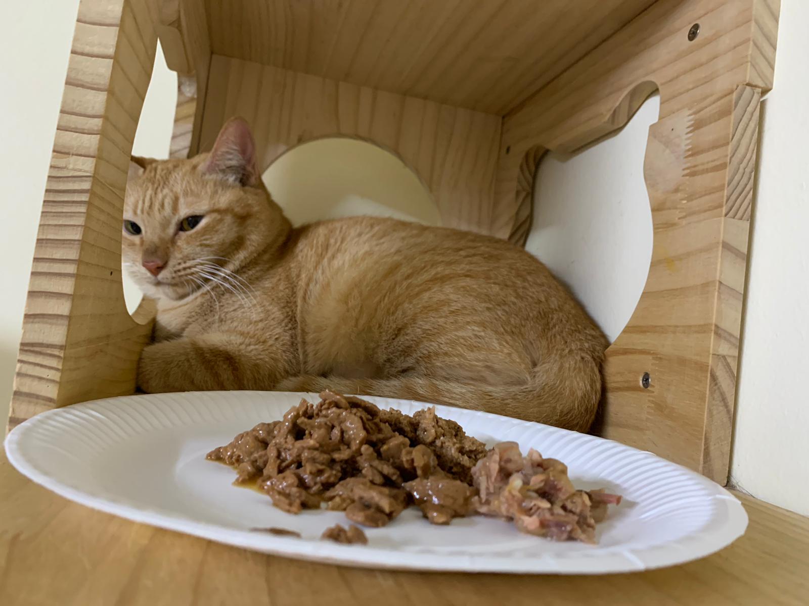 930pm: given a can of tuna w chicken ham – got eat. Want me sayang and will meow if I didn’t go in. But after some time she realise I got to go feed the rest she know I can’t access her room alr.