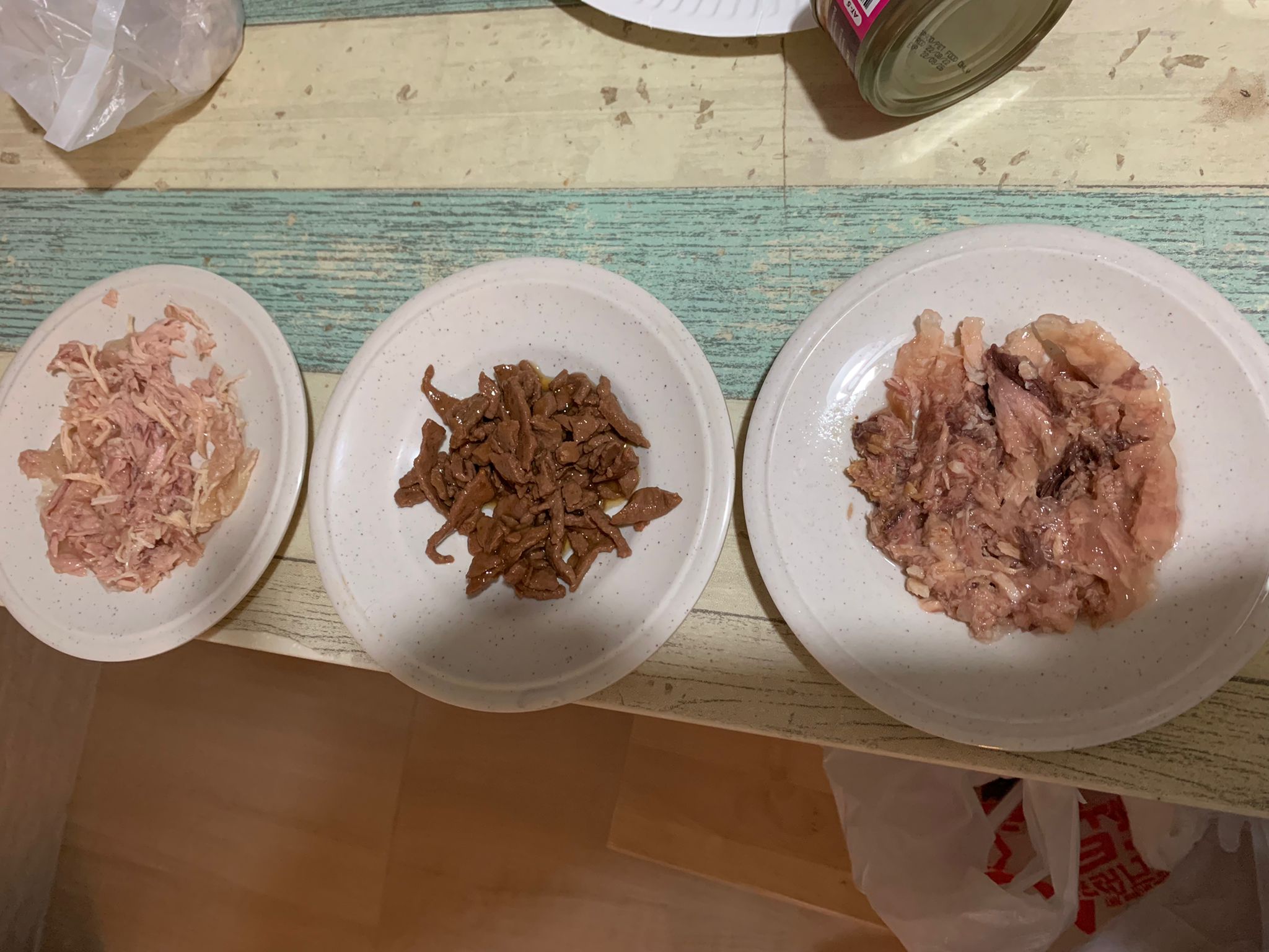 Serve 3 food – urinary, tuna w chicken ham (she obviously like this) and kakato tuna w chicken (wa this lose to the other 2)