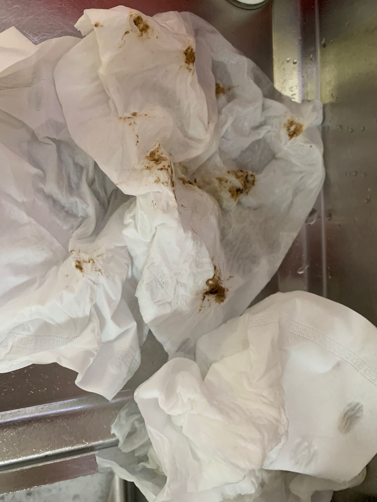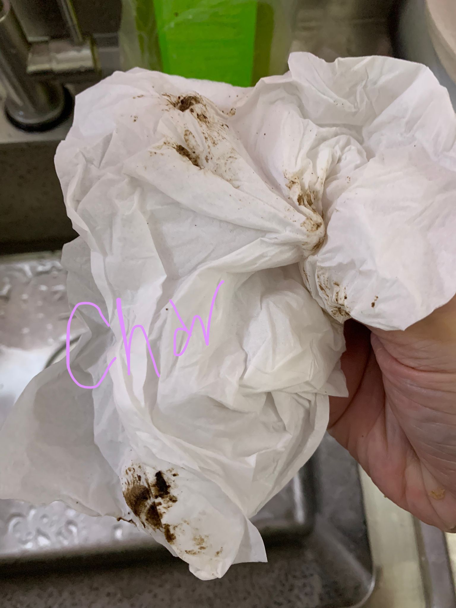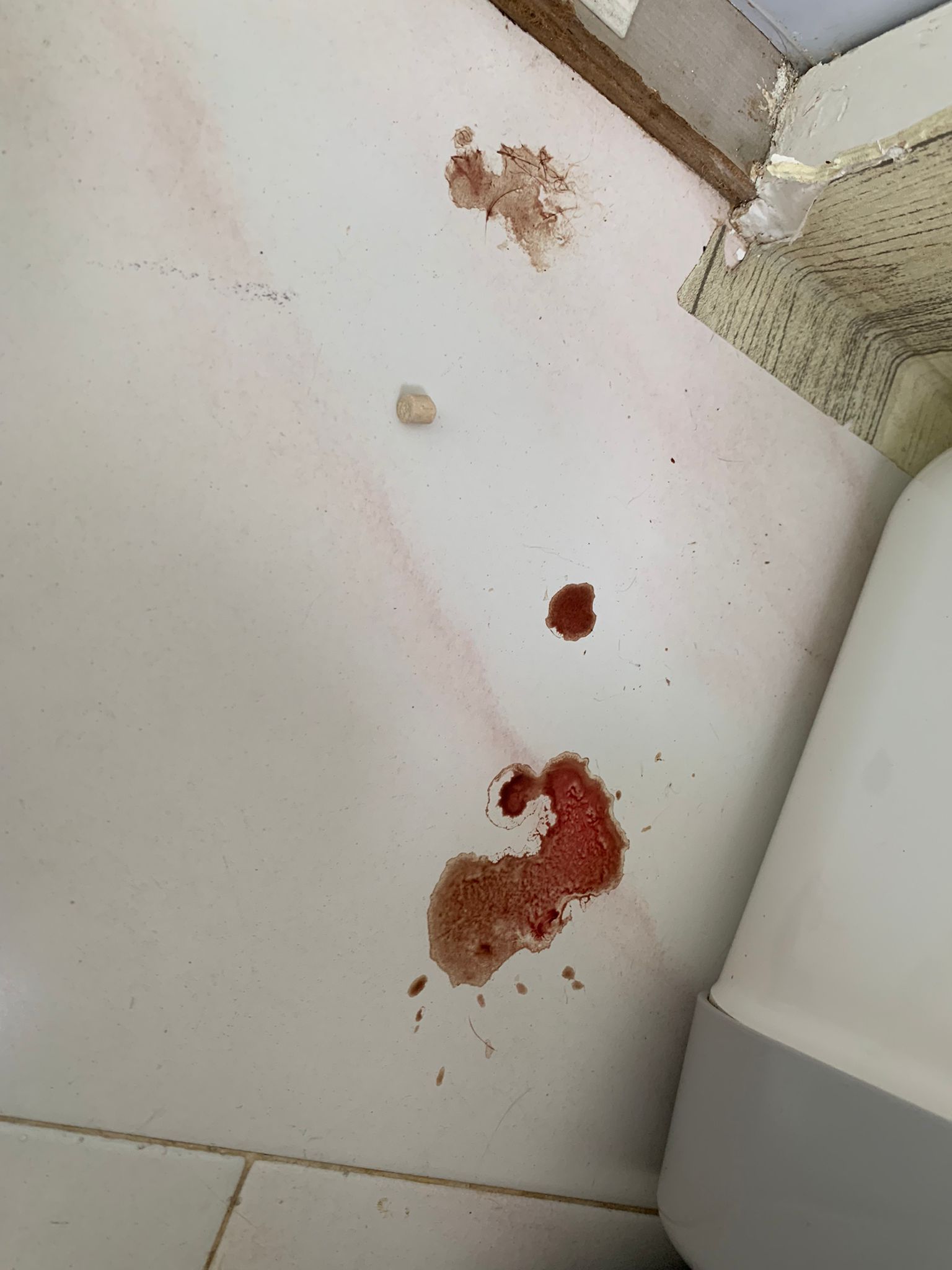 847am: mummy:”She walked to toilet on her own to pee pee so I left her inside. This morning cleared 1 poop and 3 pee.“ – all got bloods. When I fetch her got new blood again.