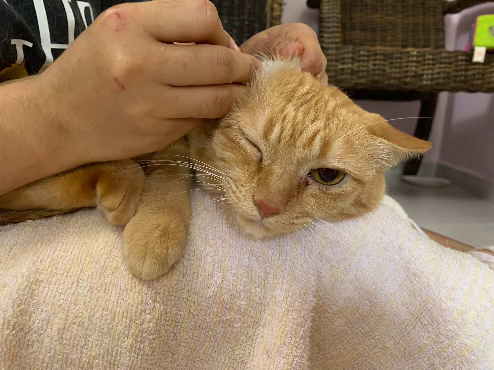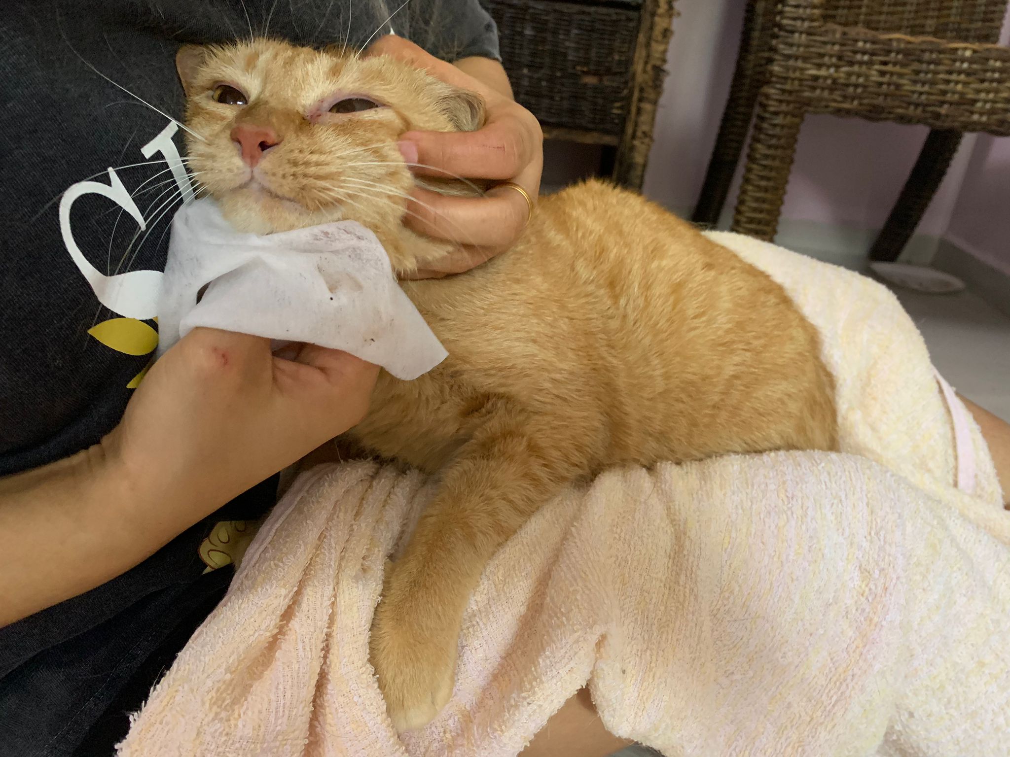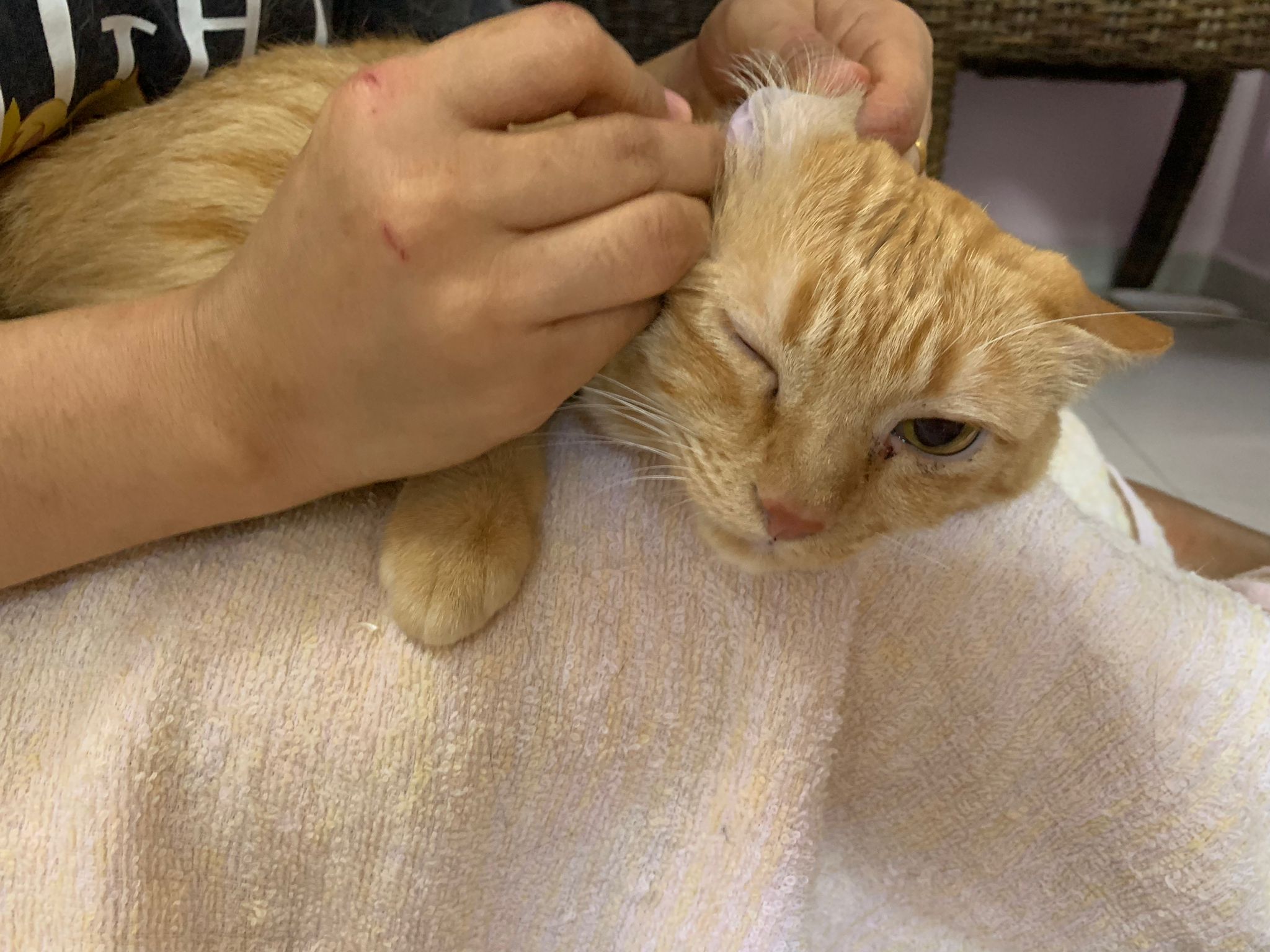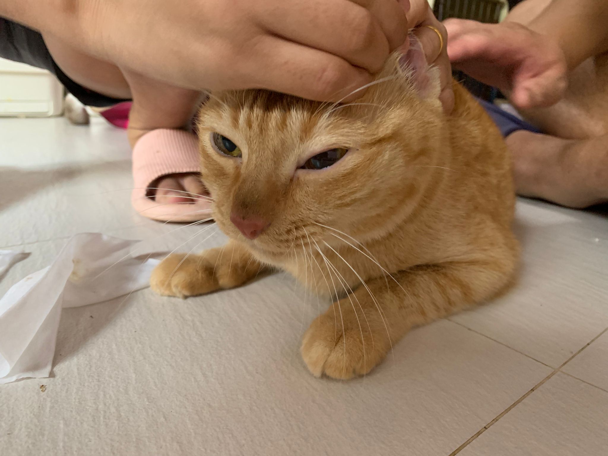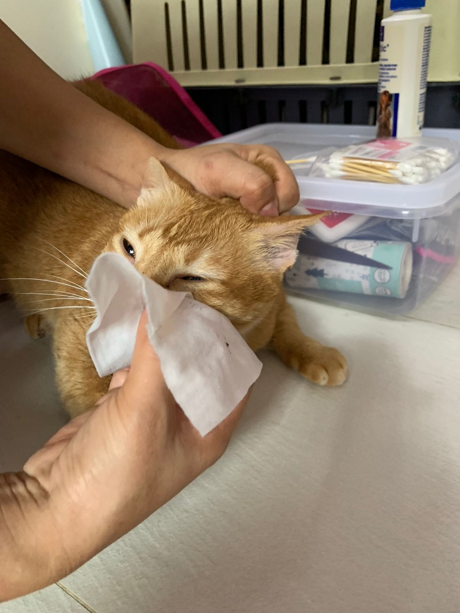 Morning: Left eye got discharge, sayang n clean for her. Told her mon she is going to stay in the iso room w Mimi, rena, Ps and Teddy cos we changing aircons. Clean her ears will get angry wor, but don’t attack