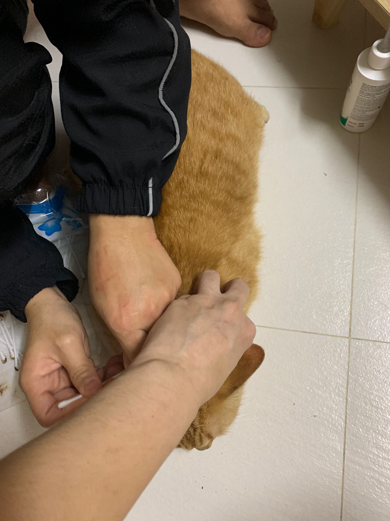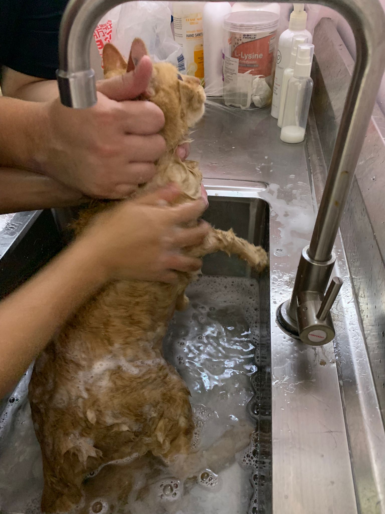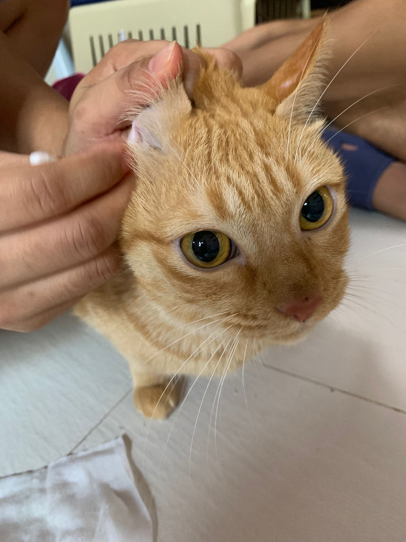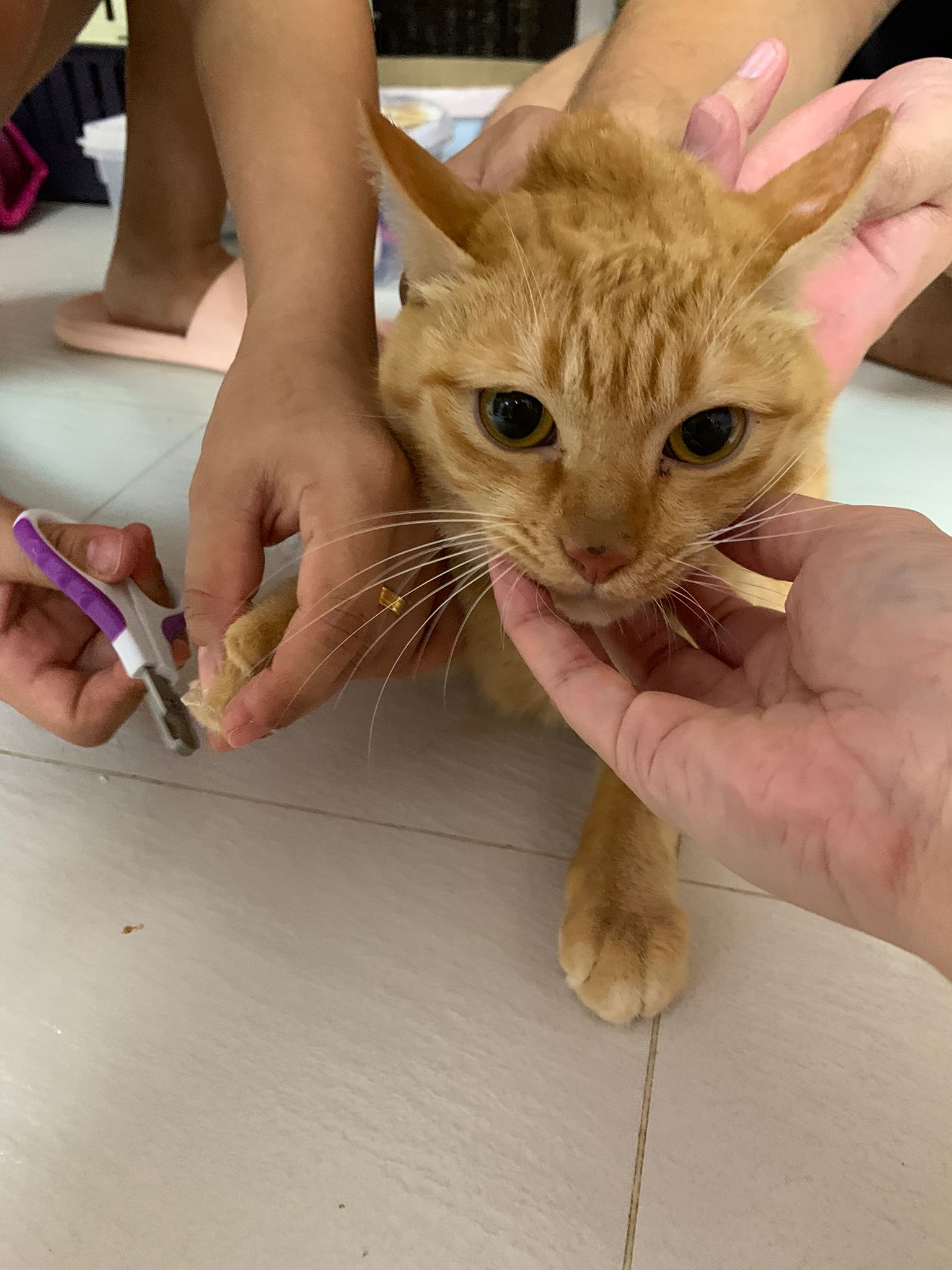 Morning: Left eye got discharge, sayang n clean for her. Told her mon she is going to stay in the iso room w Mimi, rena, Ps and Teddy cos we changing aircons. Clean her ears will get angry wor, but don’t attack