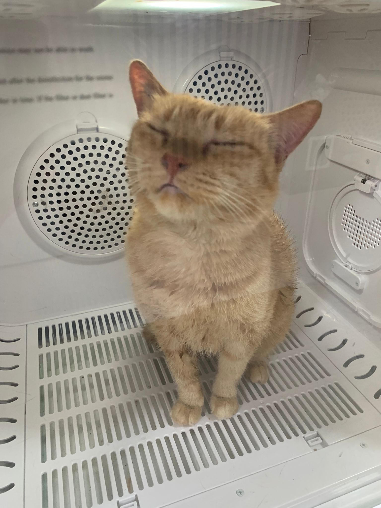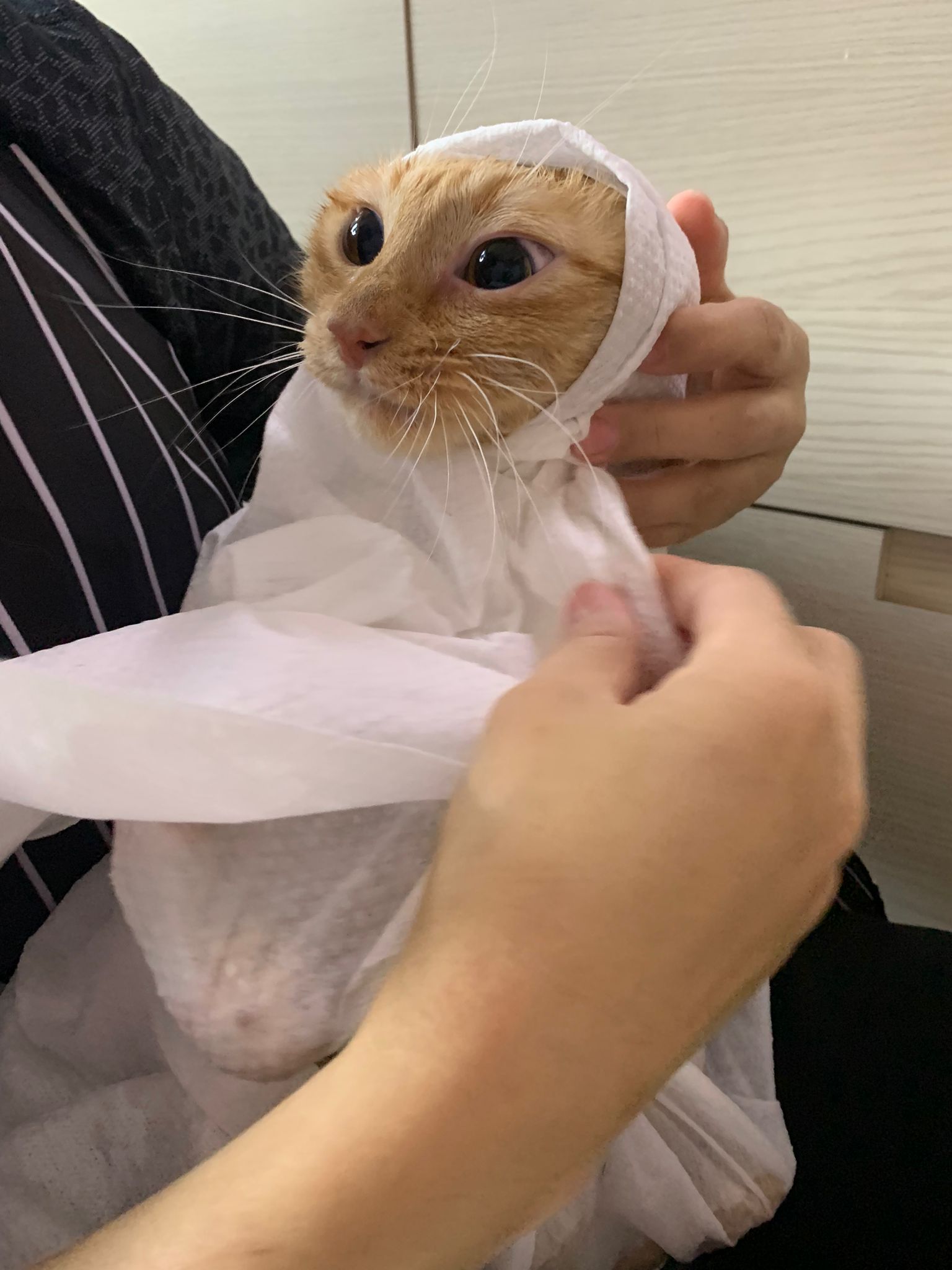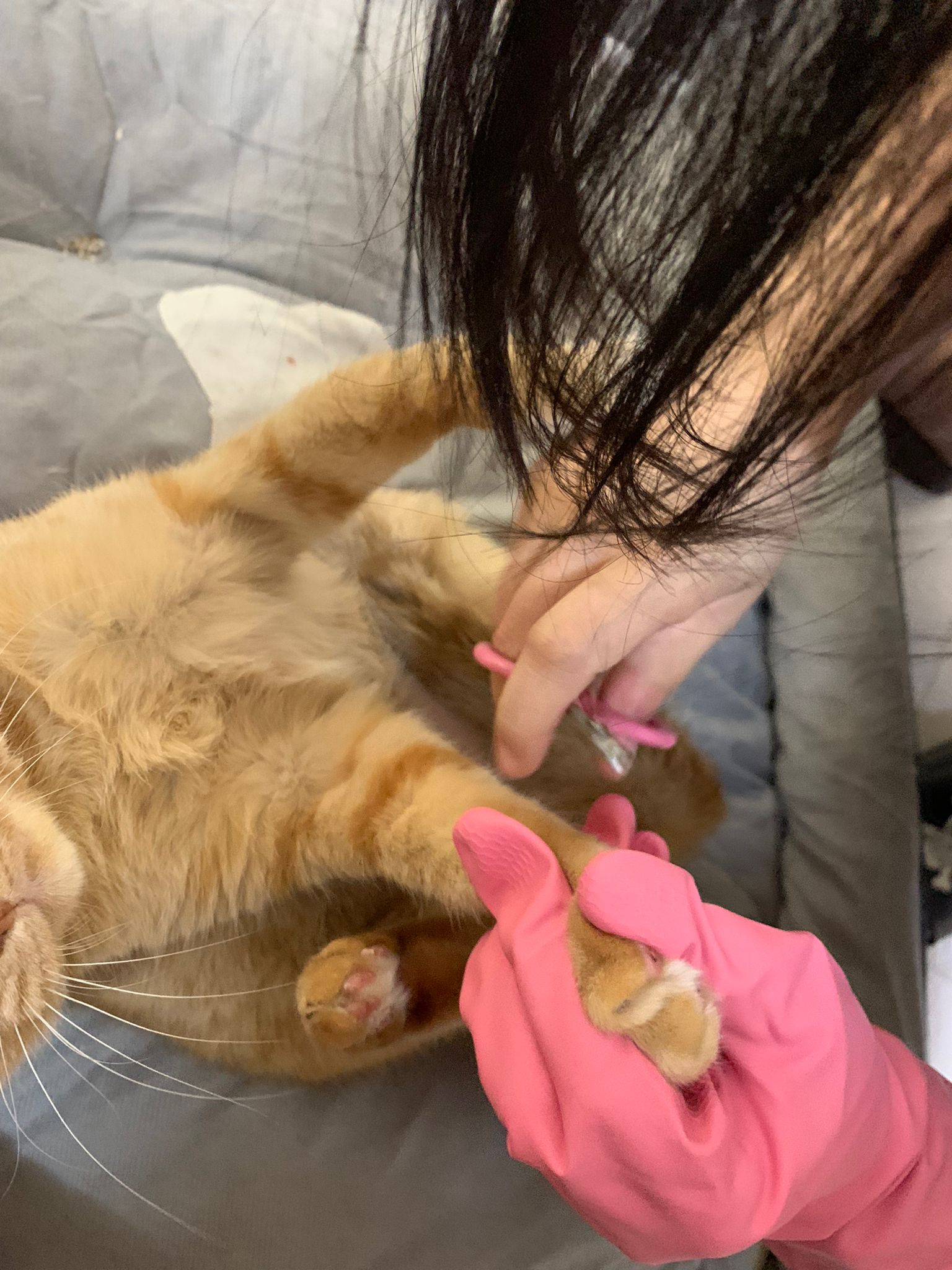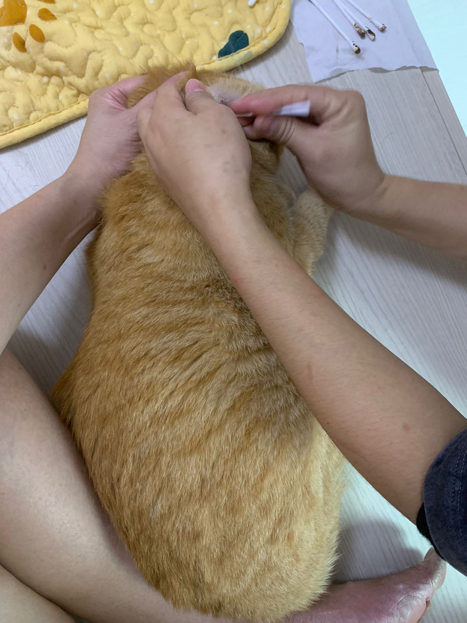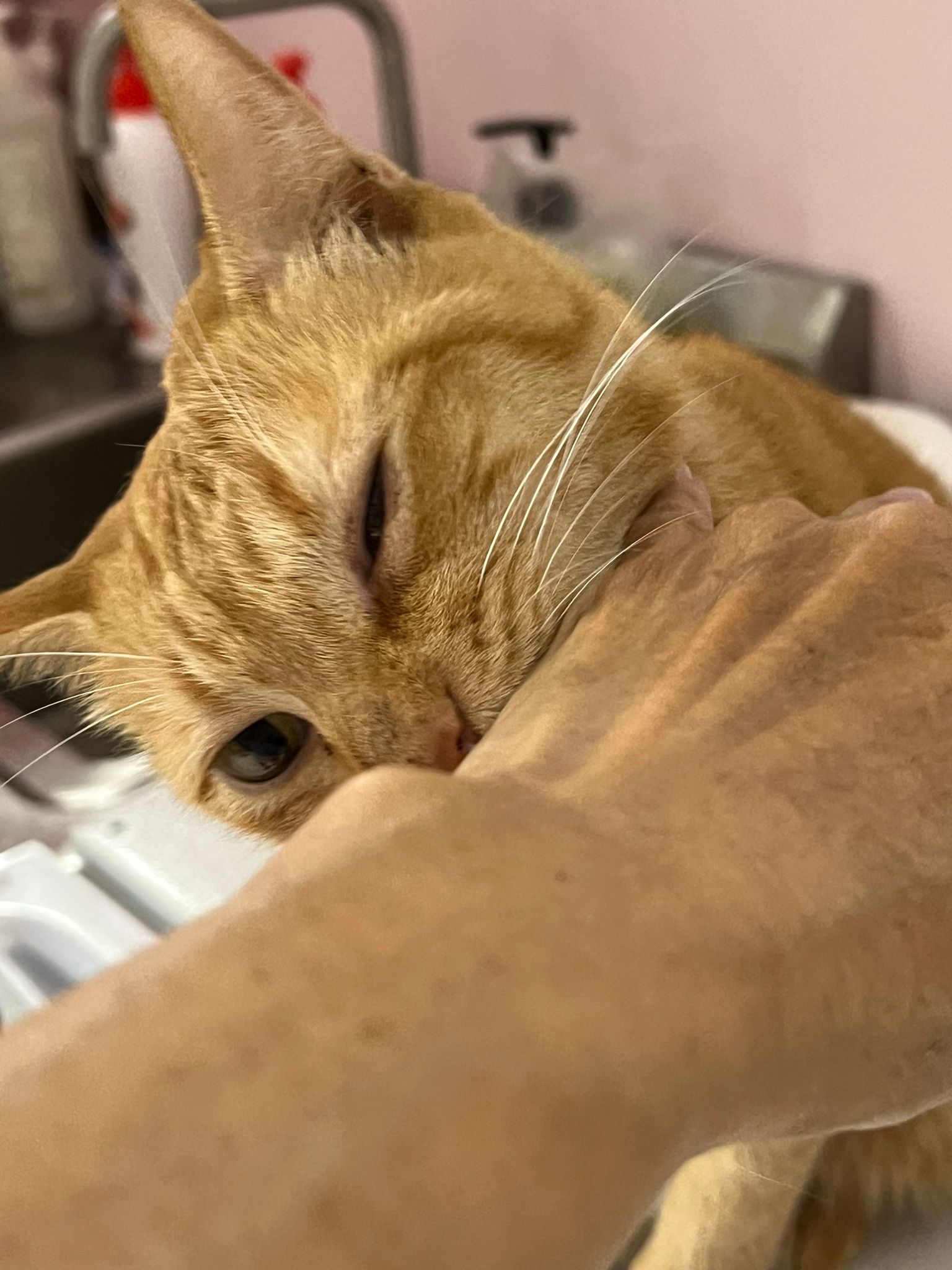 Morning: Left eye got discharge, sayang n clean for her. Told her mon she is going to stay in the iso room w Mimi, rena, Ps and Teddy cos we changing aircons. Clean her ears will get angry wor, but don’t attack