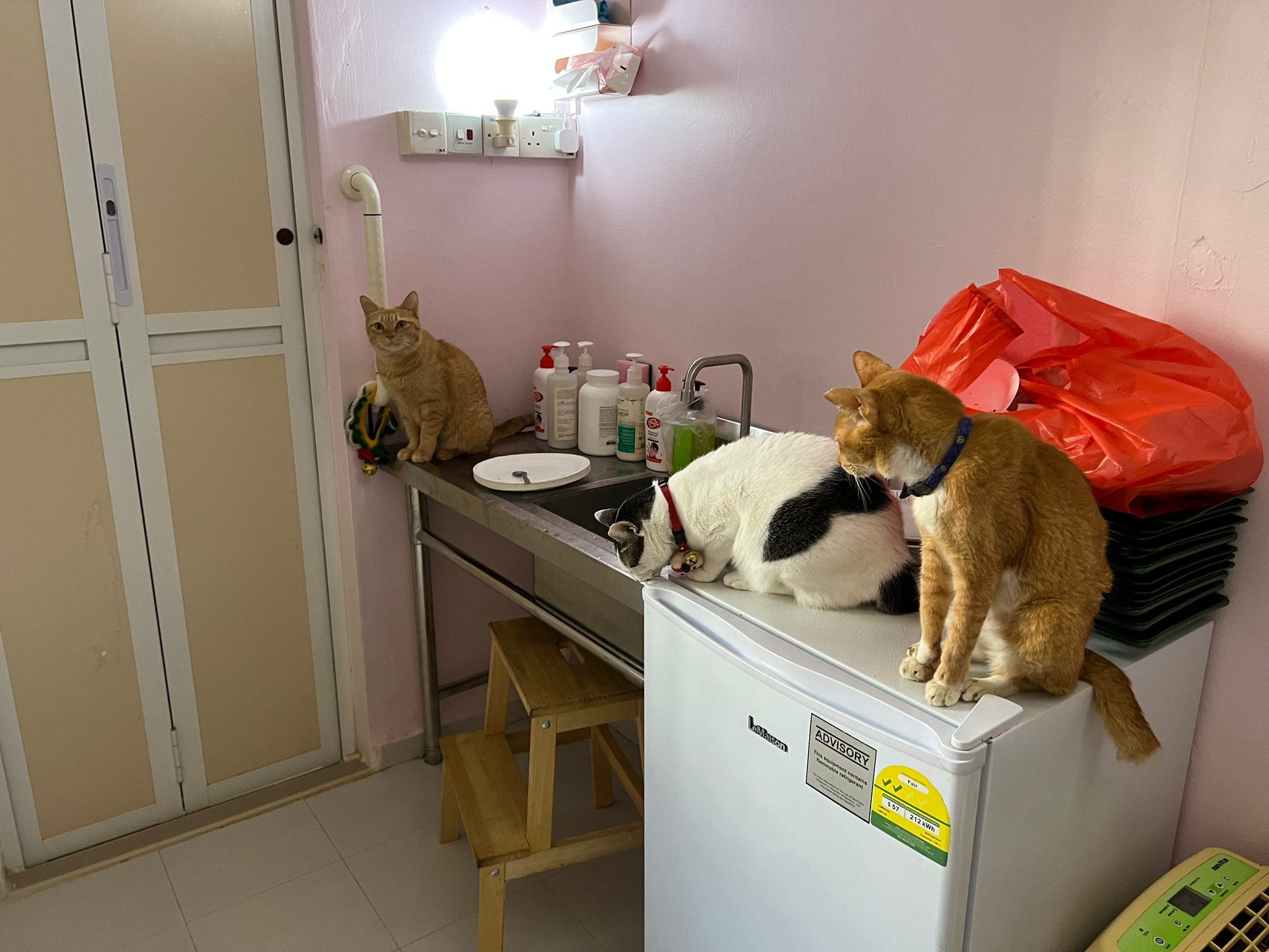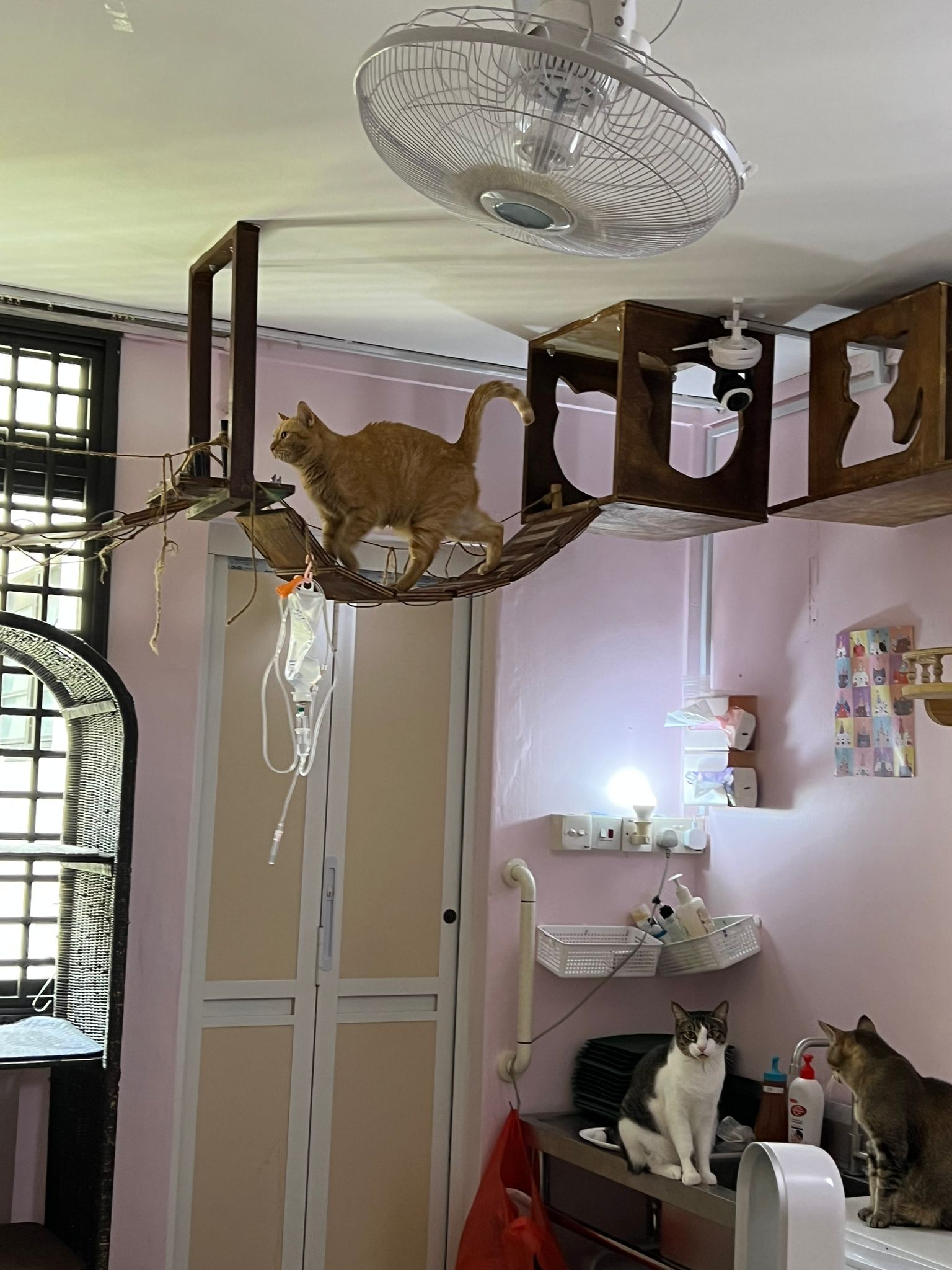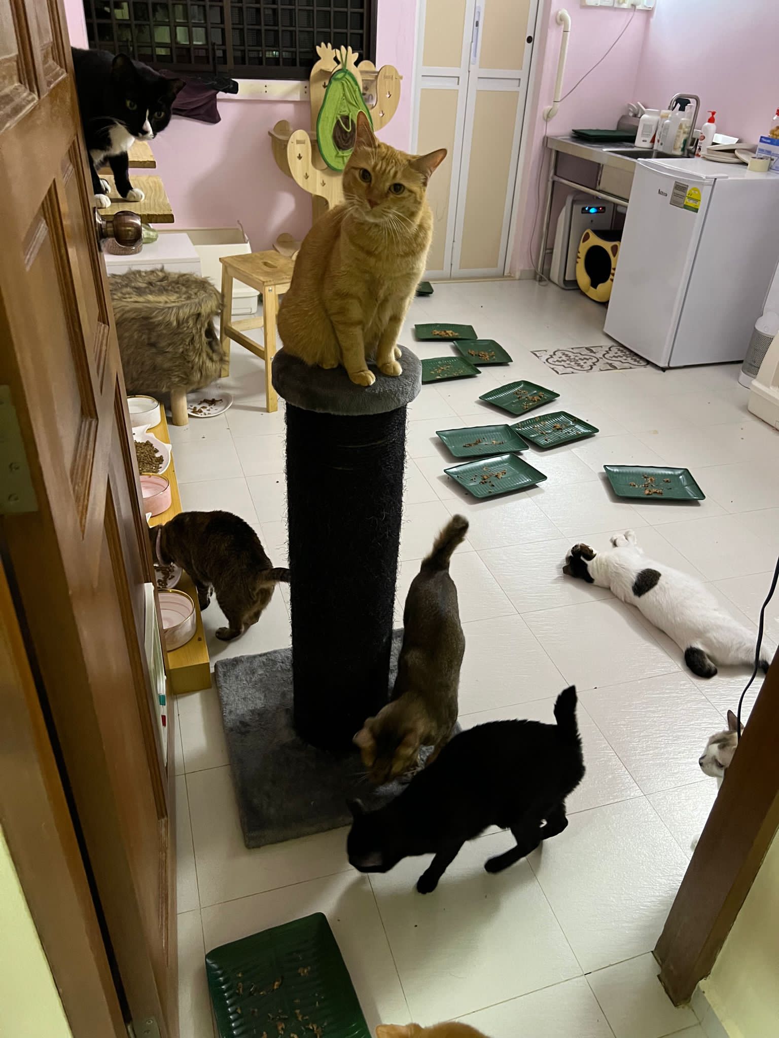 11am+: I go back 猫房 try to tell everyone n sayang everyone that ah mao love them and pamper them but I can’t come so frequent le, even come have to do medi n leave, they know I’m worry and love them can le. Sayang her a little cos she is so high up, serve some food for her when I leave