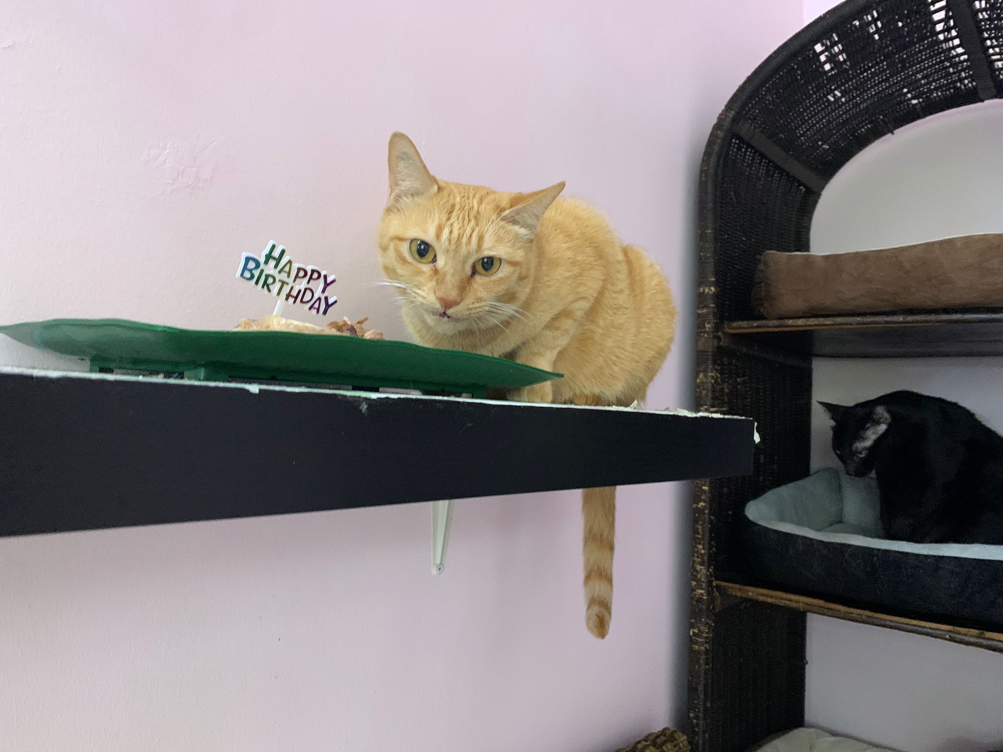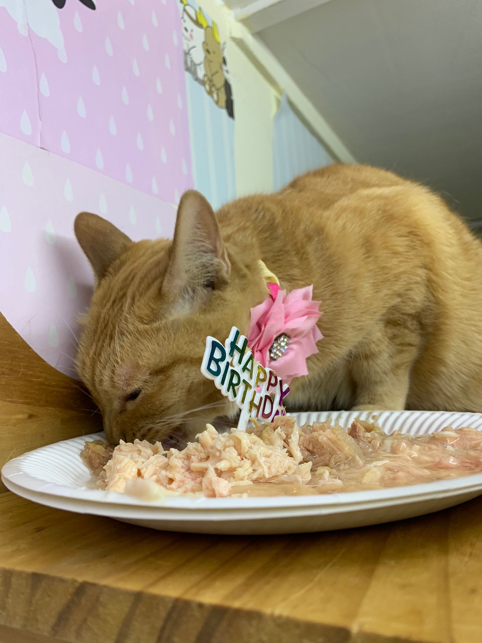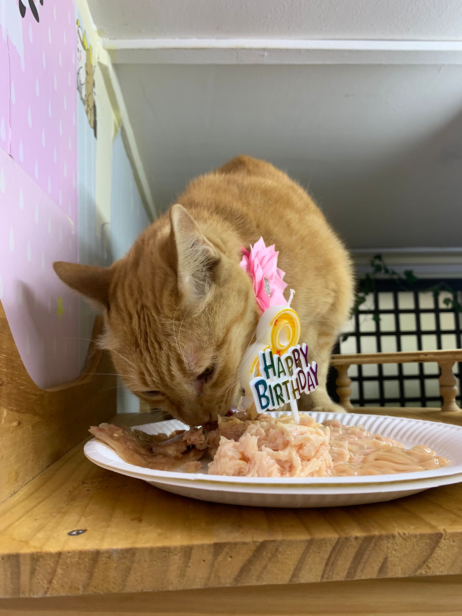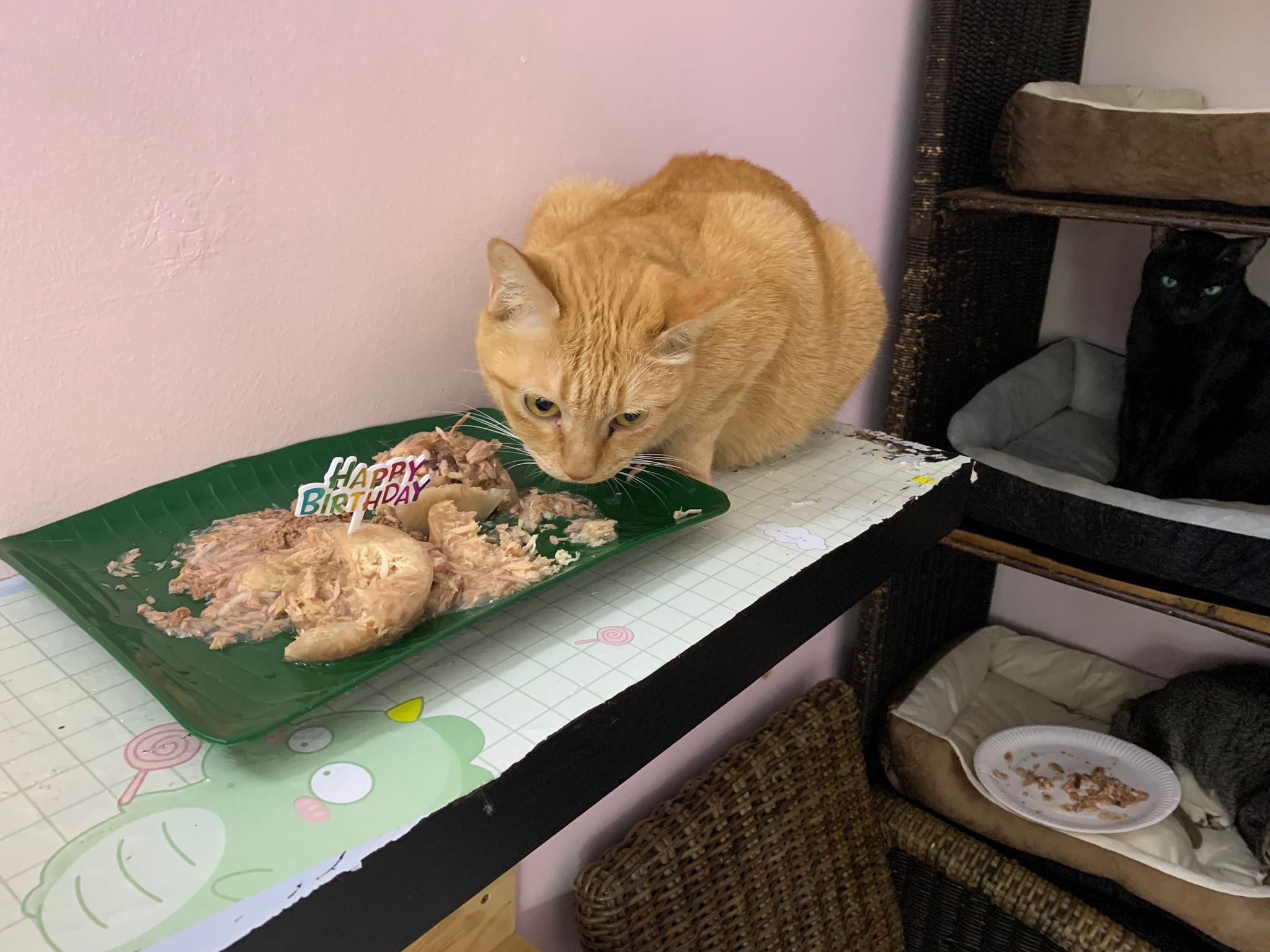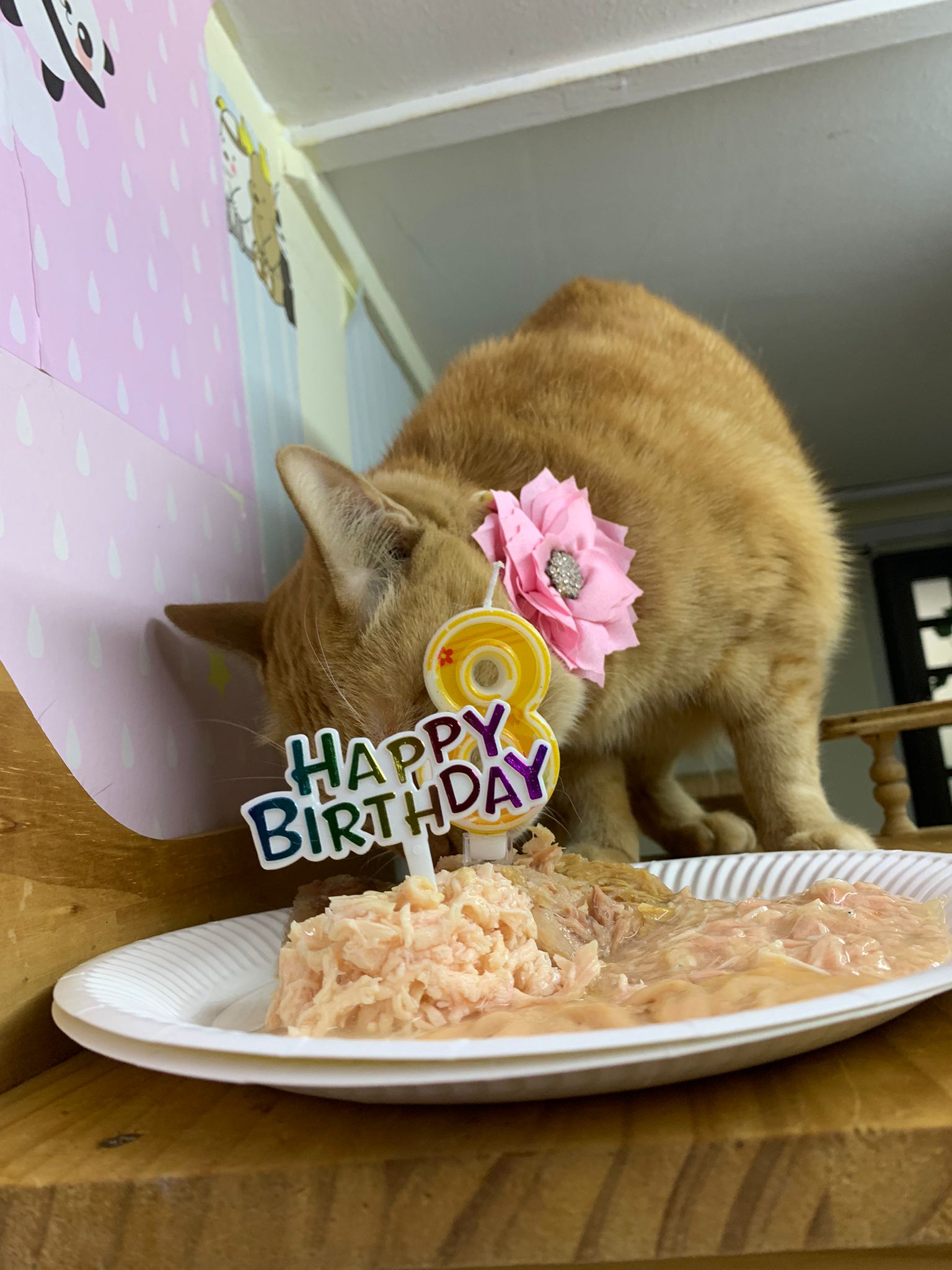 Morning: Amber sunshine Sunny bday… char meow at me to give her a share of the many cakes