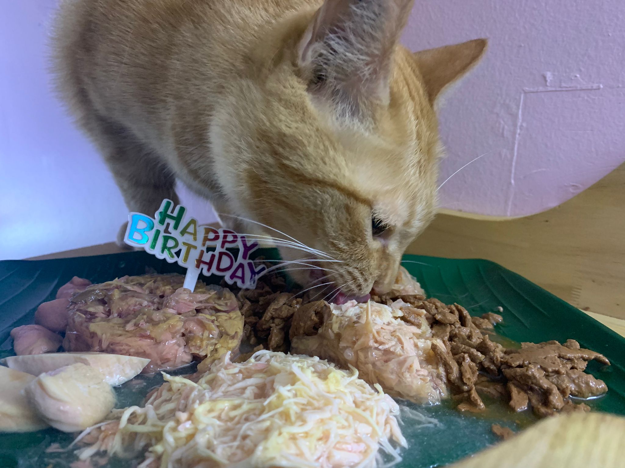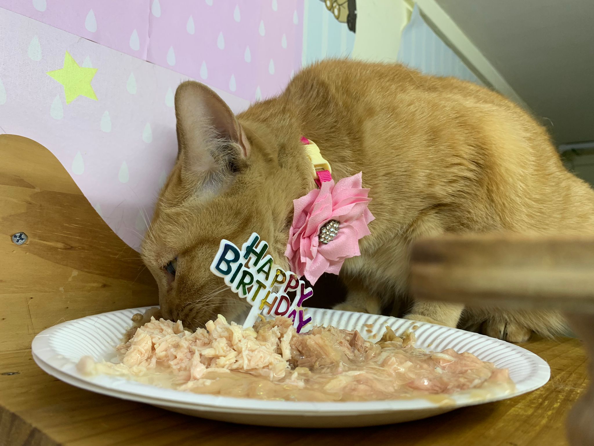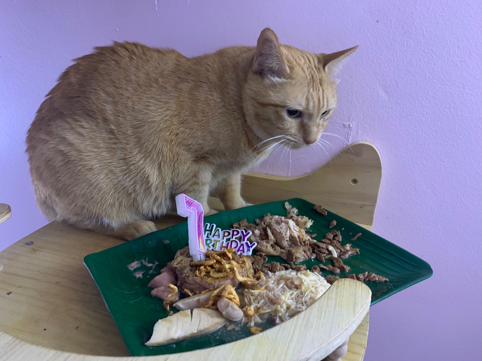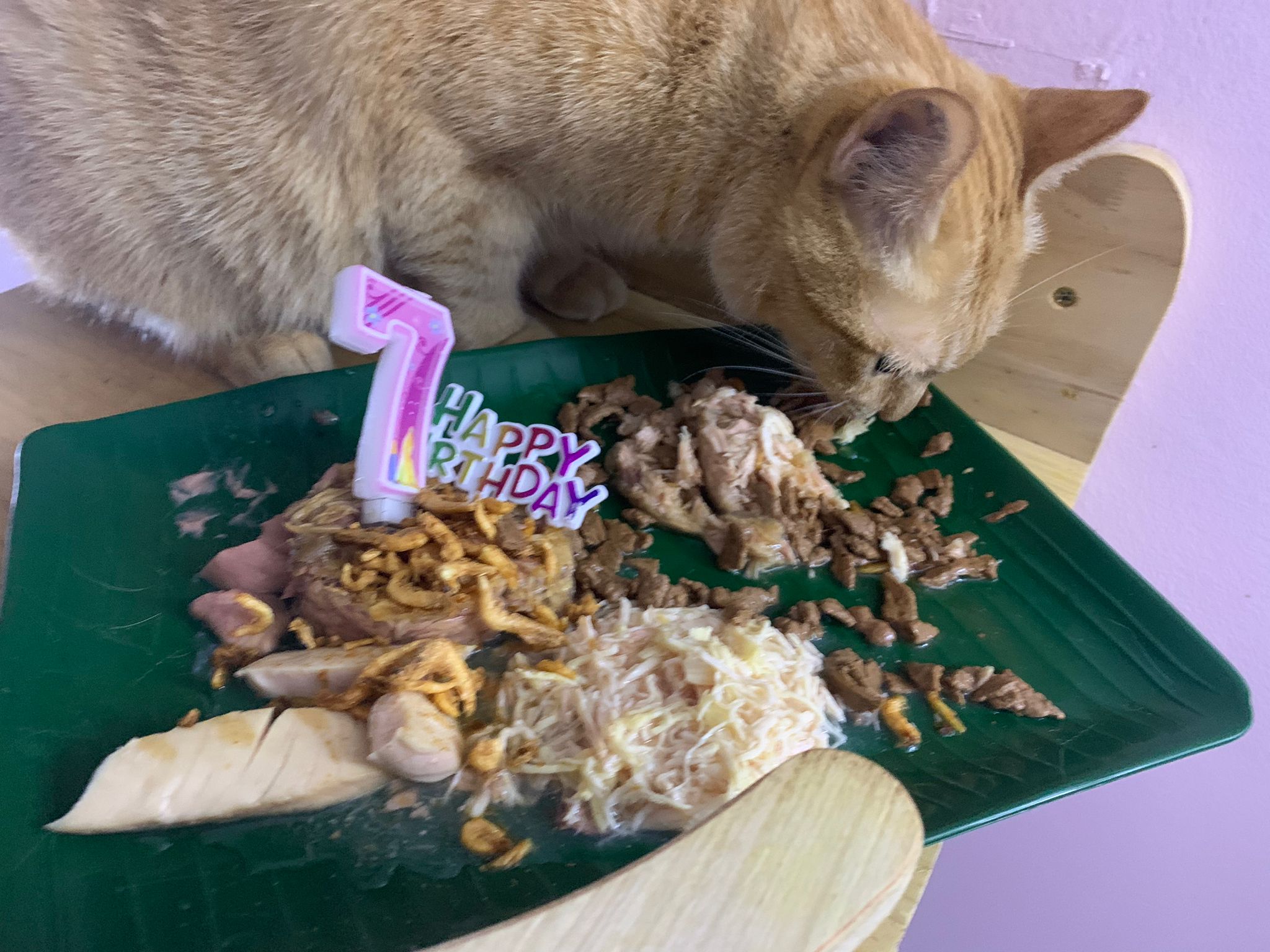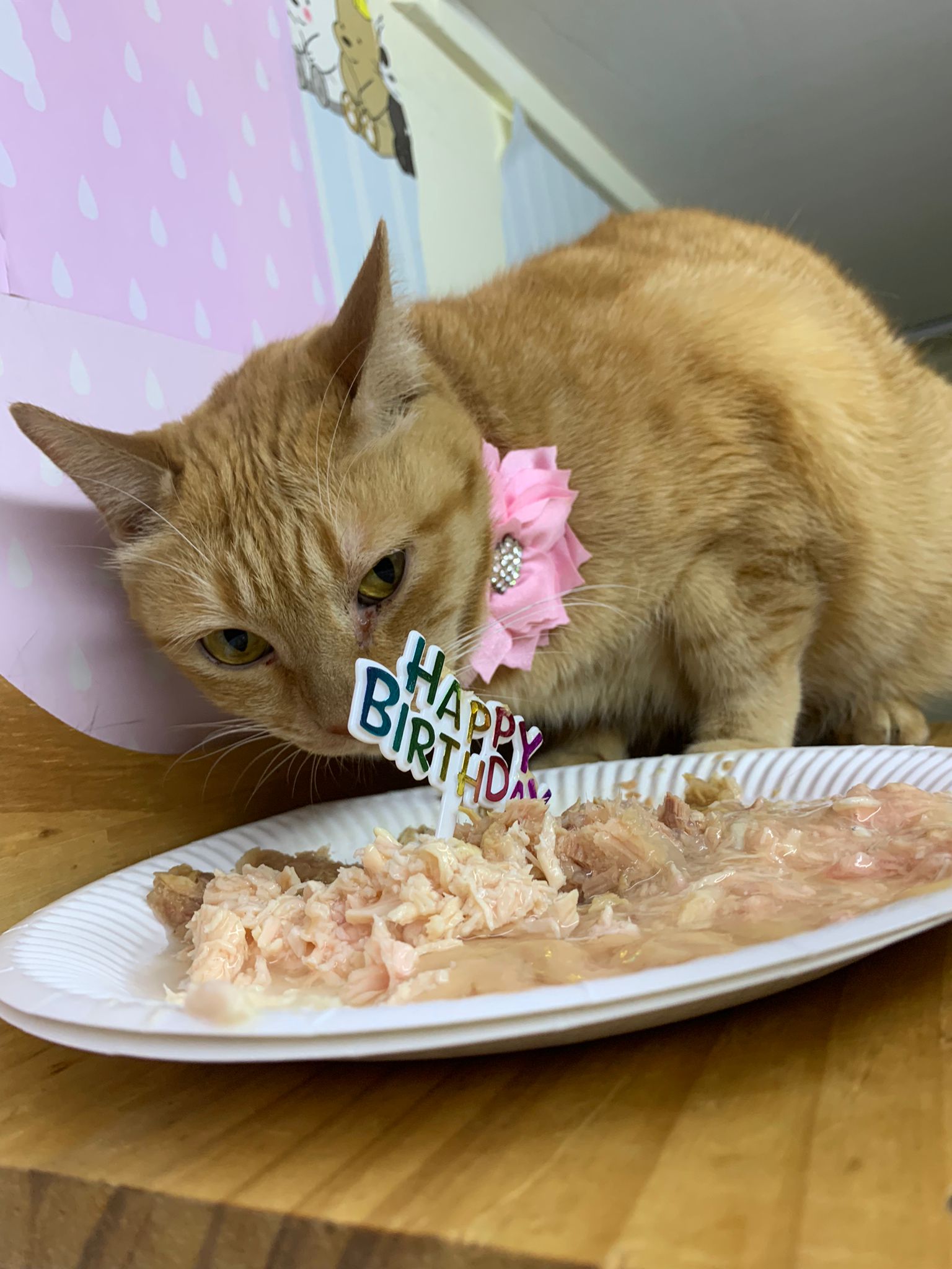 Morning: Amber sunshine Sunny bday… char meow at me to give her a share of the many cakes