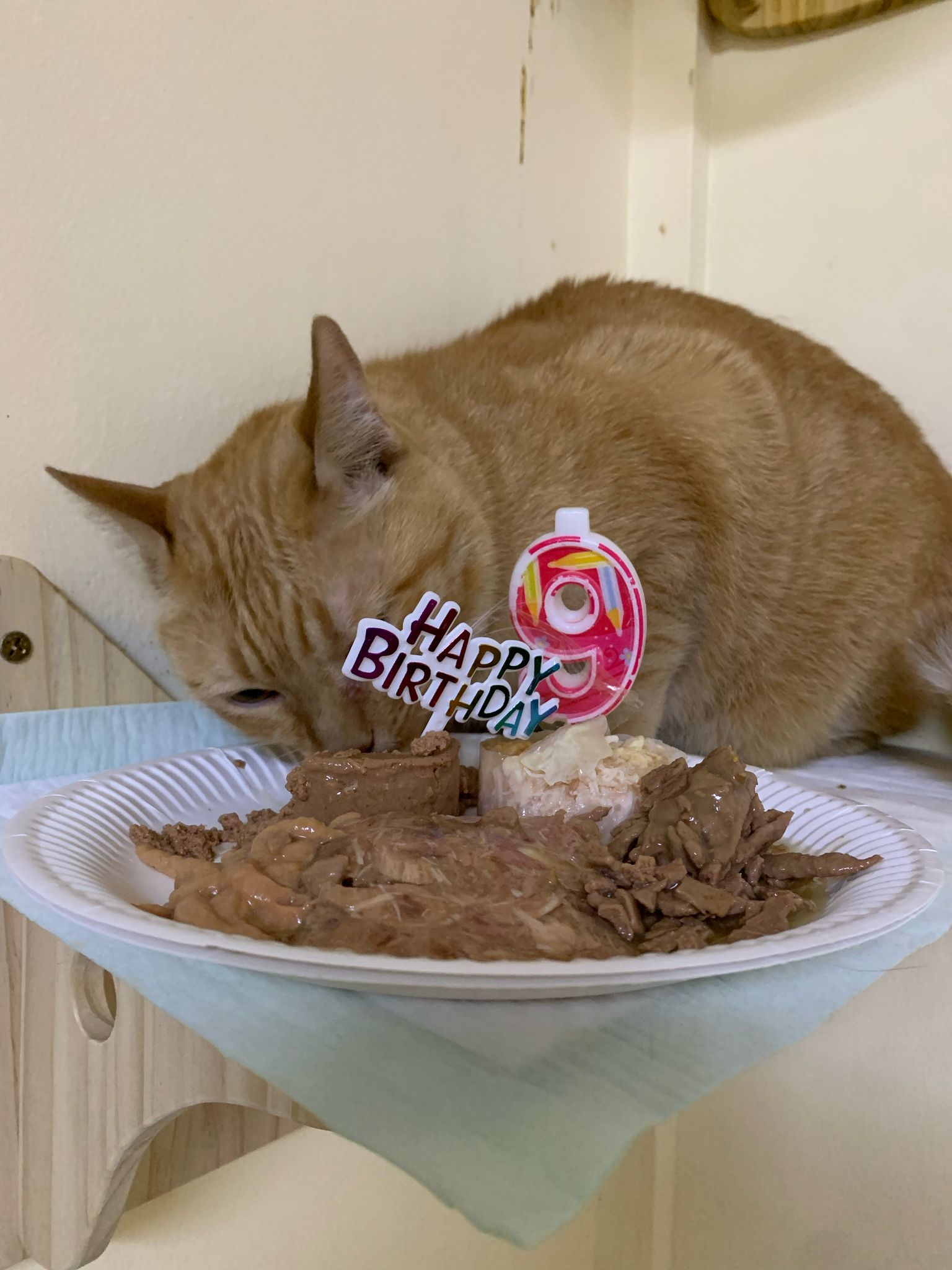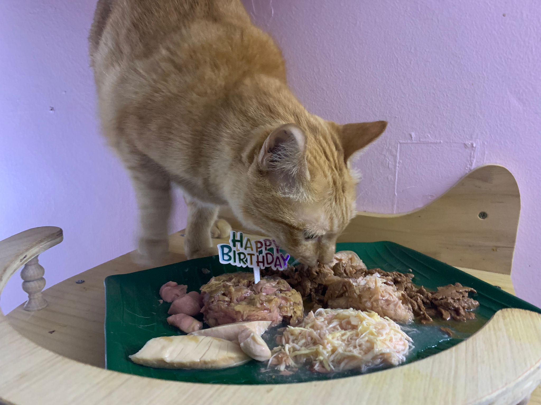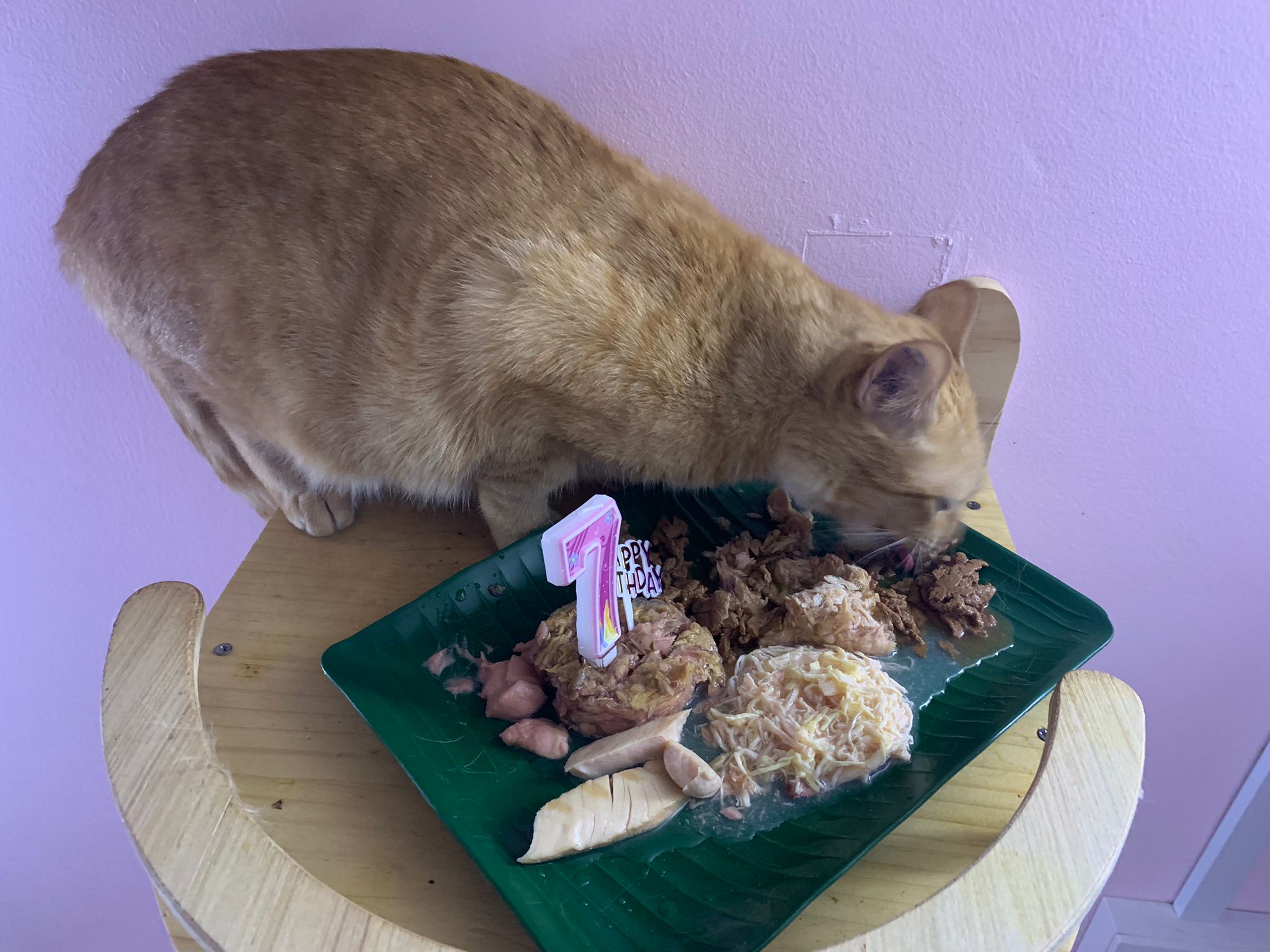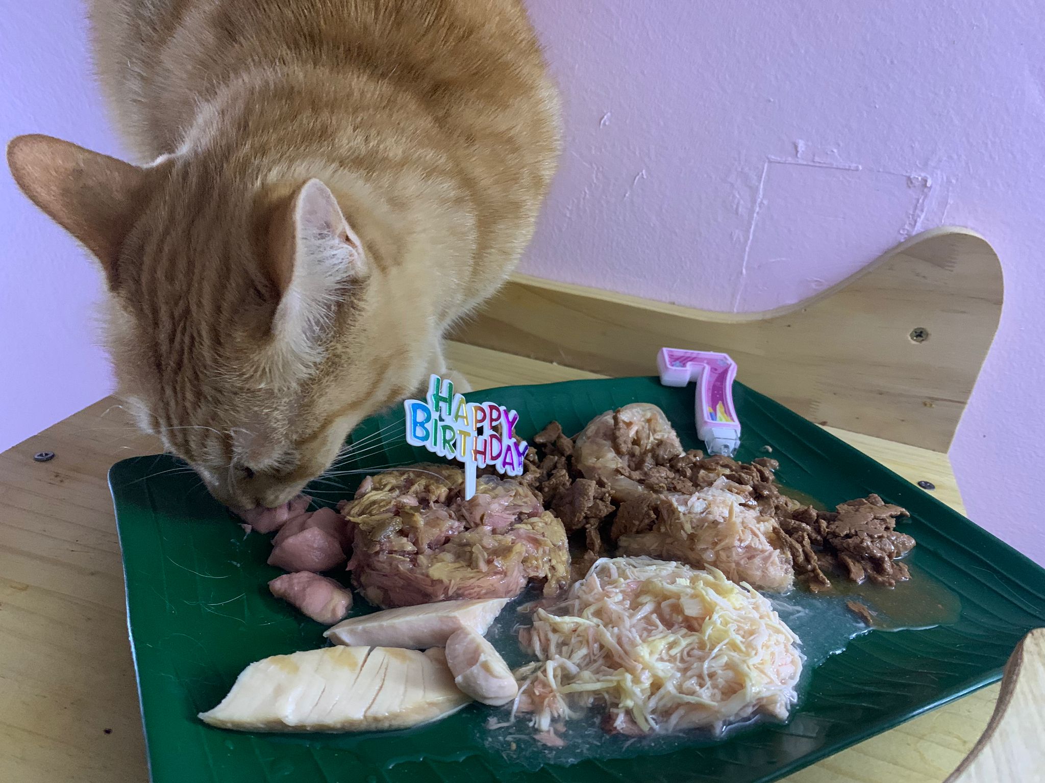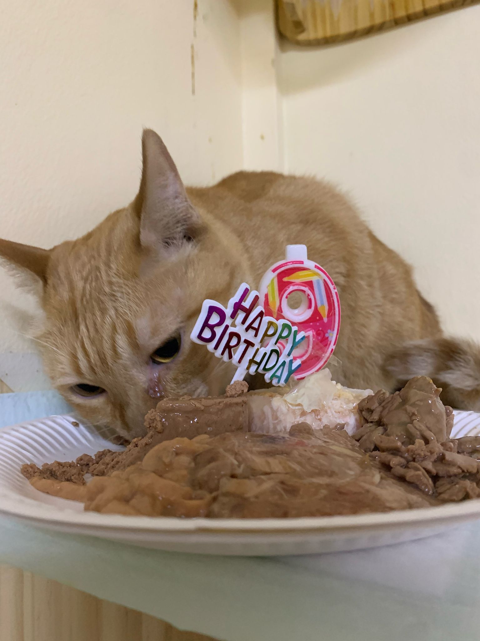 Morning: Amber sunshine Sunny bday… char meow at me to give her a share of the many cakes
