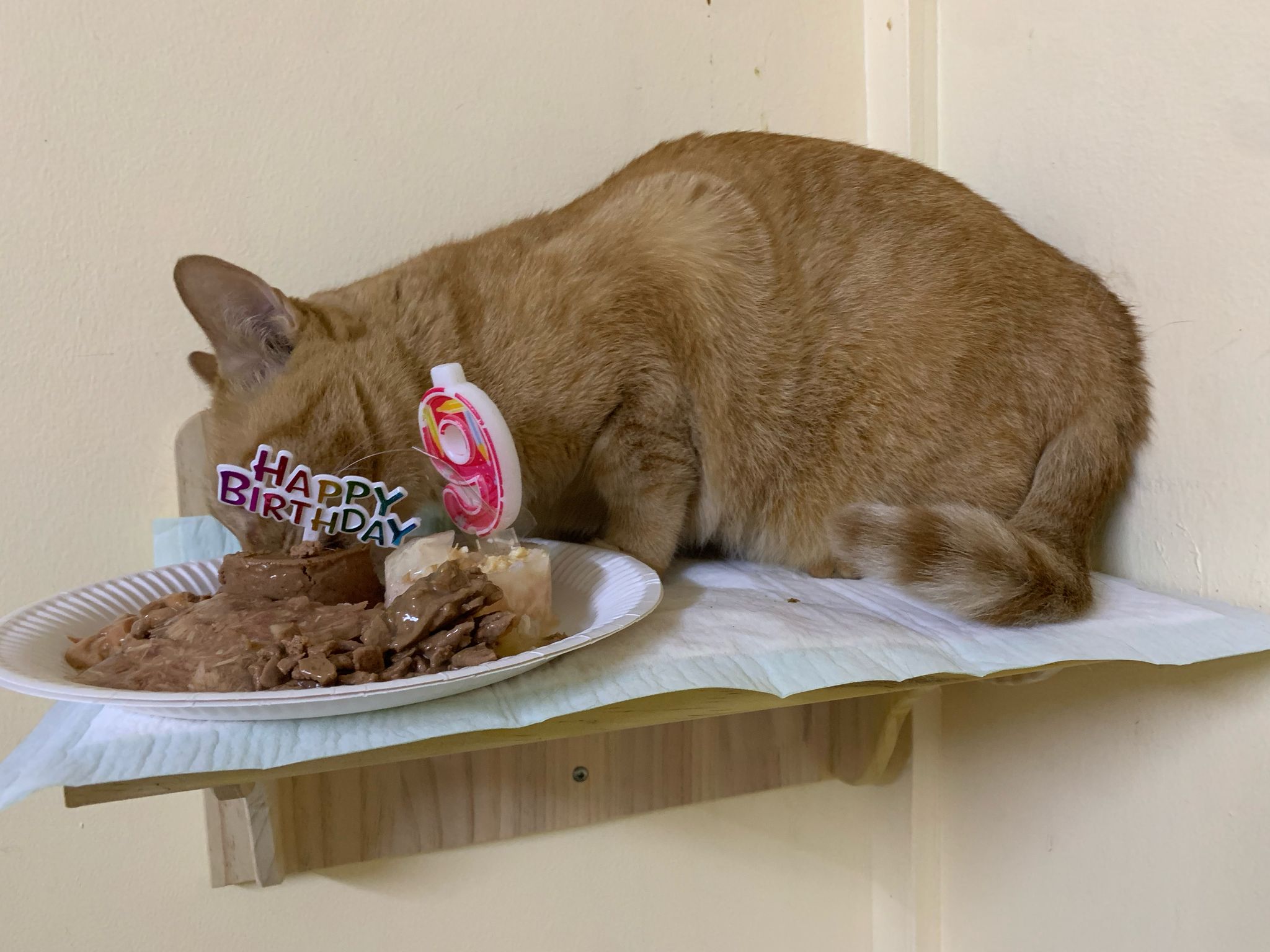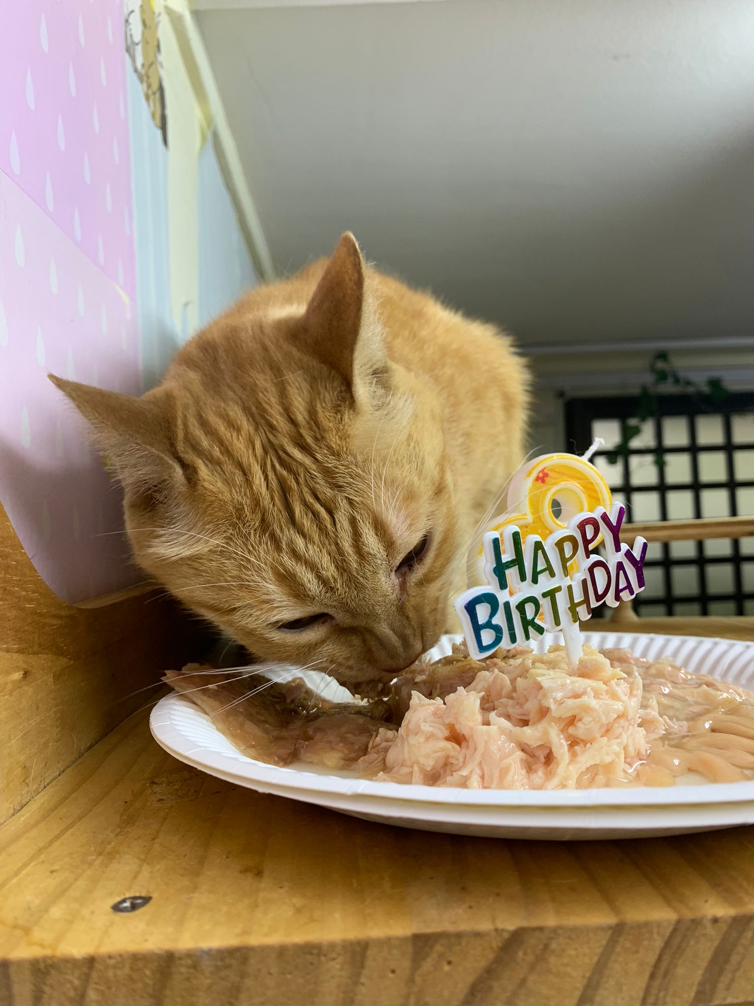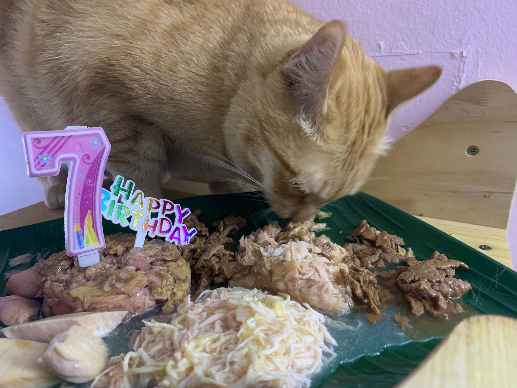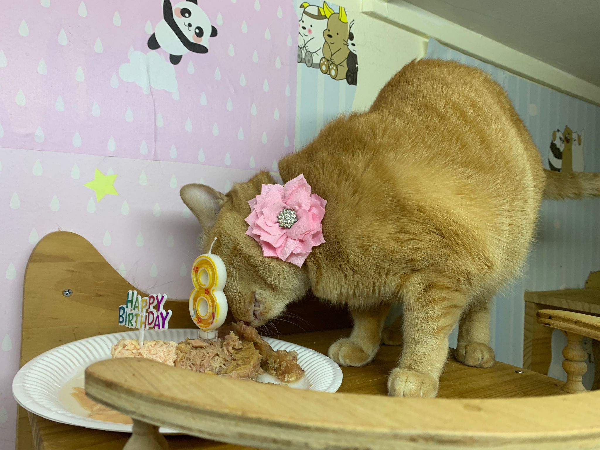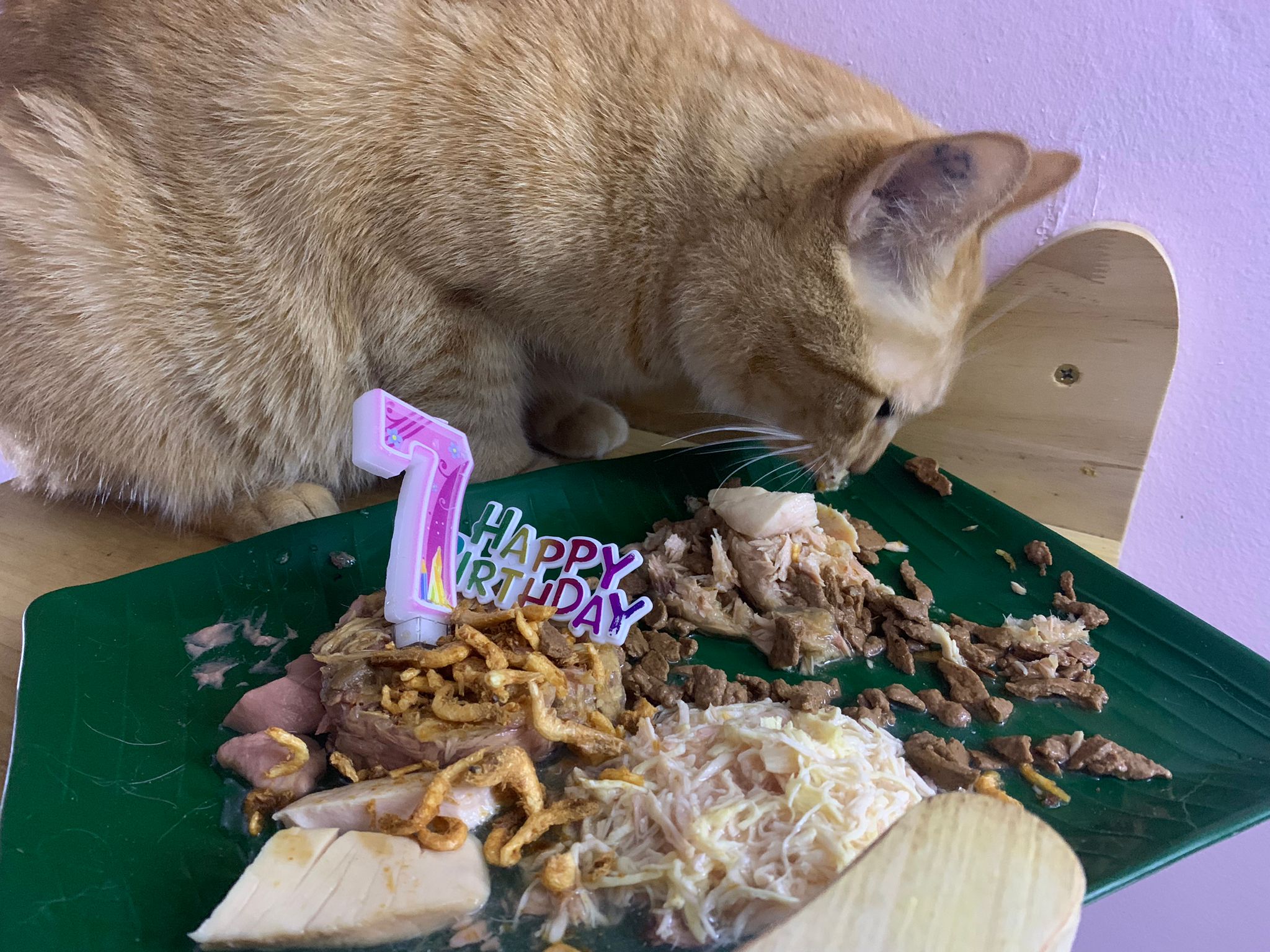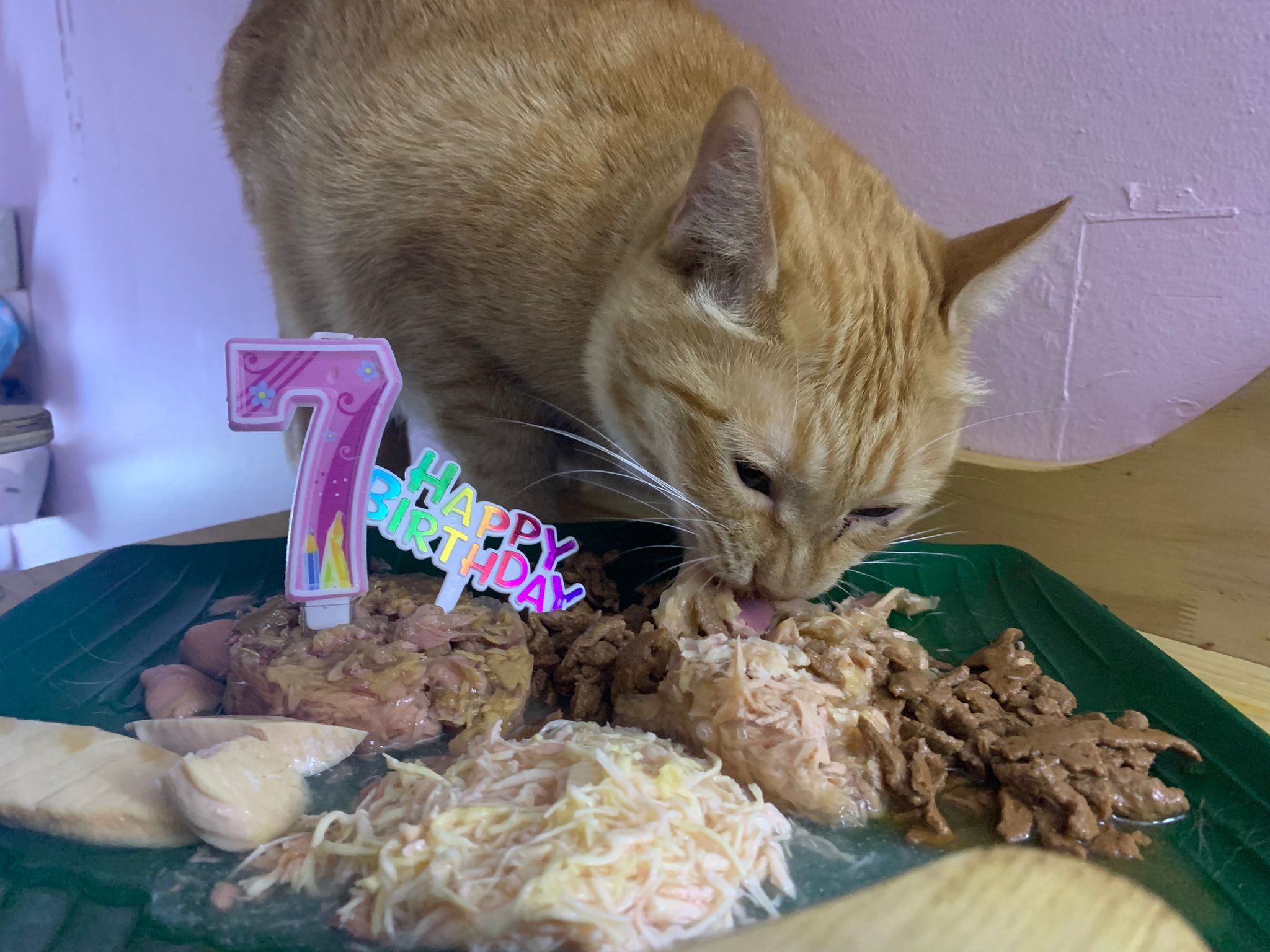 Morning: Amber sunshine Sunny bday… char meow at me to give her a share of the many cakes