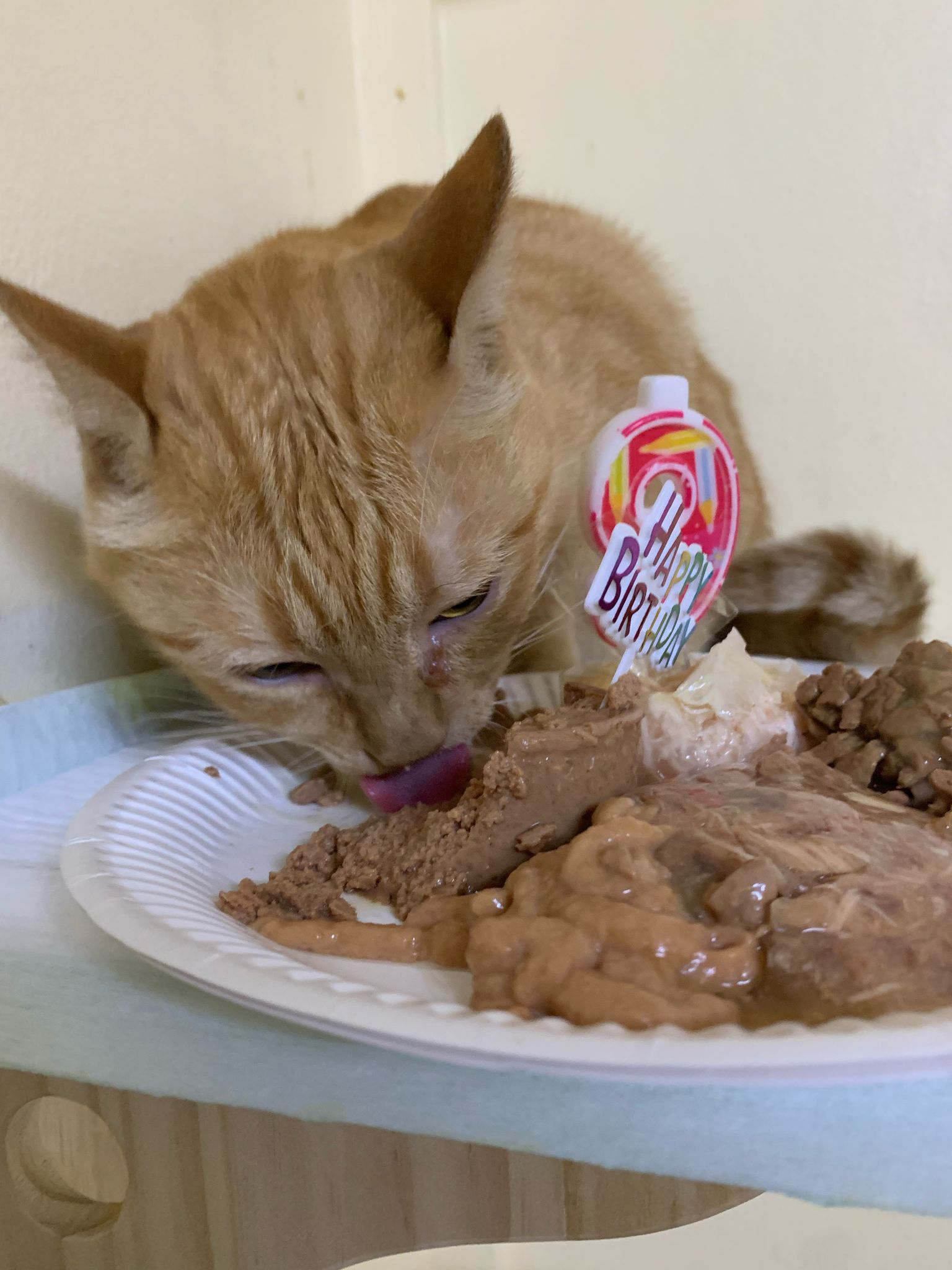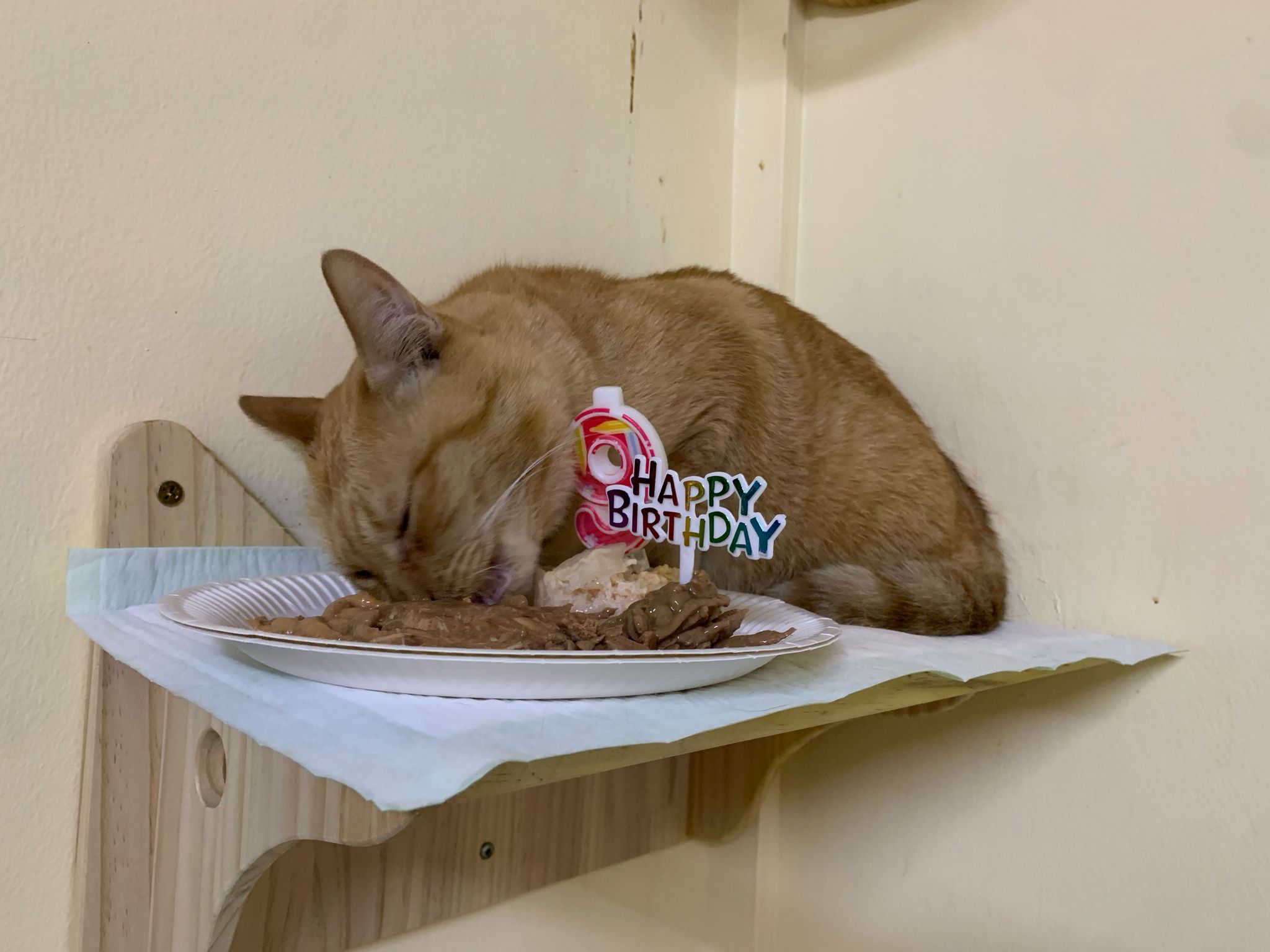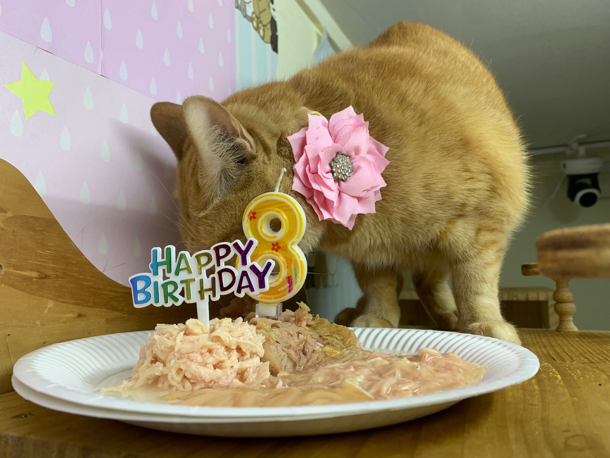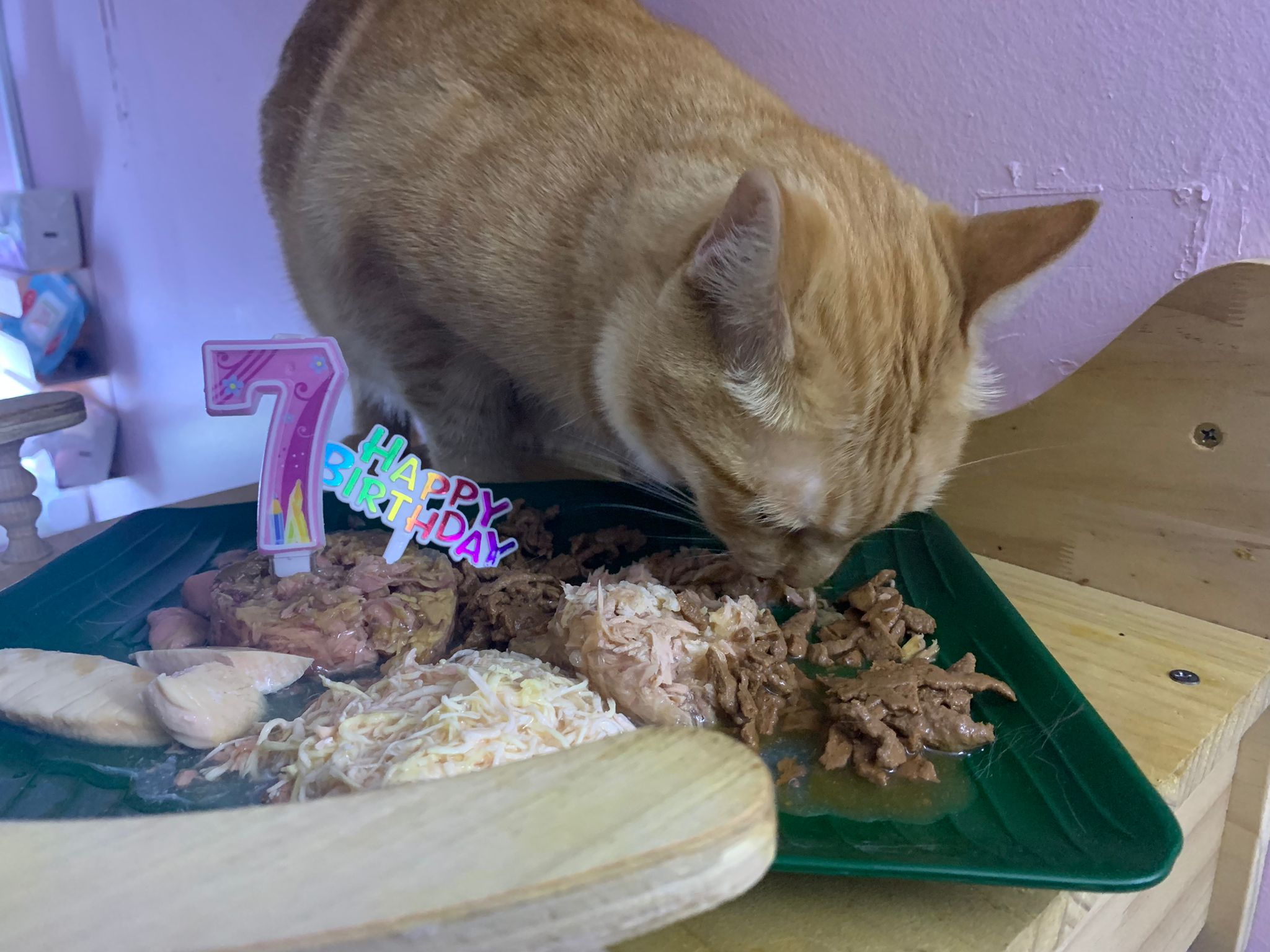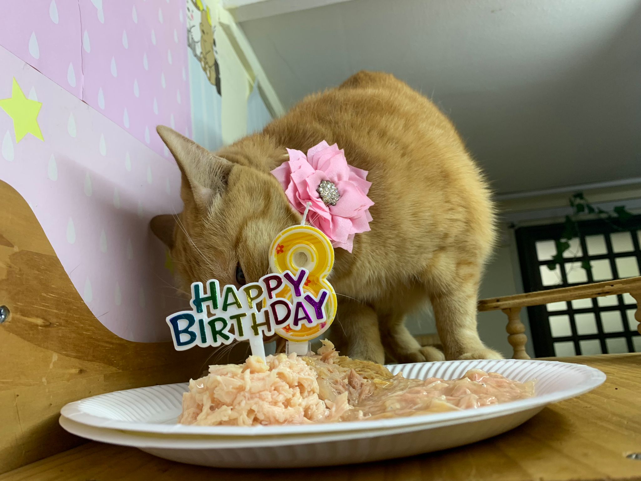 Morning: Amber sunshine Sunny bday… char meow at me to give her a share of the many cakes