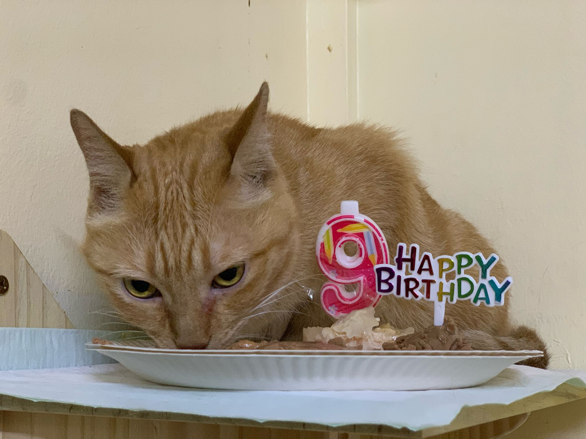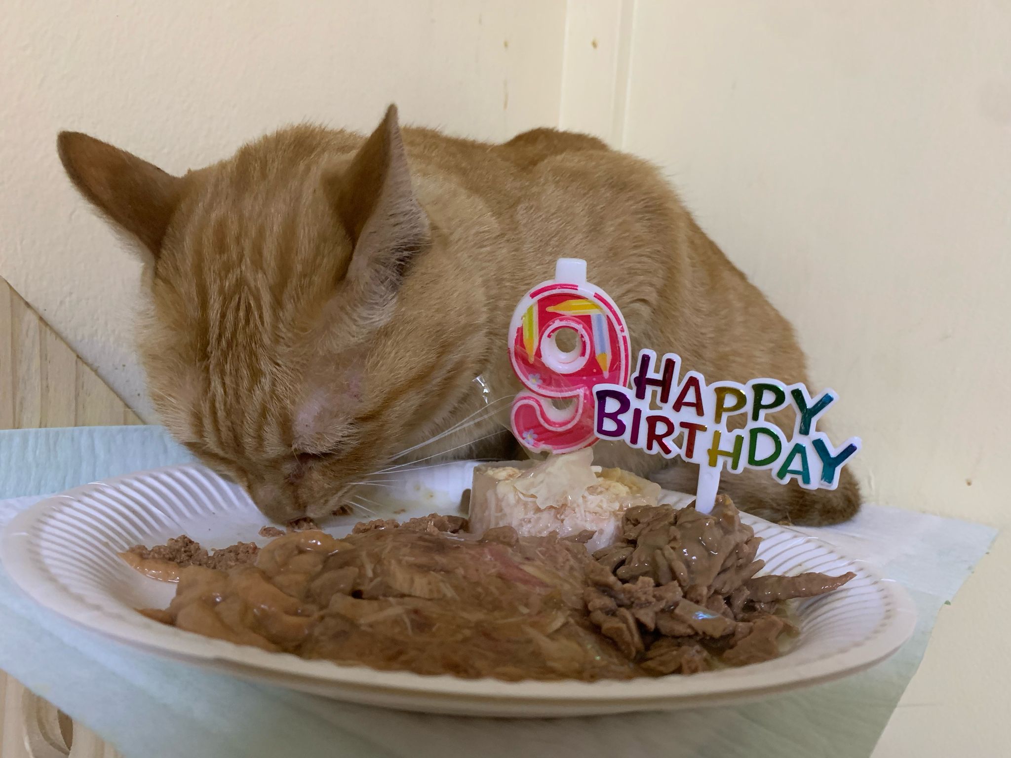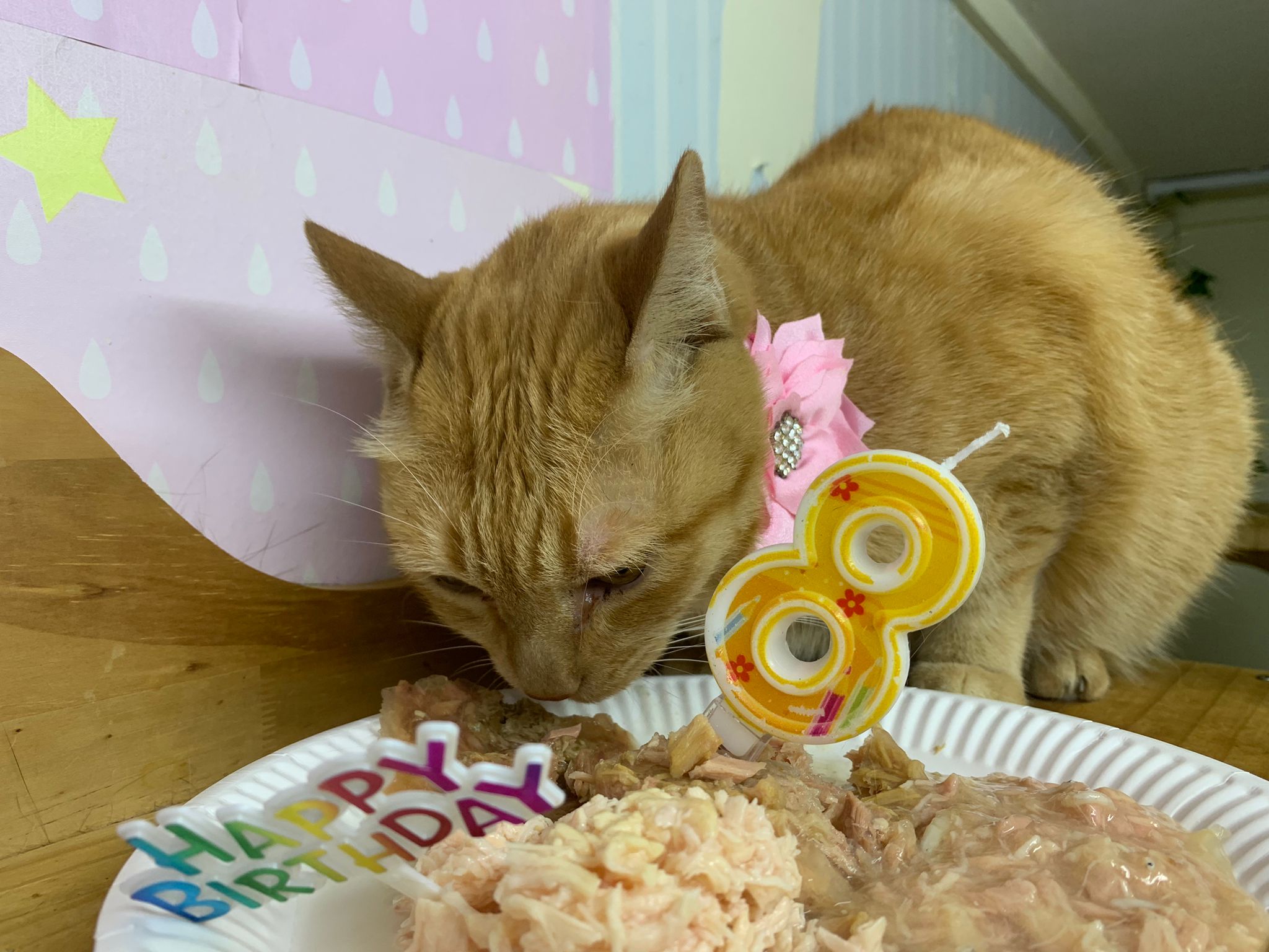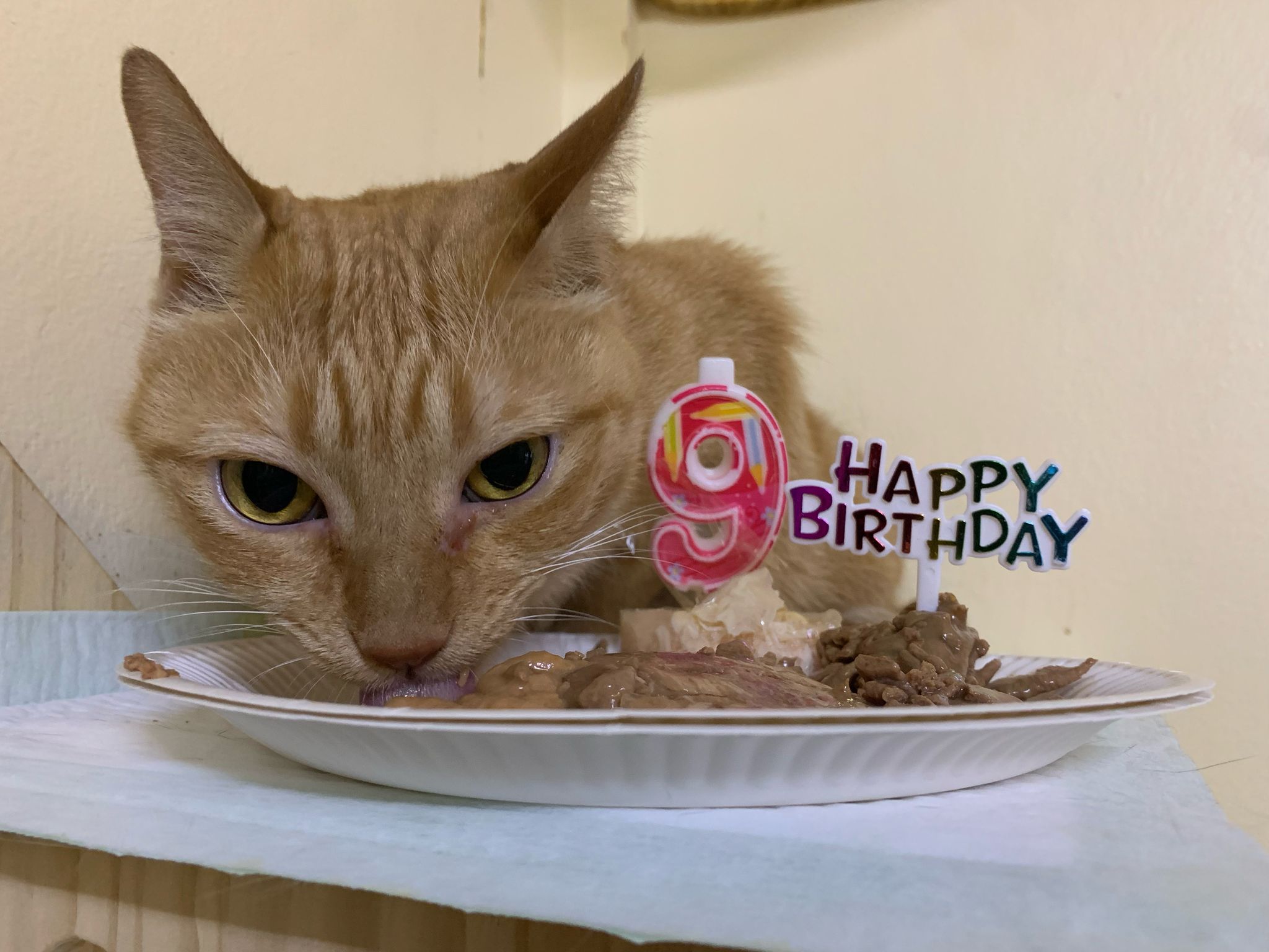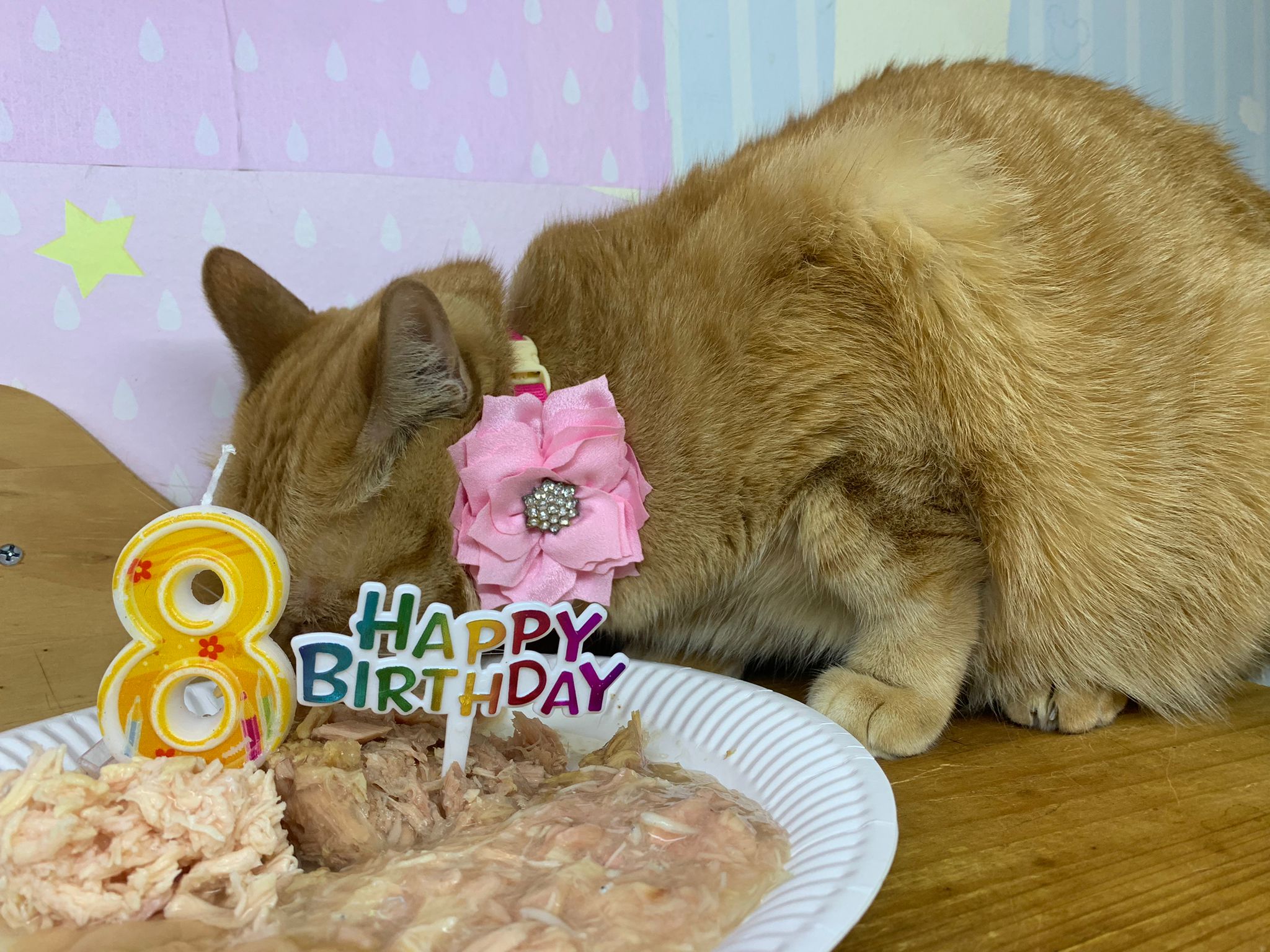 Morning: Amber sunshine Sunny bday… char meow at me to give her a share of the many cakes