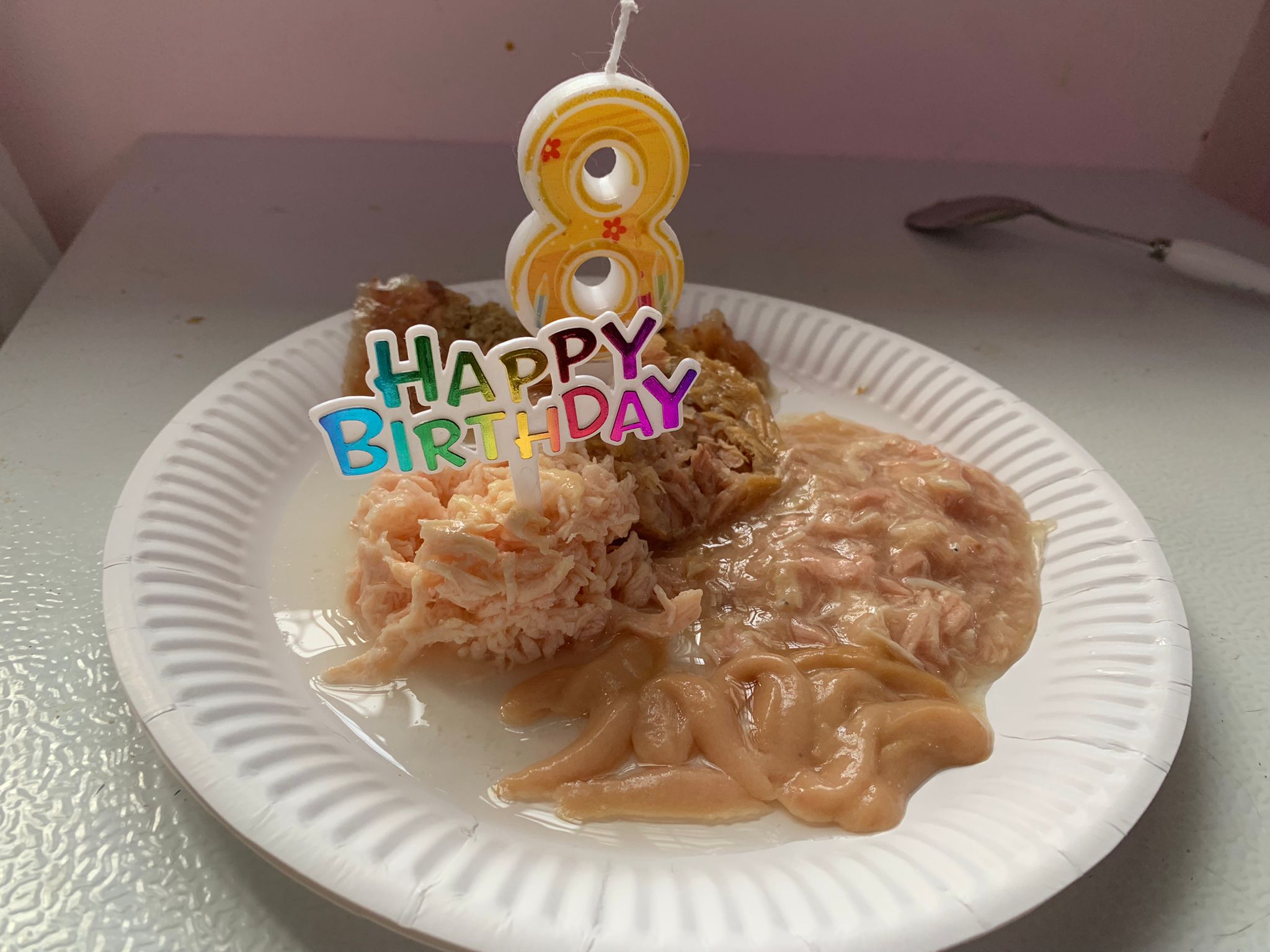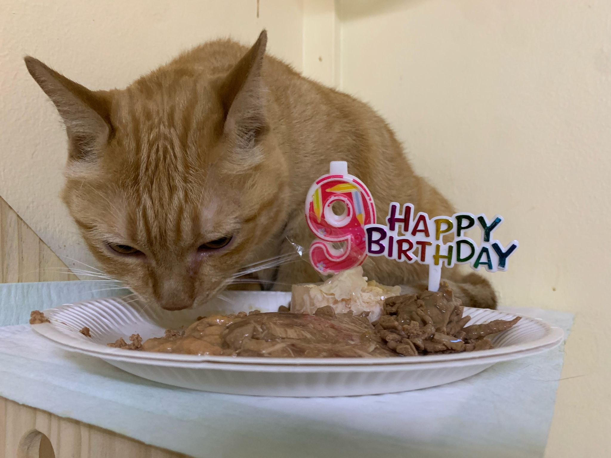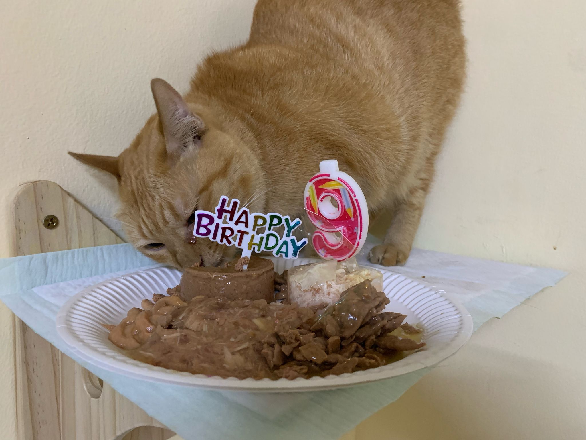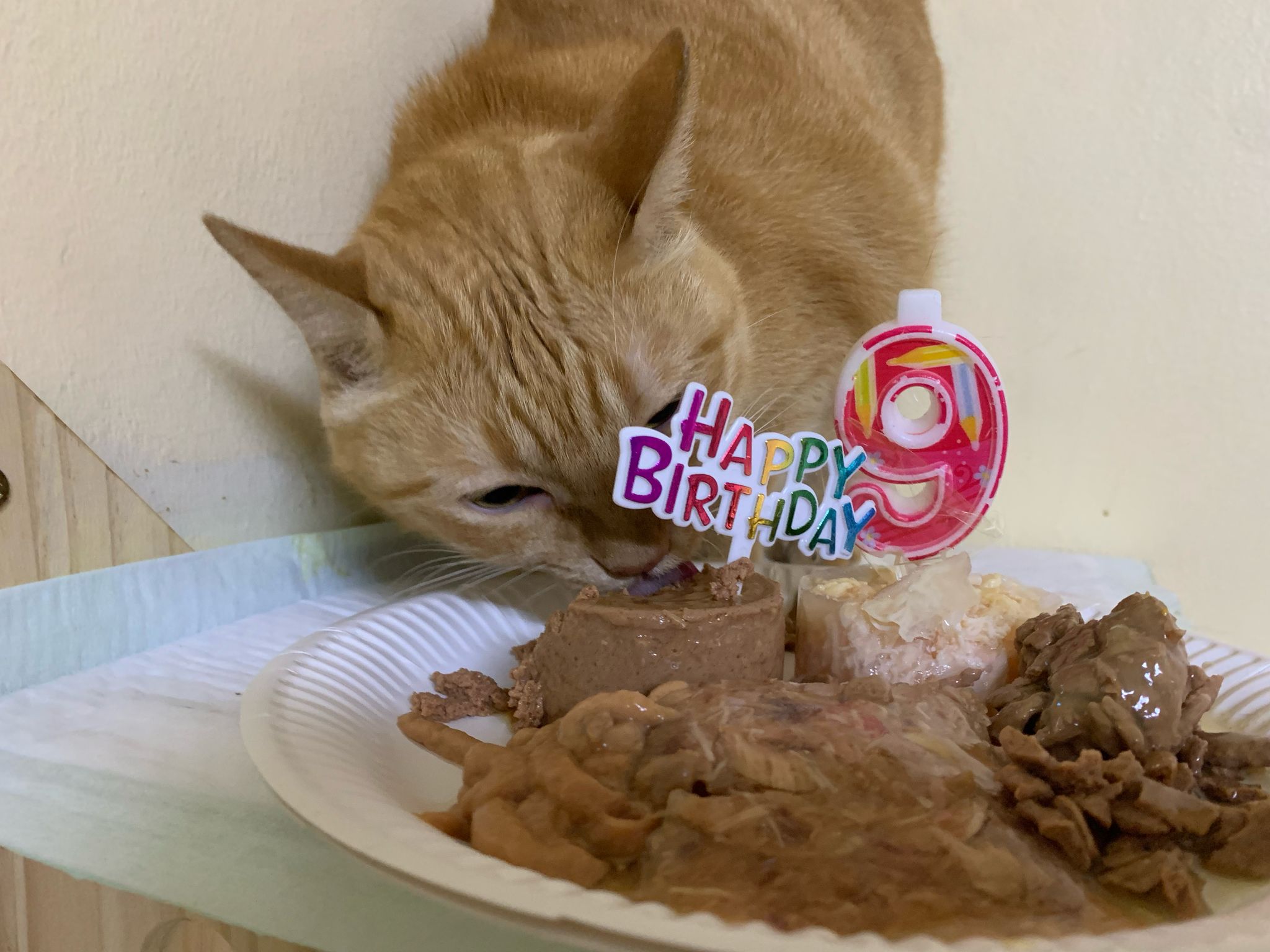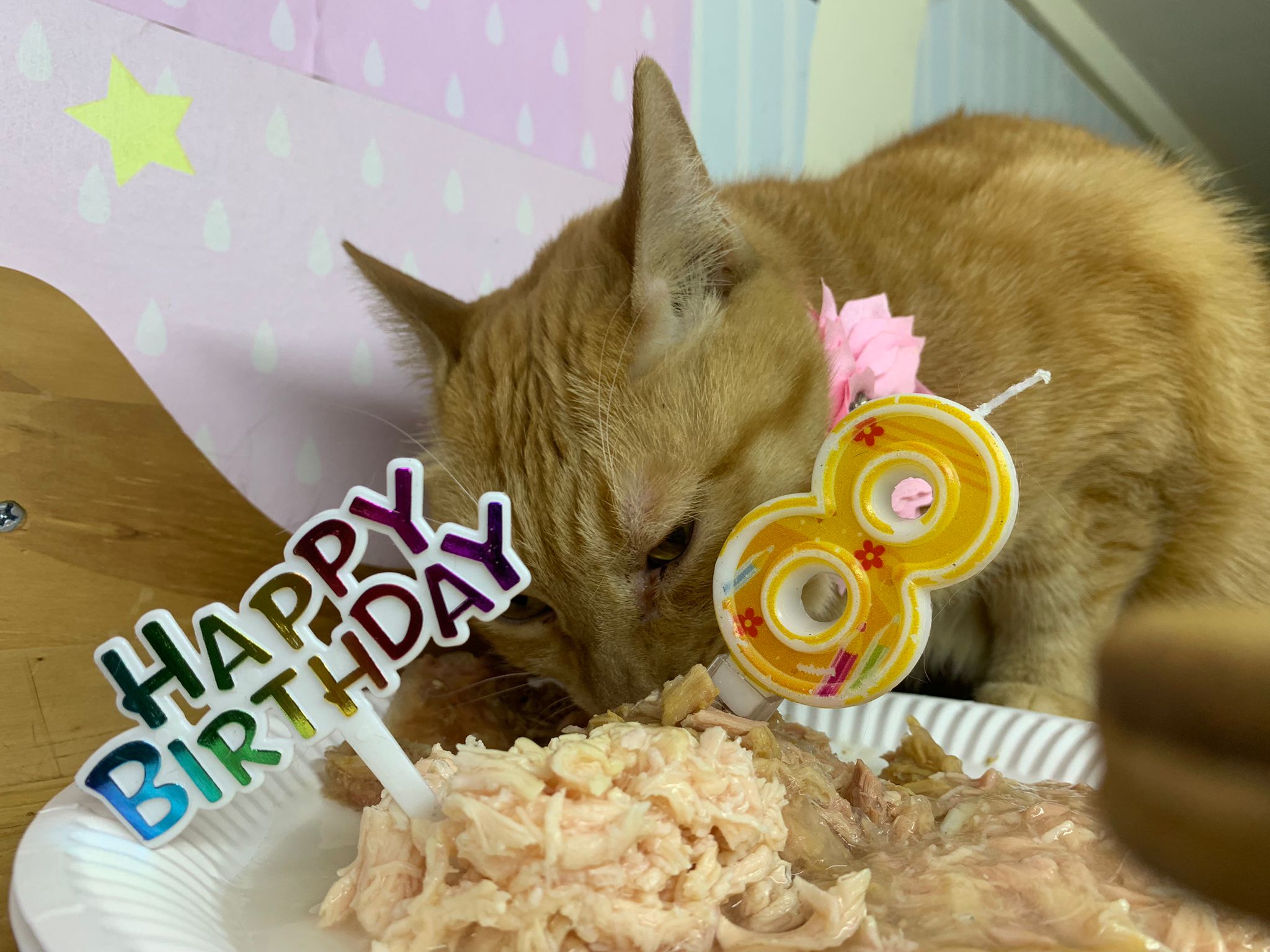 Morning: Amber sunshine Sunny bday… char meow at me to give her a share of the many cakes