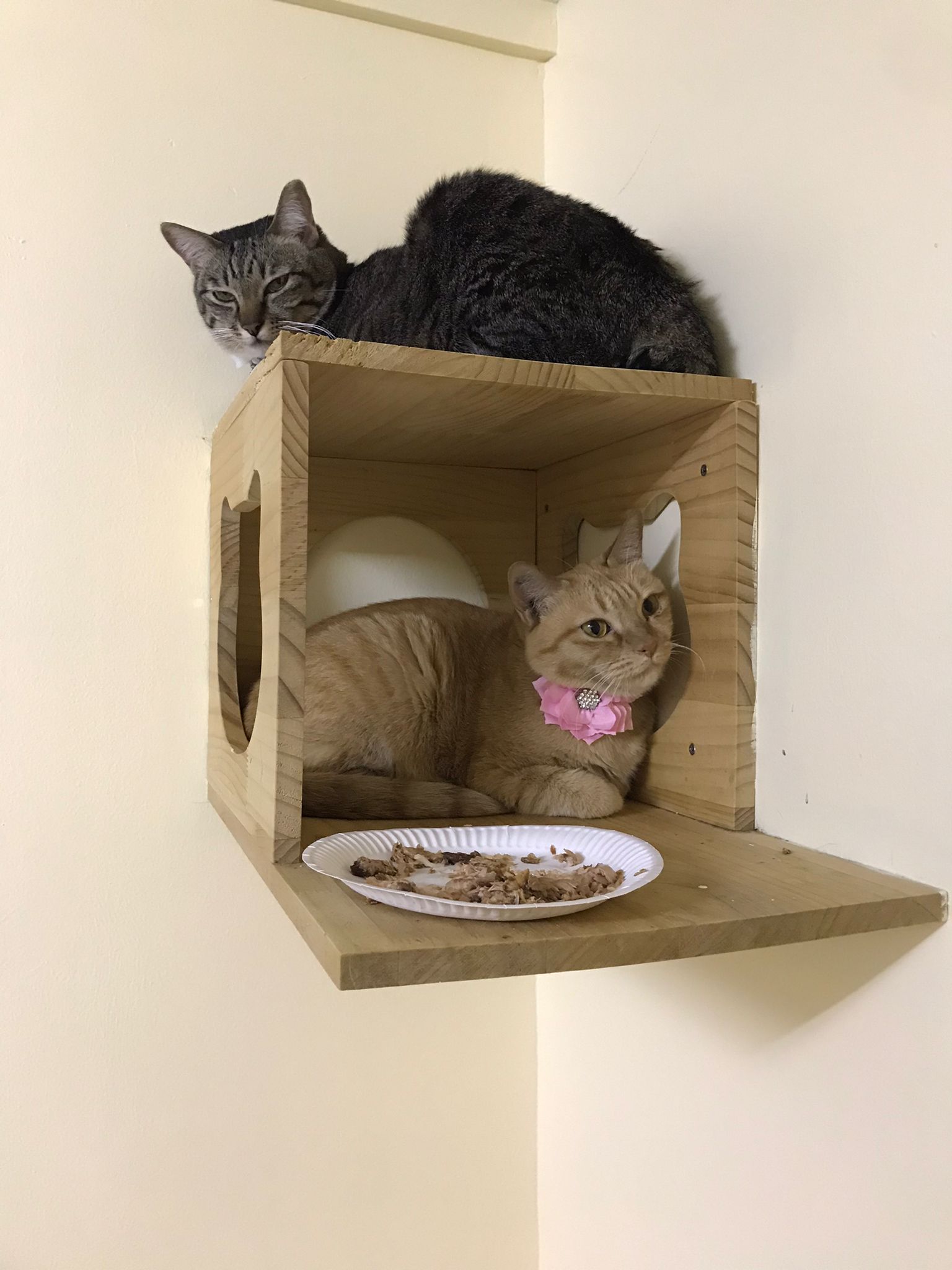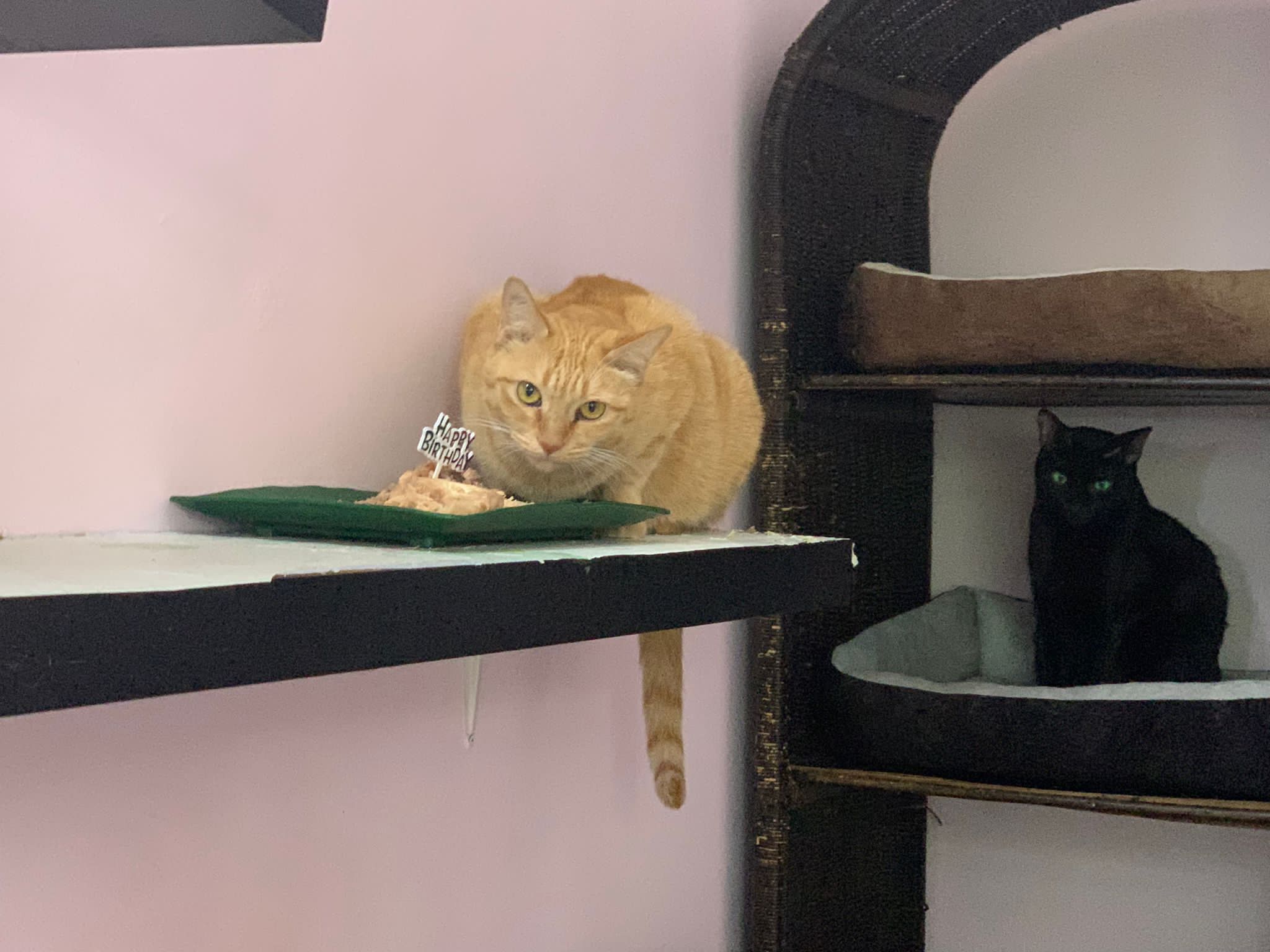 Morning: agnes come 猫房 celebrate her bday w the cats. She bring treats for them n char eat quite a lot
