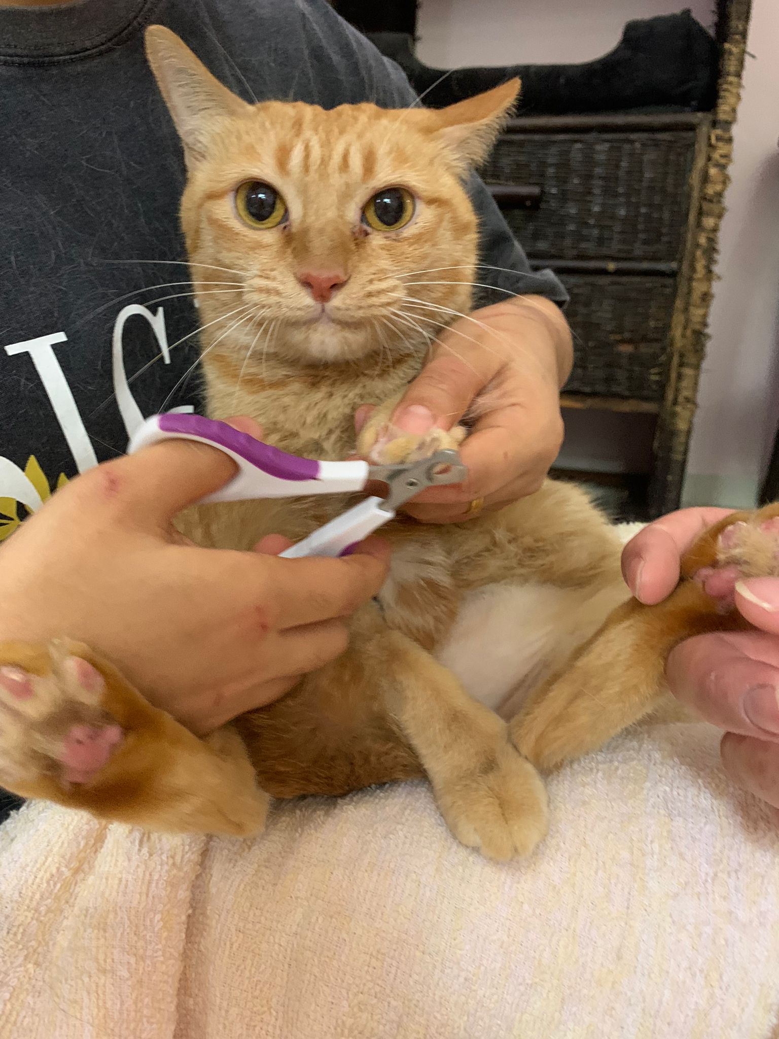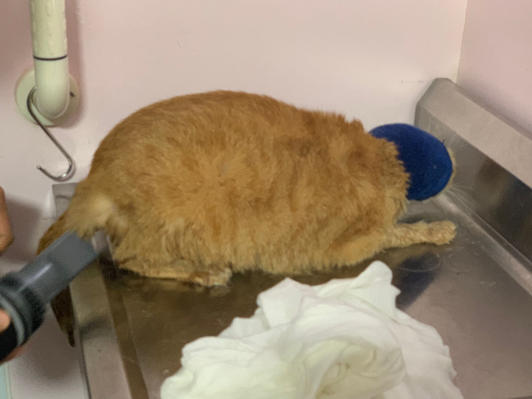 11.01am: 2 groomers reach. Didn’t intend to groom her but she run from her safety cage to the top deck of tv room. Hope she move back at night
