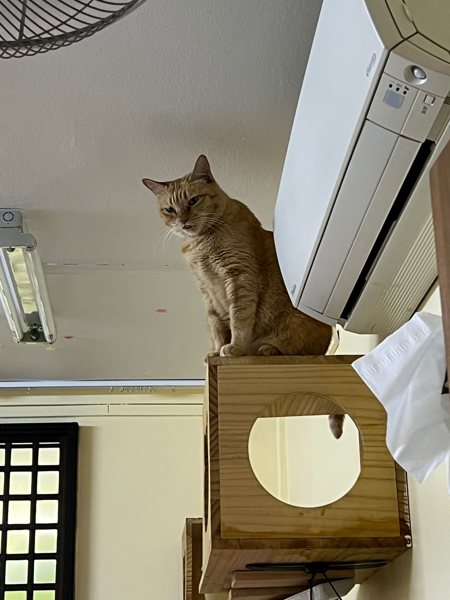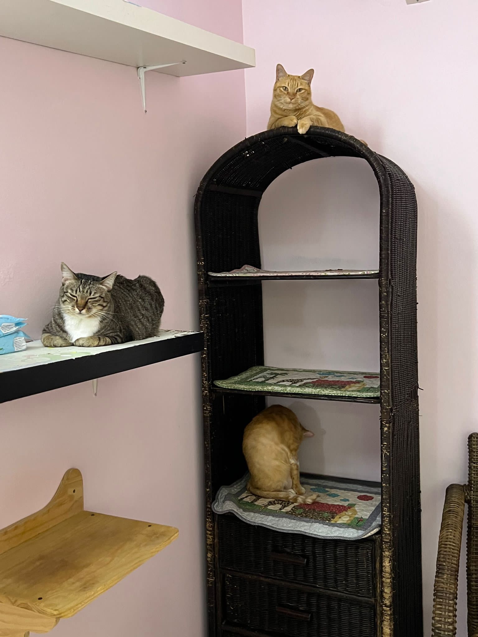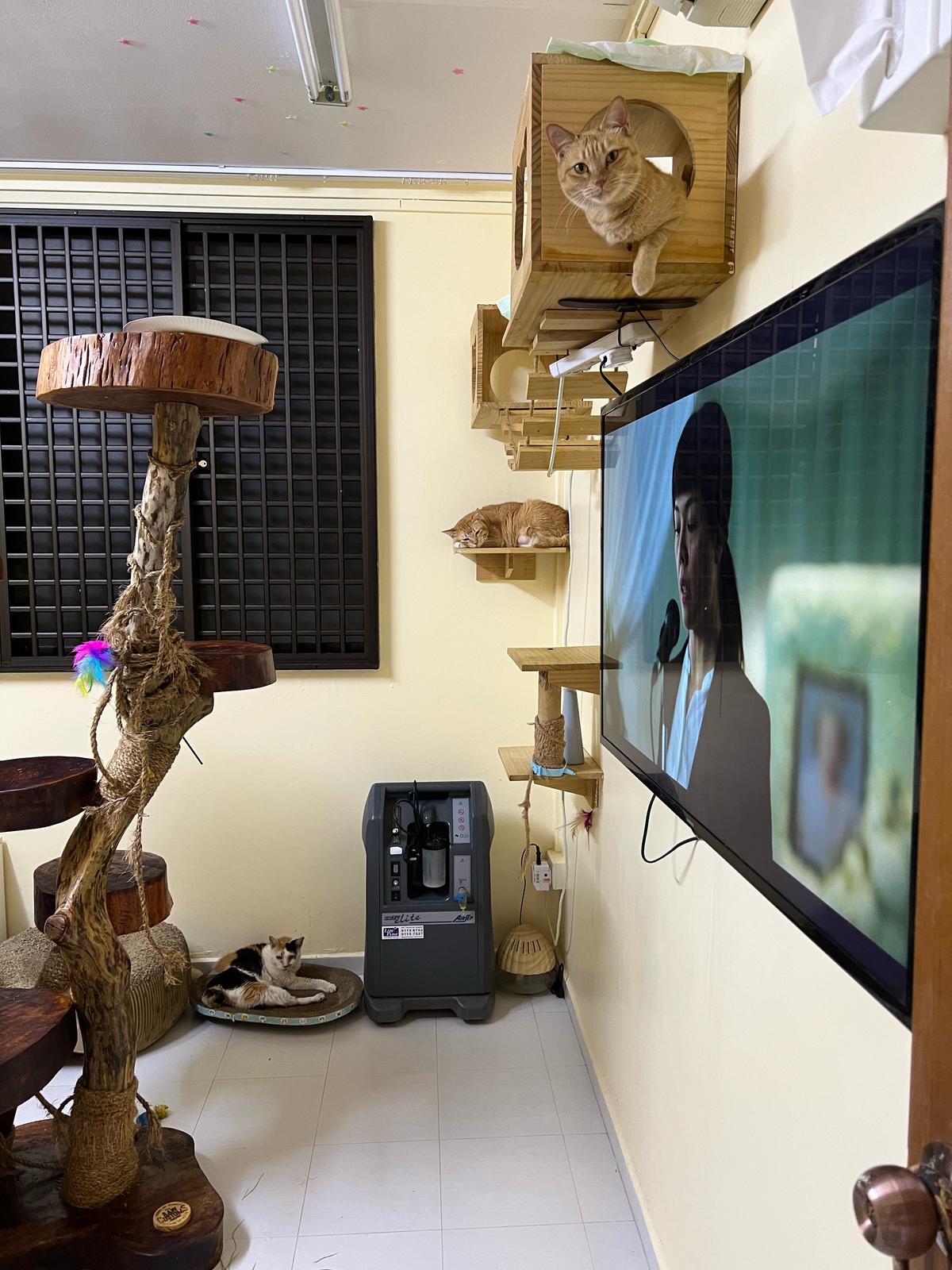 Morning: quarantined tgt w Princess sweetheart, Teddy, rena and mama Mimi in new room for the installation of aircon, cos they r the calm cats to be ard her.
