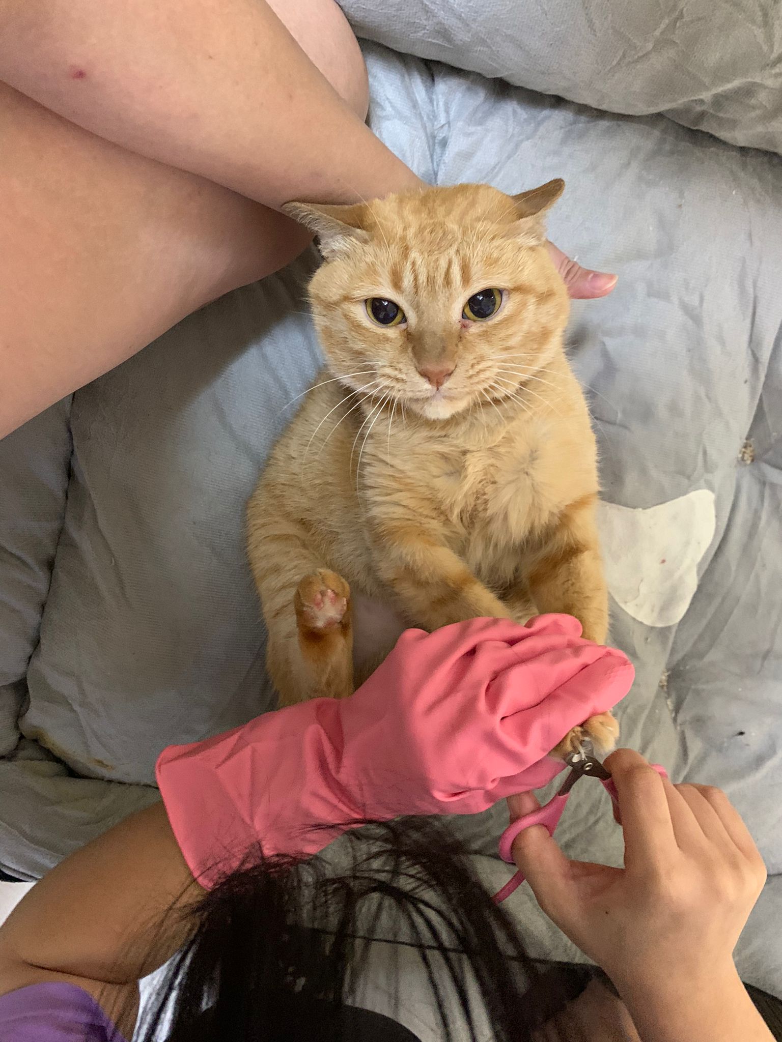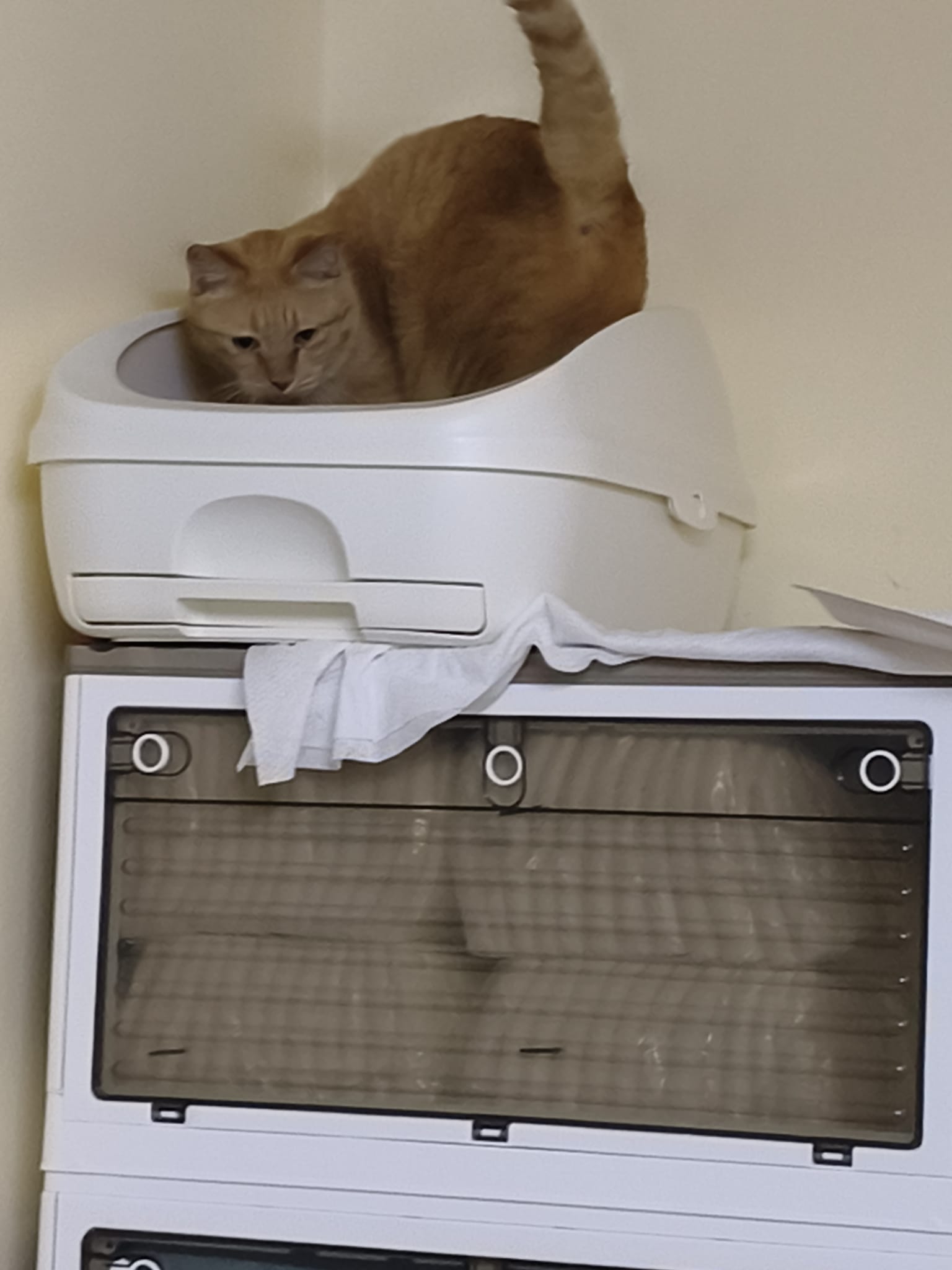 Morning: I’m packing 猫房, she keep calling me for rubs. Her poo 5.5/10