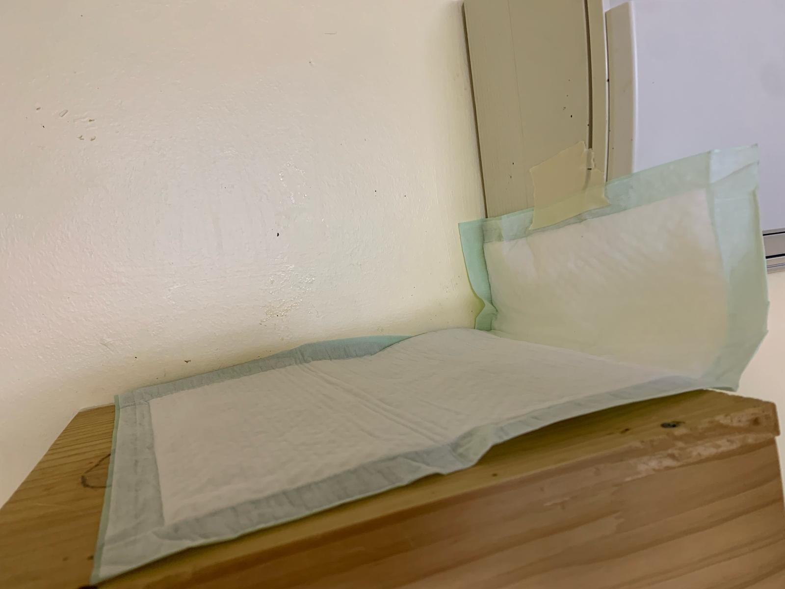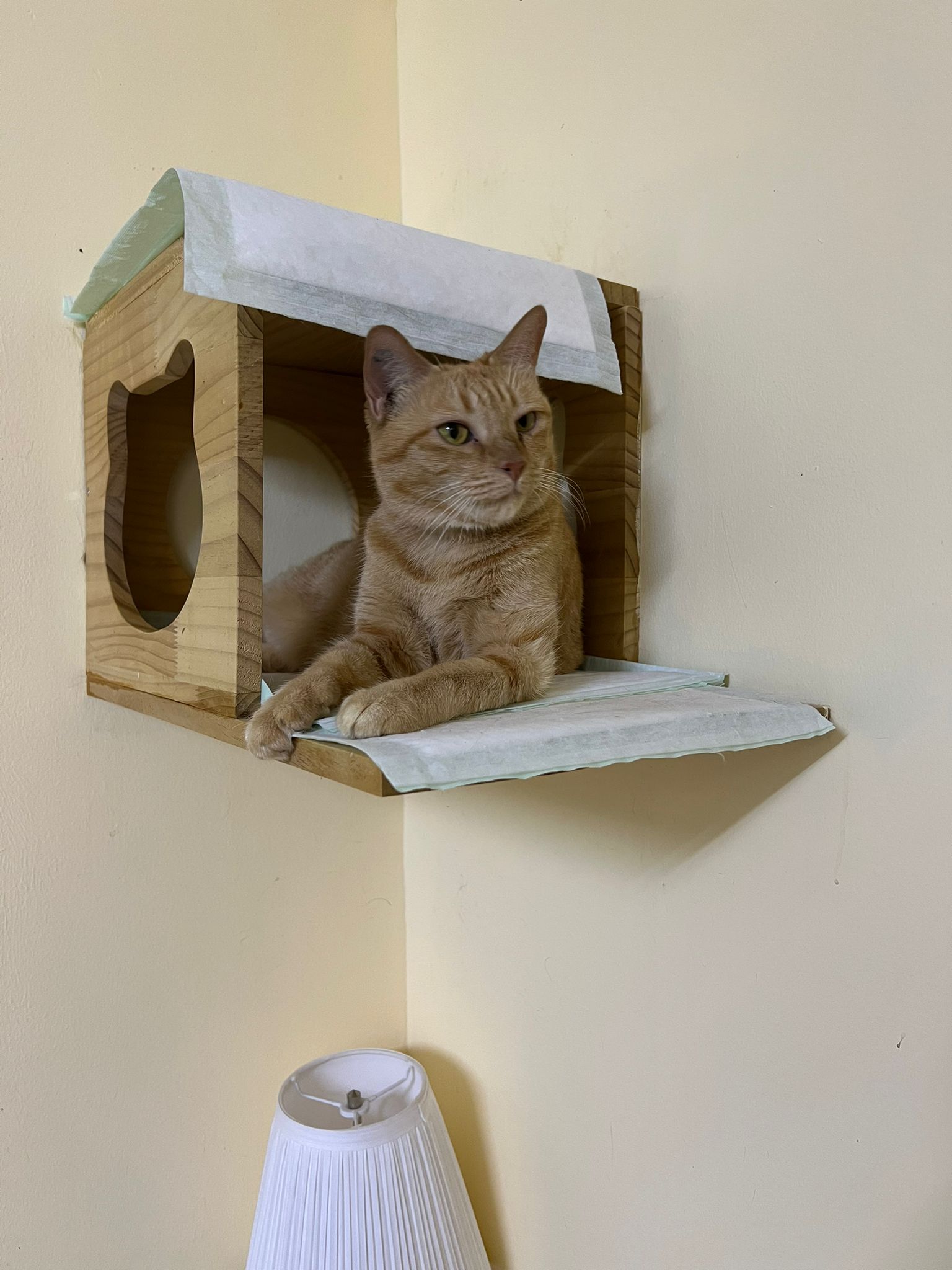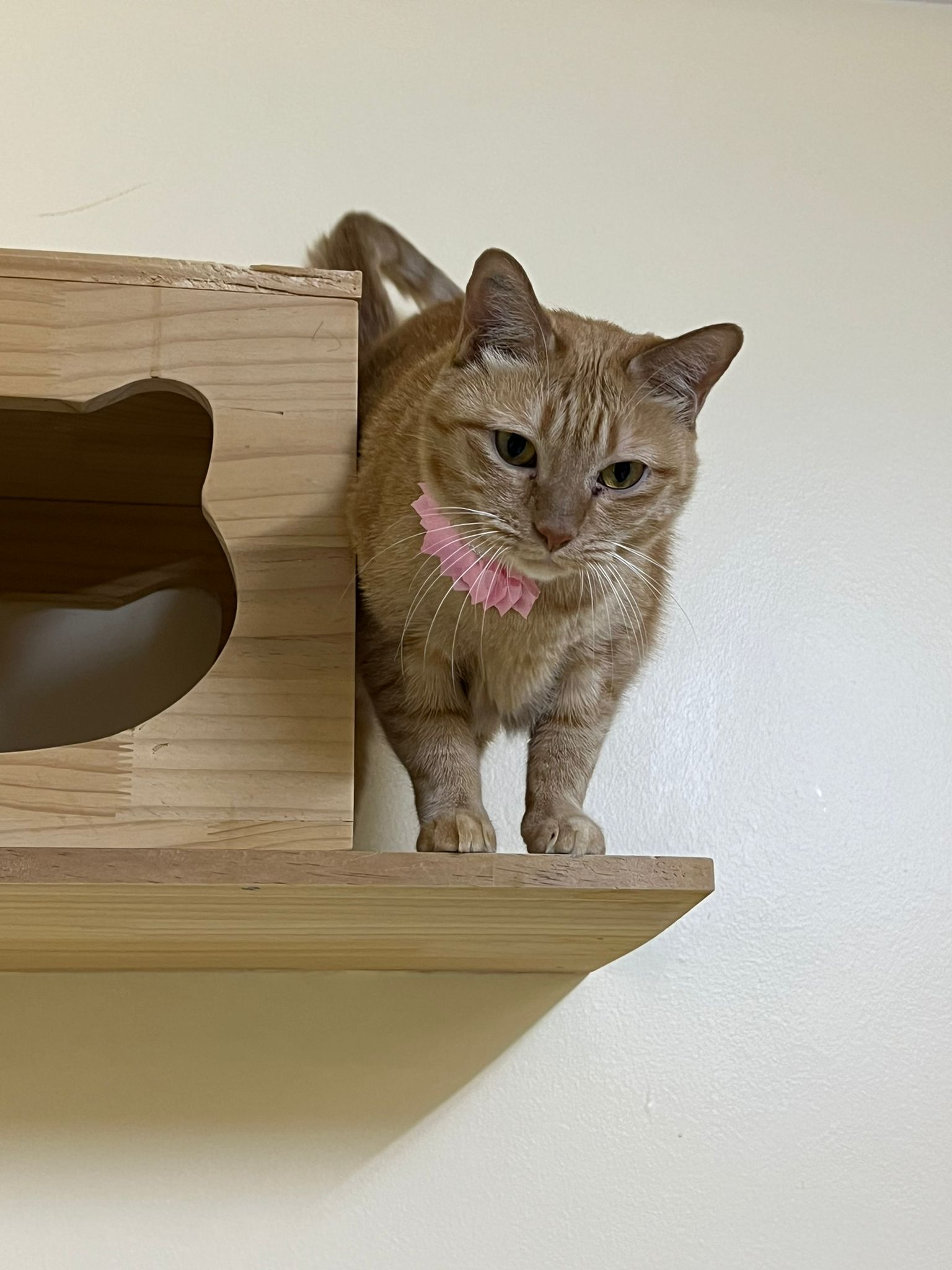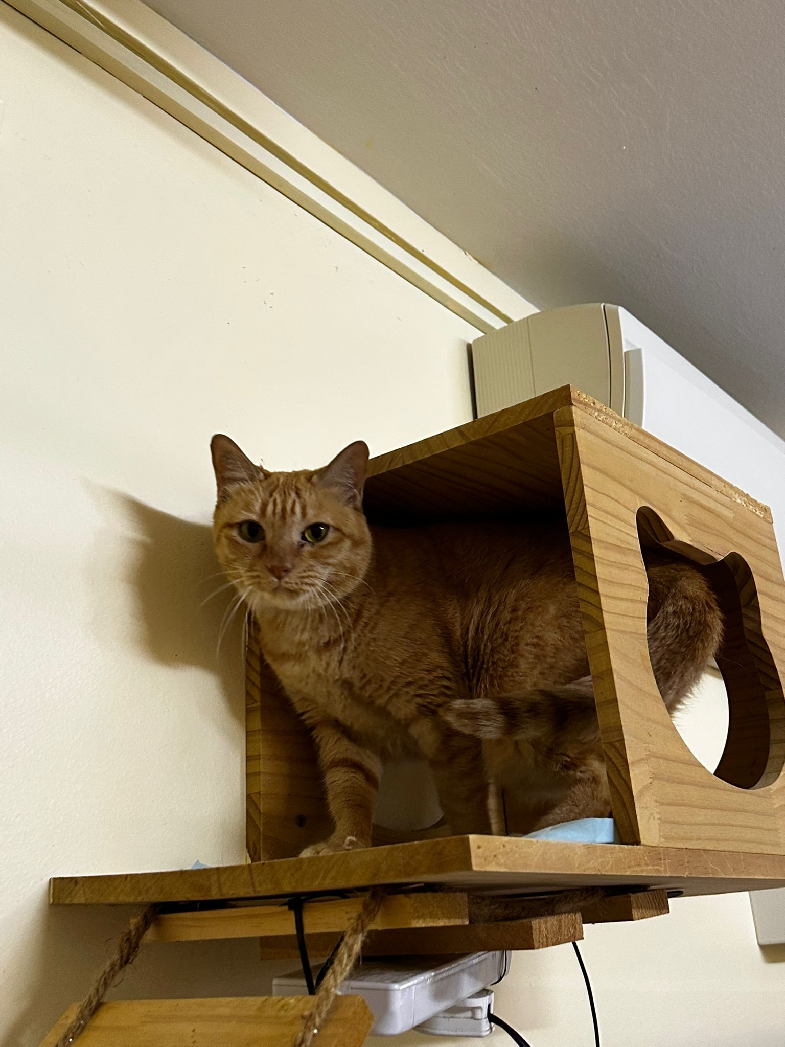 2pm: more active in the cage room, I put a grounding mat in the cage so she can get grounding while eating too. She is active, will come out to stretch and scratch the ctns boxes.