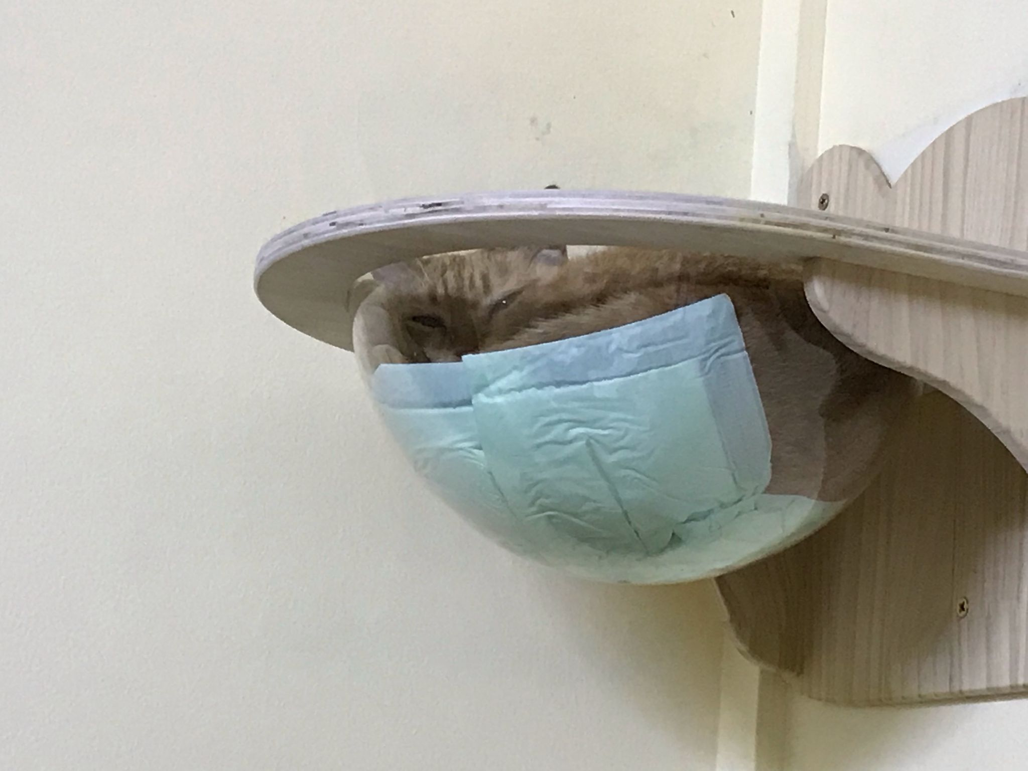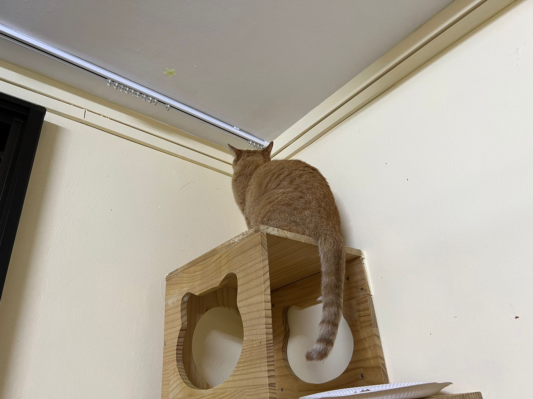1010pm: so she had been station at the top of cat box in tv room, didn’t really eat today also. Erm … have to find time to see the tent and q her again. Not sure will be torn again or not.