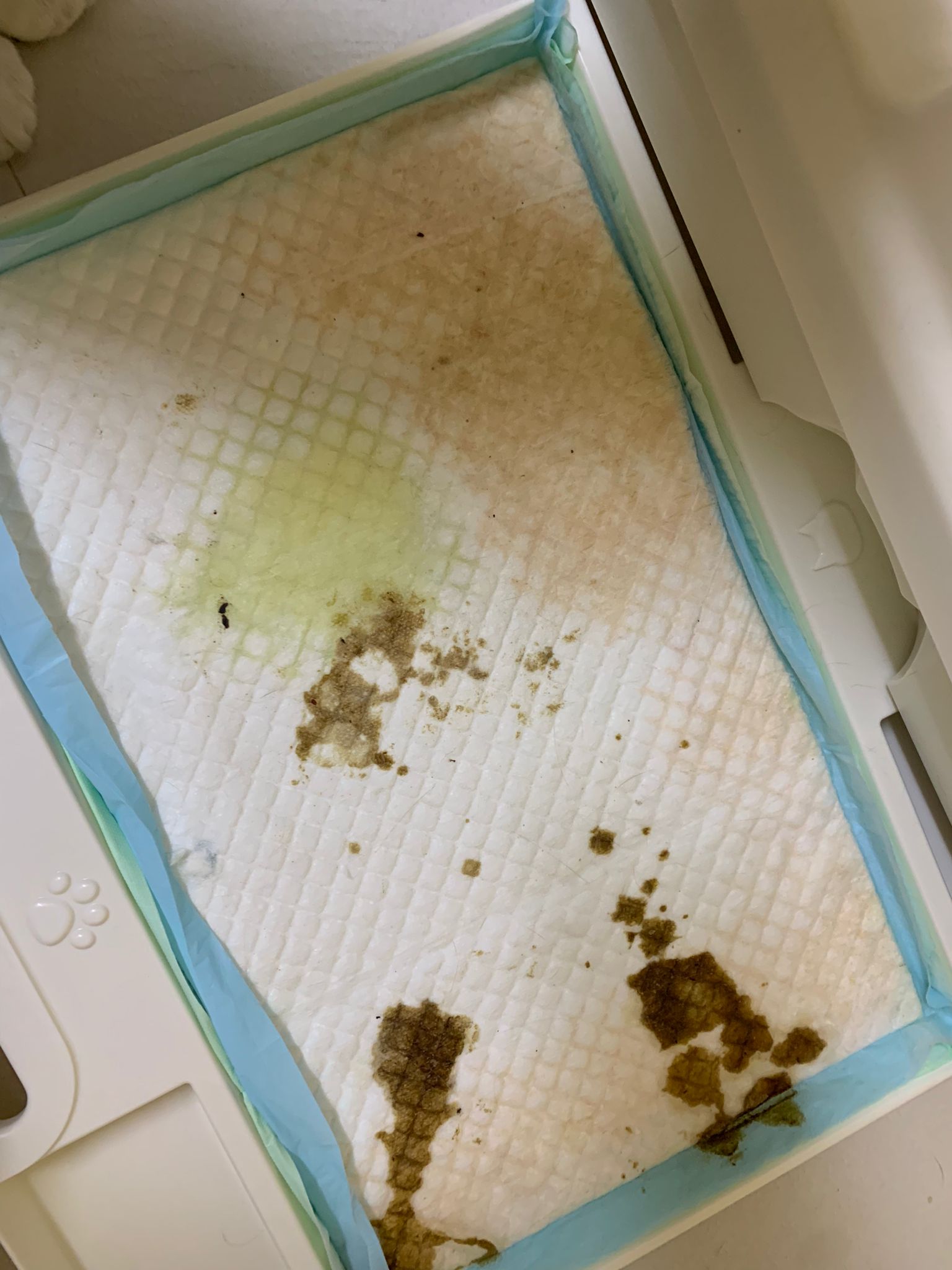 Checked: first pee at position 1/9. colour amount ok. No blood. Told her overnight one more set of poo pee I can keep tentage alr. She didn’t eat the ciao cup snack.