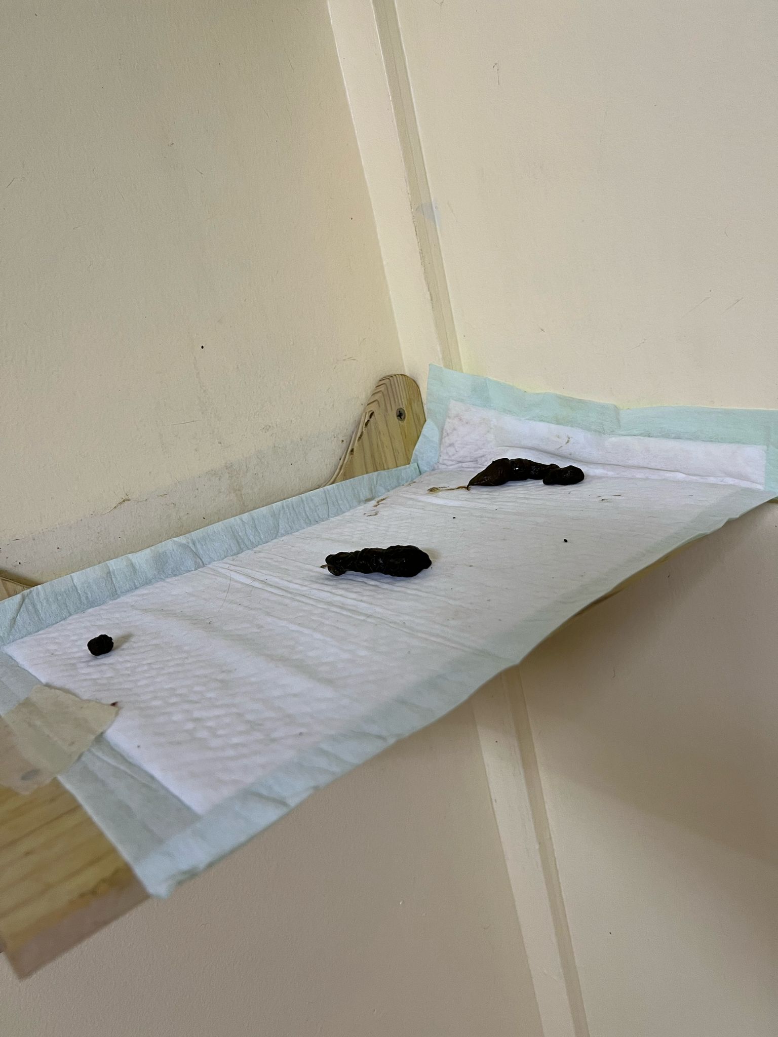 10am+: still active during food time, eat a lot. Poo 10/10. Must Subcut today. Poo so hard. Maybe also give probiotics. I’m thinking of giving her a water bowl at the top too like mama Mimi. – given bowl, Subcut, b com n b12 n probiotics